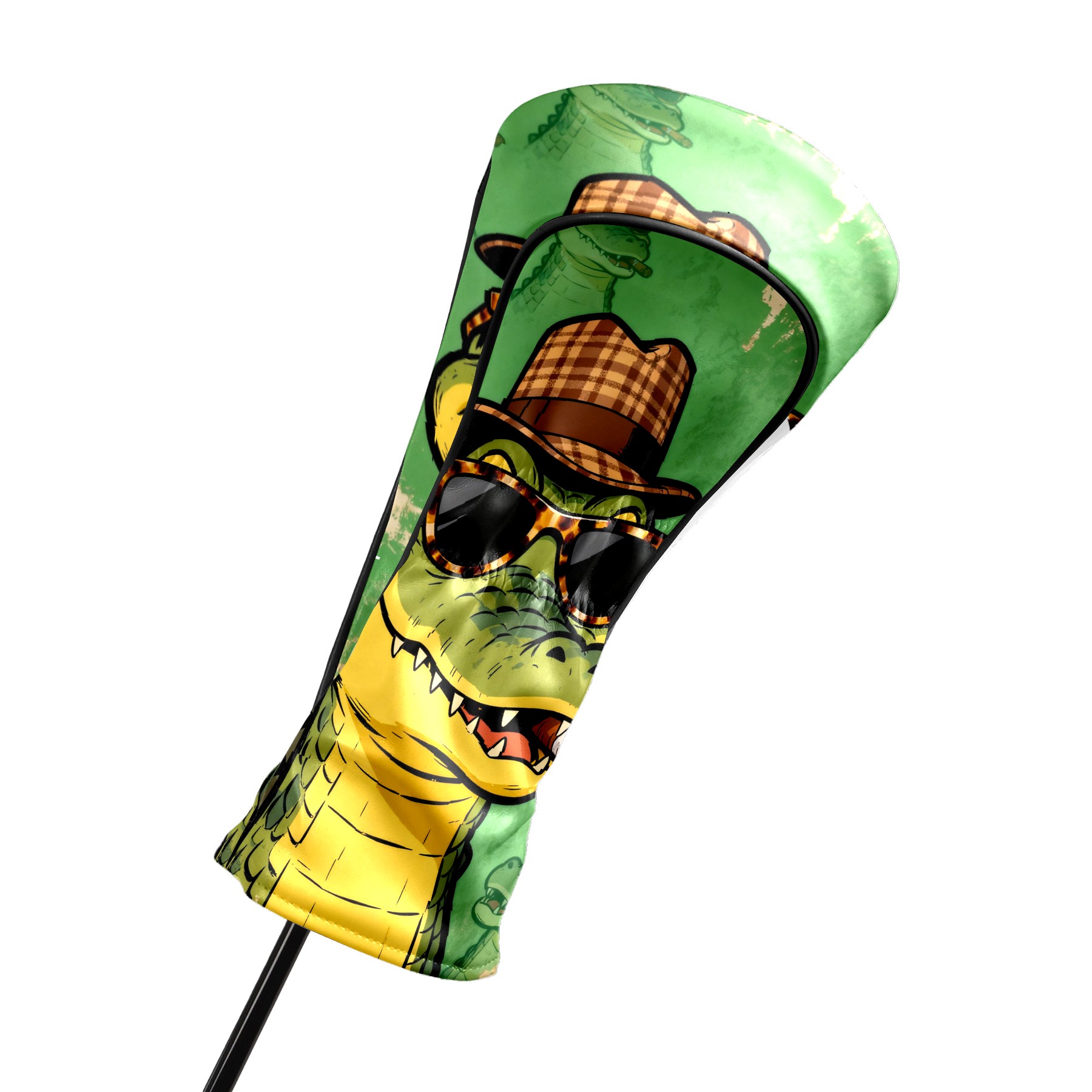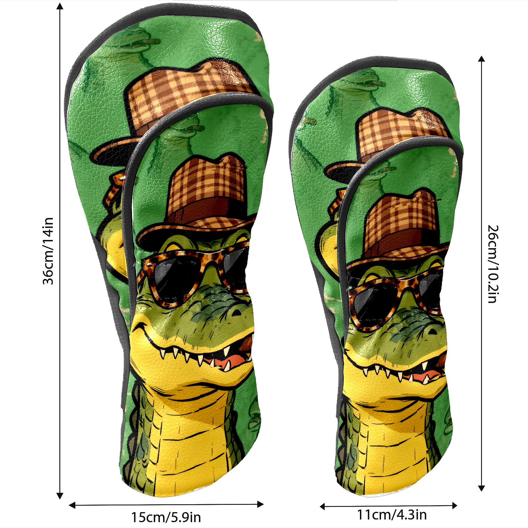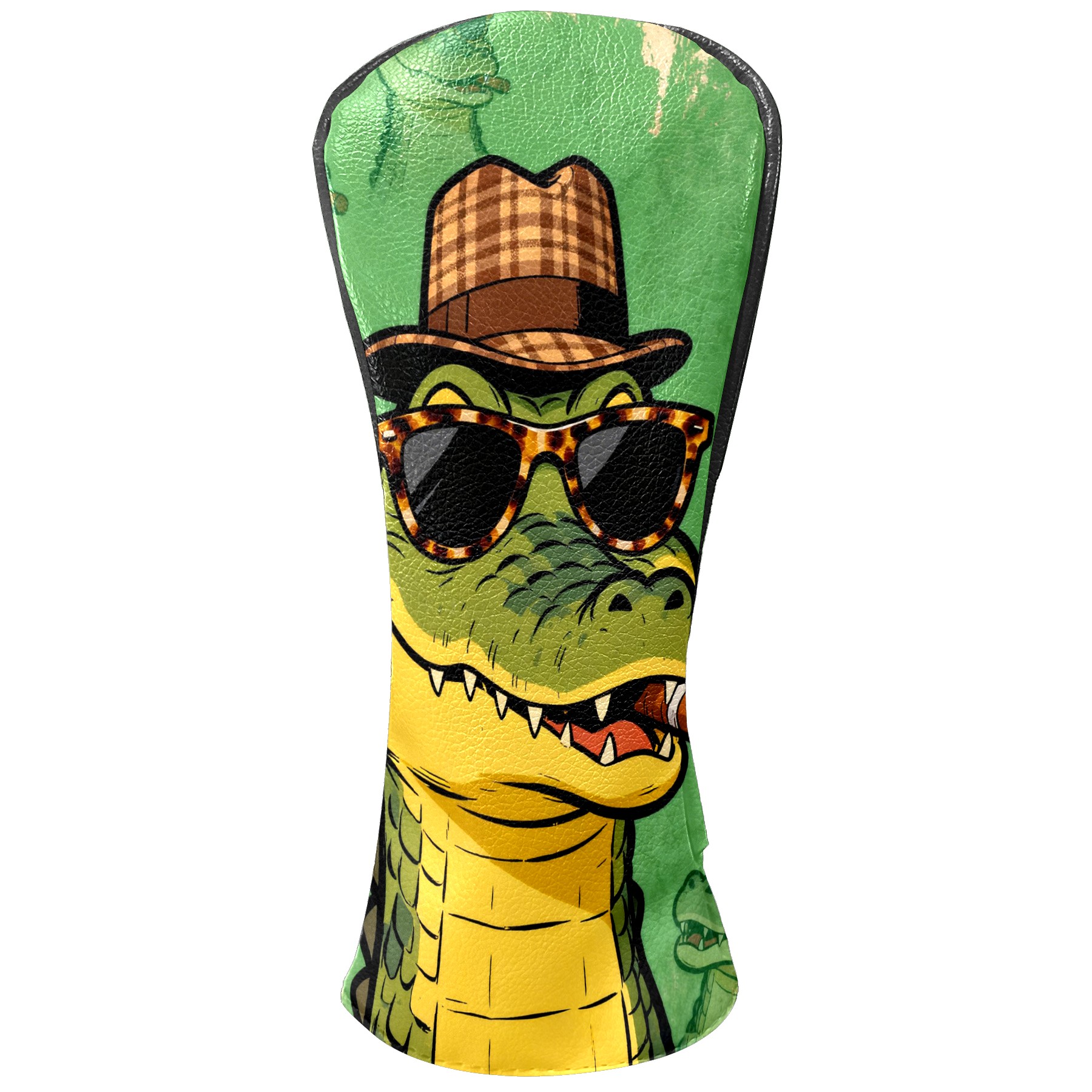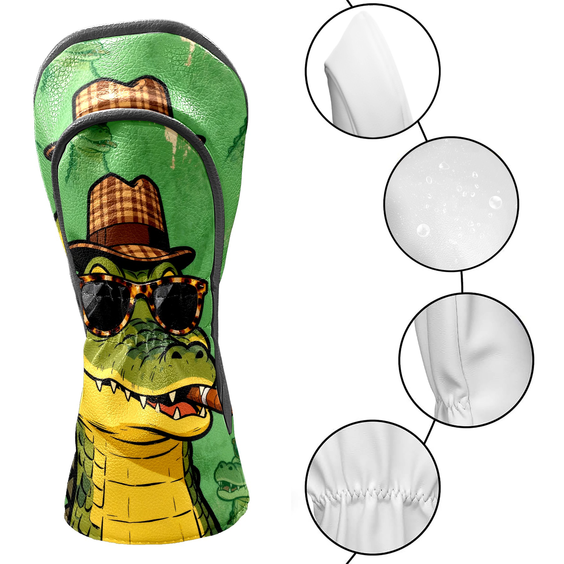 Golf Head Covers Leather Driver Head Cover, Premium Golf Club Covers with Anti-Scratch Lining for Women Men 1/3/5 Wood Cover for Golf Clubs (Funny Alligator)