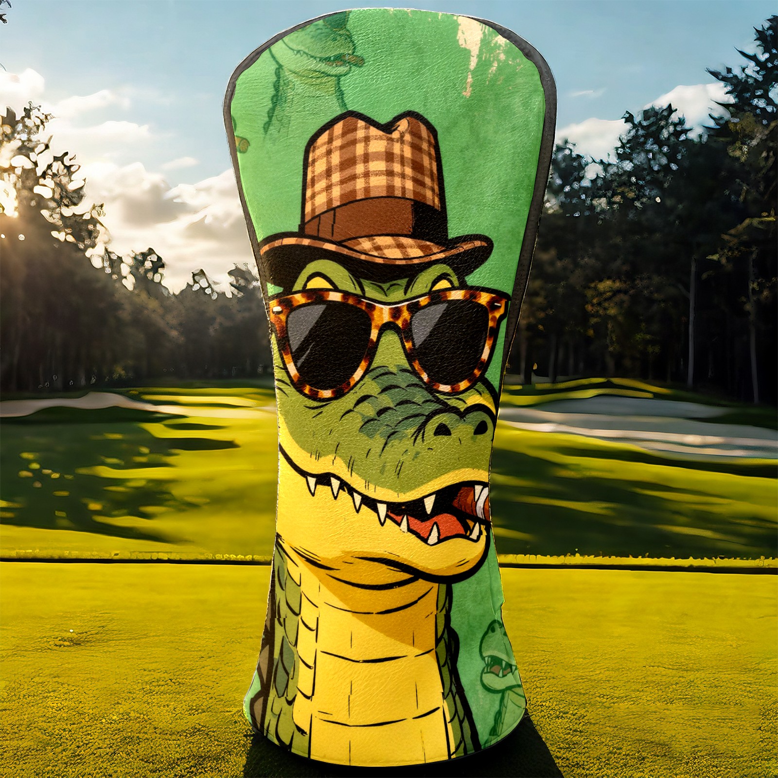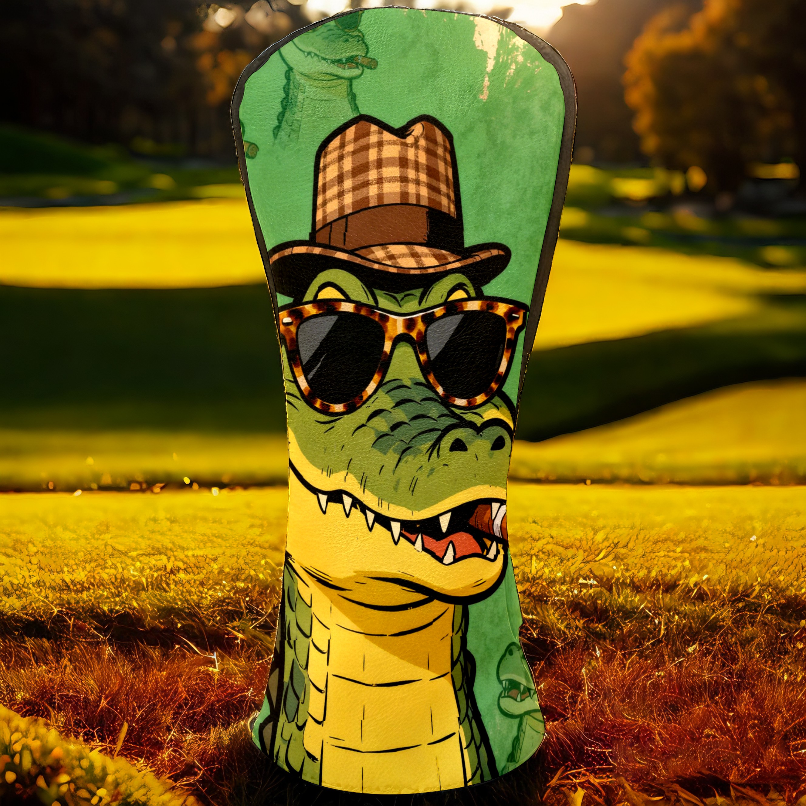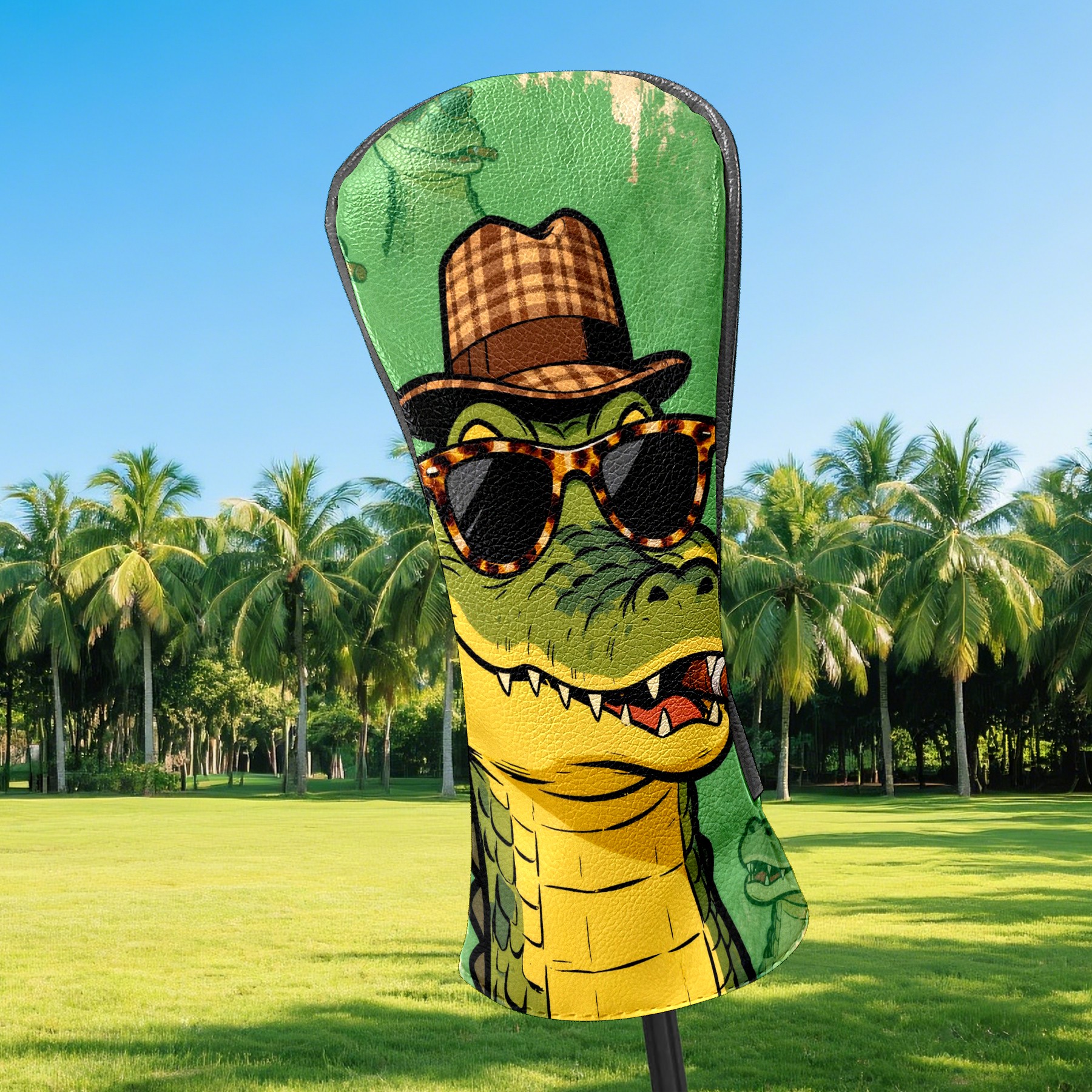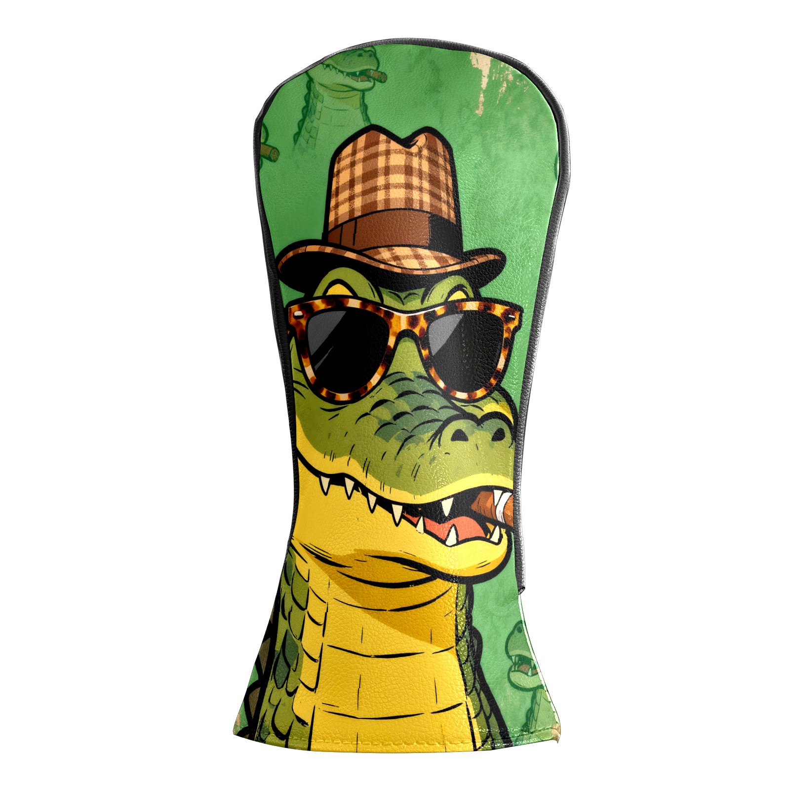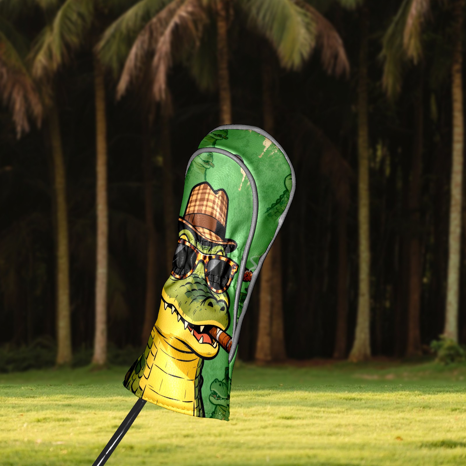 Golf Head Covers Leather Driver Head Cover, Premium Golf Club Covers with Anti-Scratch Lining for Women Men 1/3/5 Wood Cover for Golf Clubs (Funny Alligator)