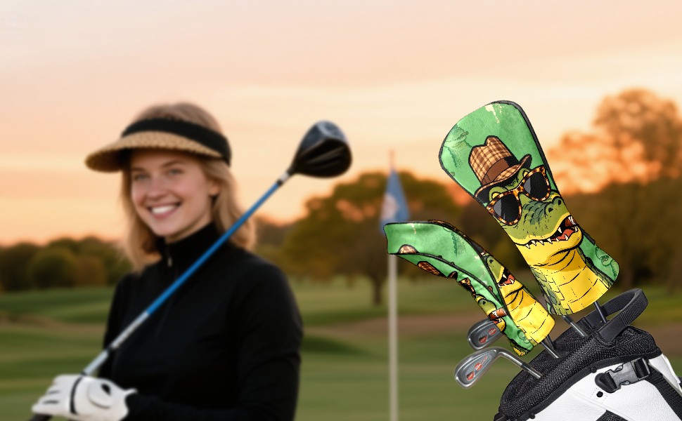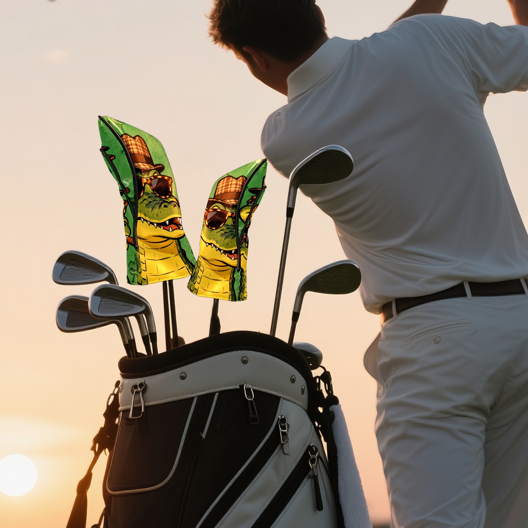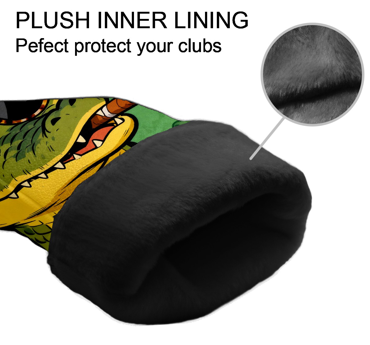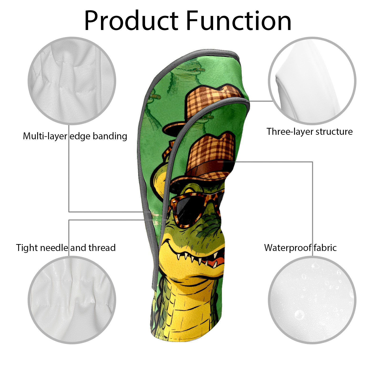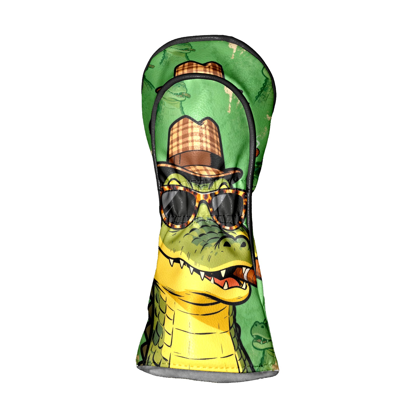 Golf Head Covers Leather Driver Head Cover, Premium Golf Club Covers with Anti-Scratch Lining for Women Men 1/3/5 Wood Cover for Golf Clubs (Funny Alligator)