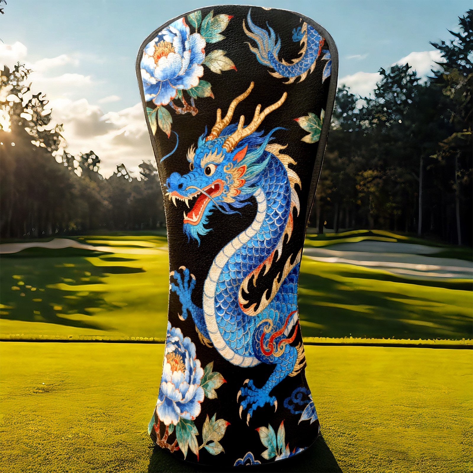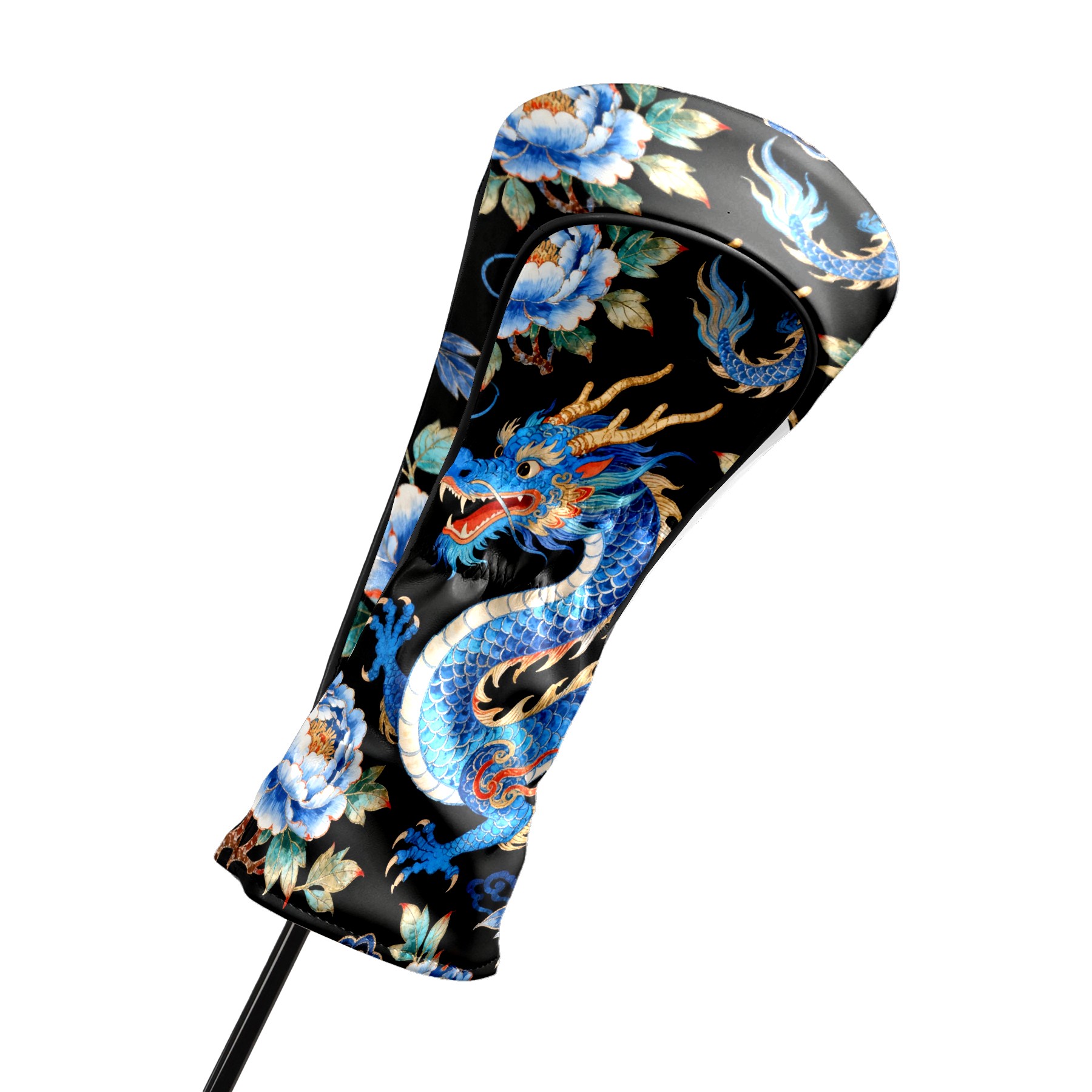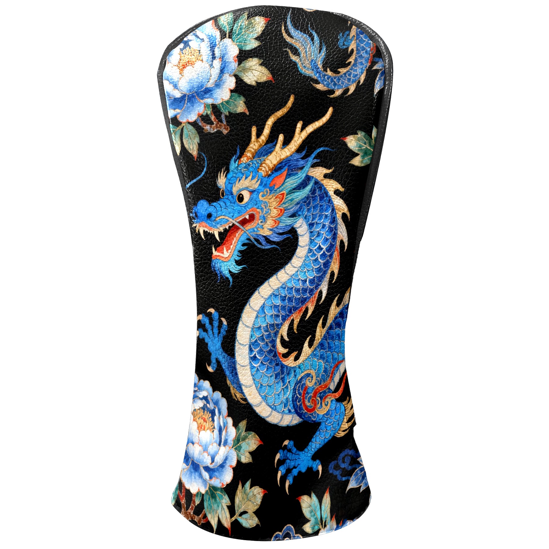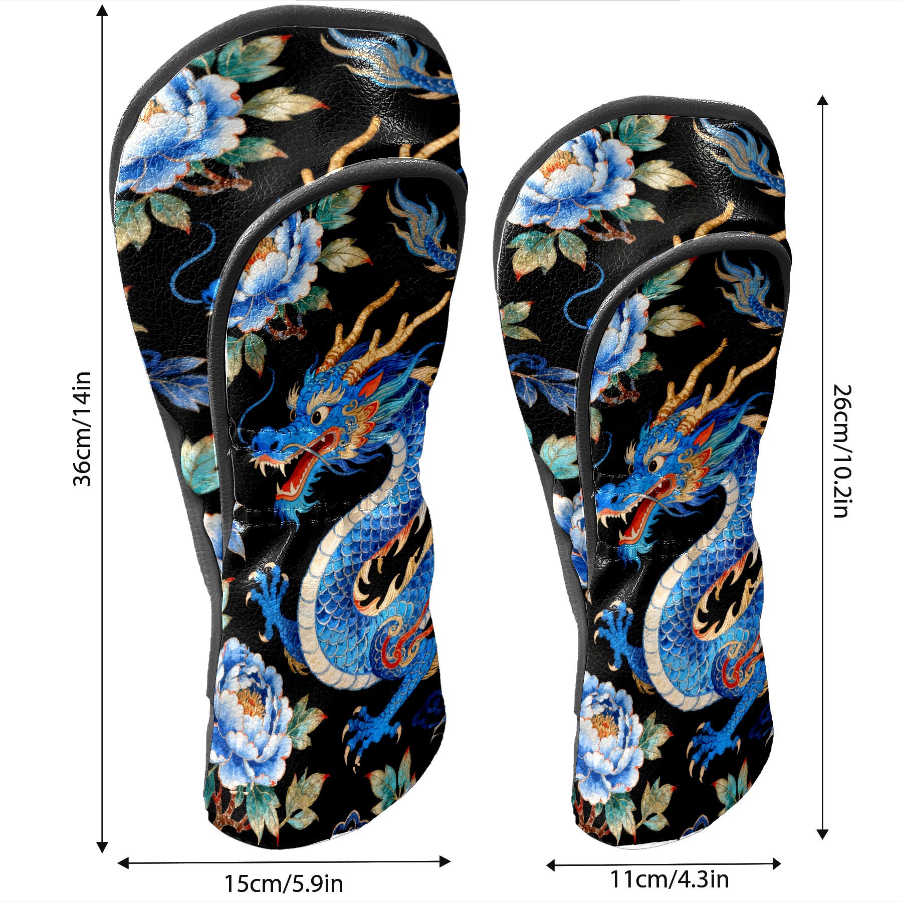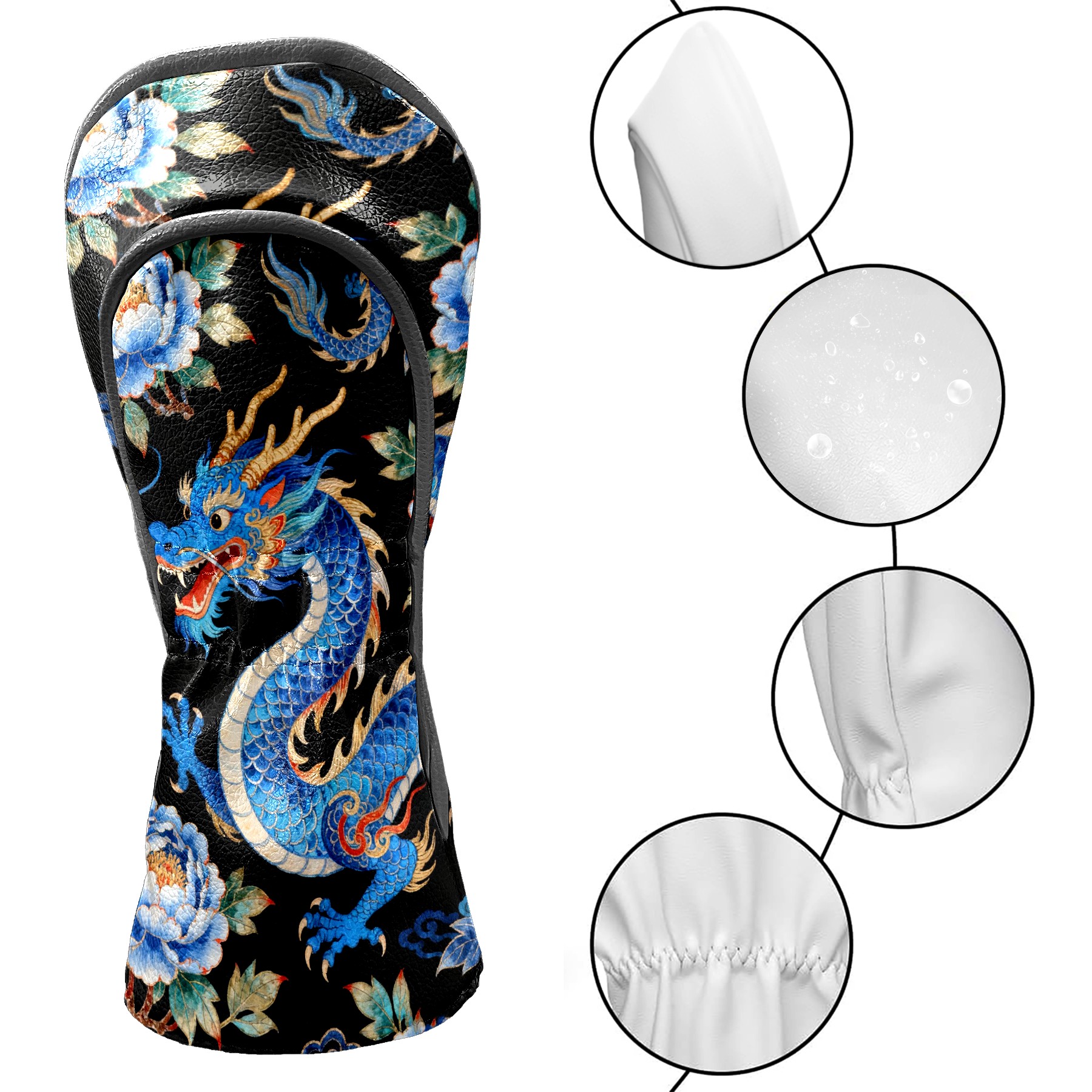 Golf Head Covers Leather Driver Head Cover, Premium Golf Club Covers with Anti-Scratch Lining for Women Men 1/3/5 Wood Cover for Golf Clubs (Dragon Floral Blue)