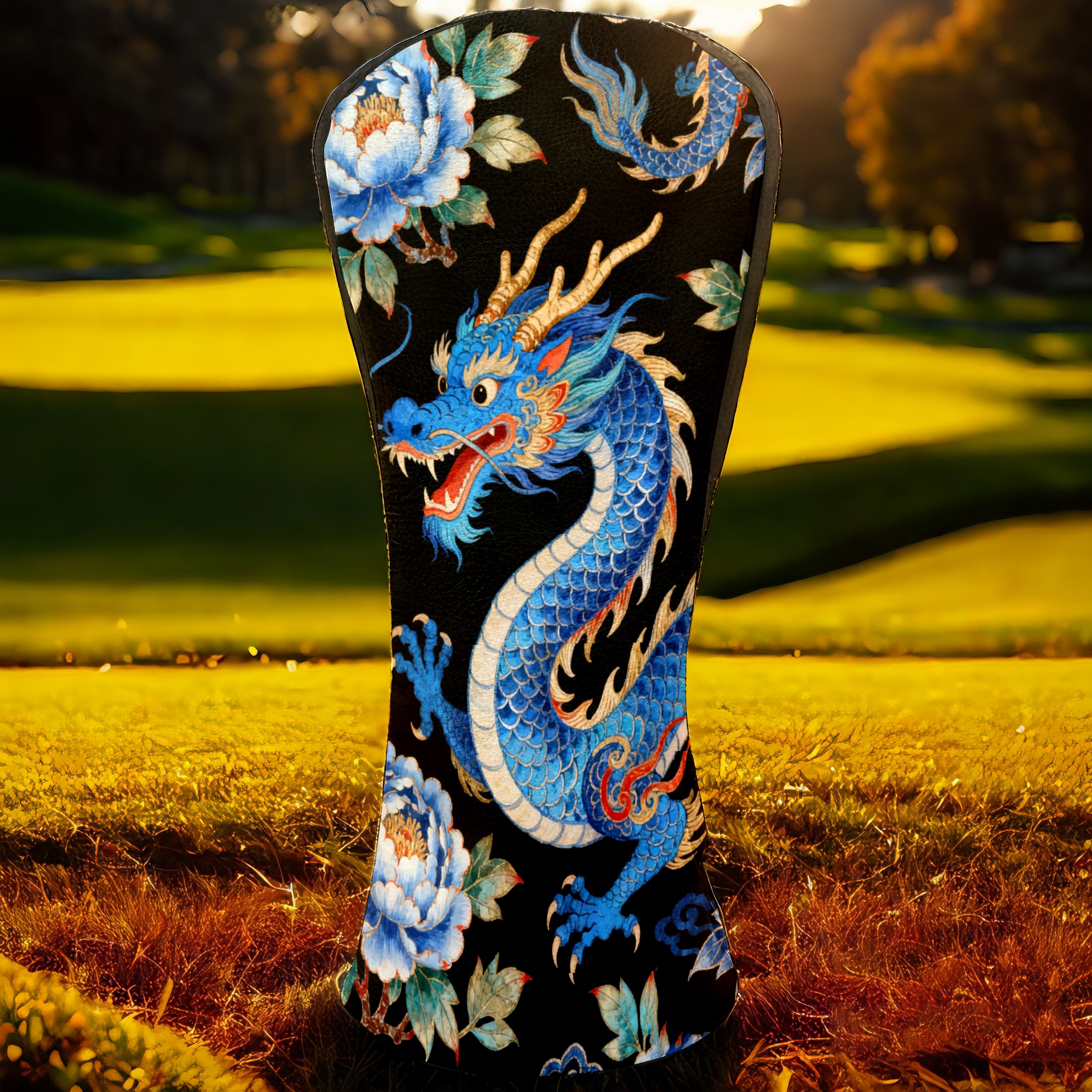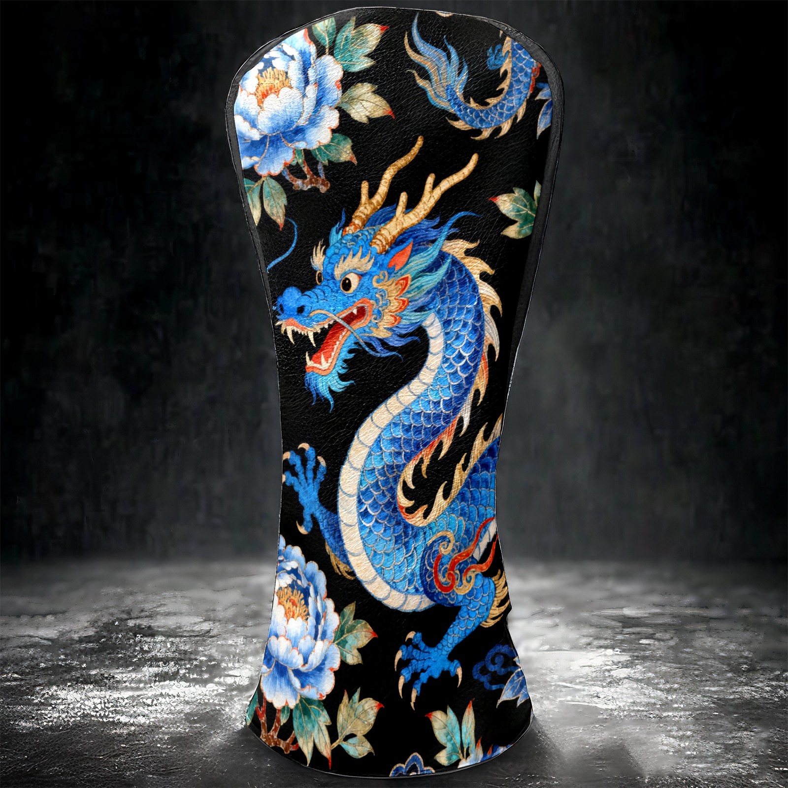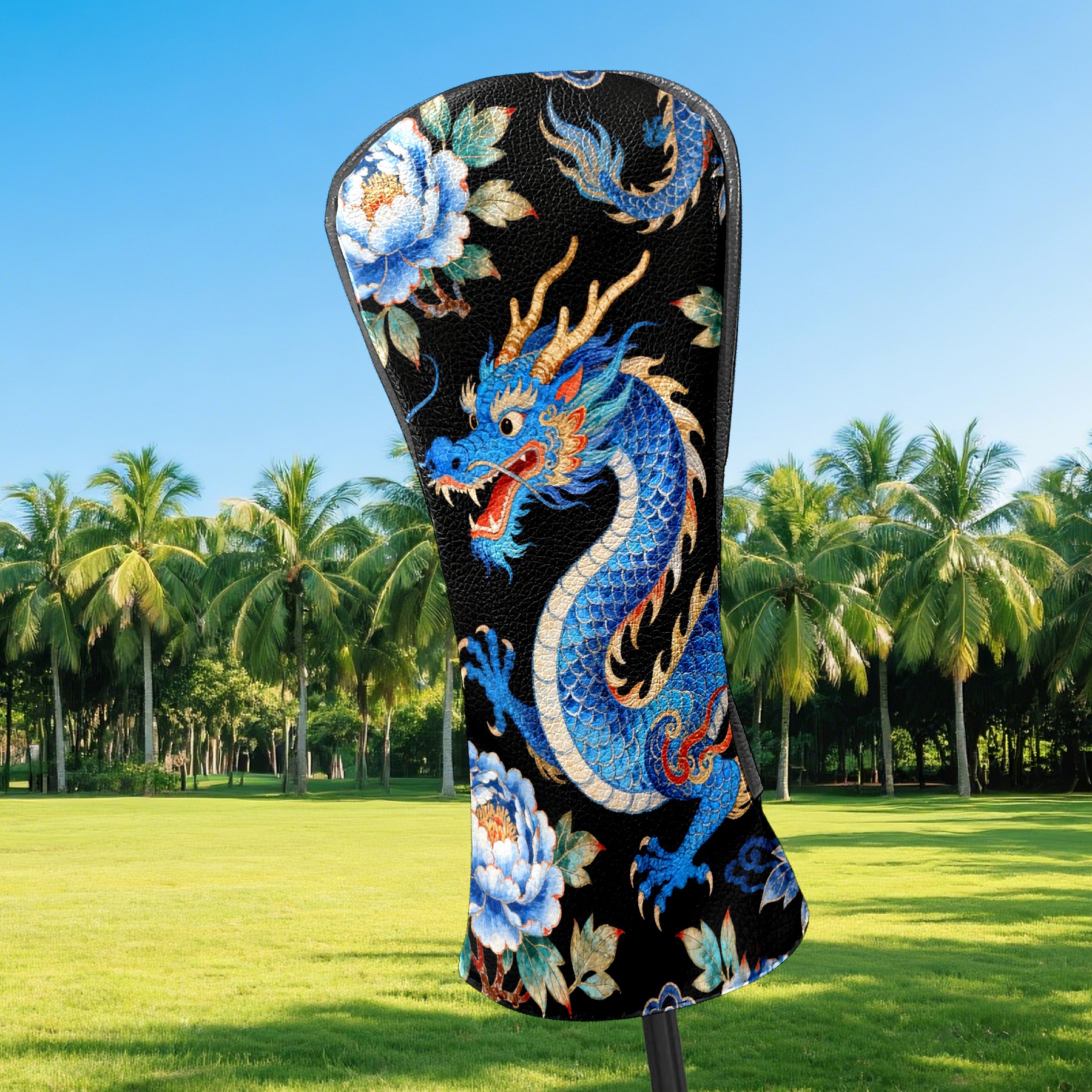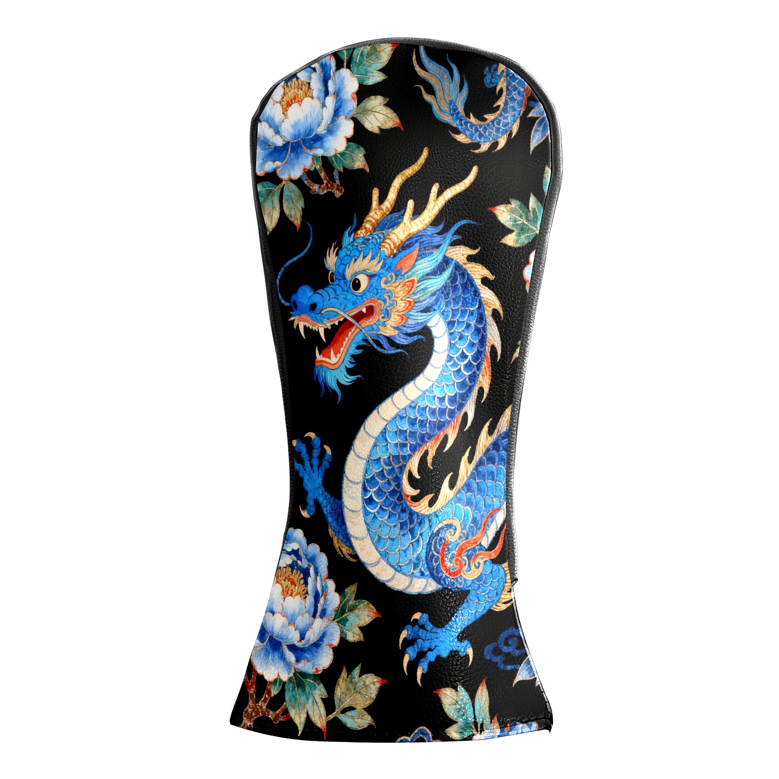 Golf Head Covers Leather Driver Head Cover, Premium Golf Club Covers with Anti-Scratch Lining for Women Men 1/3/5 Wood Cover for Golf Clubs (Dragon Floral Blue)