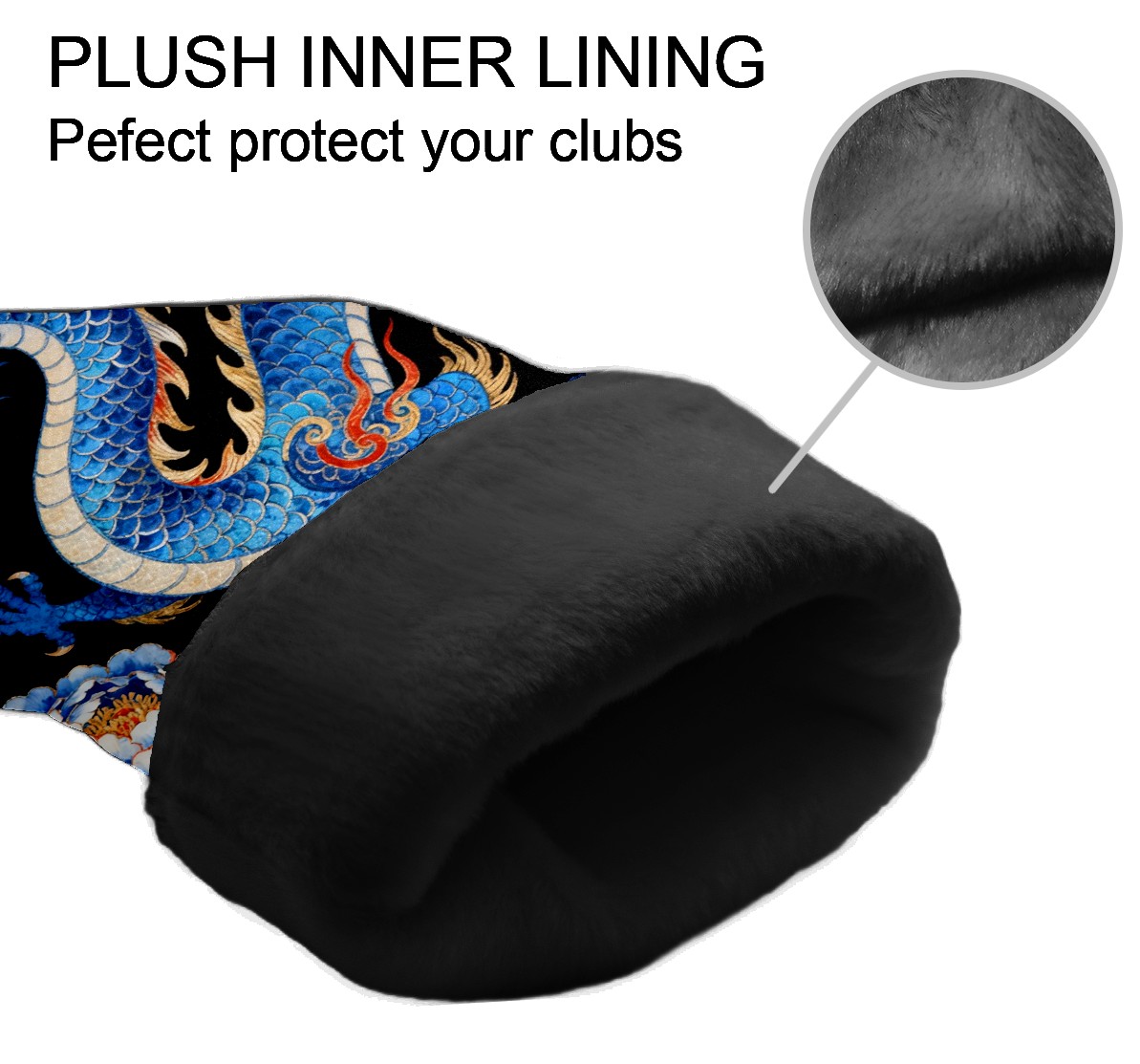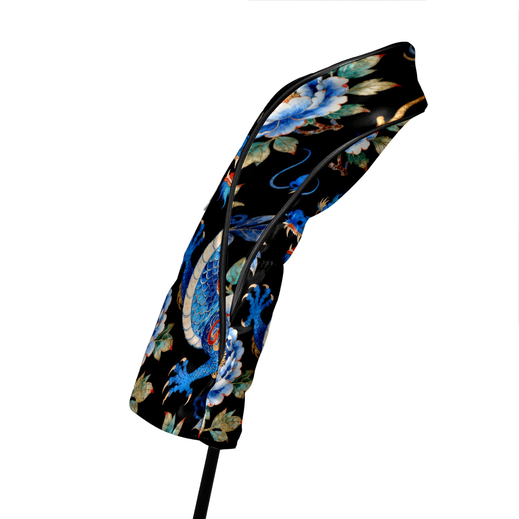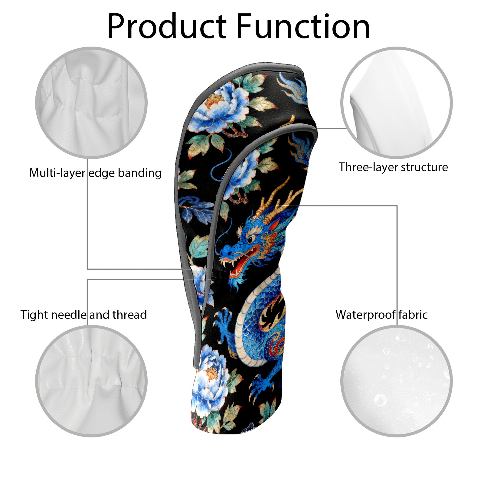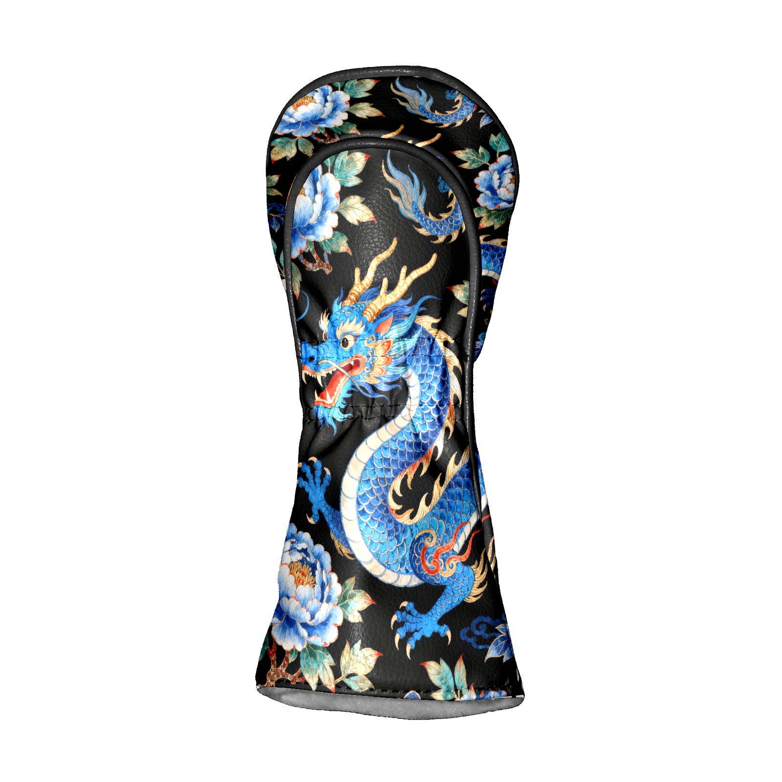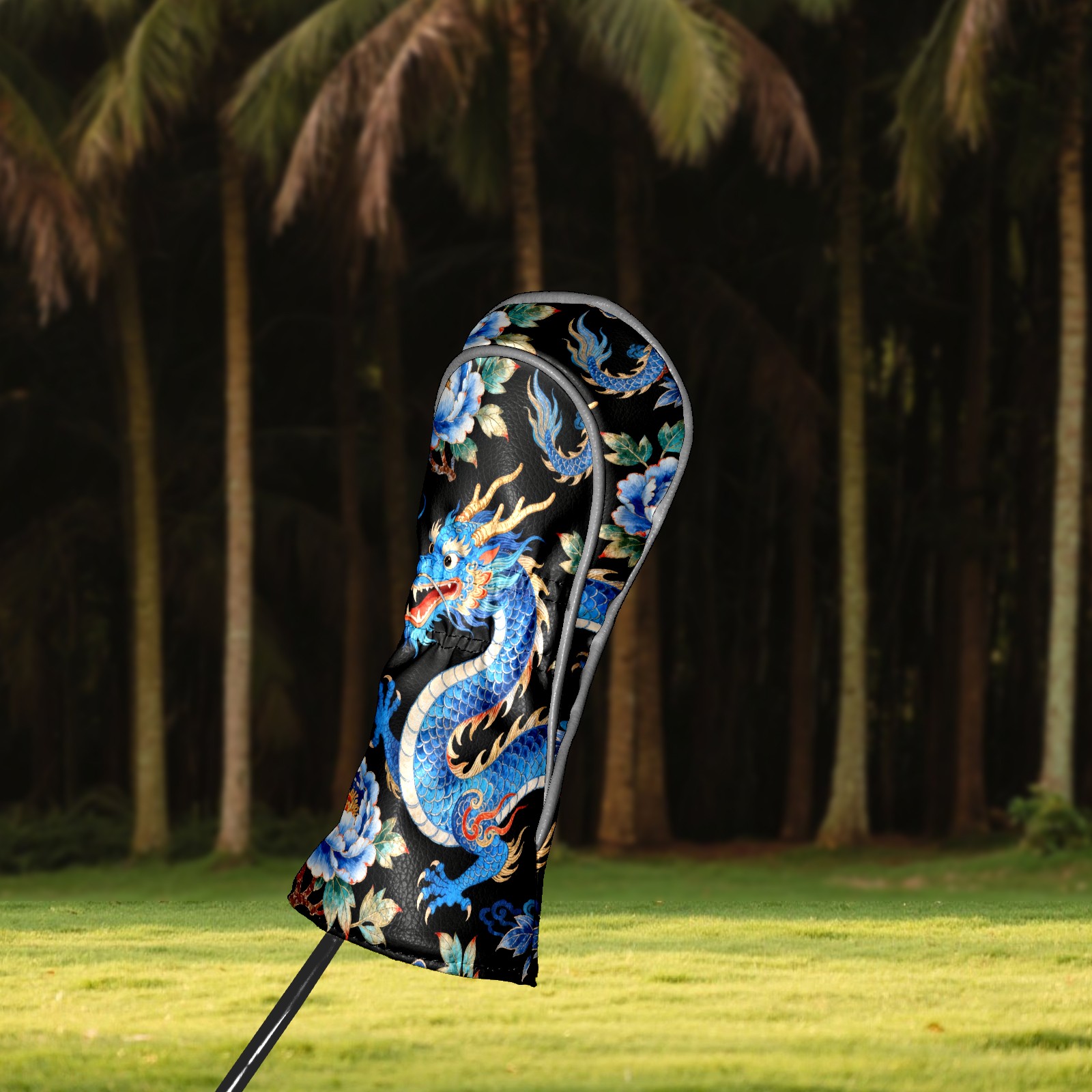 Golf Head Covers Leather Driver Head Cover, Premium Golf Club Covers with Anti-Scratch Lining for Women Men 1/3/5 Wood Cover for Golf Clubs (Dragon Floral Blue)