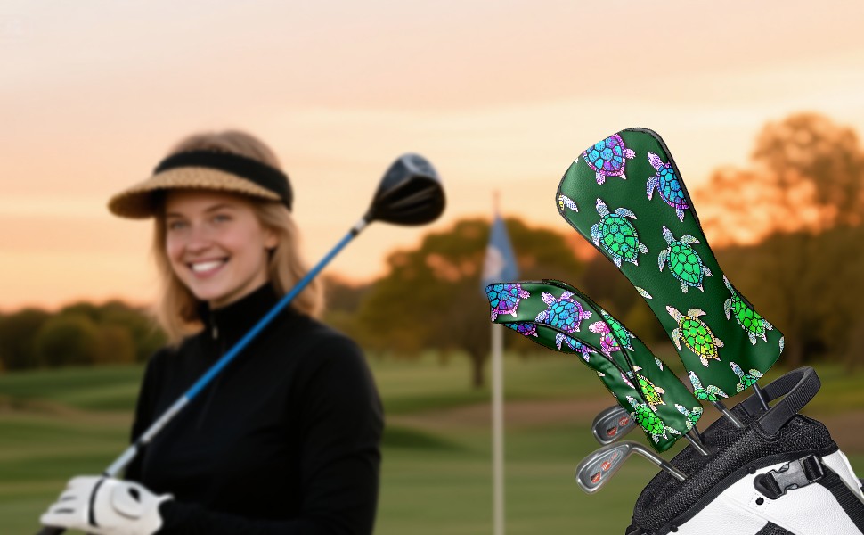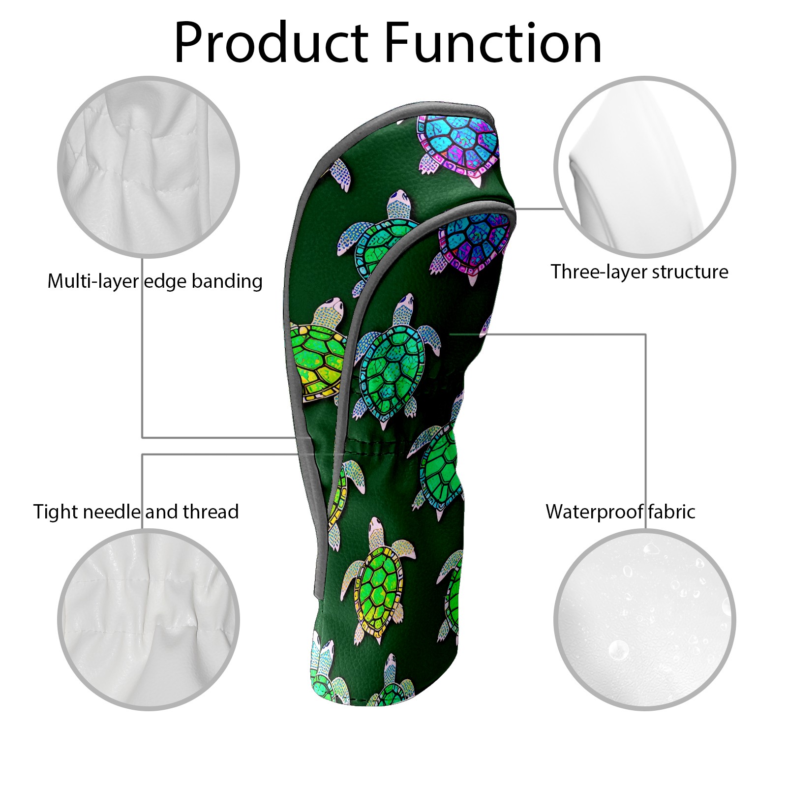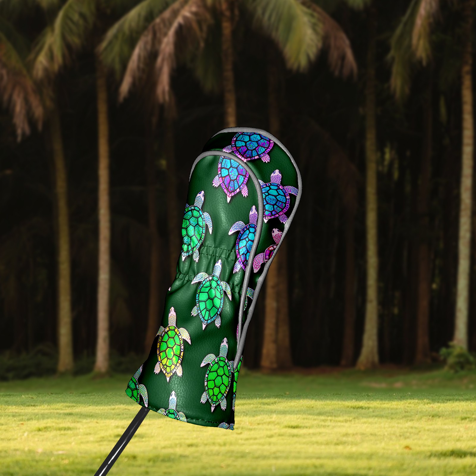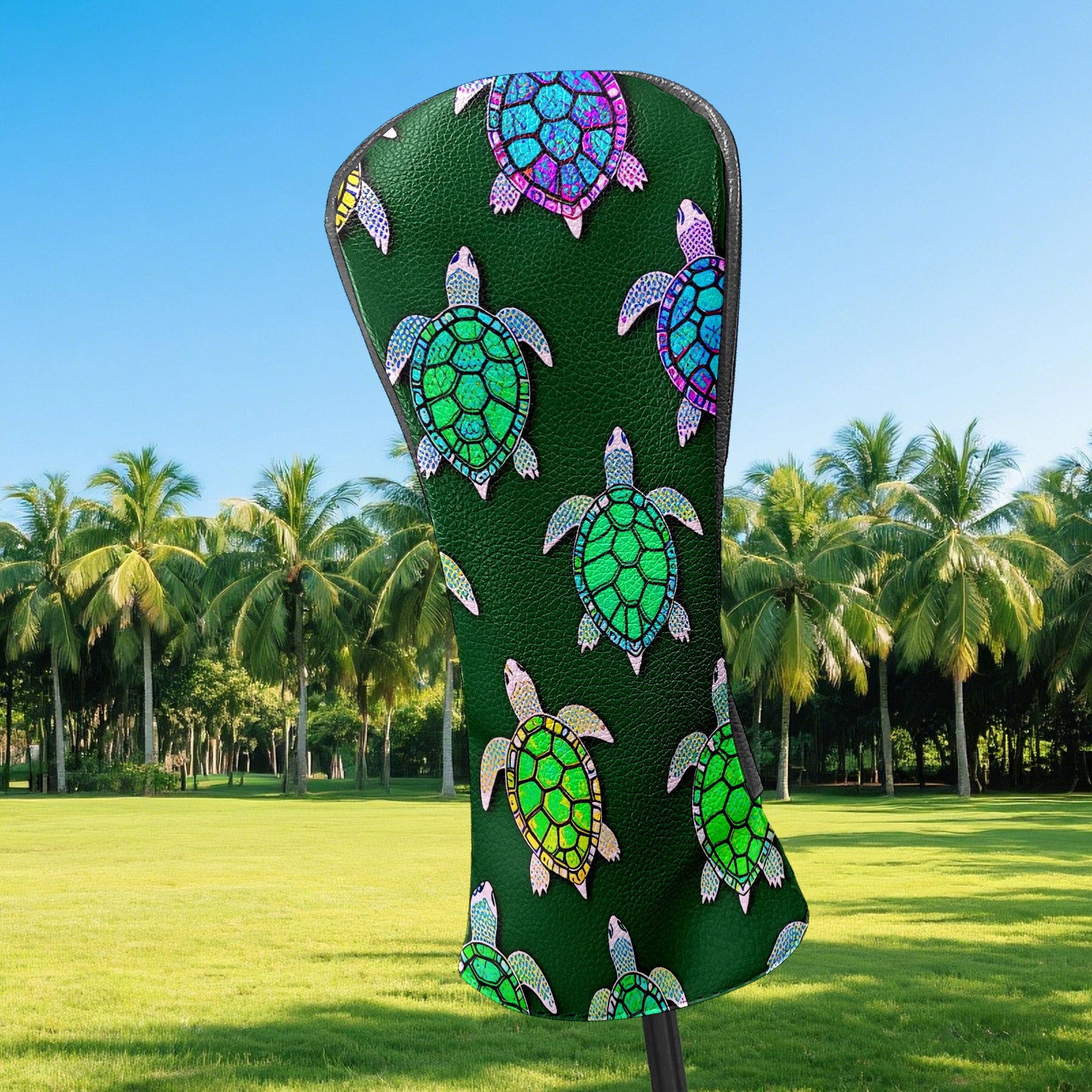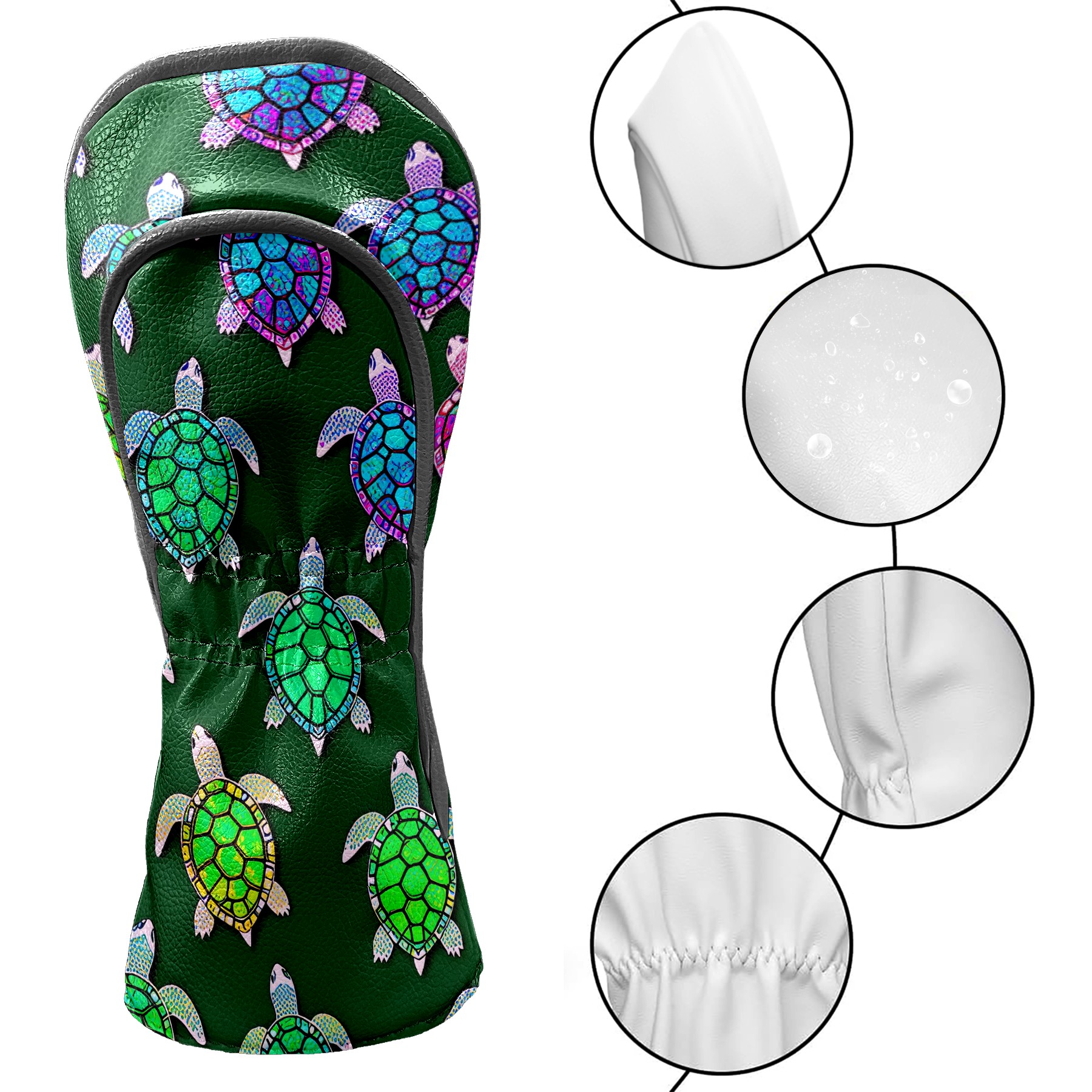 Golf Head Covers Leather Driver Head Cover, Premium Golf Club Covers with Anti-Scratch Lining for Women Men 1/3/5 Wood Cover for Golf Clubs (Turtle Green (1))