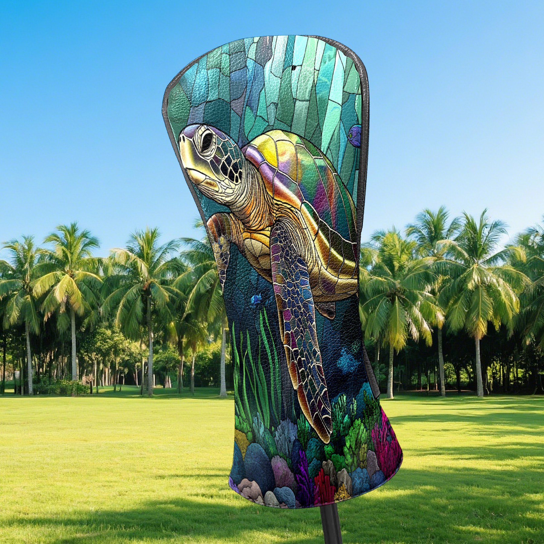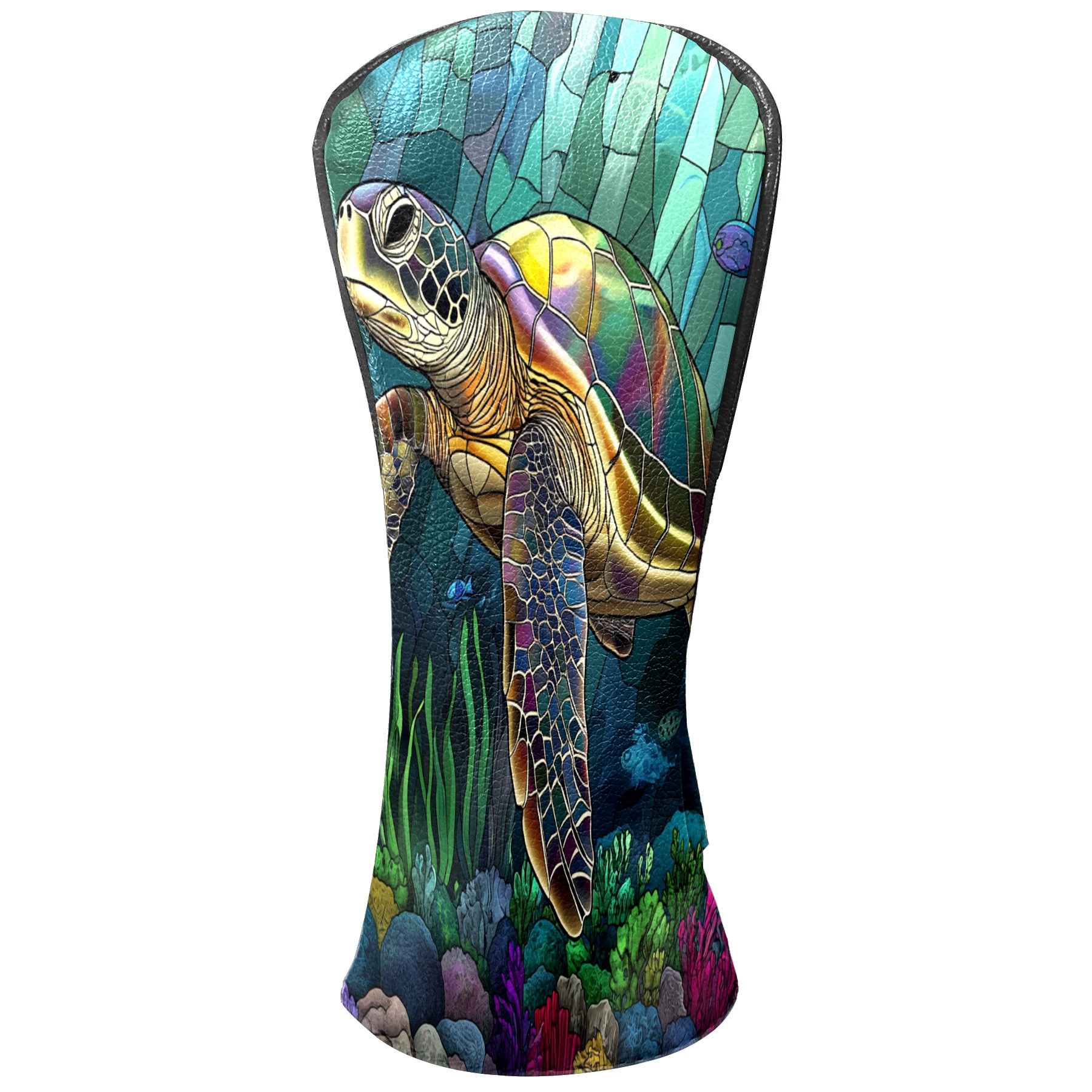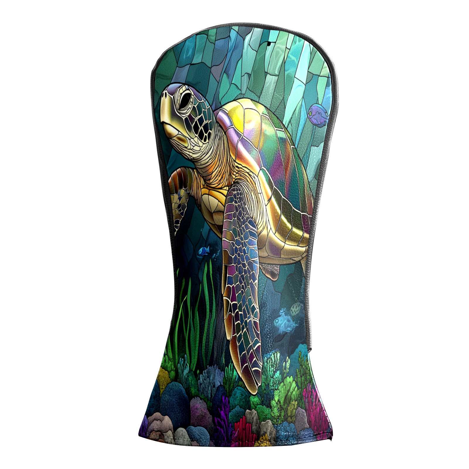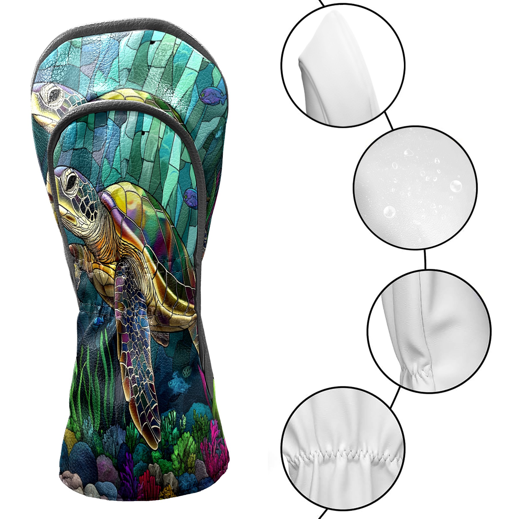 Golf Head Covers Leather Driver Head Cover, Premium Golf Club Covers with Anti-Scratch Lining for Women Men 1/3/5 Wood Cover for Golf Clubs (Stained Glass Turtle)