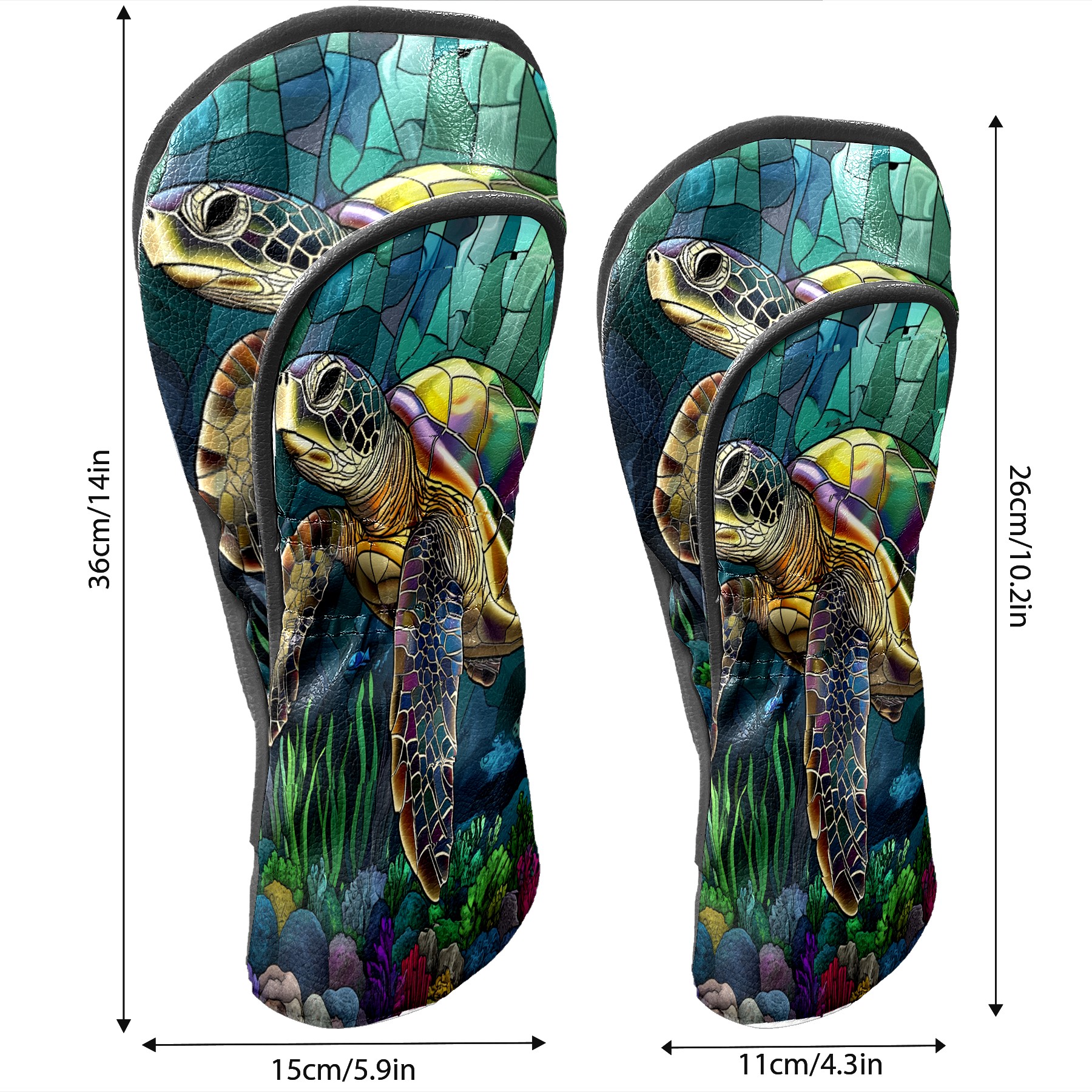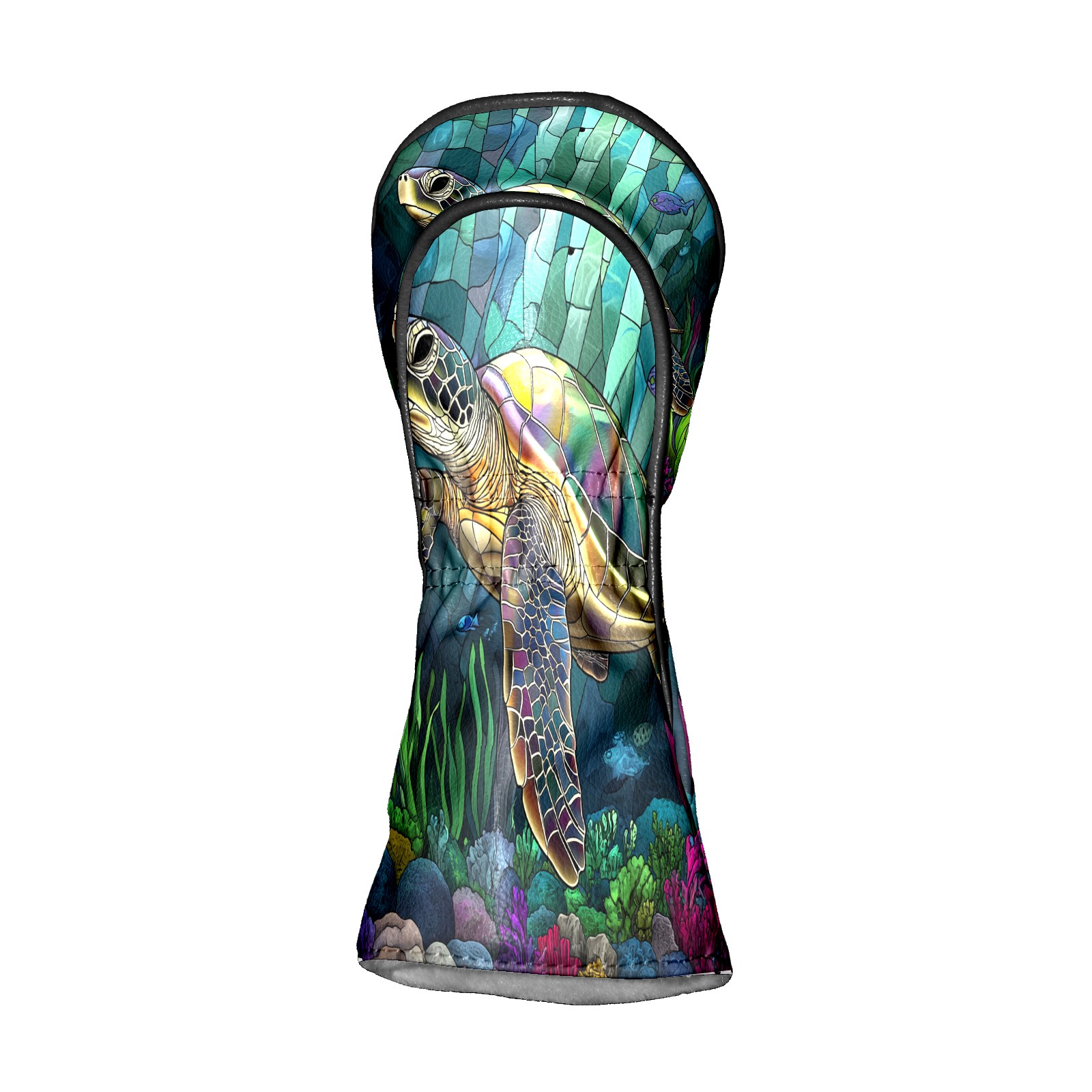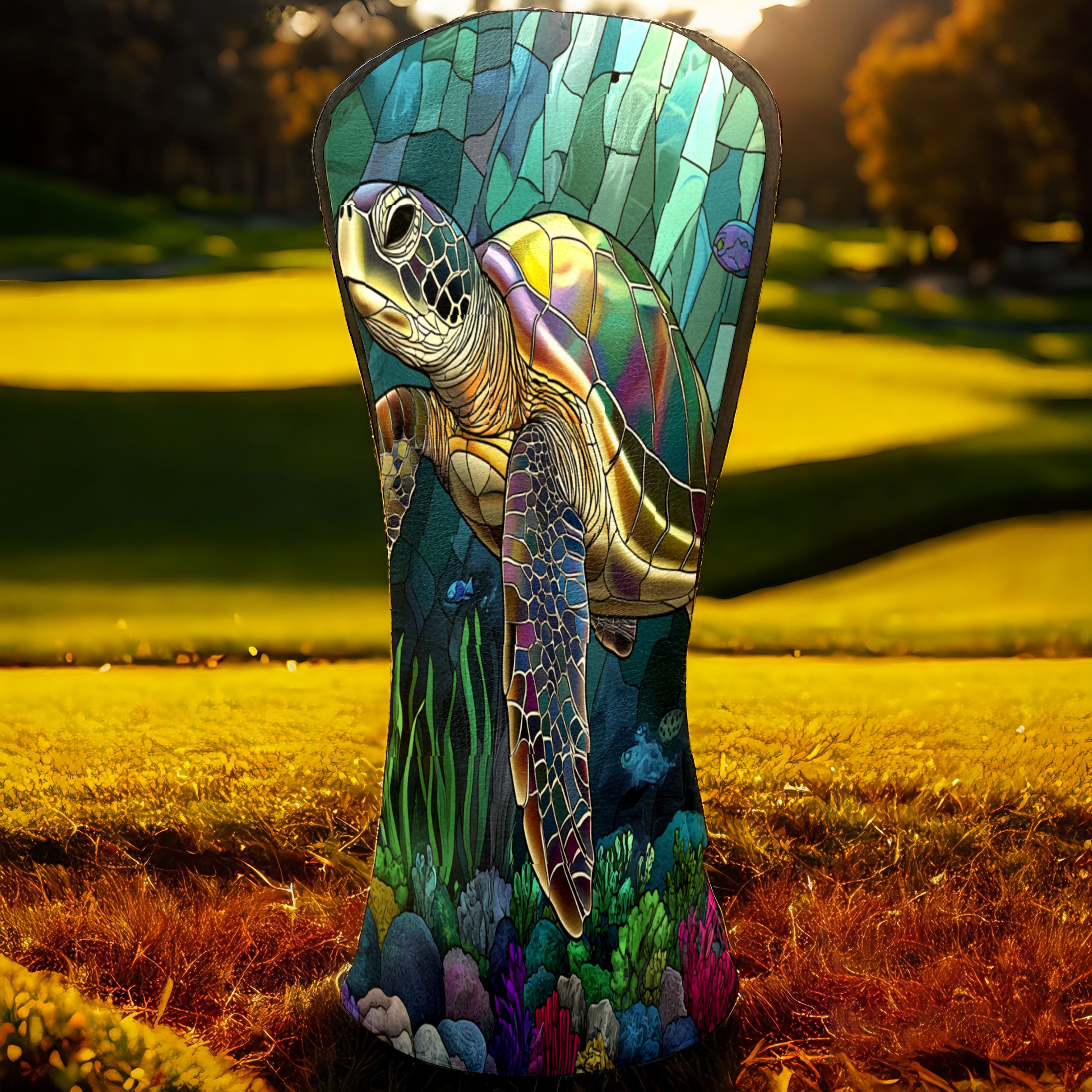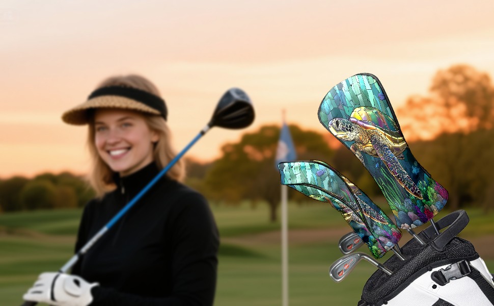 Golf Head Covers Leather Driver Head Cover, Premium Golf Club Covers with Anti-Scratch Lining for Women Men 1/3/5 Wood Cover for Golf Clubs (Stained Glass Turtle)