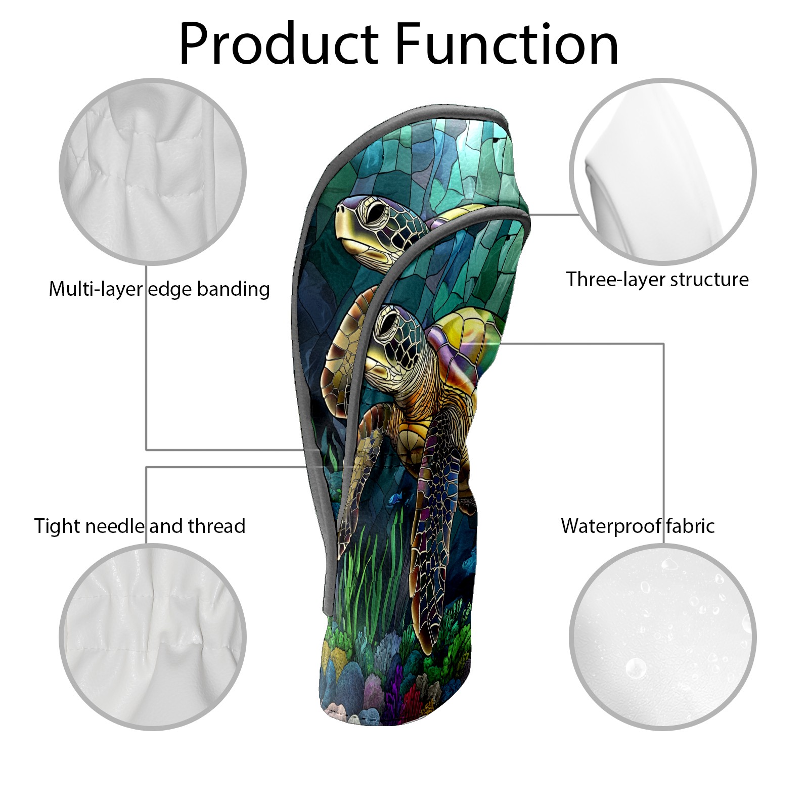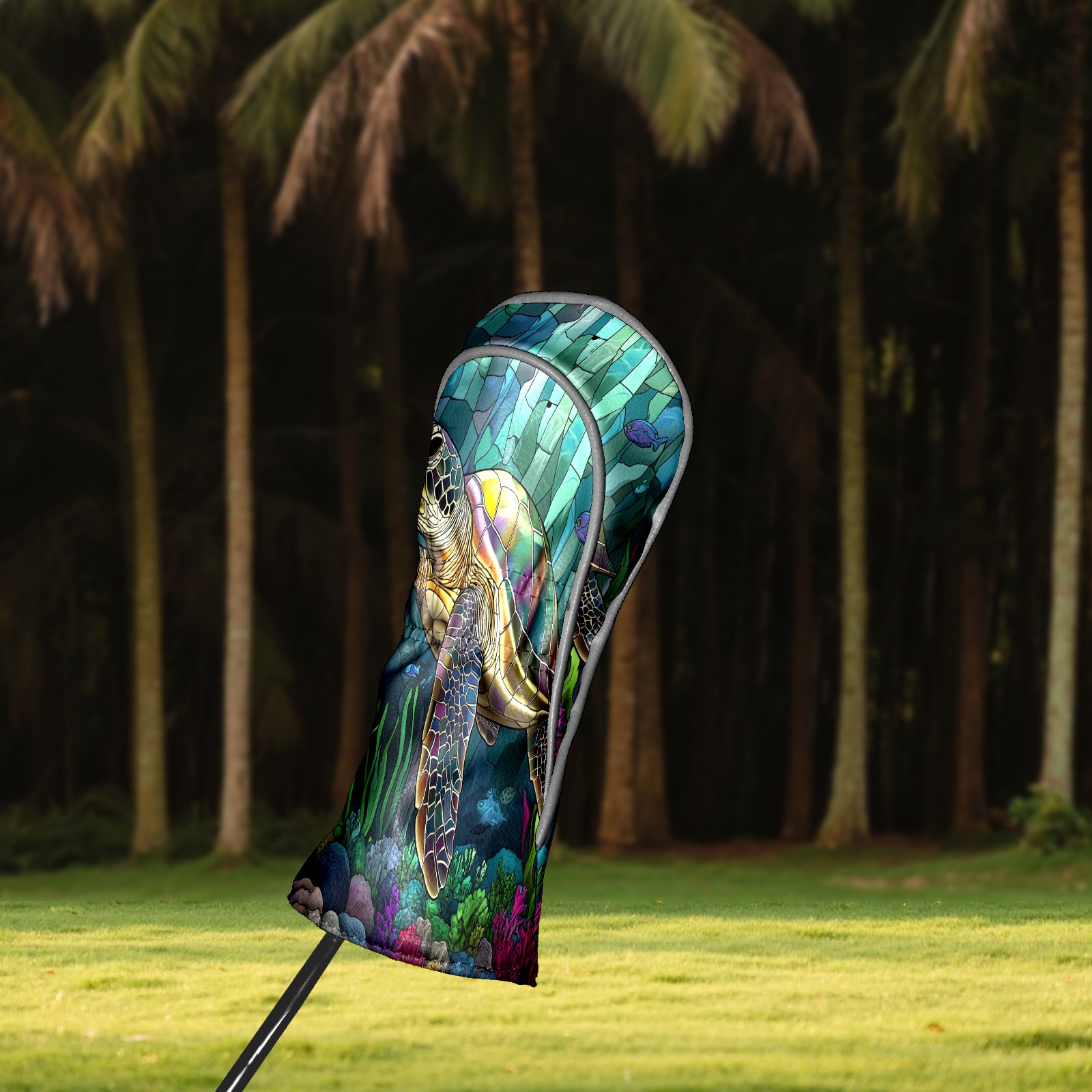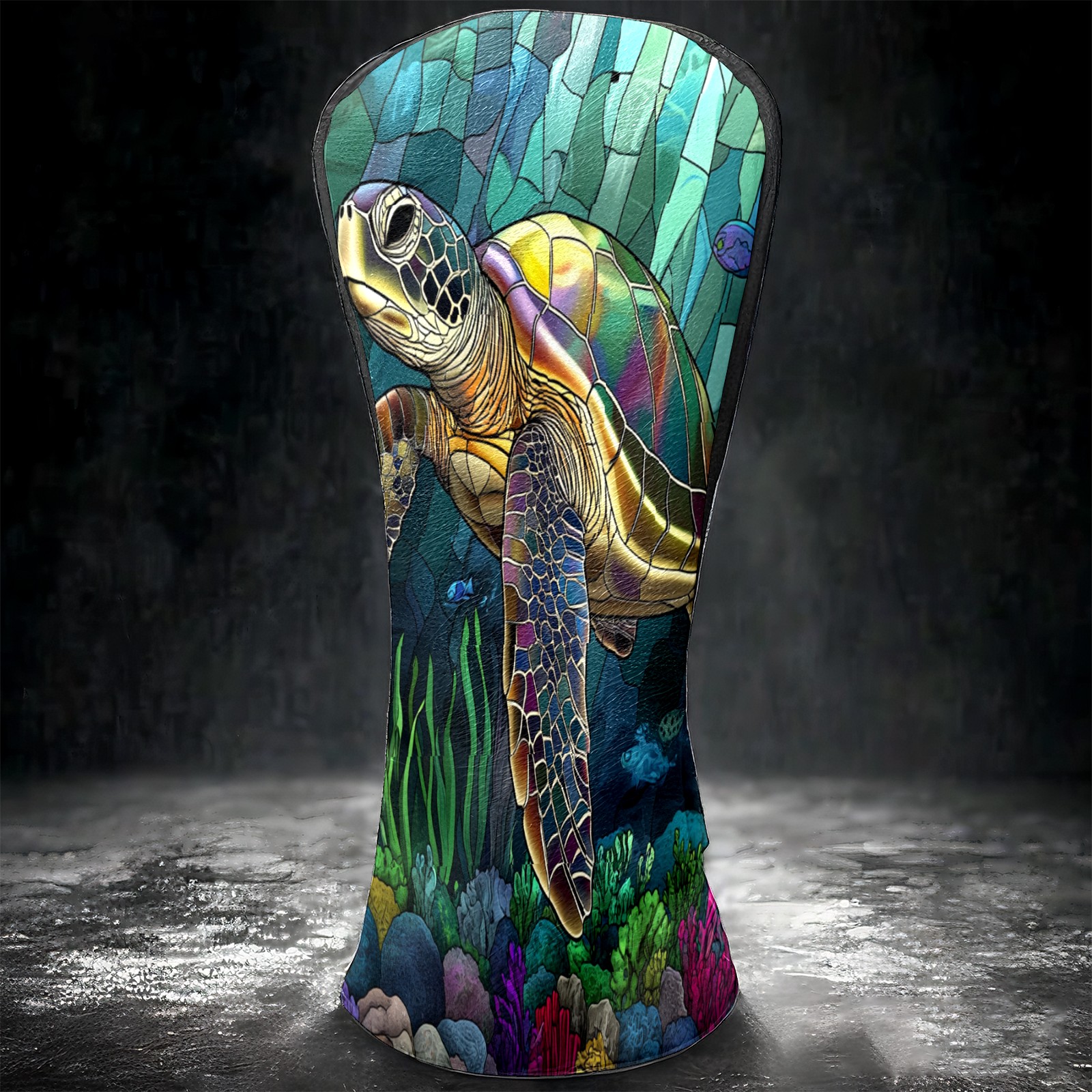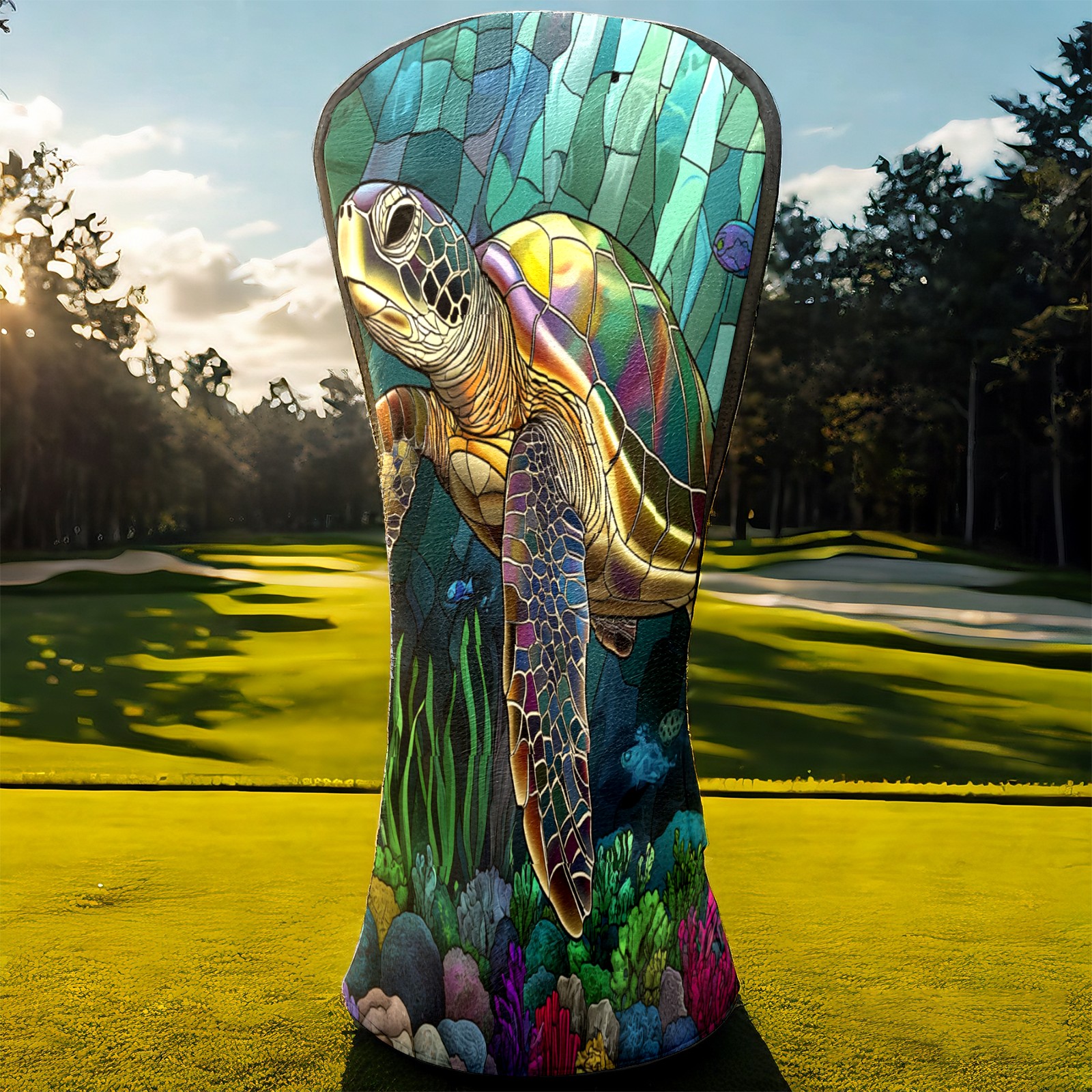 Golf Head Covers Leather Driver Head Cover, Premium Golf Club Covers with Anti-Scratch Lining for Women Men 1/3/5 Wood Cover for Golf Clubs (Stained Glass Turtle)