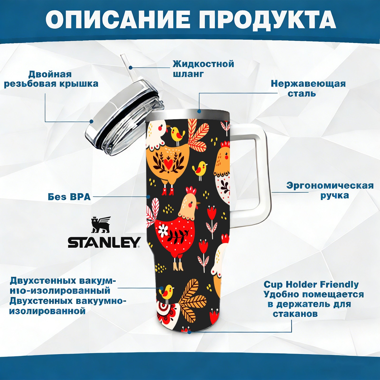 Автомобильная чашка Stanley на 40 унций с полной цветной печатью. Внутренний слой изготовлен из пищевой нержавеющей стали 304, внешний слой — из стали 201. Безопасная, прочная и устойчивая к деформации. На корпусе использована УФ-печать по всей поверхности: рисунок четкий, яркий, устойчивый к истиранию и не выцветает. Большой объем 40 унций удовлетворяет потребность в воде во время ежедневных поездок и длительных путешествий. Чашка подходит под большинство подстаканников в автомобилях, устойчиво размещается. Подходит для использования в автомобиле, в офисе, на открытом воздухе, а также является практичным подарком.