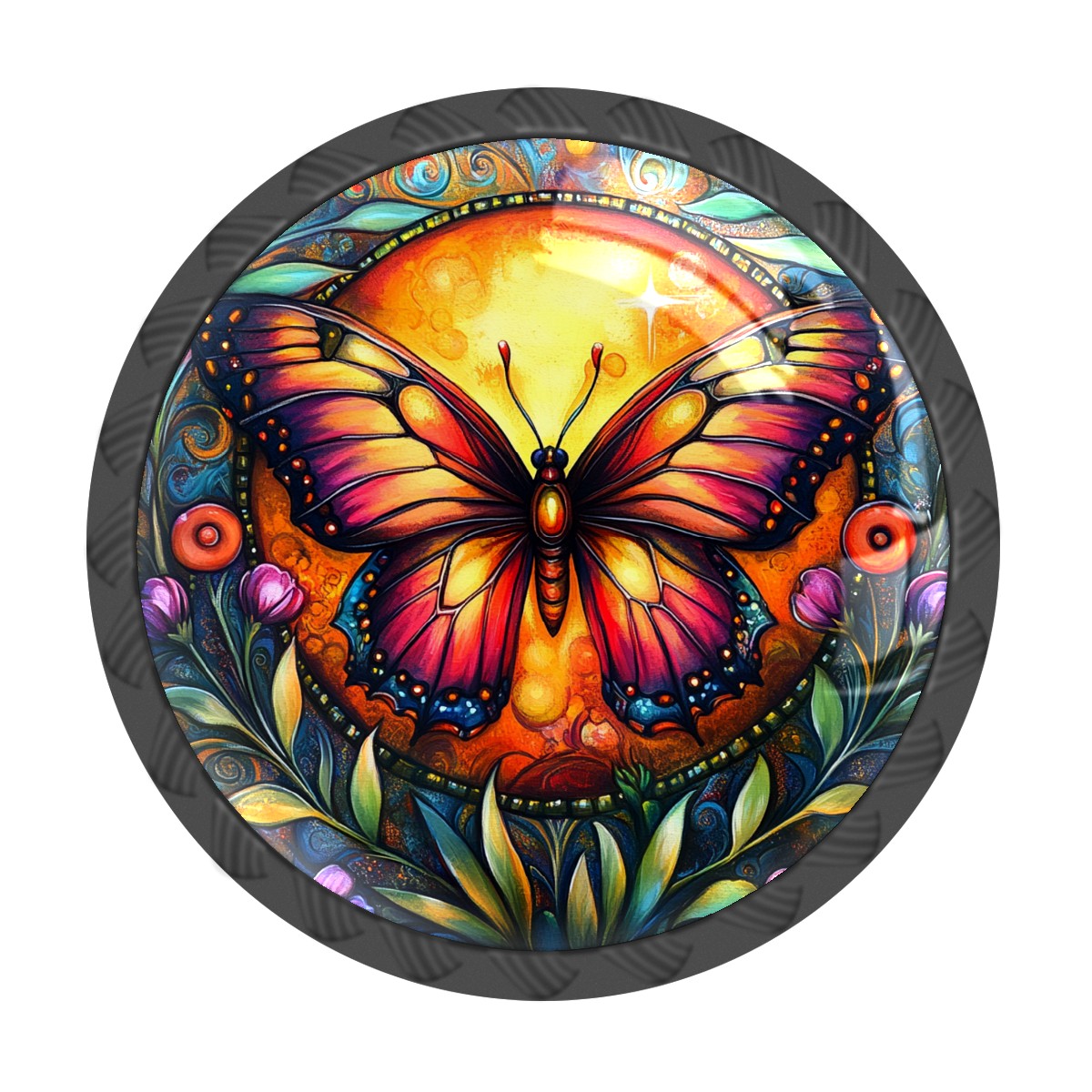 4 Pack Cabinet Knobs Butterfly Flowers Drawer Pulls Crystal Glass Round Knobs Handles for Dressers Drawer Bathroom Kitchen Cupboards Wardrobes Hardware Furniture Knobs