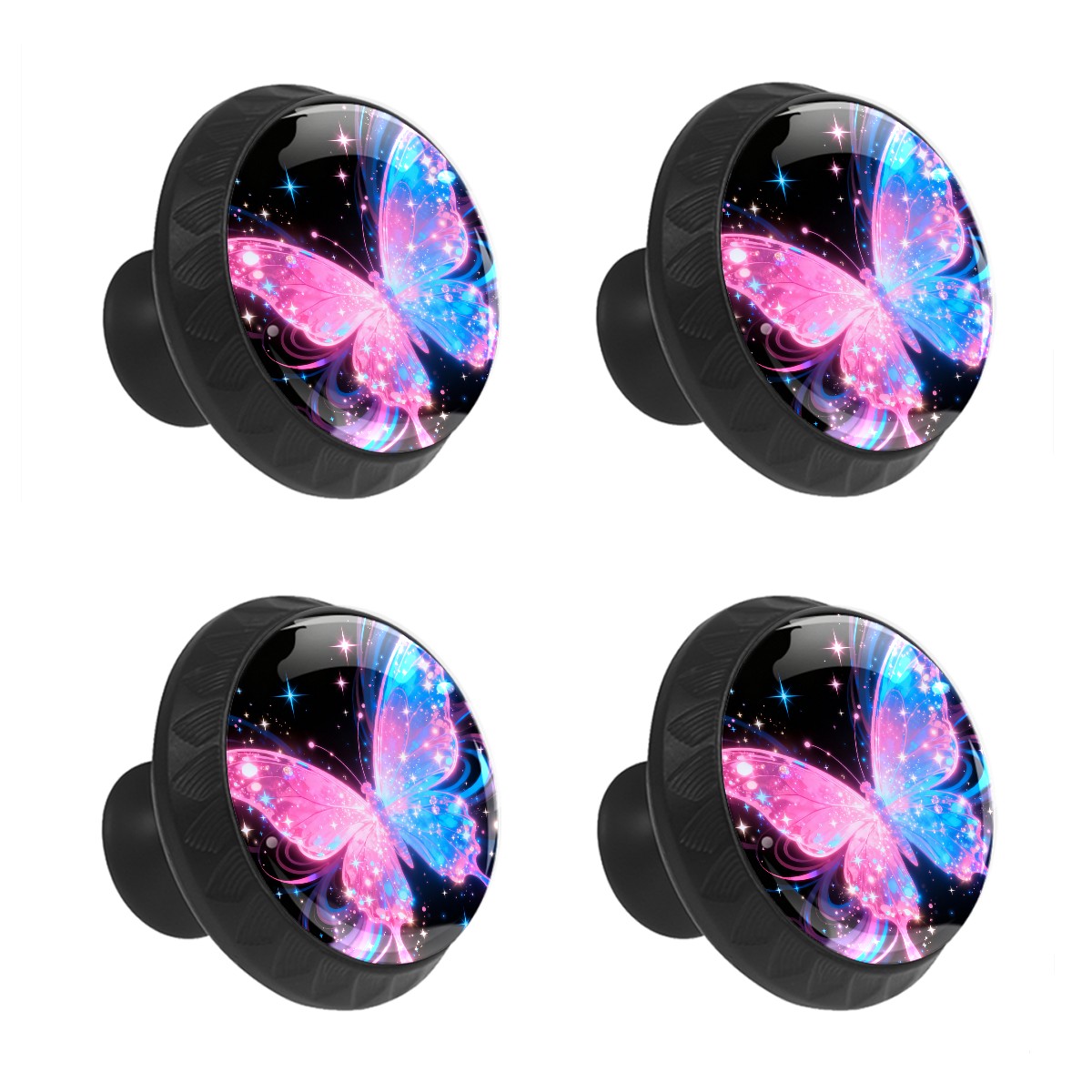 4 Pack Cabinet Knobs Vibrant Butterfly Drawer Pulls Crystal Glass Round Knobs Handles for Dressers Drawer Bathroom Kitchen Cupboards Wardrobes Hardware Furniture Knobs
