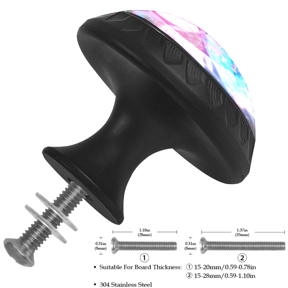 • <p>Decorative Drawer Knobs Pulls Cabinet&nbsp;Handles</p> <p>Package Contents:</p> <p>4 x Cabinet&nbsp; Handles</p> <p>4 x 1.1’’ &nbsp; M ounting Screws &nbsp;</p> <p>4 x 1.37’’ &nbsp;Matching Screws </p> <p>Material:</p> <p>Crafted with a crystal glass surface, combined with ABS plastic and quality materials for durability and aesthetics.</p> <p>Size:</p> <p>Each knob measures 1.37 inches in width by 1.10 inches in height, fitting most standard drawers and cabinet doors.</p> <p>Screw Lengths:</p> <p>Available in two lengths: 1.1 inches and 1.37 inches, to accommodate various board thicknesses.</p> <p>Easy to Install:</p> <p>Each drawer knob comes with a fitting screw, making installation easy without the need for additional accessories.</p> <p>Wide Application:</p> <p>These drawer pulls are versatile for use in various home settings, including cabinets, dressers, drawers, wardrobes, nightstands, closets, bookshelves, kitchens, bathrooms, bedrooms, living rooms, and more,&nbsp; adding consistency and sophistication to your home decor.</p>