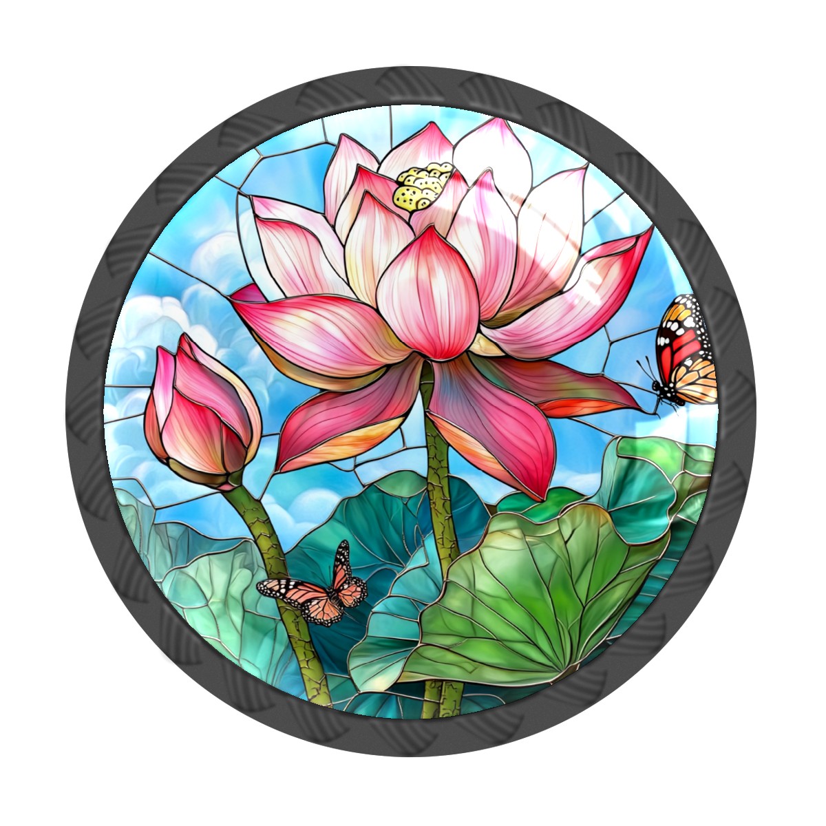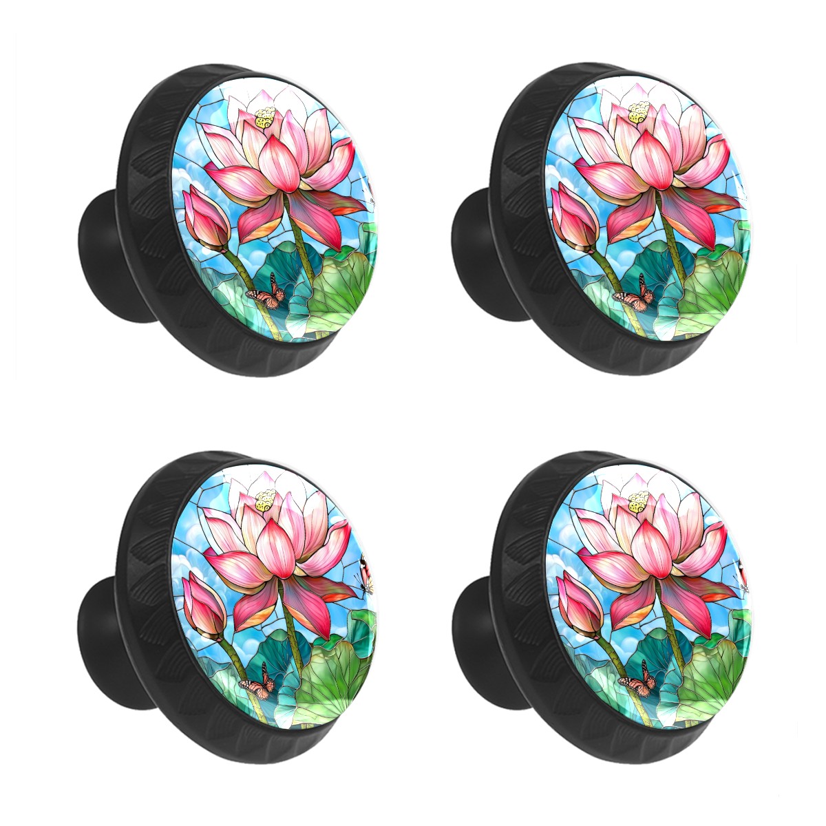 4 Pack Cabinet Knobs Bujihr_Illustration_in_stained_glass_style_with_flowers_buds_an_5832e924-bd7e-4237-96a0-0d3d65a60a66 Drawer Pulls Crystal Glass Round Knobs Handles for Dressers Drawer Bathroom Kitchen Cupboards Wardrobes Hardware Furniture Knobs