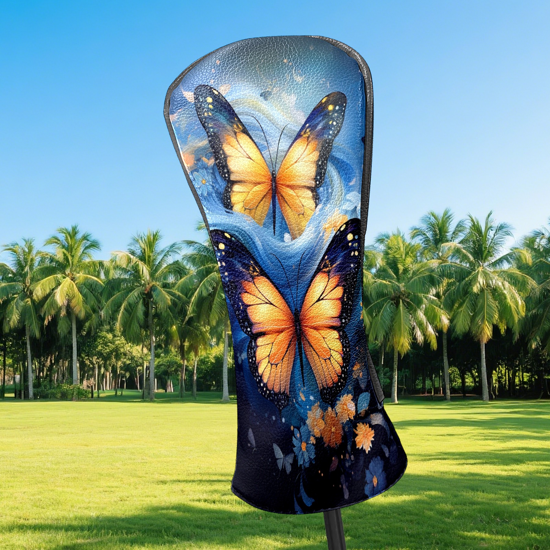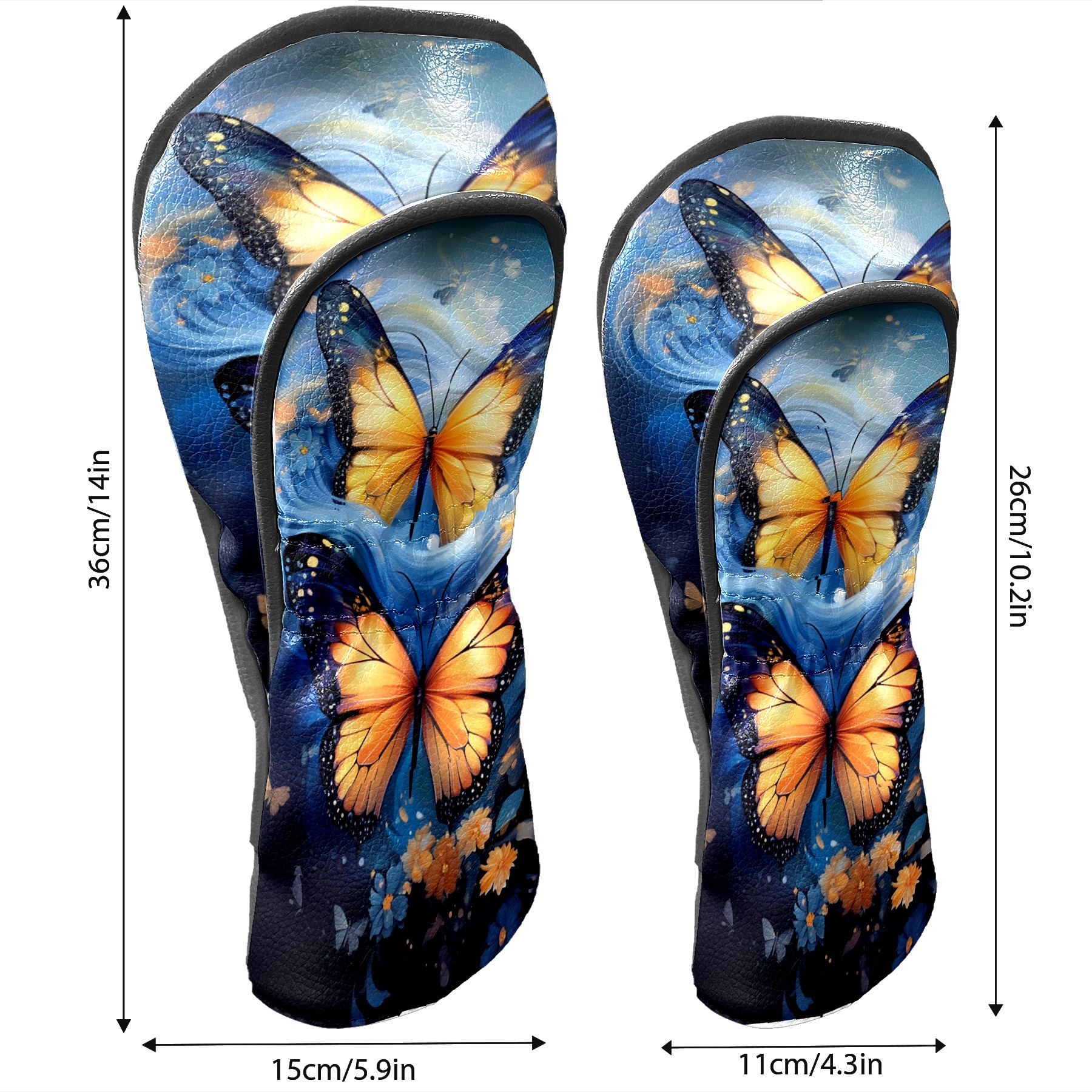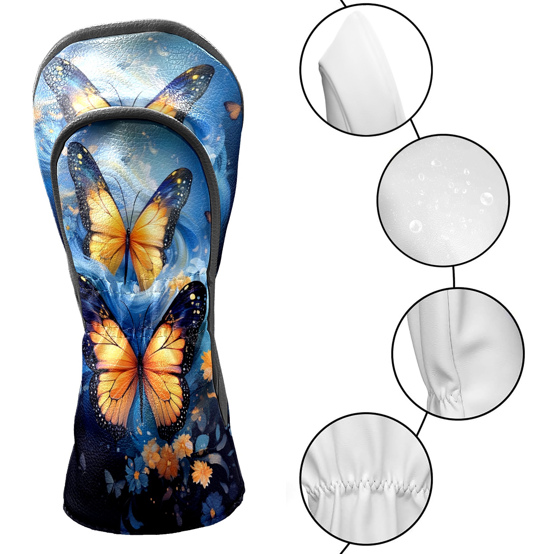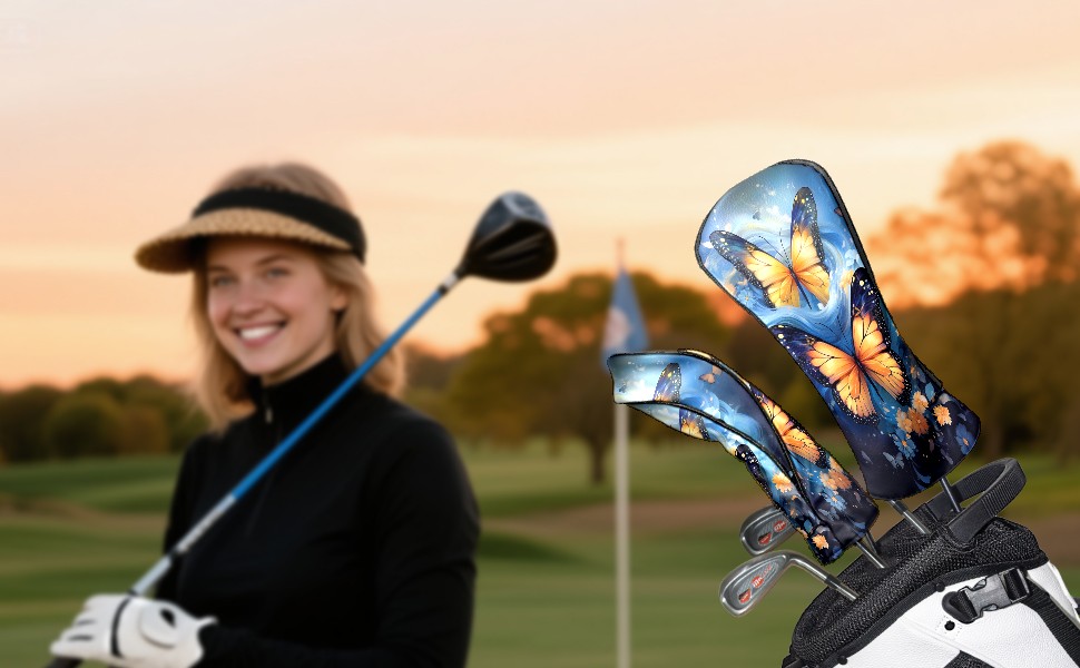 Golf Driver Head Covers Fairway Wood Headcovers, Premium Leather Golf Club Covers with Anti-Scratch Lining 1/3/5 Wood Cover for golf clubs for Women Men (Butterfly (3))