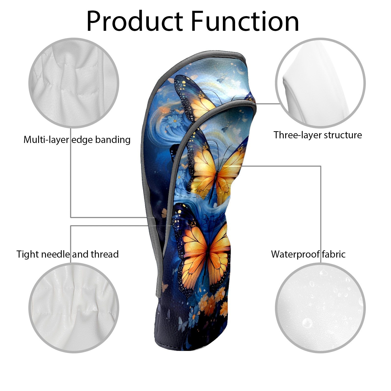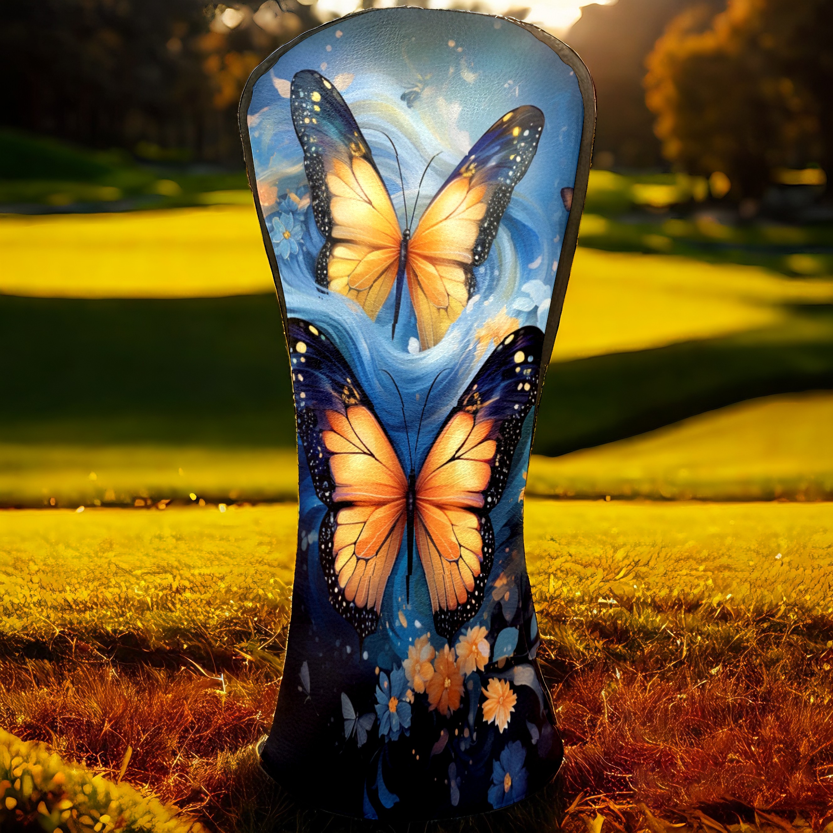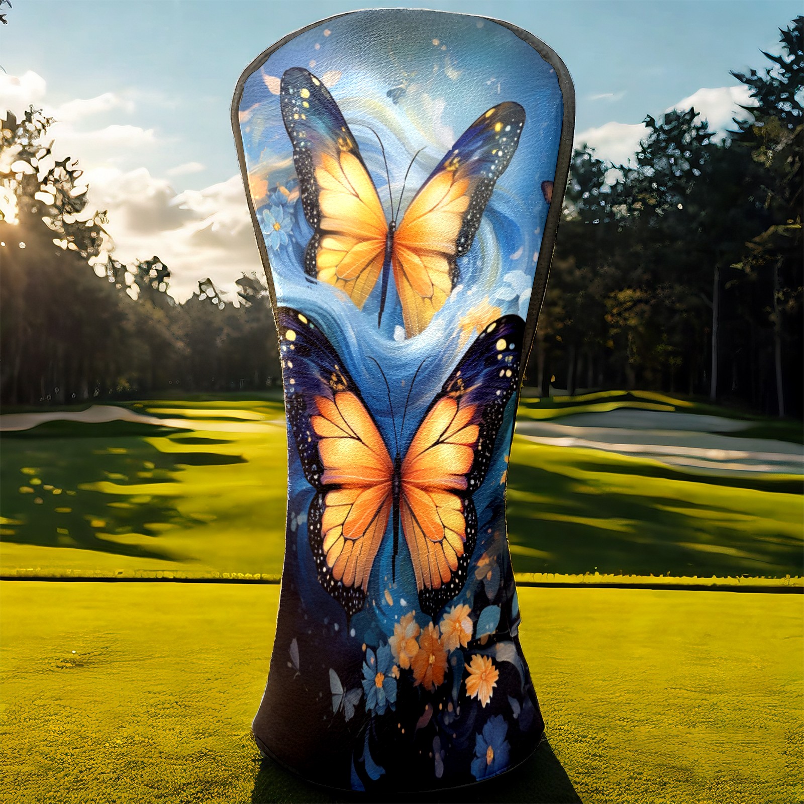 Golf Driver Head Covers Fairway Wood Headcovers, Premium Leather Golf Club Covers with Anti-Scratch Lining 1/3/5 Wood Cover for golf clubs for Women Men (Butterfly (3))