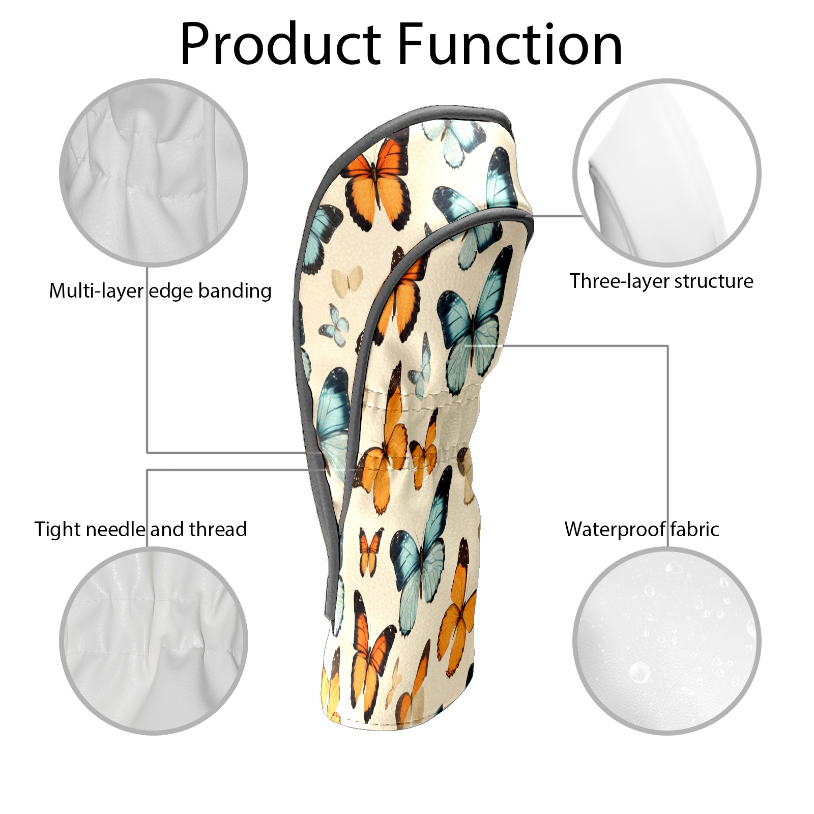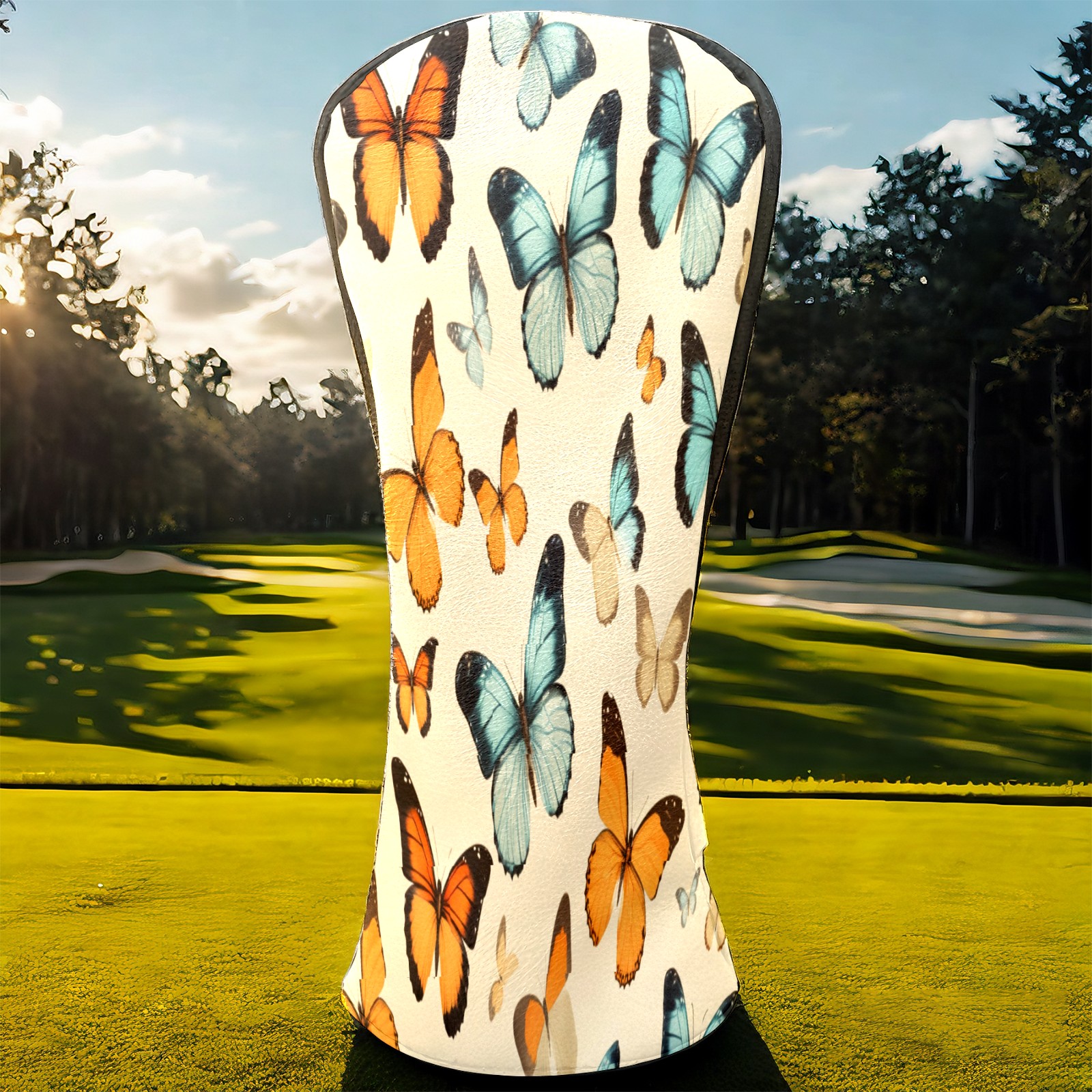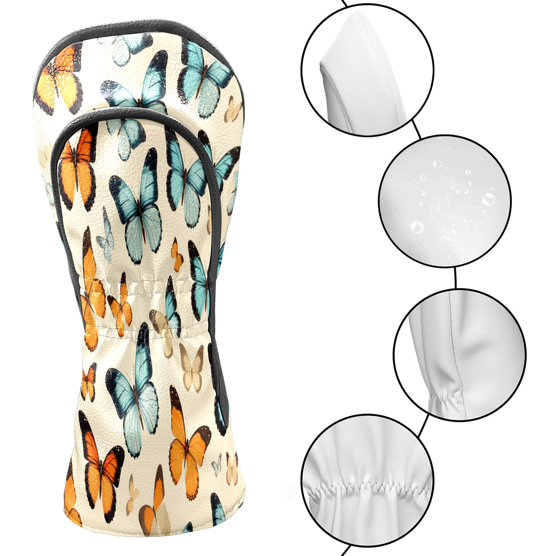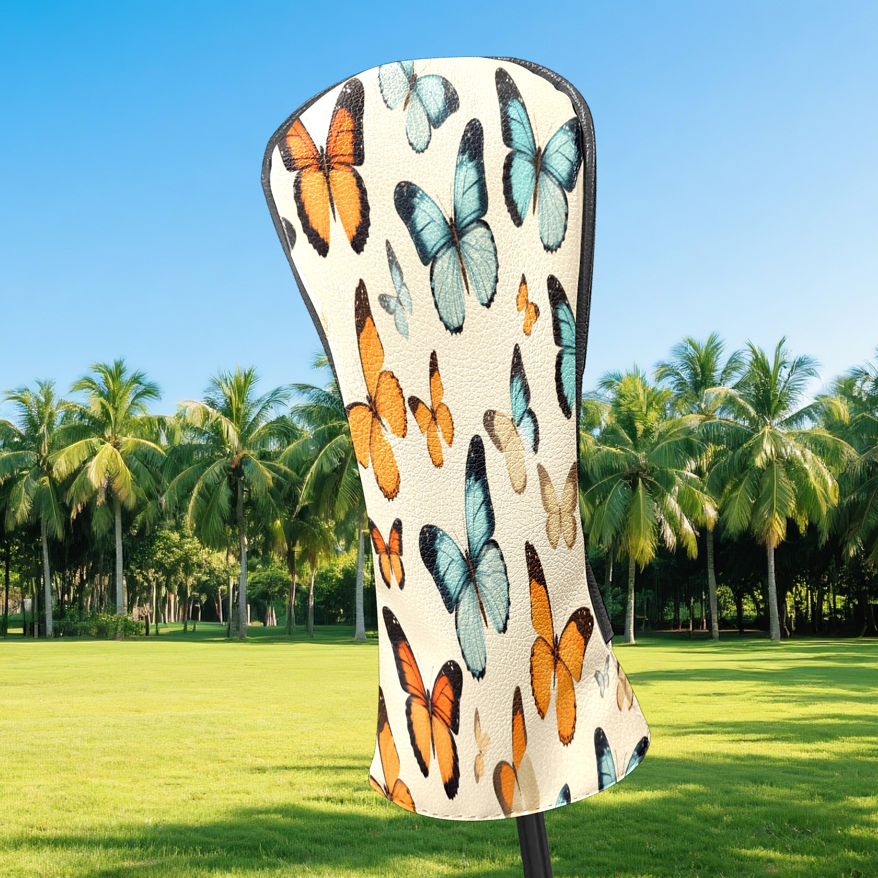 Golf Driver Head Covers Fairway Wood Headcovers, Premium Leather Golf Club Covers with Anti-Scratch Lining 1/3/5 Wood Cover for golf clubs for Women Men (Vintage Tropical Butterfly)
