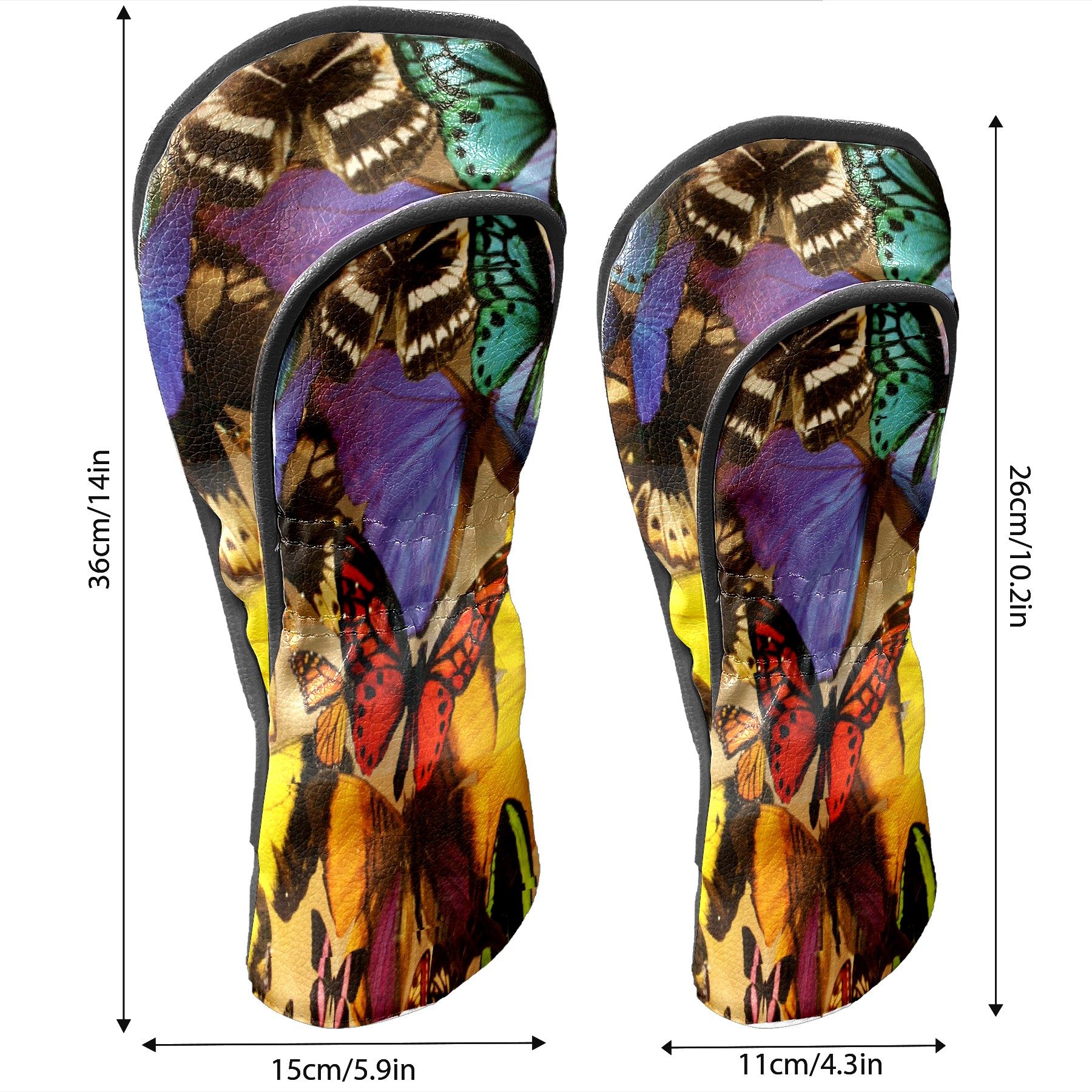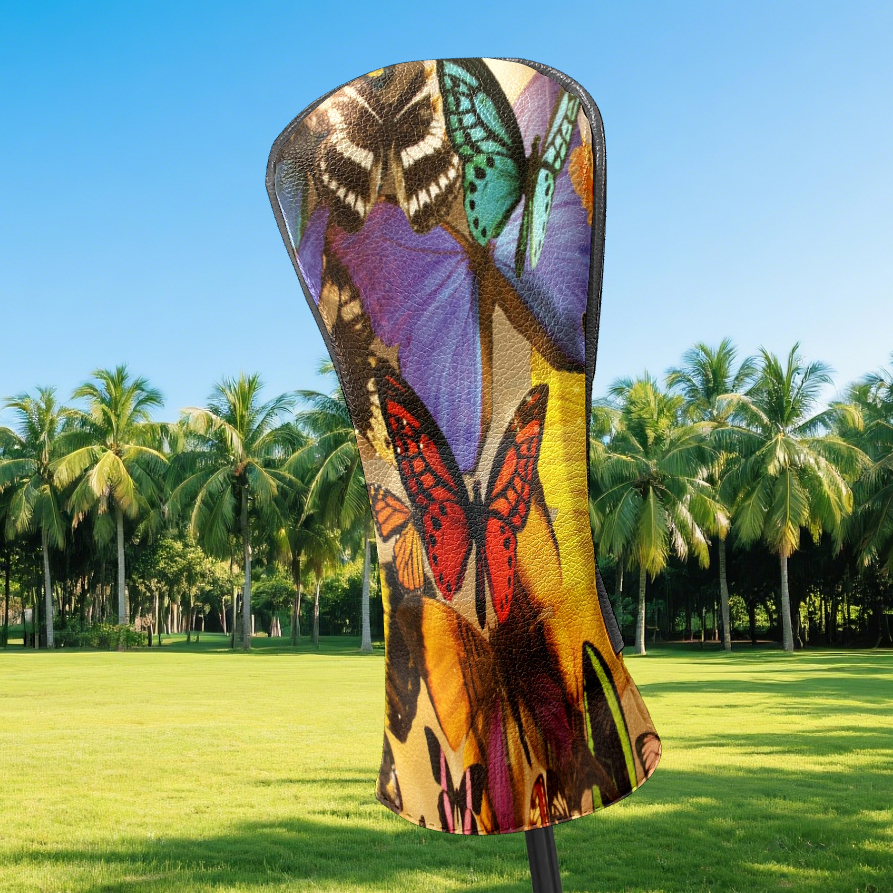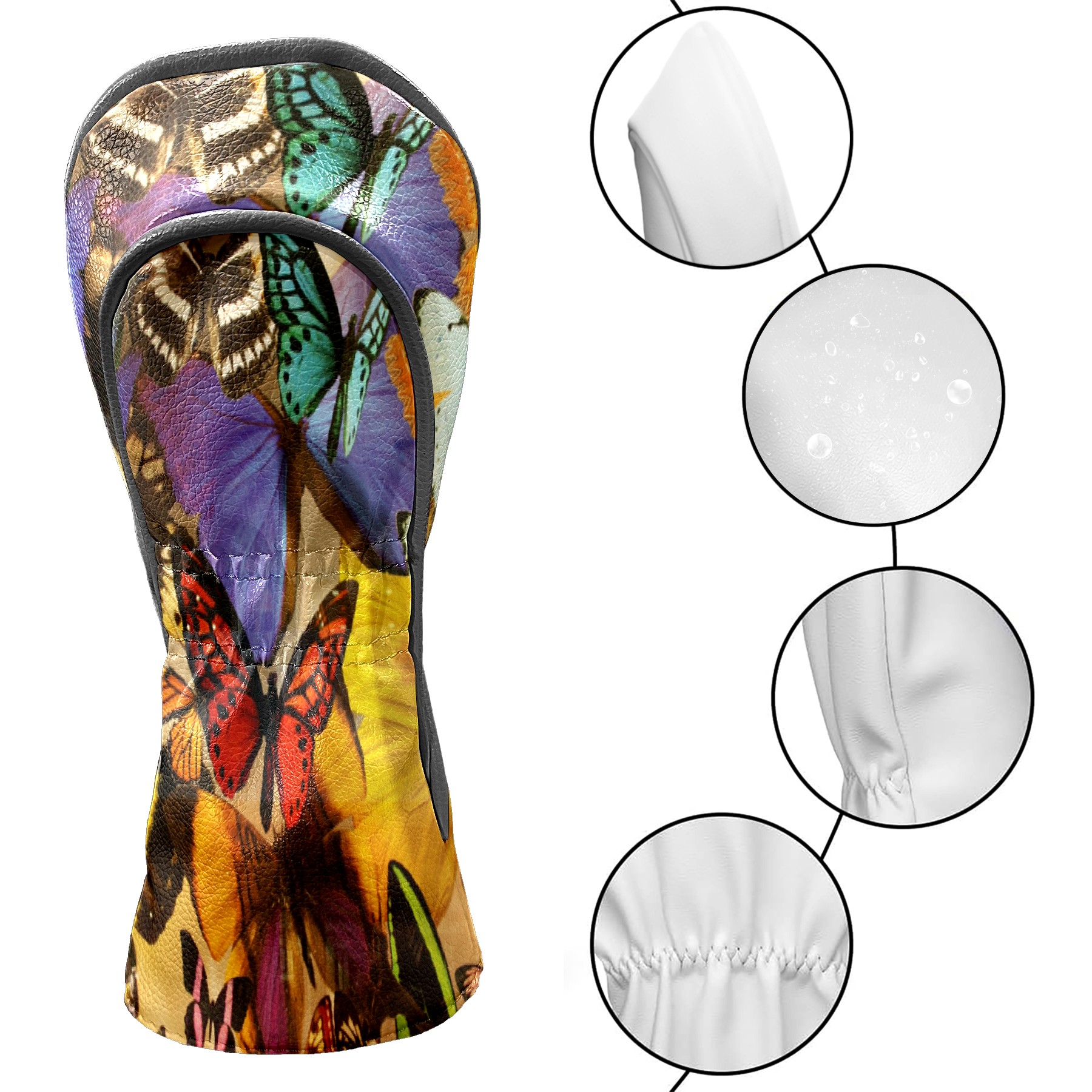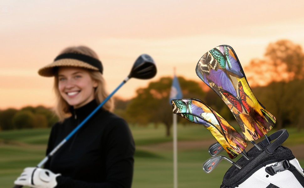 Golf Driver Head Covers Fairway Wood Headcovers, Premium Leather Golf Club Covers with Anti-Scratch Lining 1/3/5 Wood Cover for golf clubs for Women Men (Colorful Tropical Butterfly)