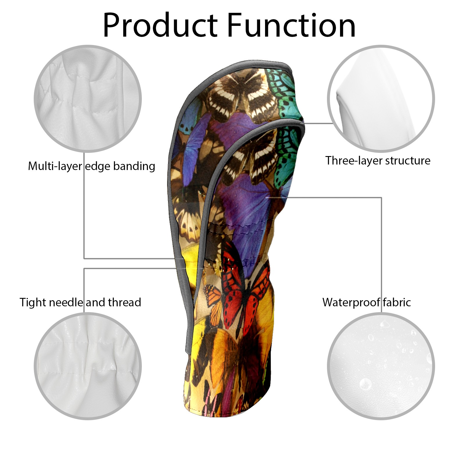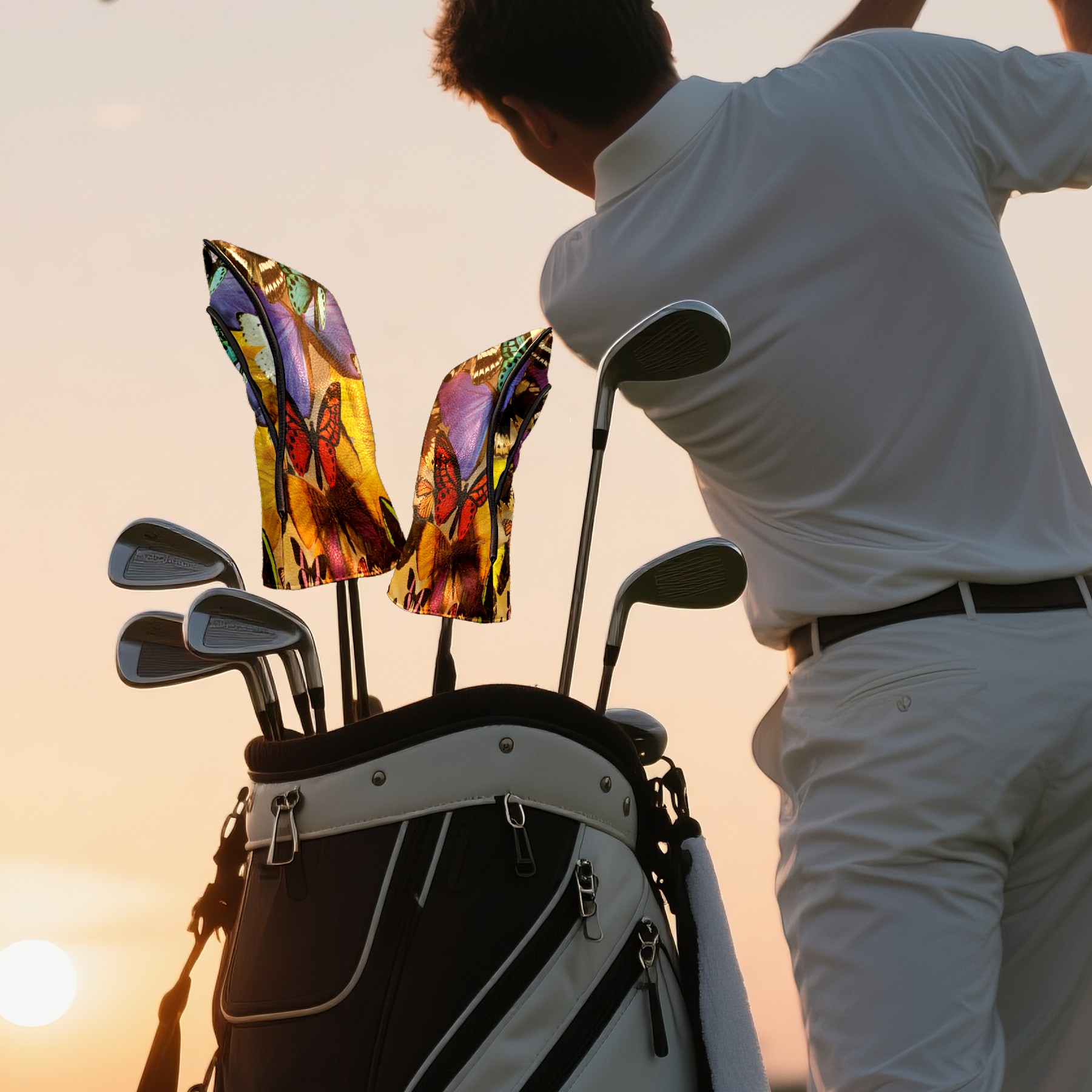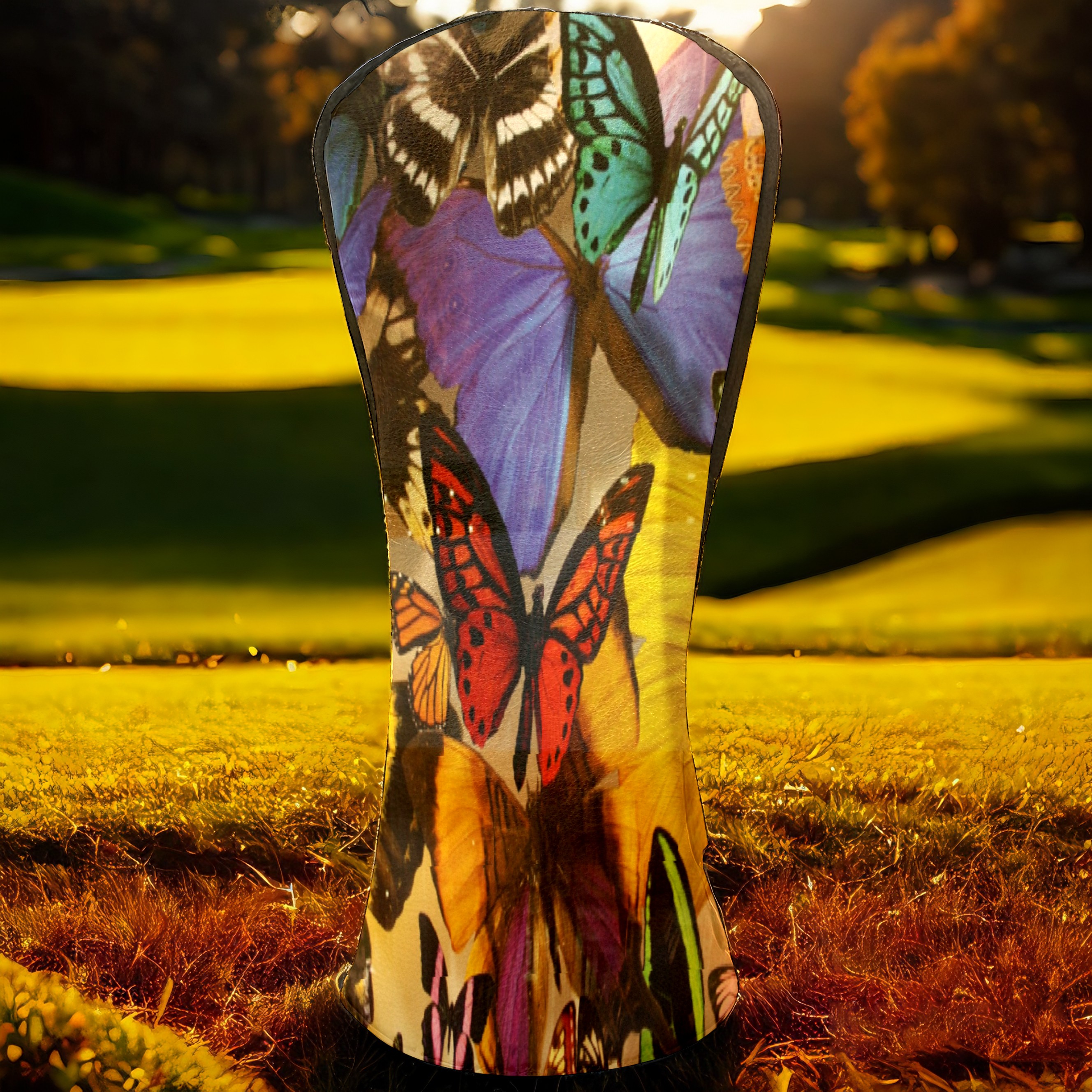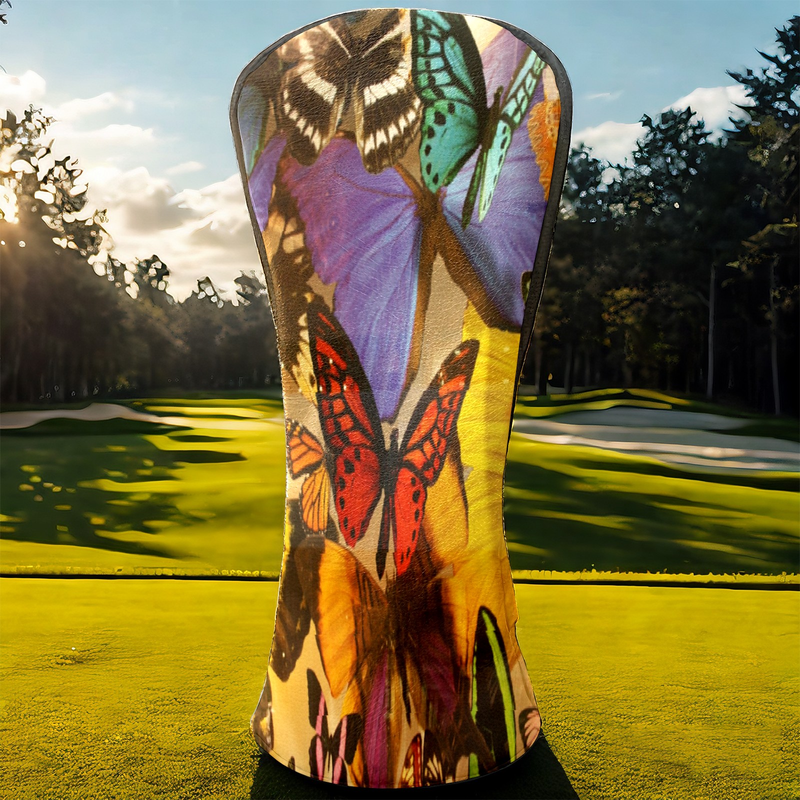 Golf Driver Head Covers Fairway Wood Headcovers, Premium Leather Golf Club Covers with Anti-Scratch Lining 1/3/5 Wood Cover for golf clubs for Women Men (Colorful Tropical Butterfly)