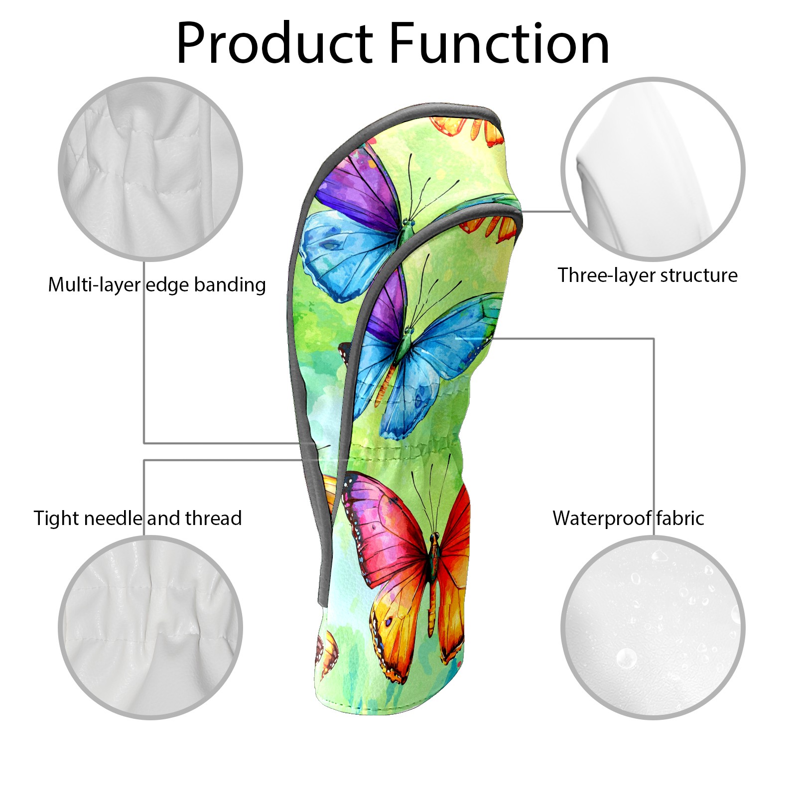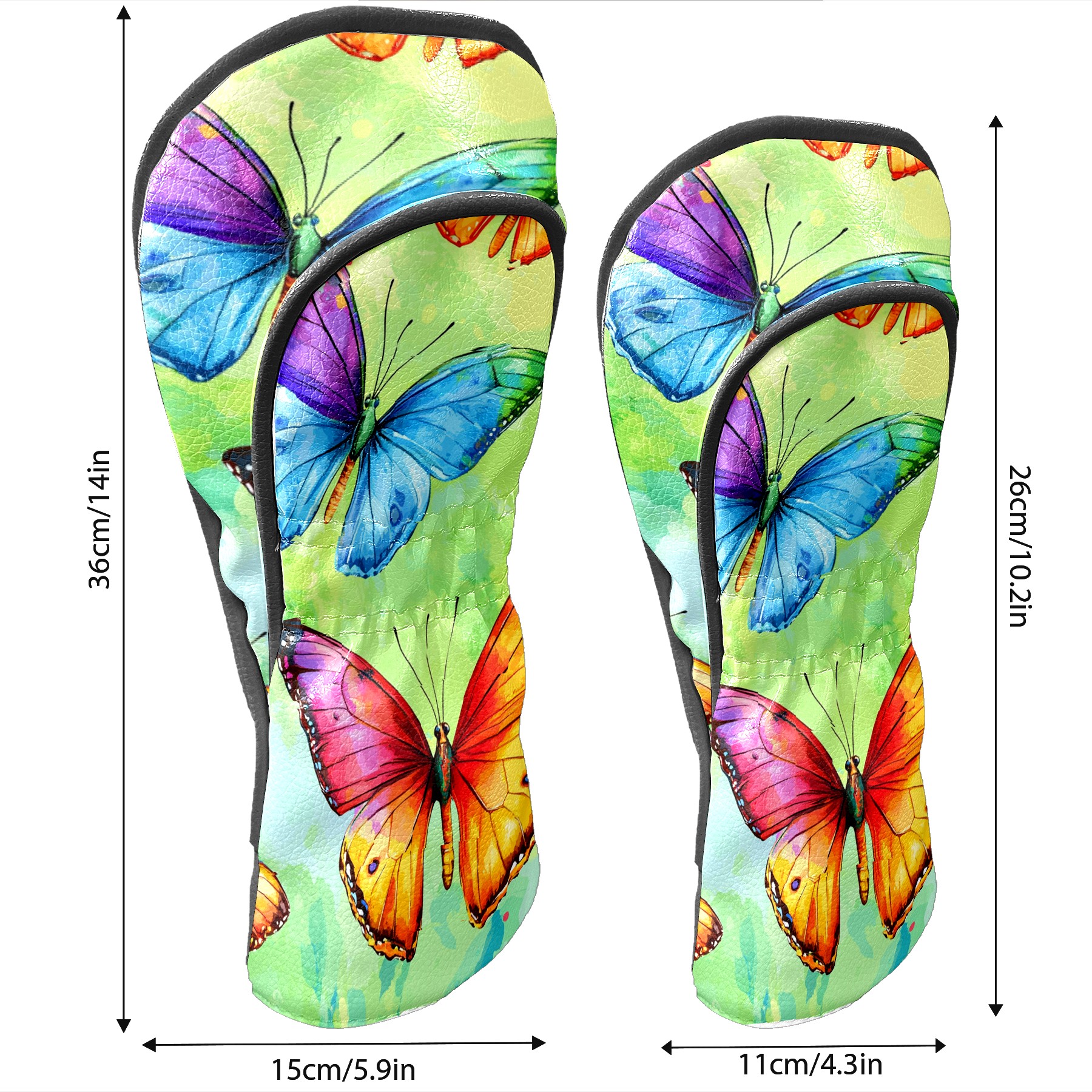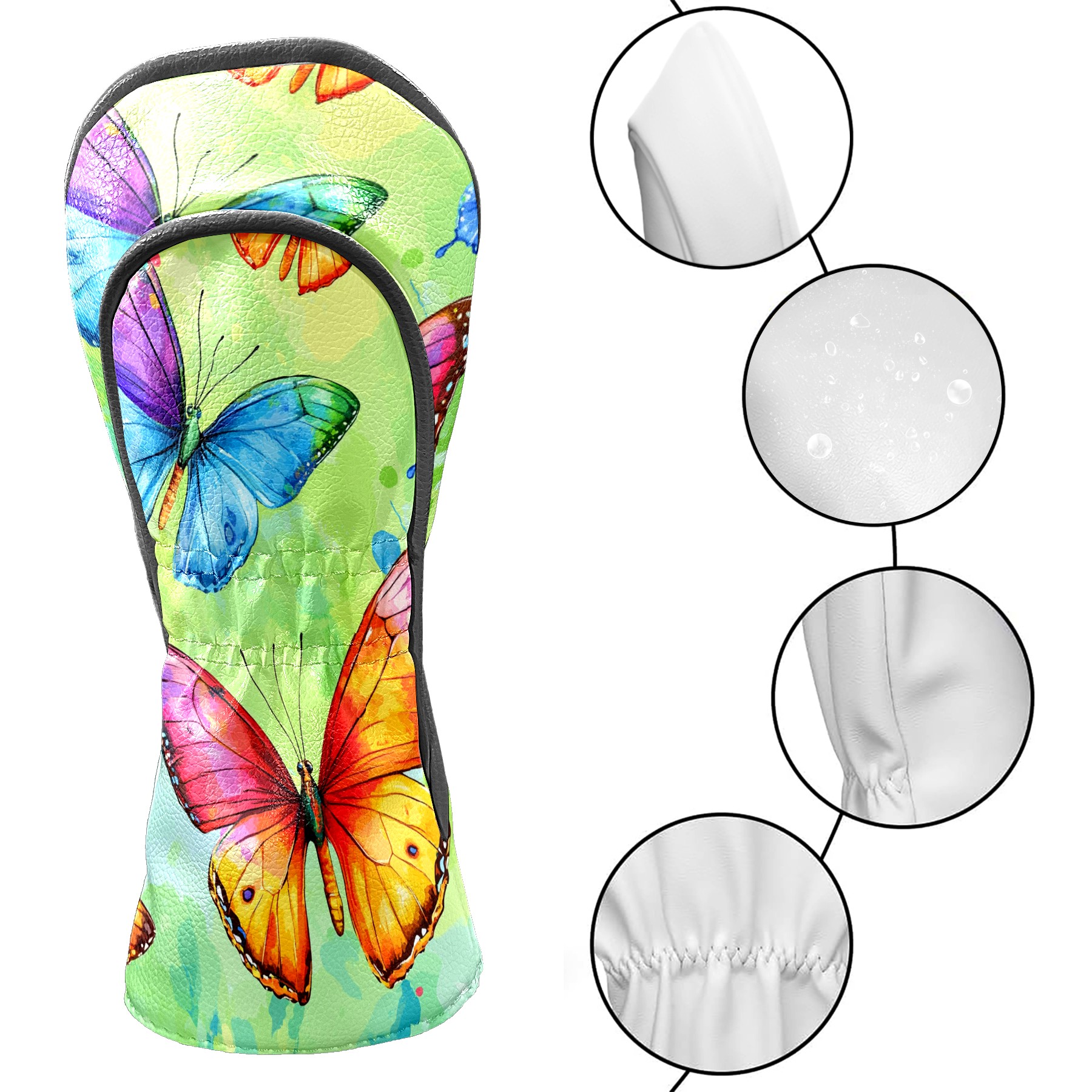 Golf Driver Head Covers Fairway Wood Headcovers, Premium Leather Golf Club Covers with Anti-Scratch Lining 1/3/5 Wood Cover for golf clubs for Women Men (Colorful Butterfly)