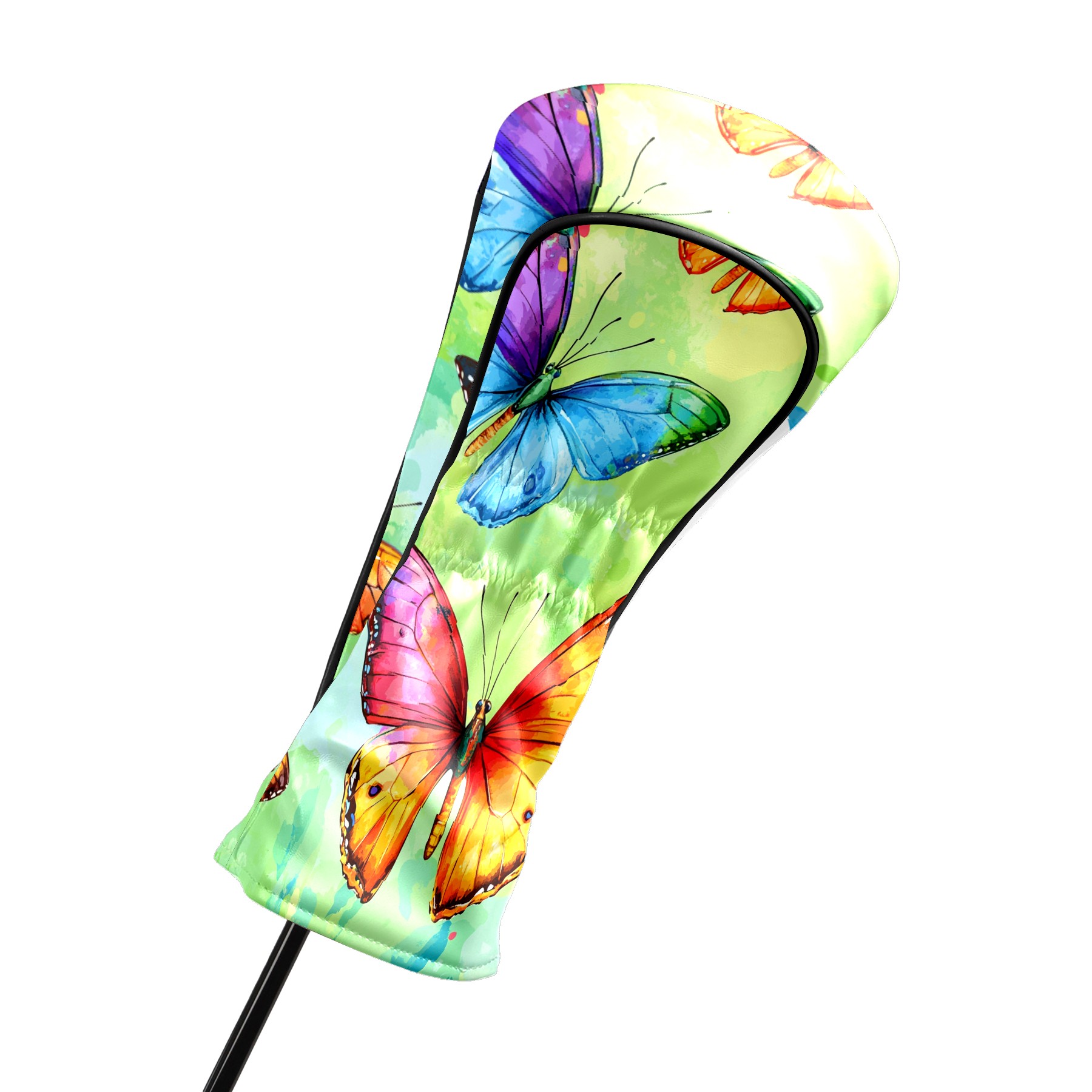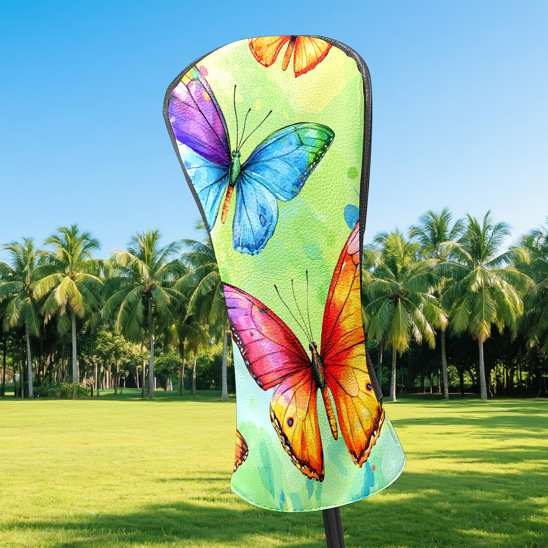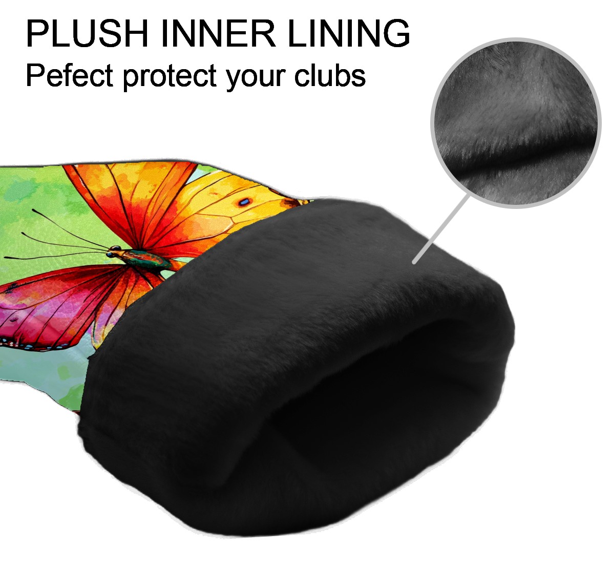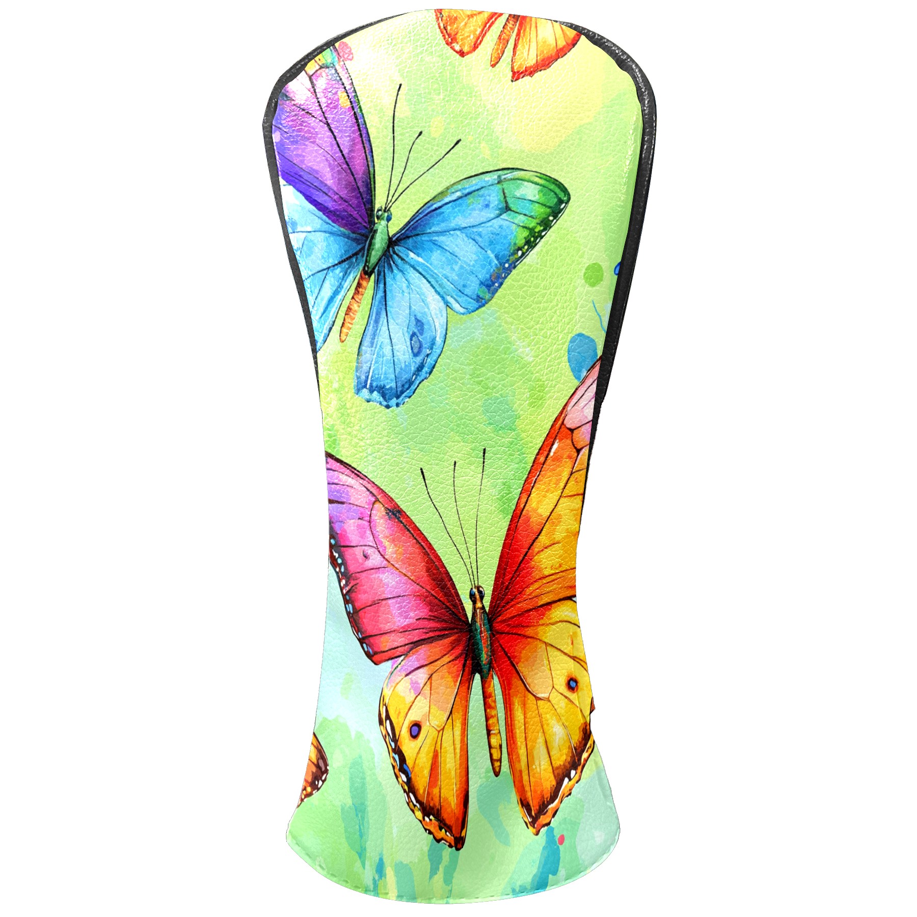 Golf Driver Head Covers Fairway Wood Headcovers, Premium Leather Golf Club Covers with Anti-Scratch Lining 1/3/5 Wood Cover for golf clubs for Women Men (Colorful Butterfly)