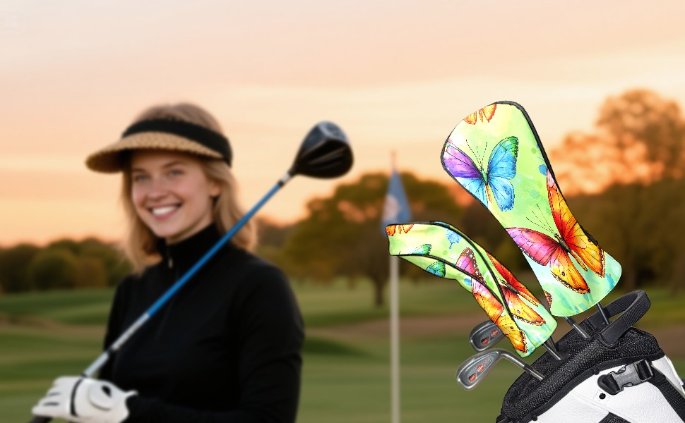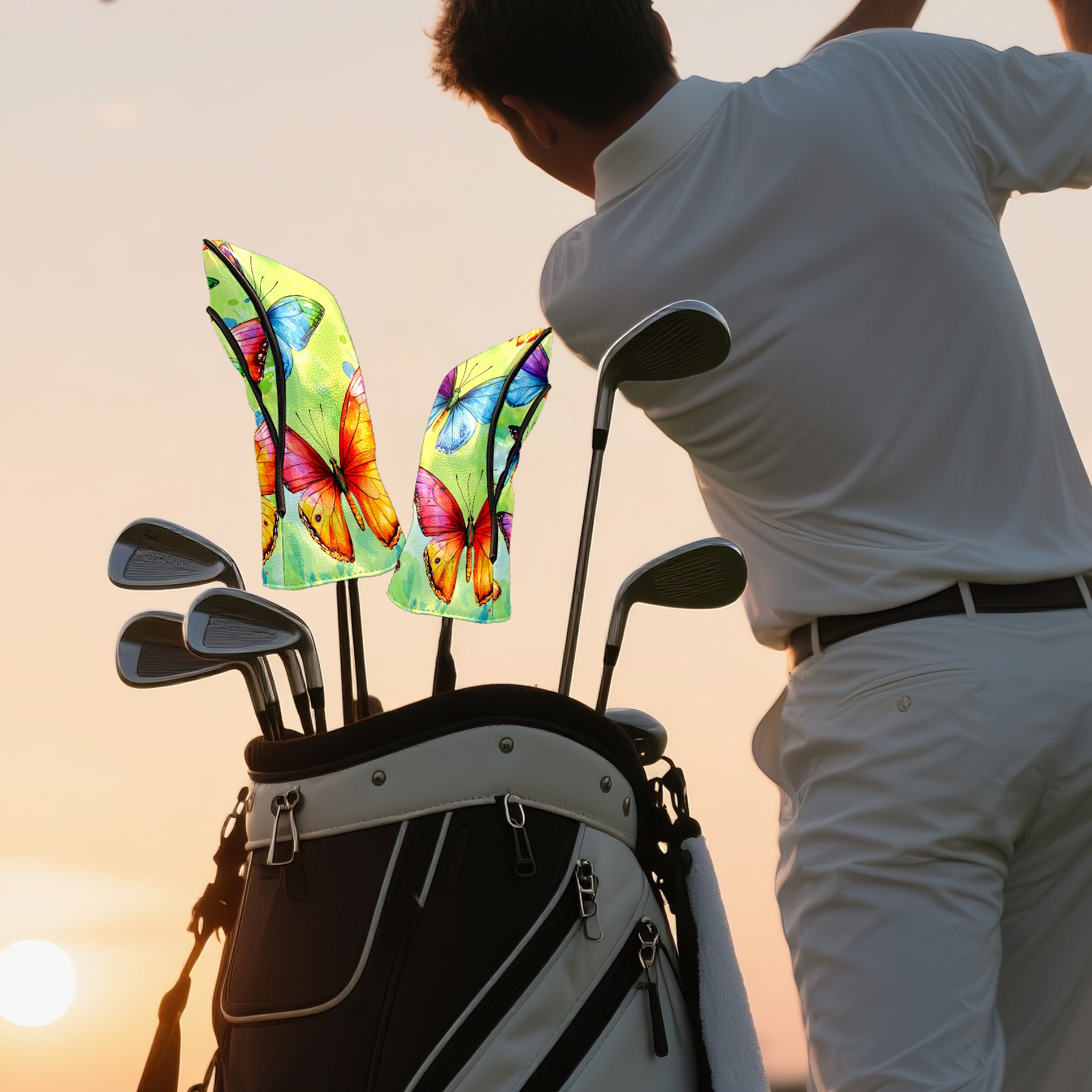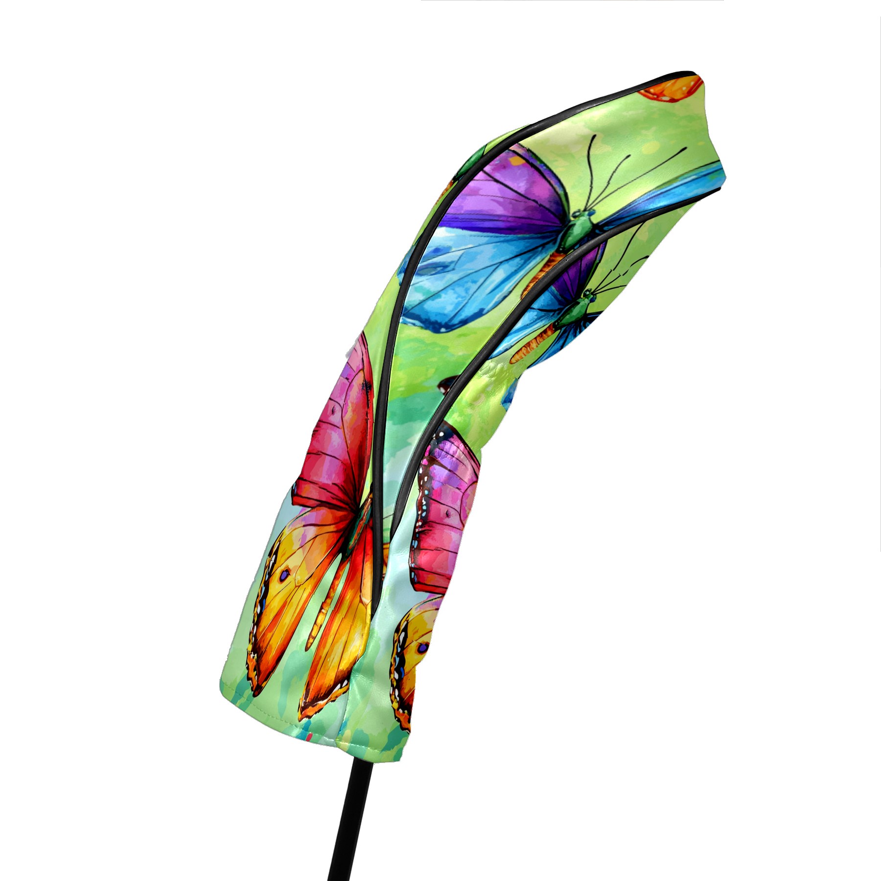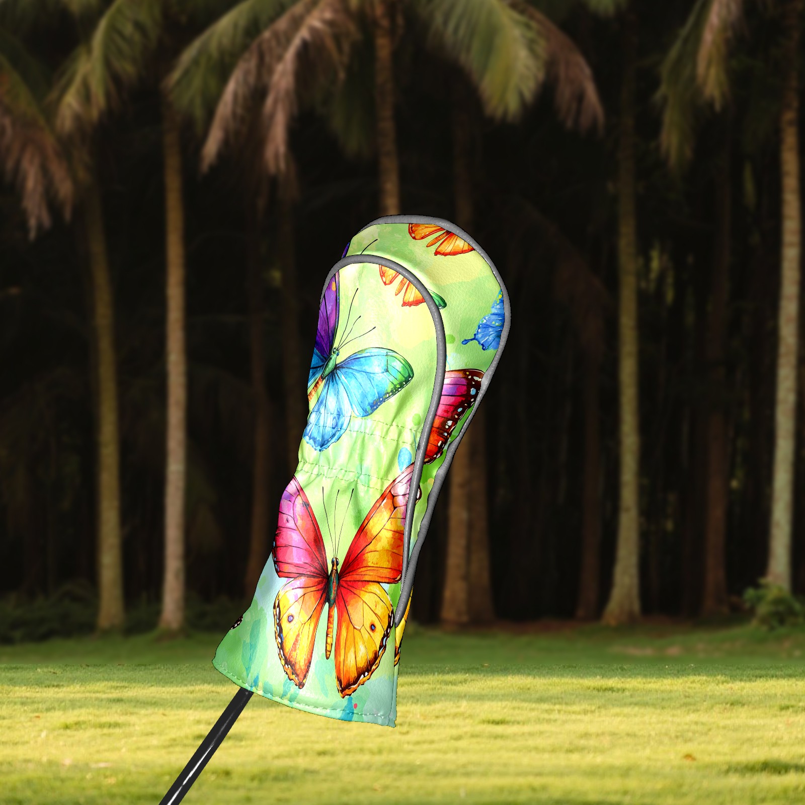 Golf Driver Head Covers Fairway Wood Headcovers, Premium Leather Golf Club Covers with Anti-Scratch Lining 1/3/5 Wood Cover for golf clubs for Women Men (Colorful Butterfly)