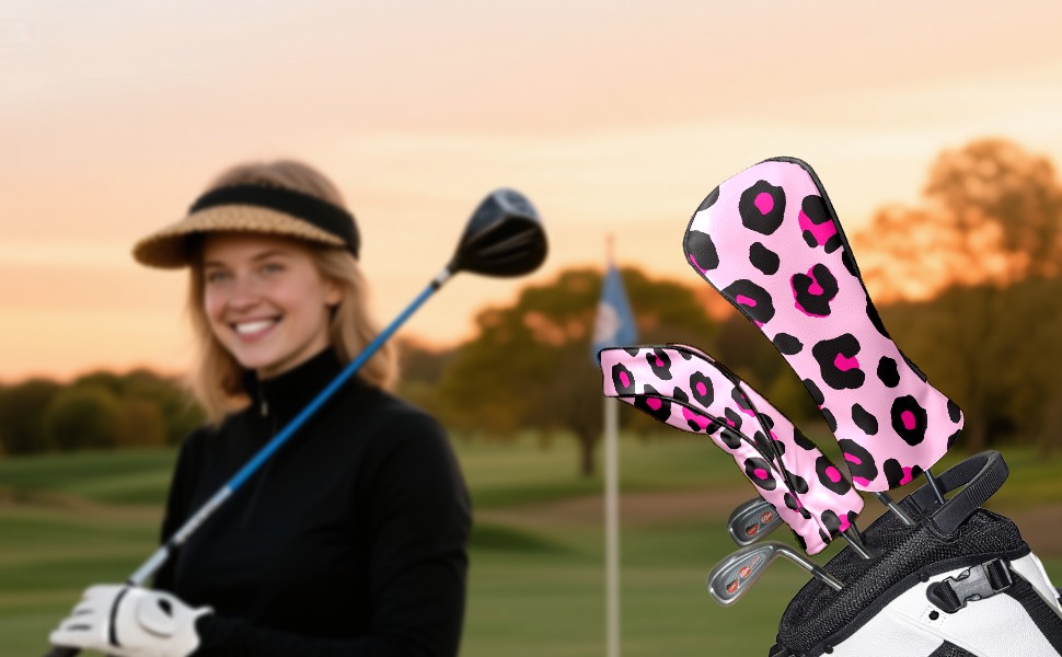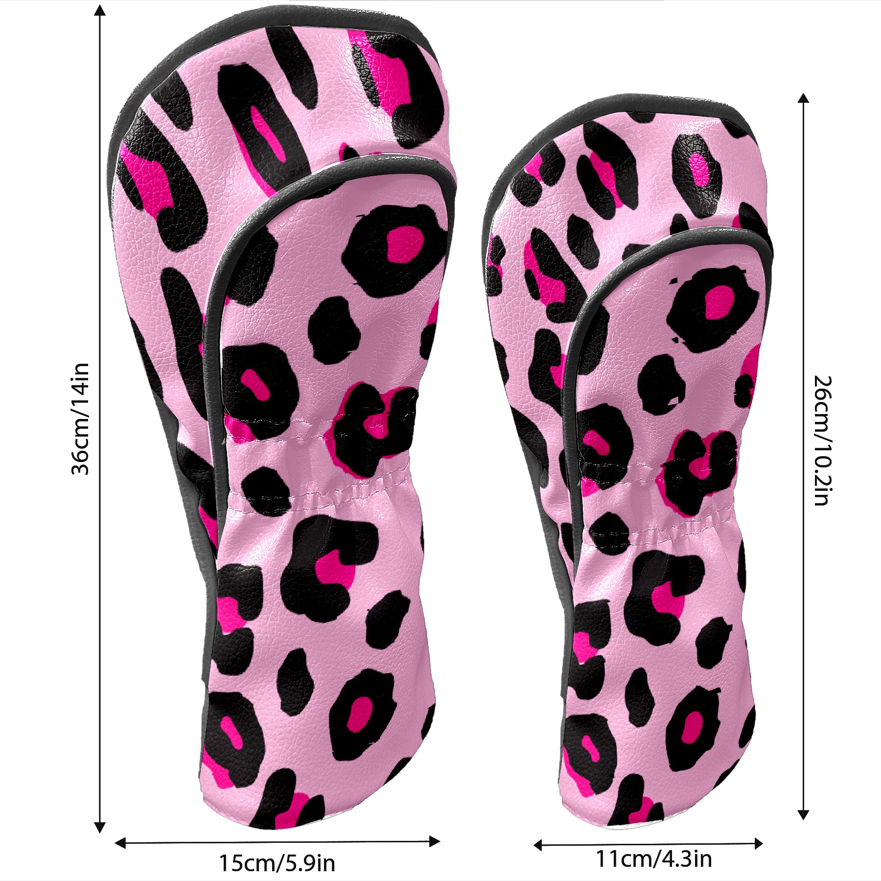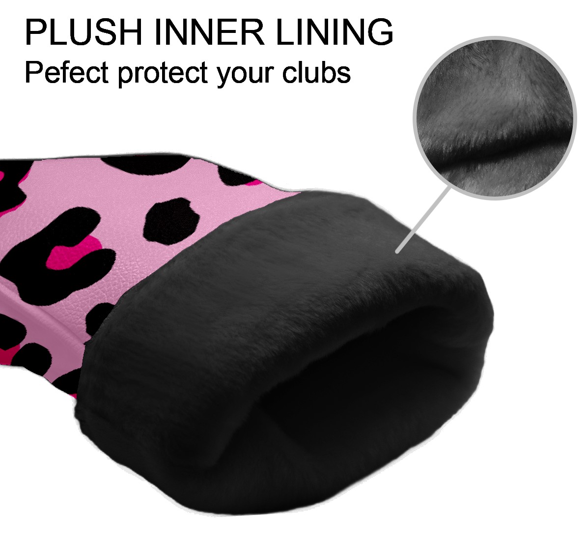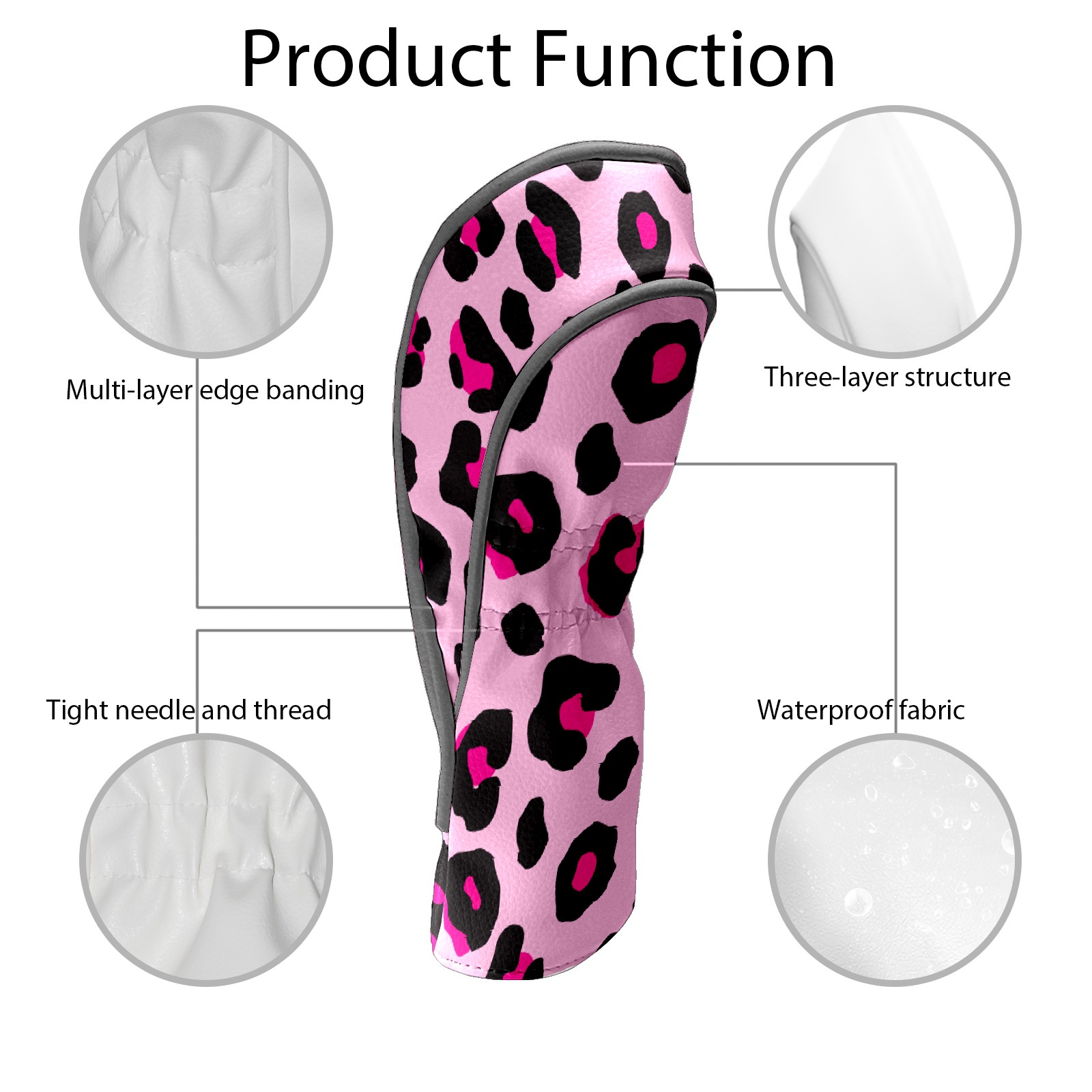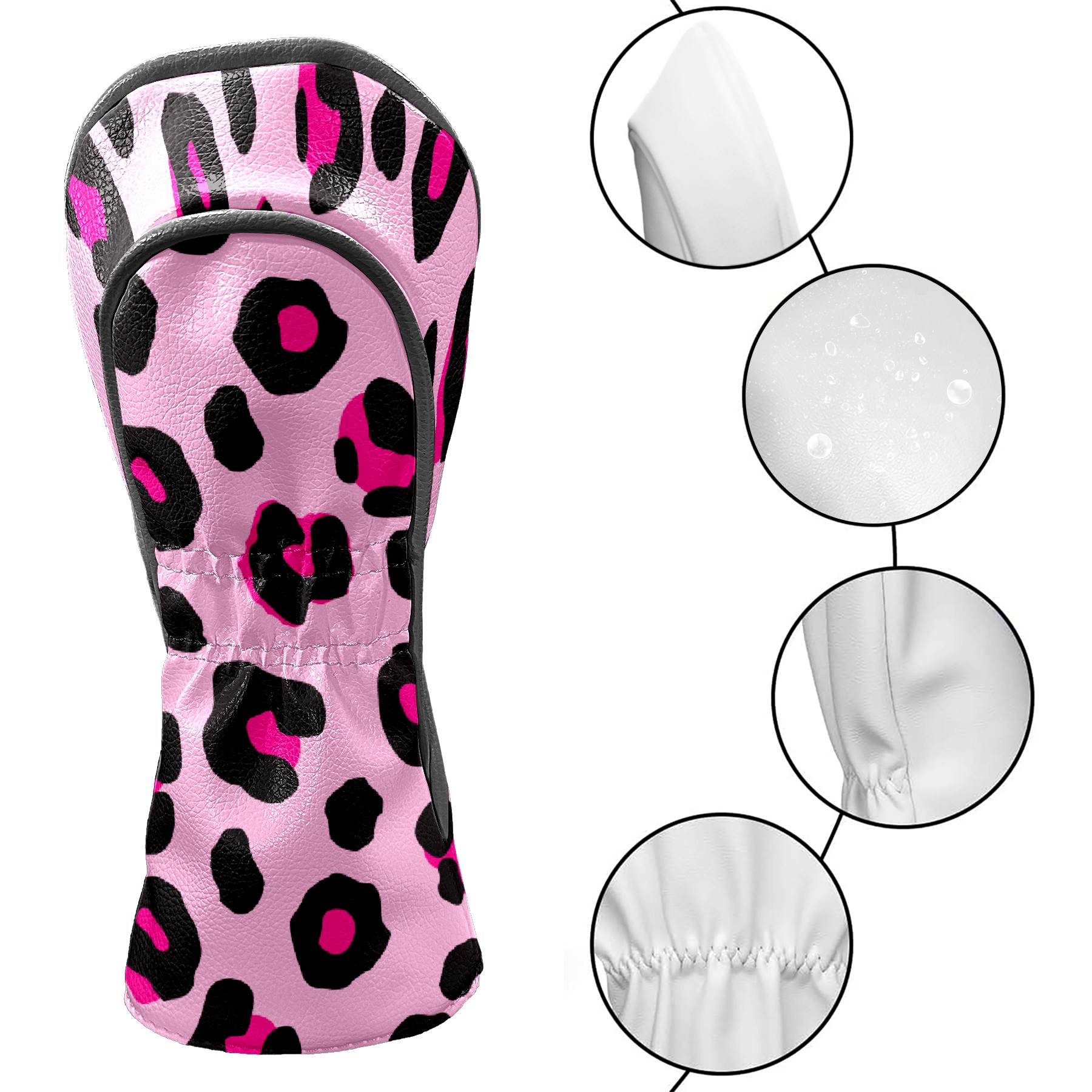 Golf Driver Head Covers Fairway Wood Headcovers, Premium Leather Golf Club Covers with Anti-Scratch Lining 1/3/5 Wood Cover for golf clubs for Women Men (Pink Leopard Skin Texture)
