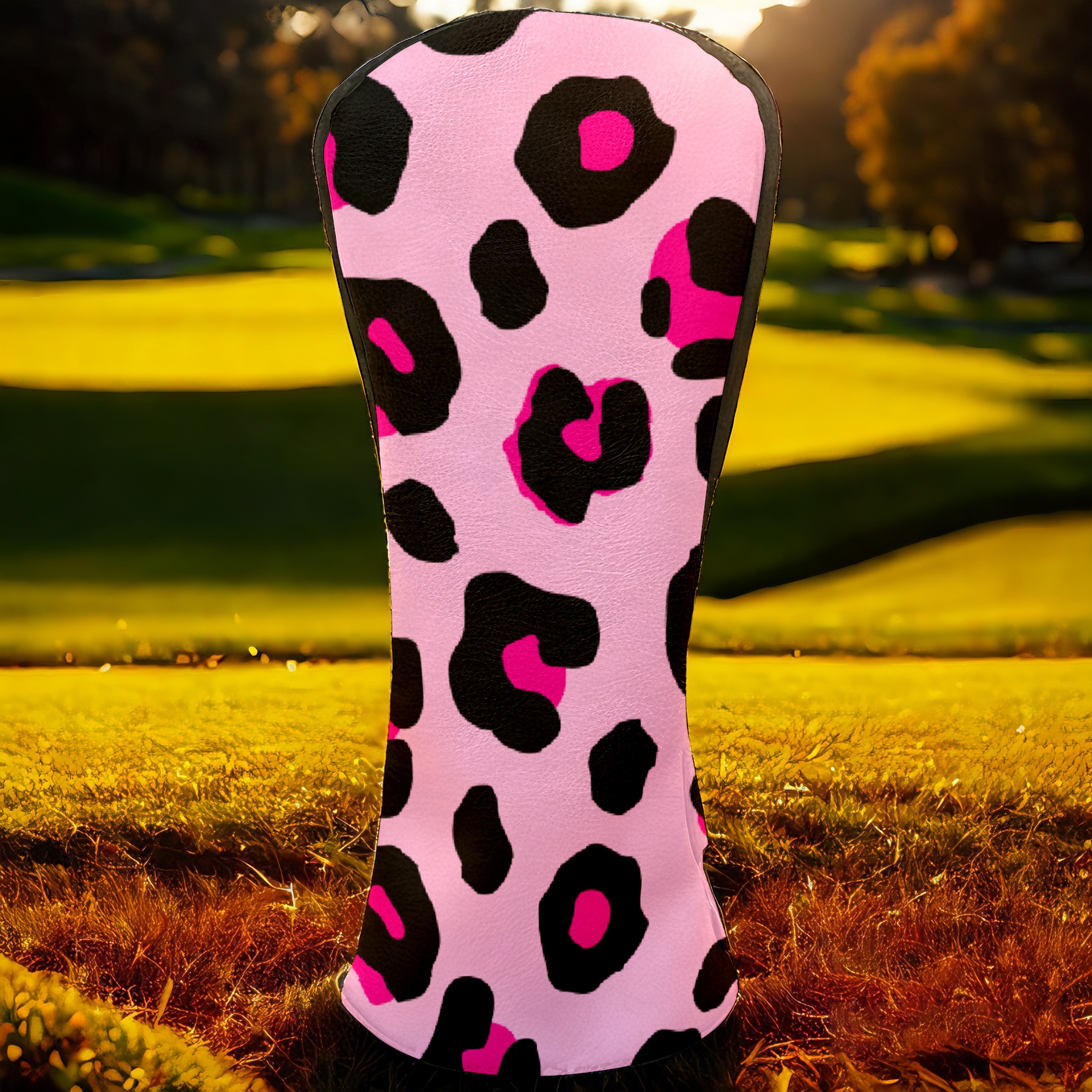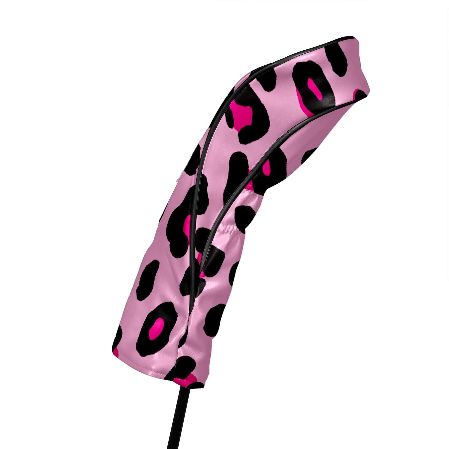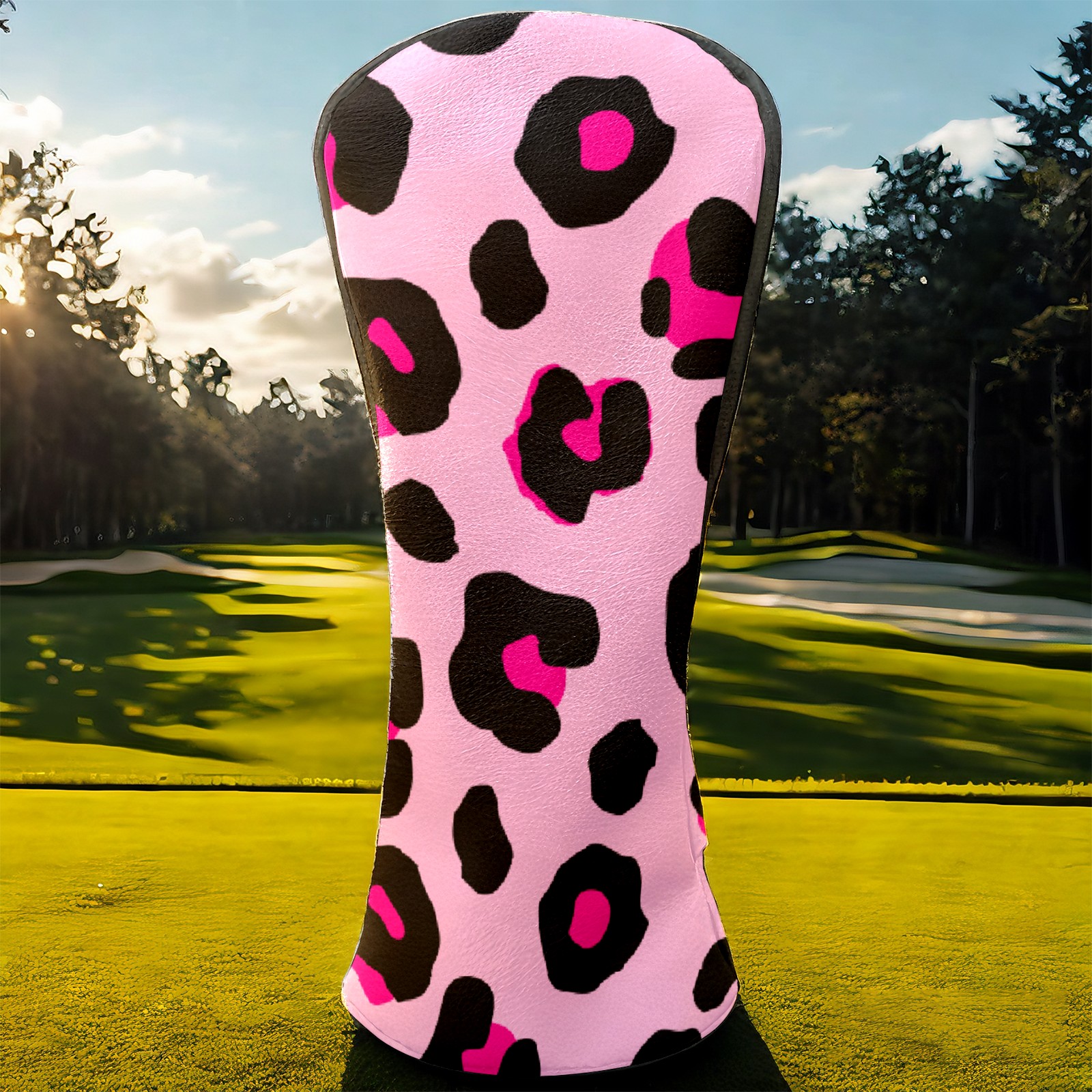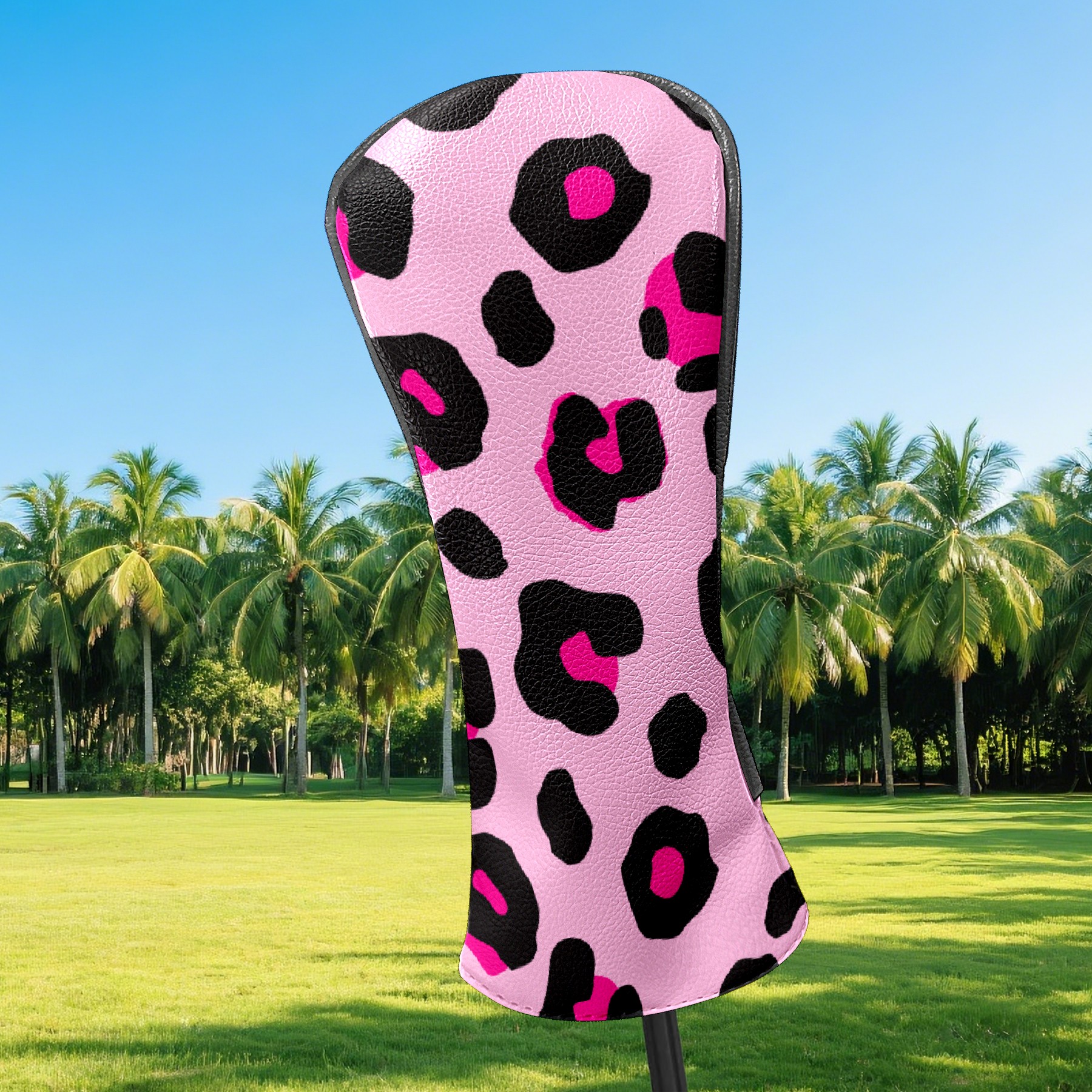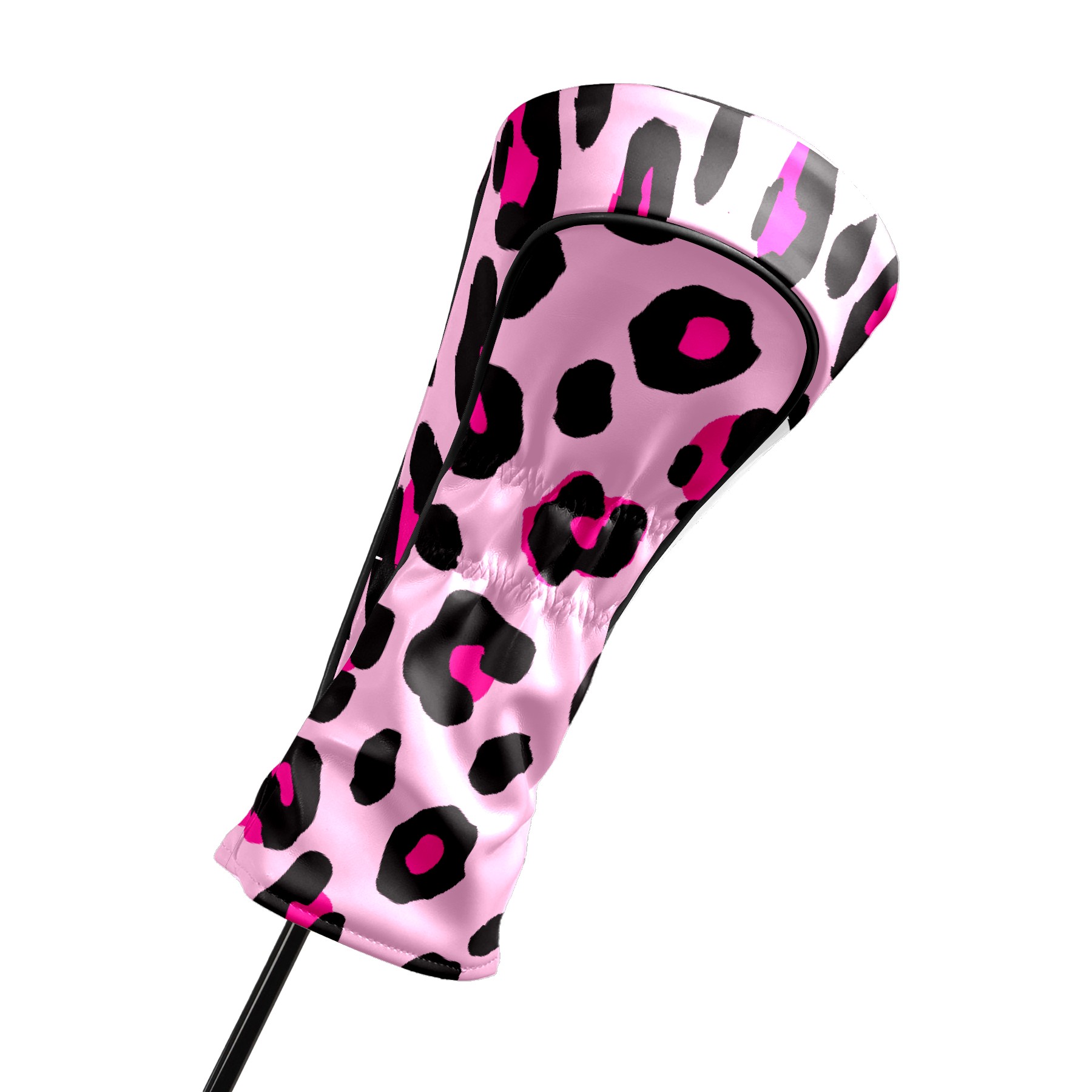 Golf Driver Head Covers Fairway Wood Headcovers, Premium Leather Golf Club Covers with Anti-Scratch Lining 1/3/5 Wood Cover for golf clubs for Women Men (Pink Leopard Skin Texture)