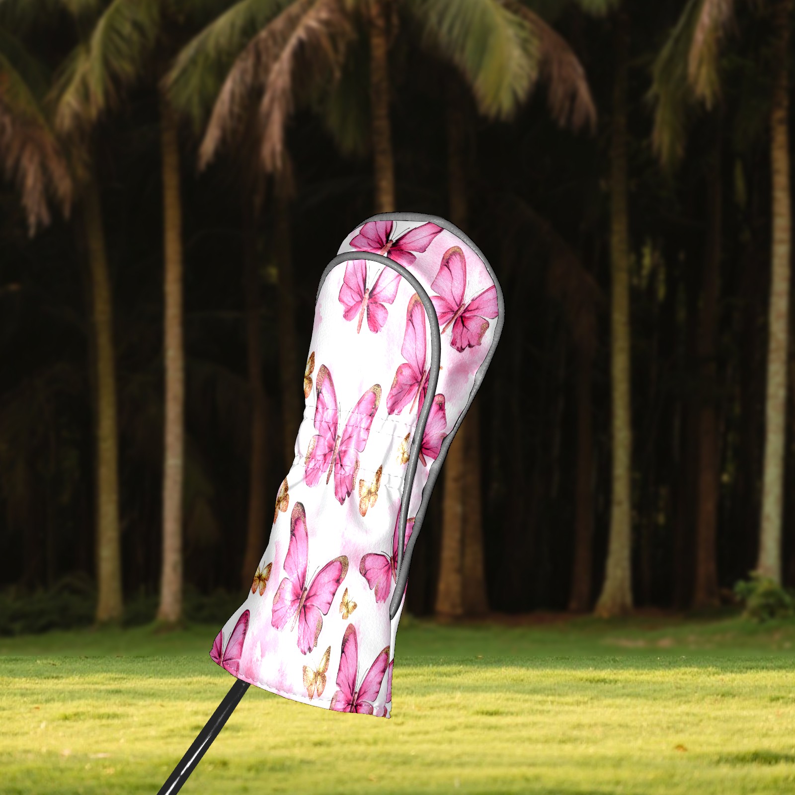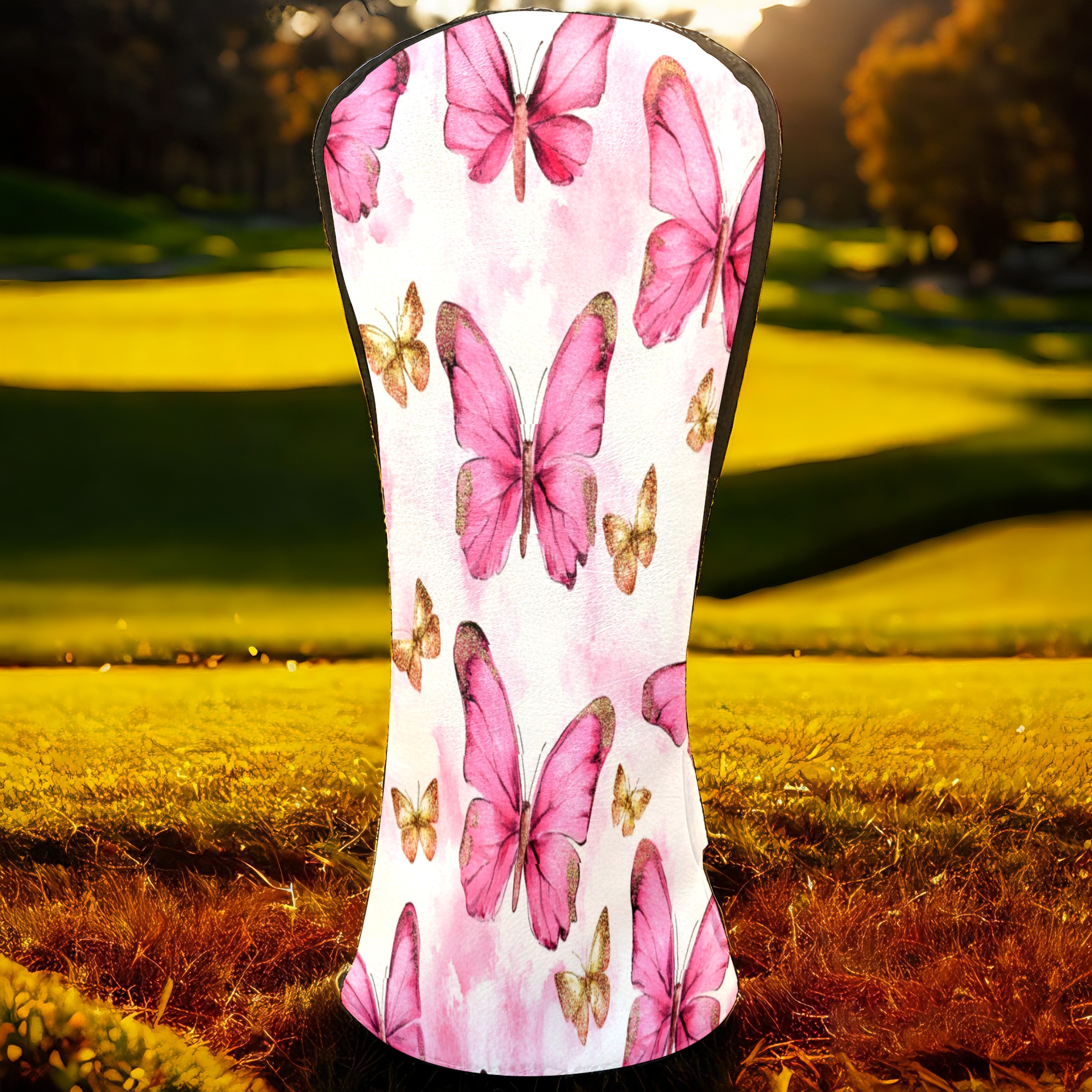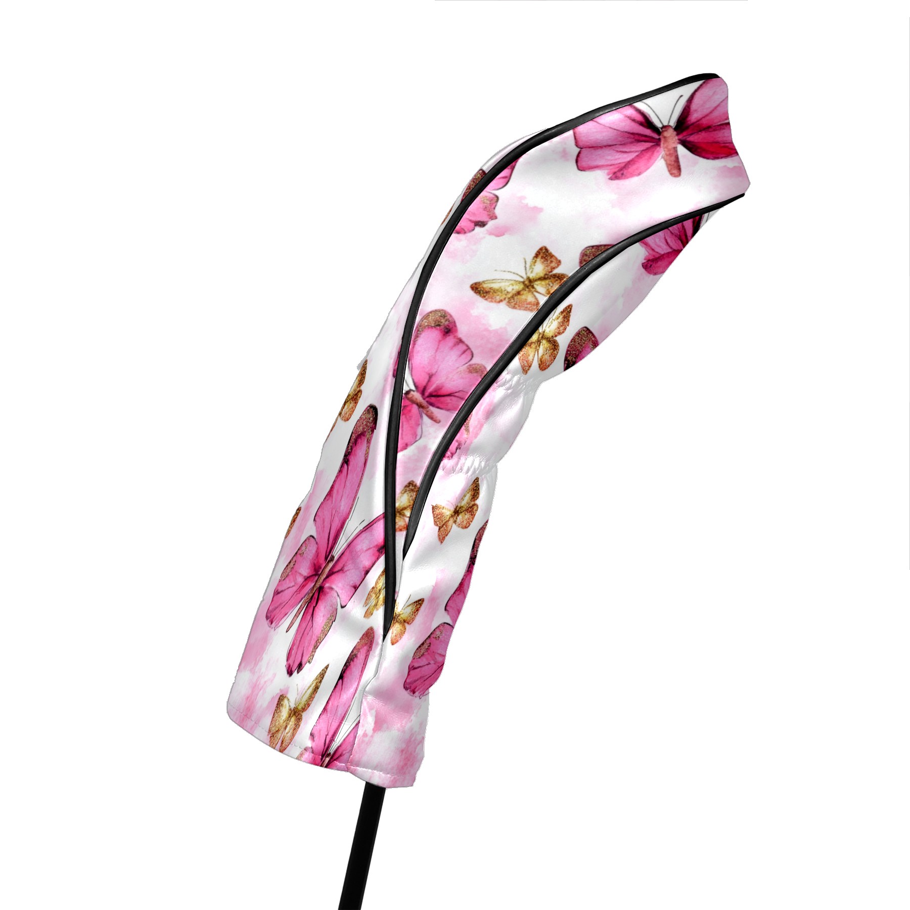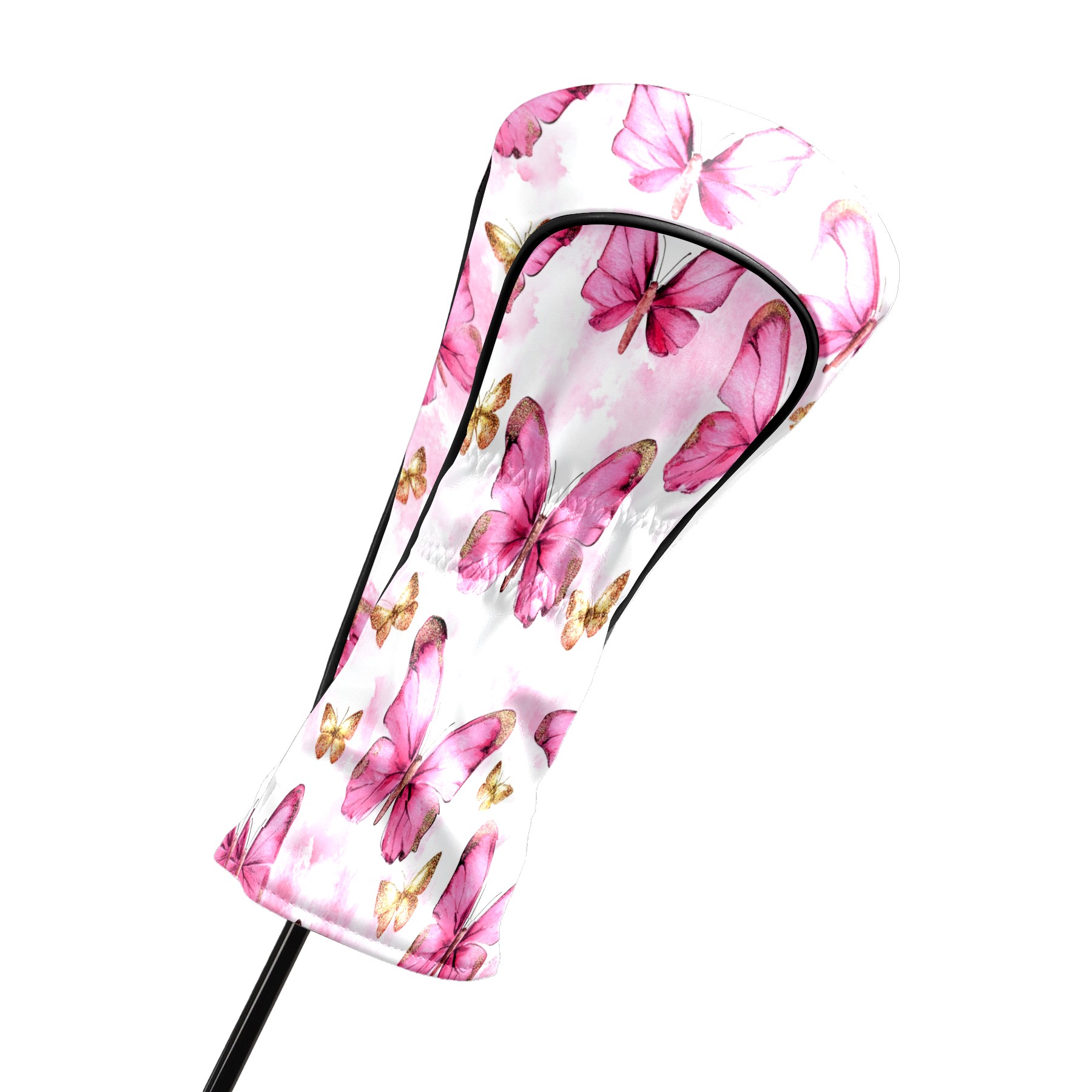 Golf Driver Head Covers Fairway Wood Headcovers, Premium Leather Golf Club Covers with Anti-Scratch Lining 1/3/5 Wood Cover for golf clubs for Women Men (Butterfly Pink 1)