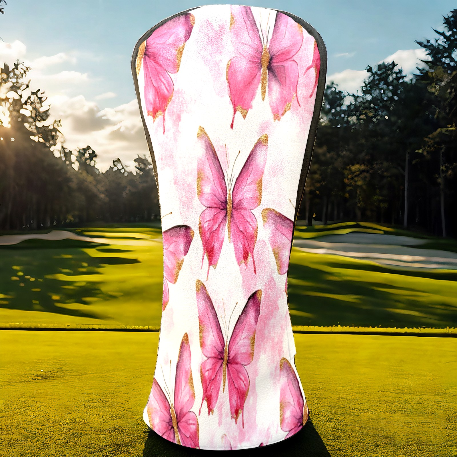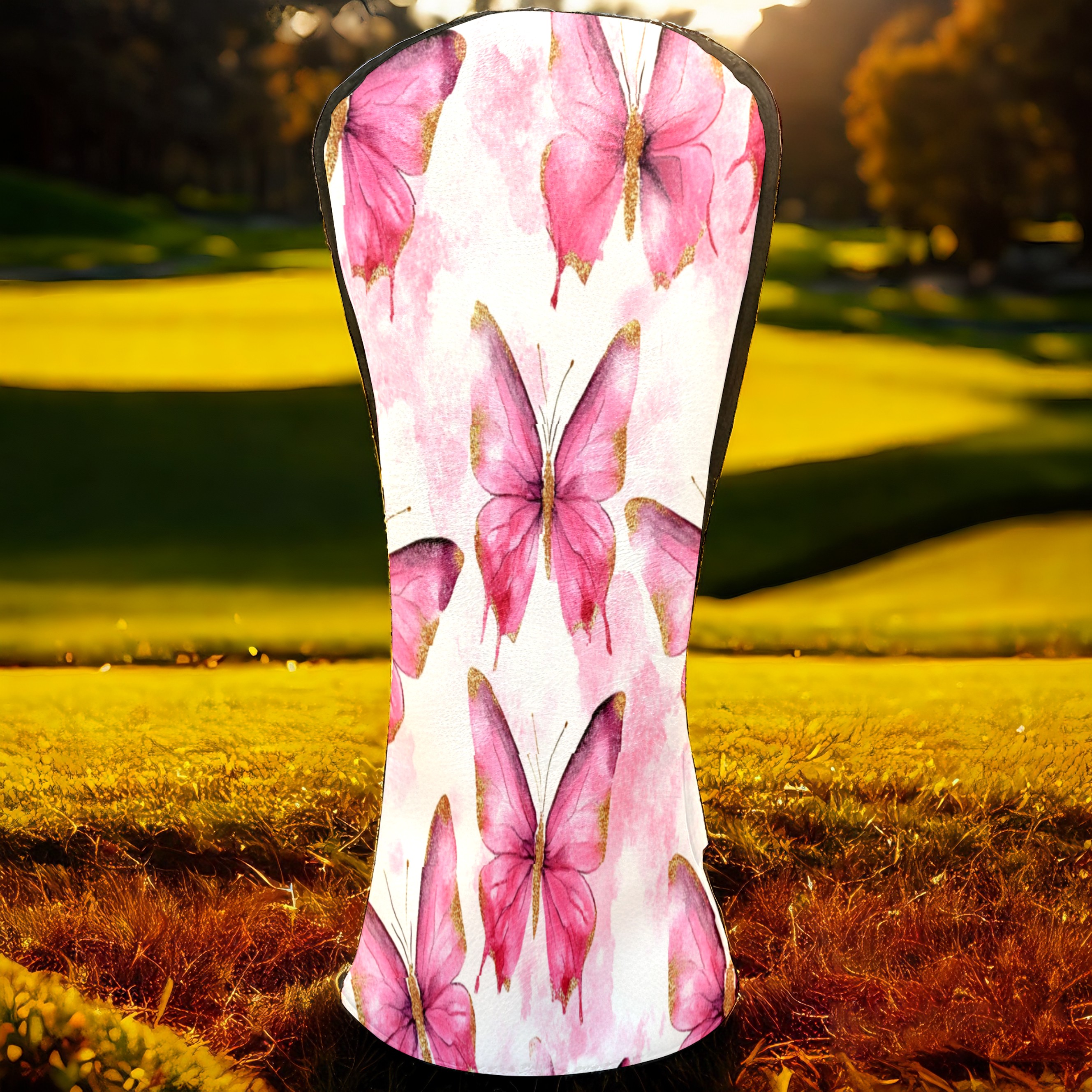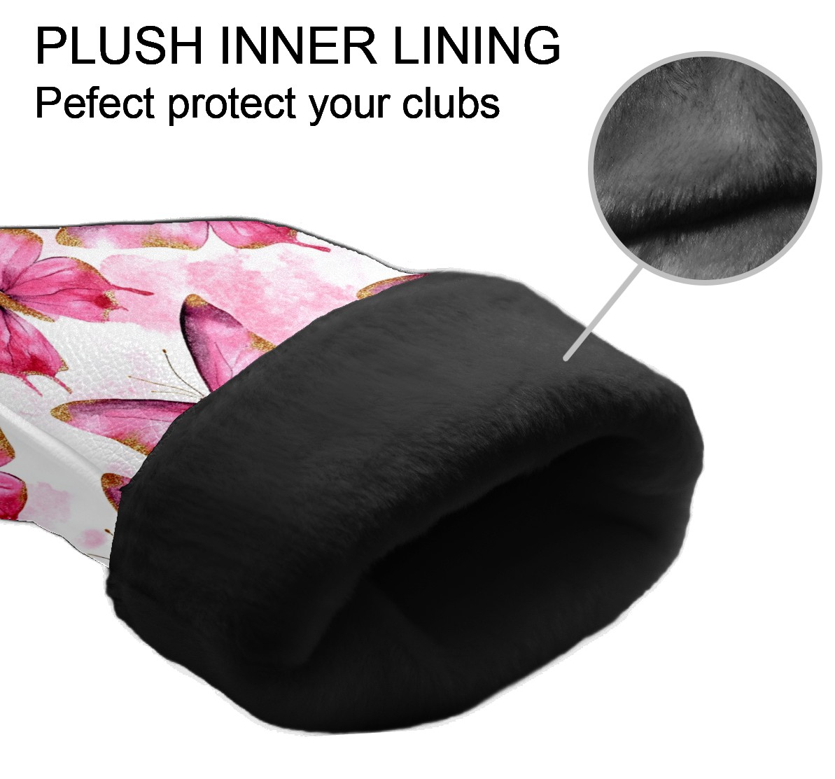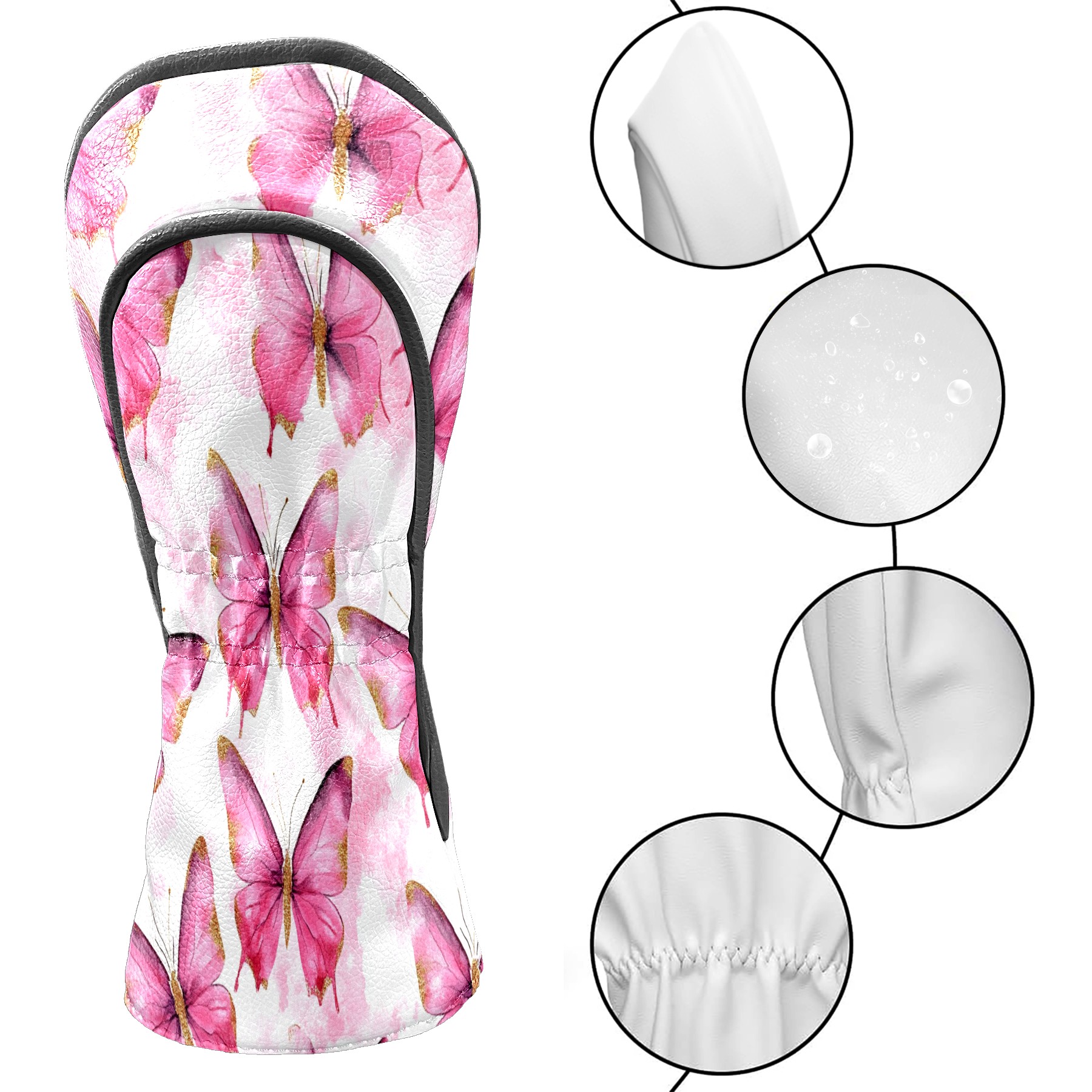 Golf Driver Head Covers Fairway Wood Headcovers, Premium Leather Golf Club Covers with Anti-Scratch Lining 1/3/5 Wood Cover for golf clubs for Women Men (Butterfly Pink 3)
