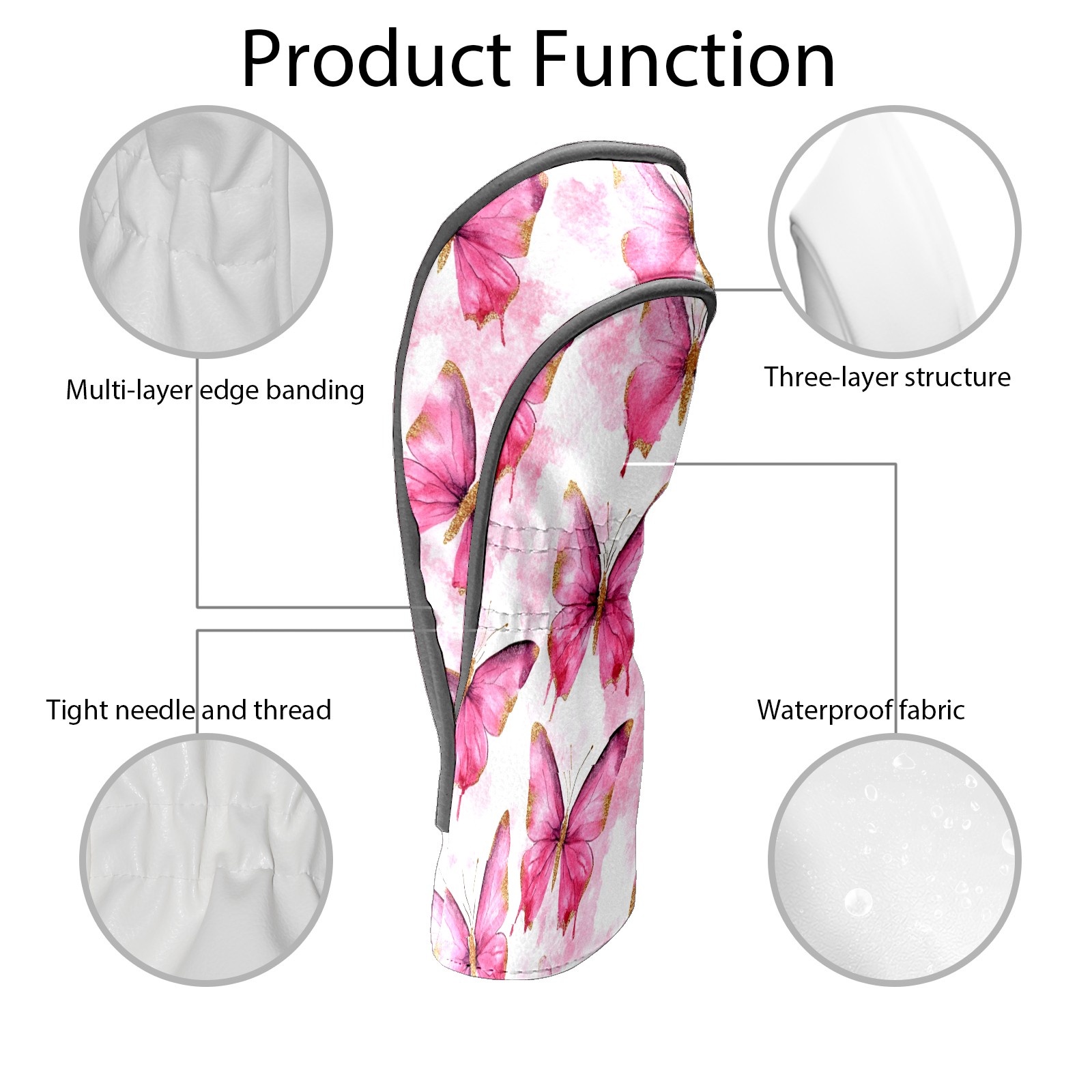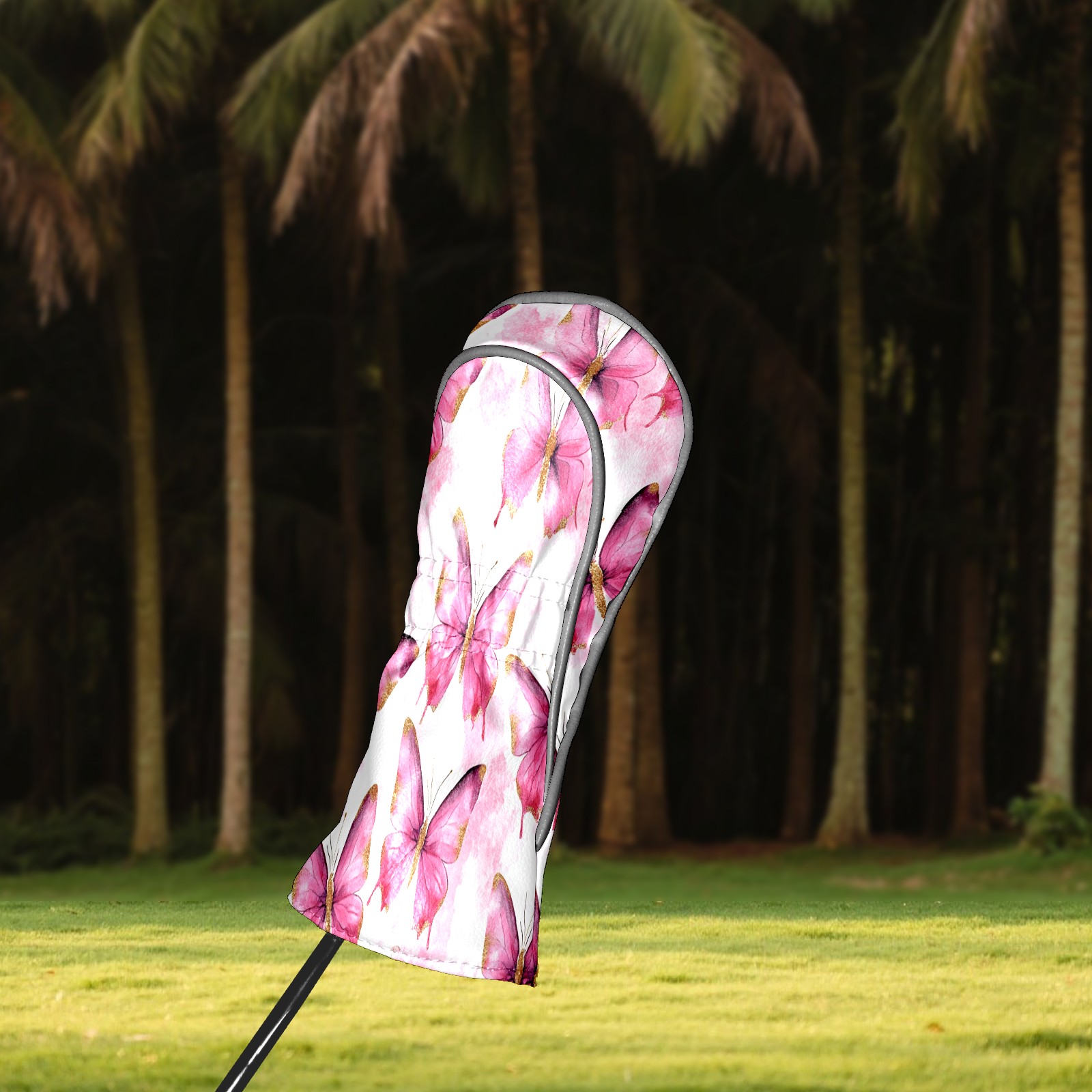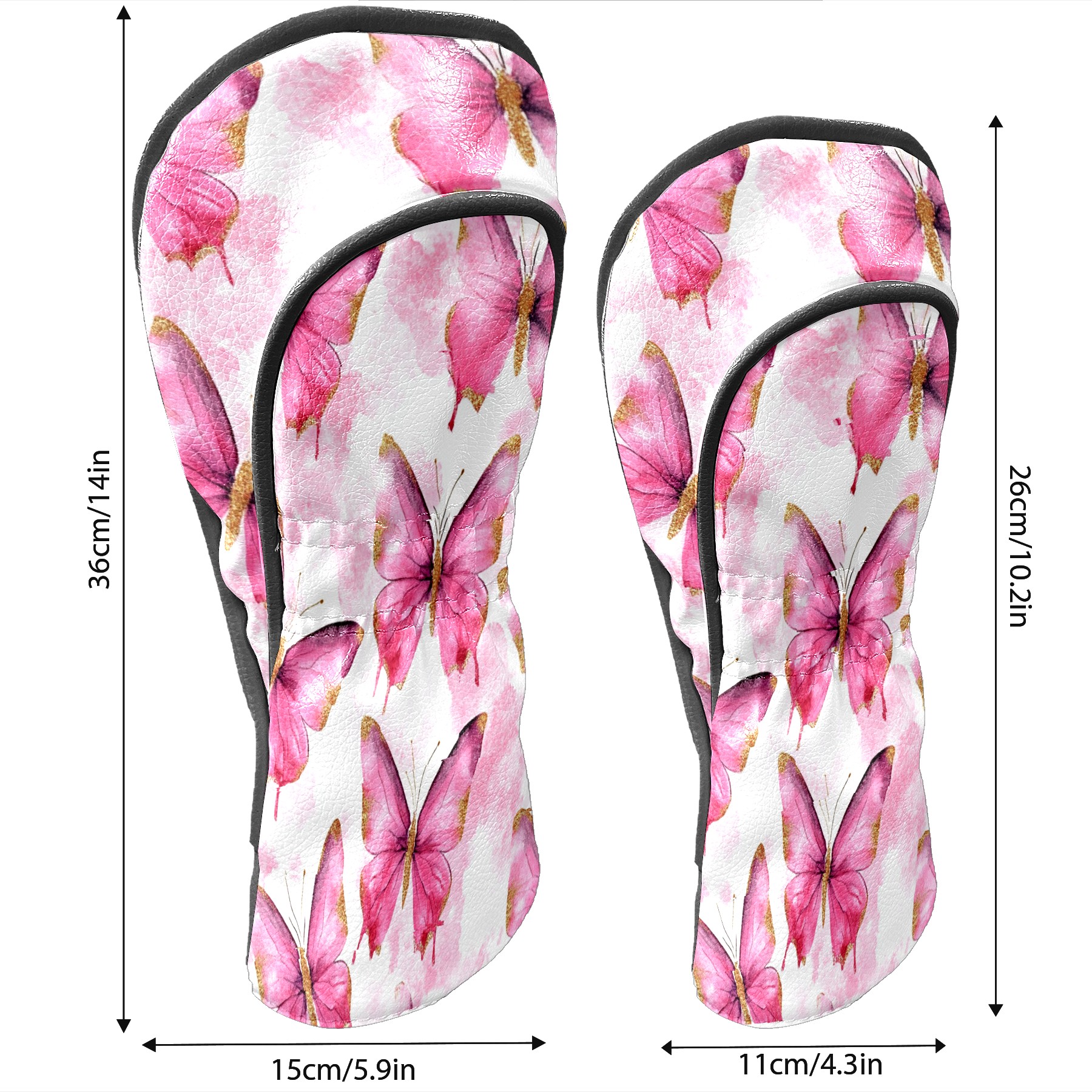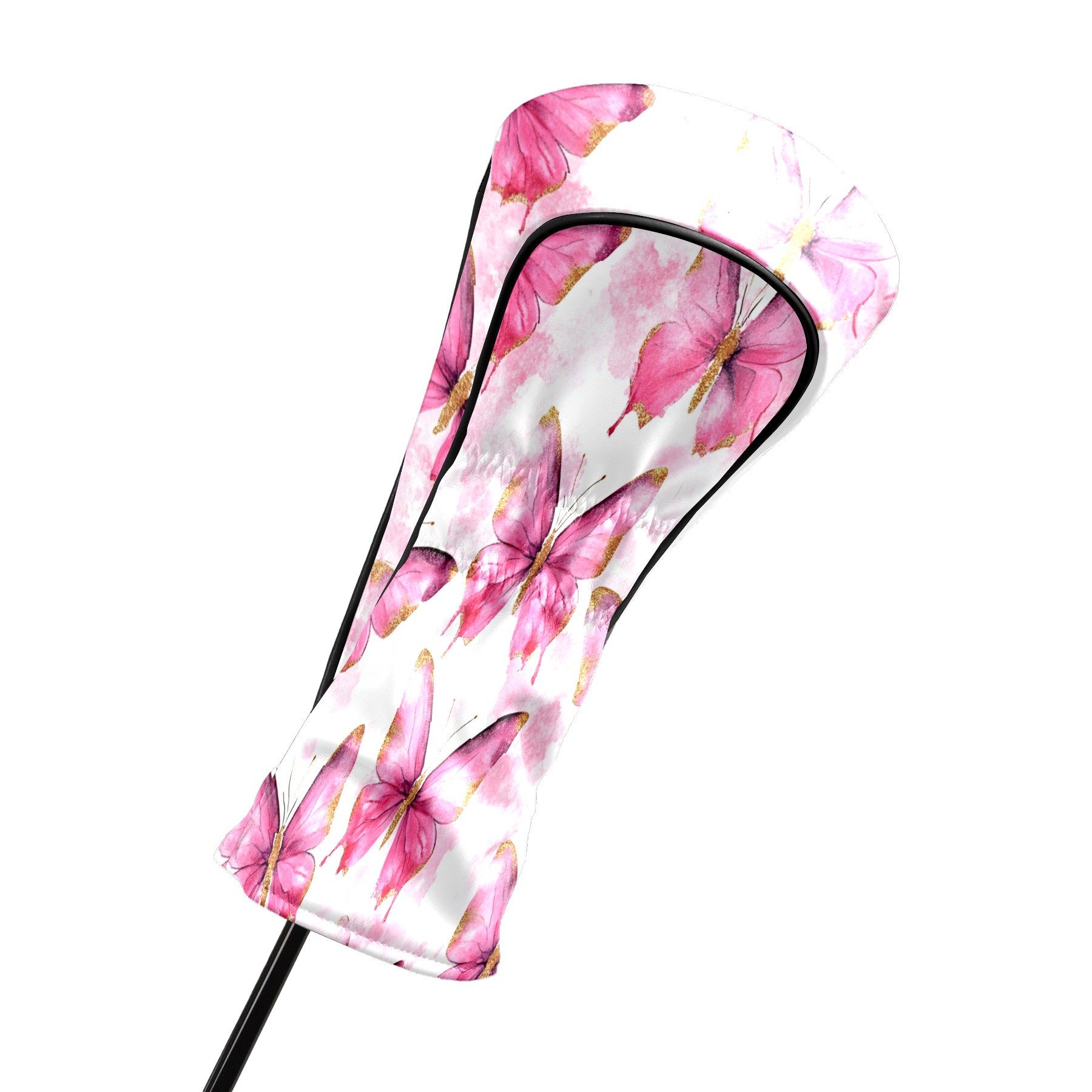 Golf Driver Head Covers Fairway Wood Headcovers, Premium Leather Golf Club Covers with Anti-Scratch Lining 1/3/5 Wood Cover for golf clubs for Women Men (Butterfly Pink 3)