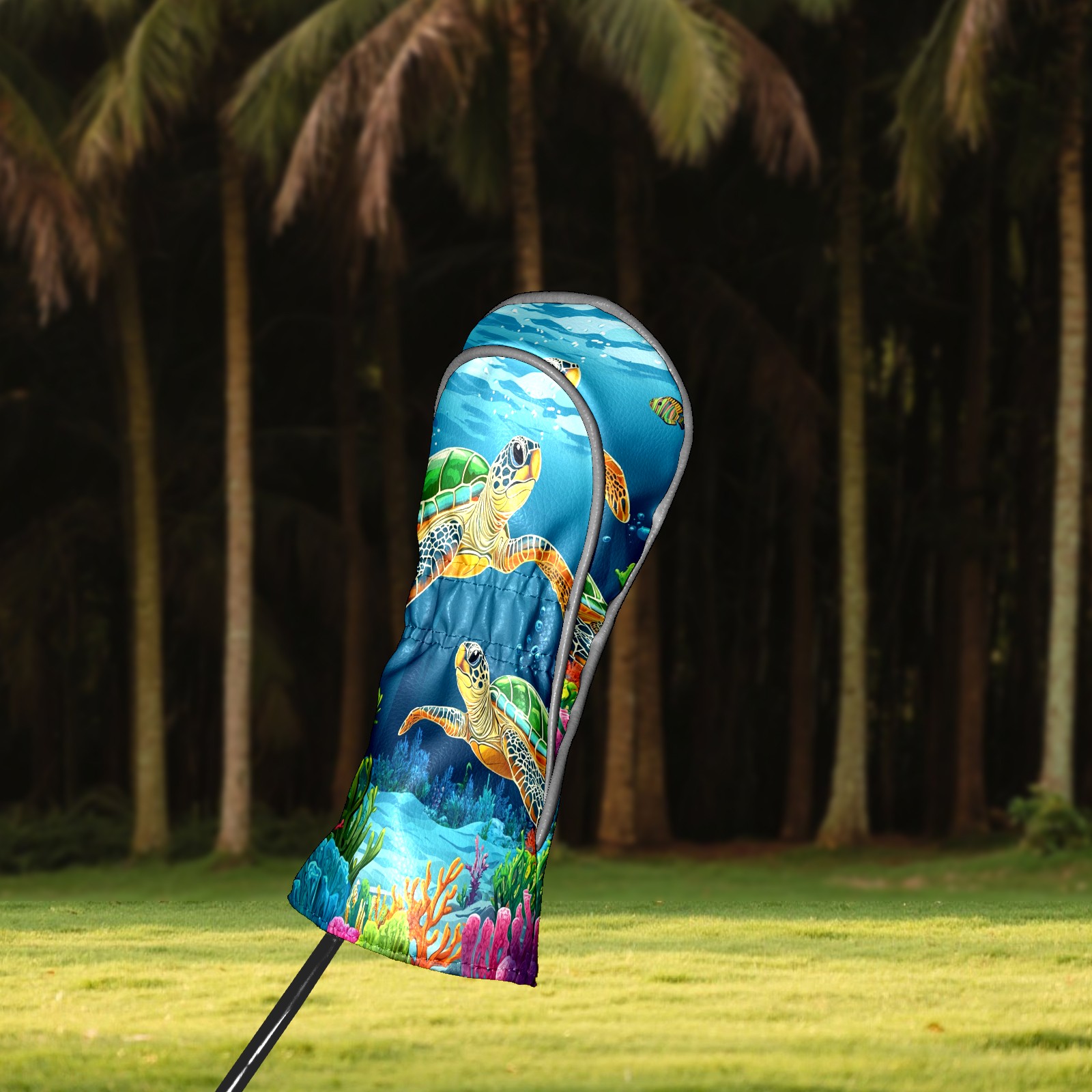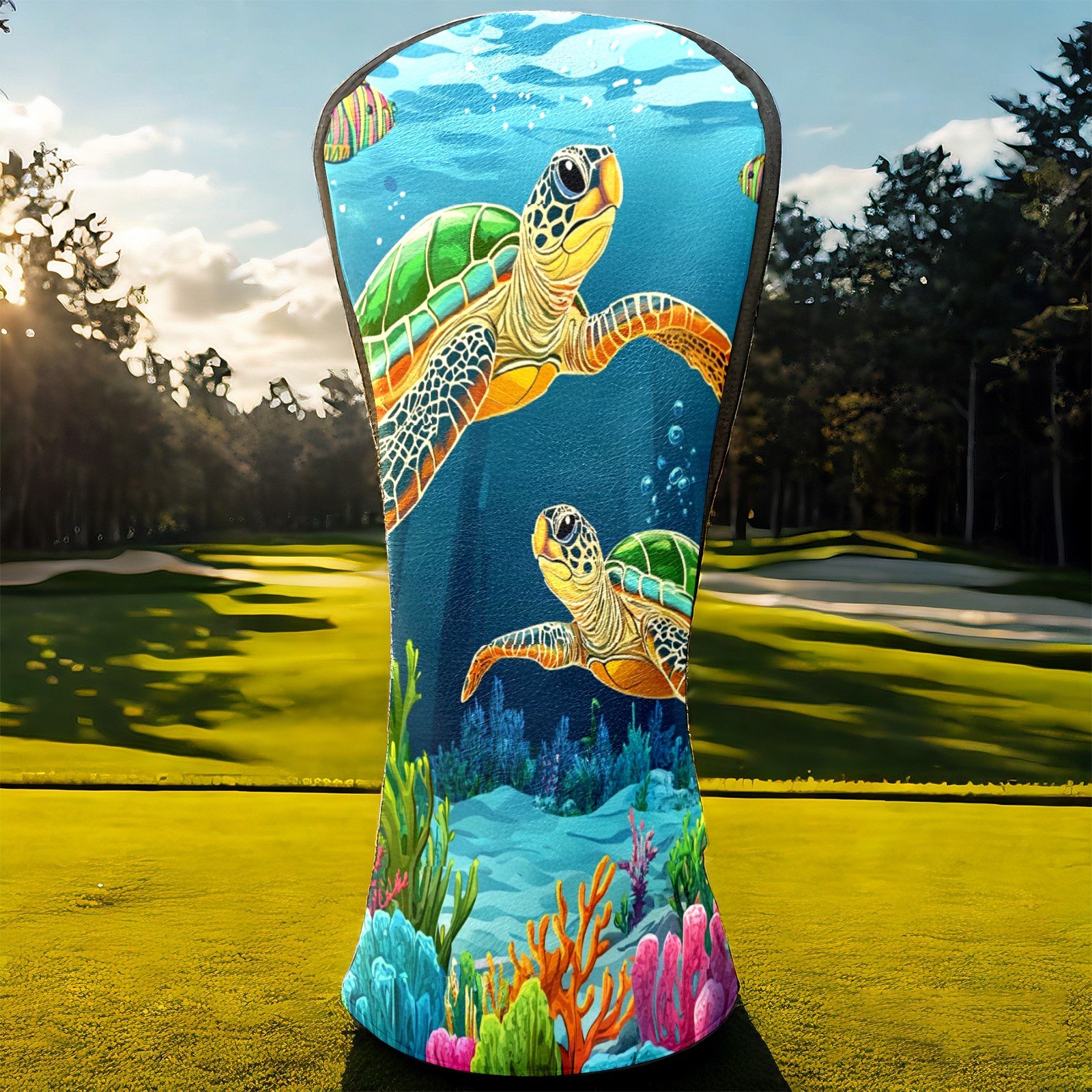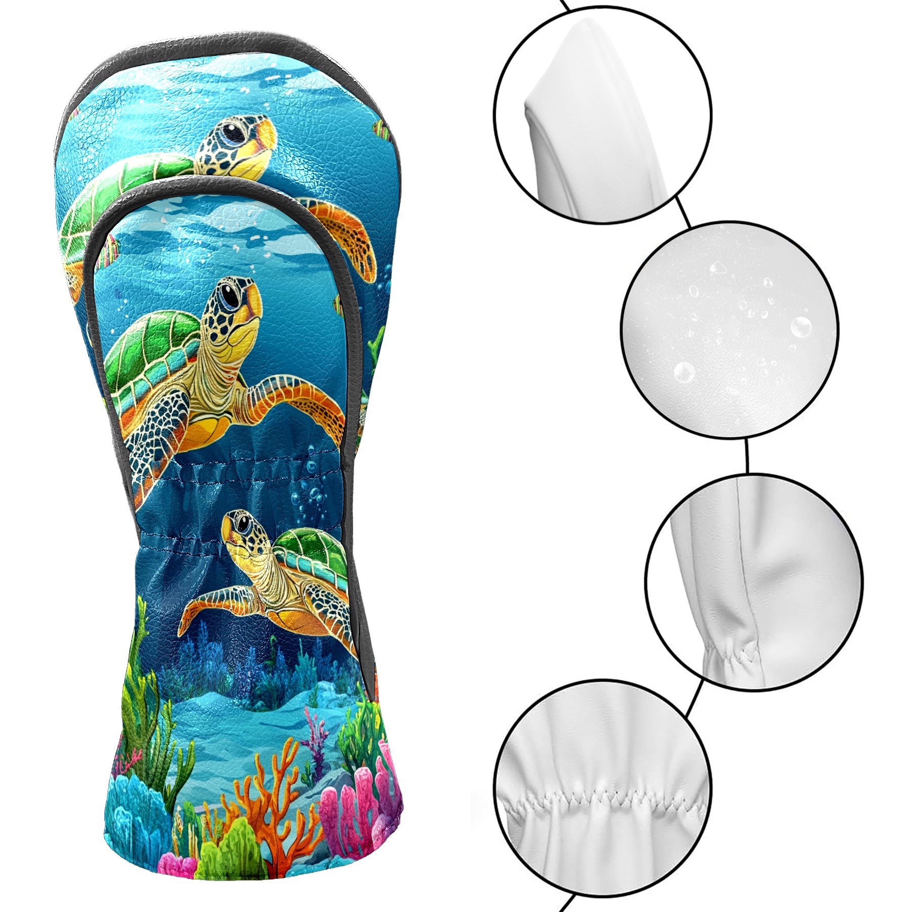 Golf Driver Head Covers Fairway Wood Headcovers, Premium Leather Golf Club Covers with Anti-Scratch Lining 1/3/5 Wood Cover for golf clubs for Women Men (Sea Turtles)