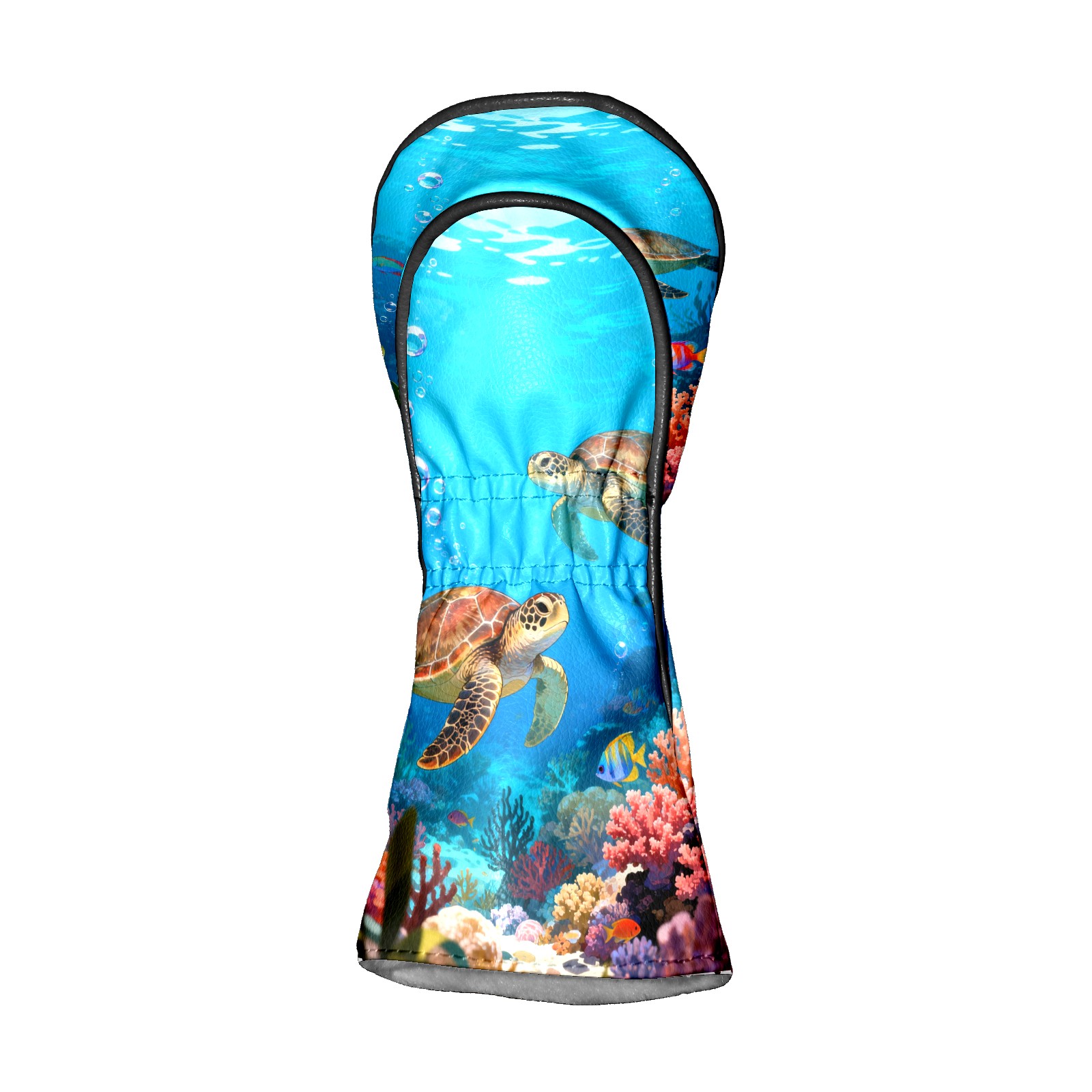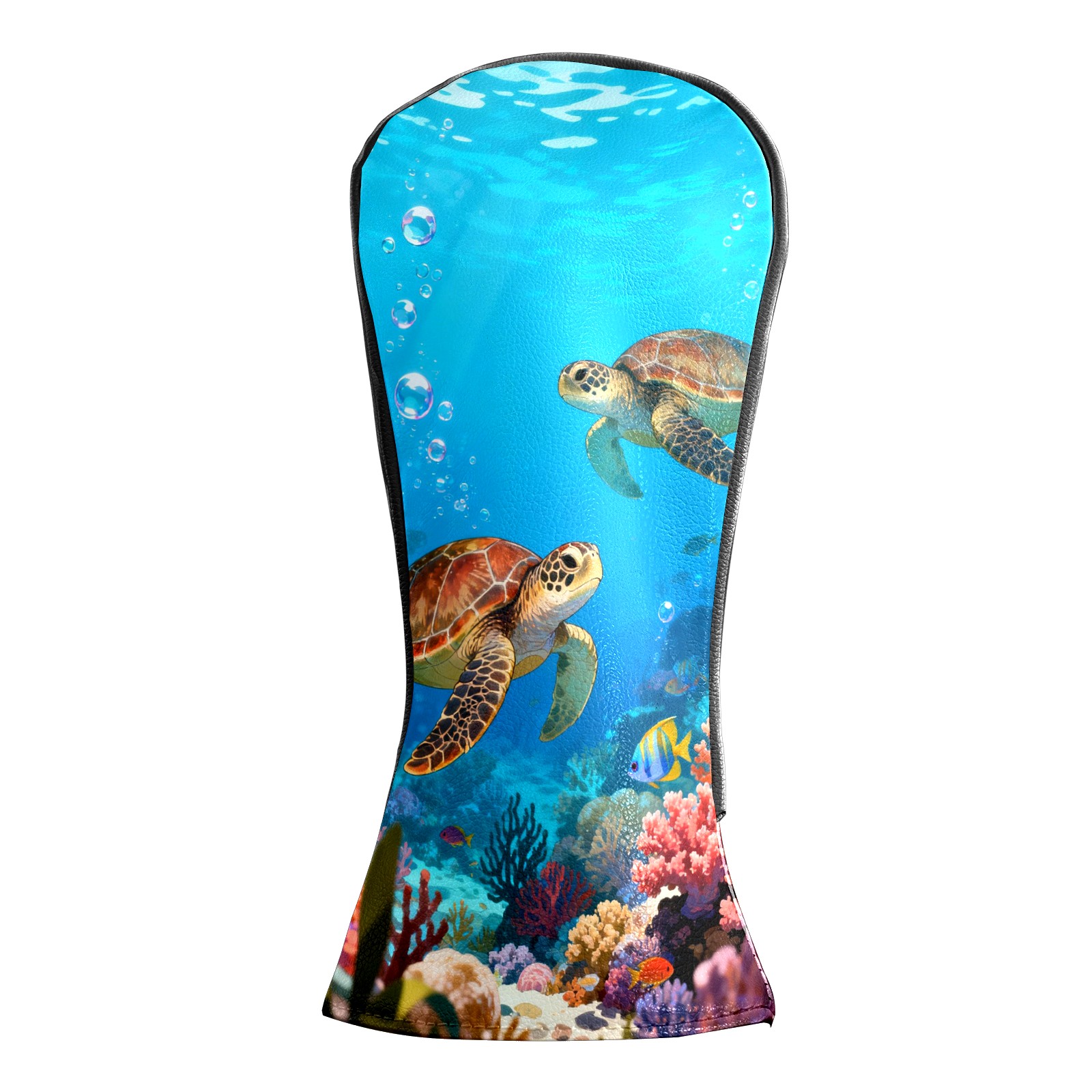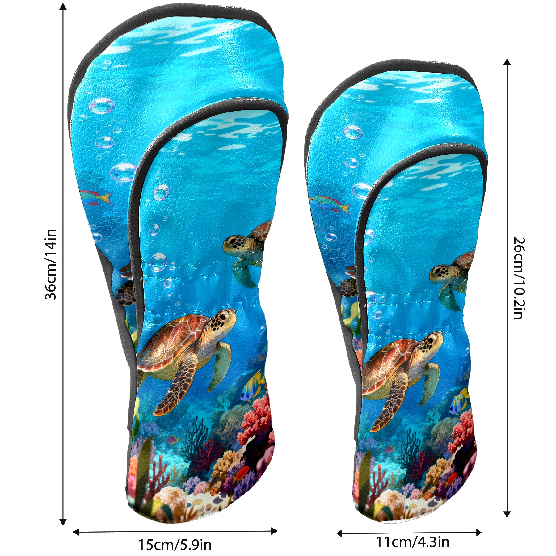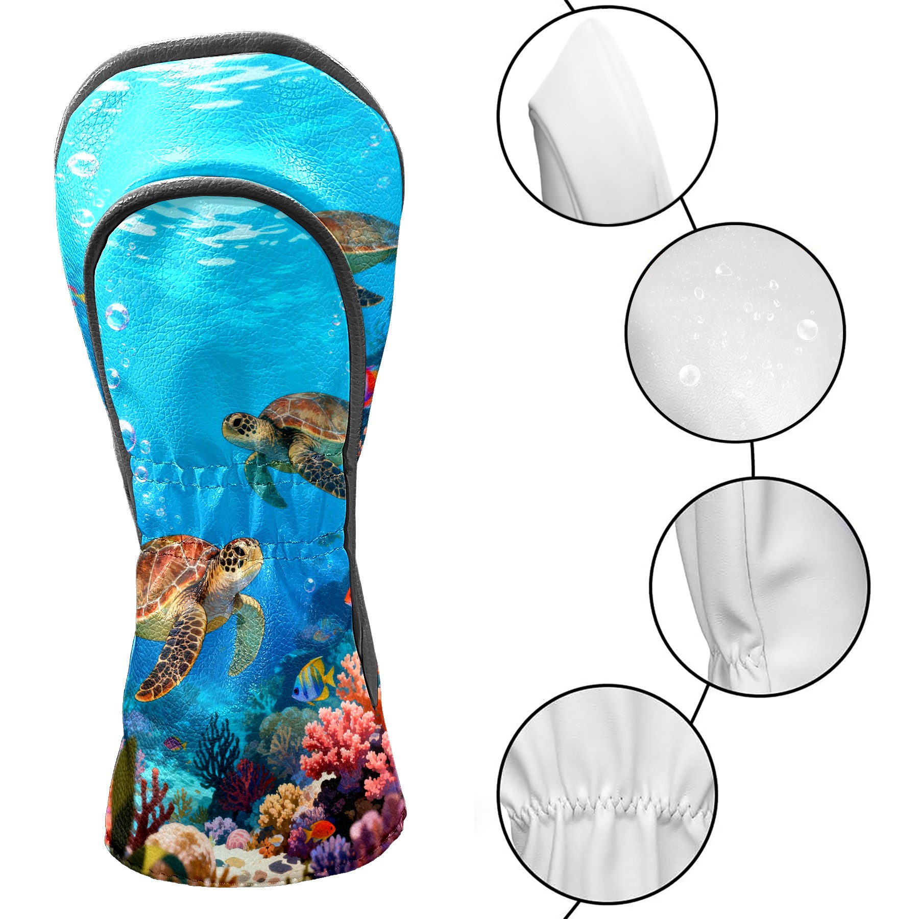Golf Driver Head Covers Fairway Wood Headcovers, Premium Leather Golf Club Covers with Anti-Scratch Lining 1/3/5 Wood Cover for golf clubs for Women Men (Underwater Sea Turtles)