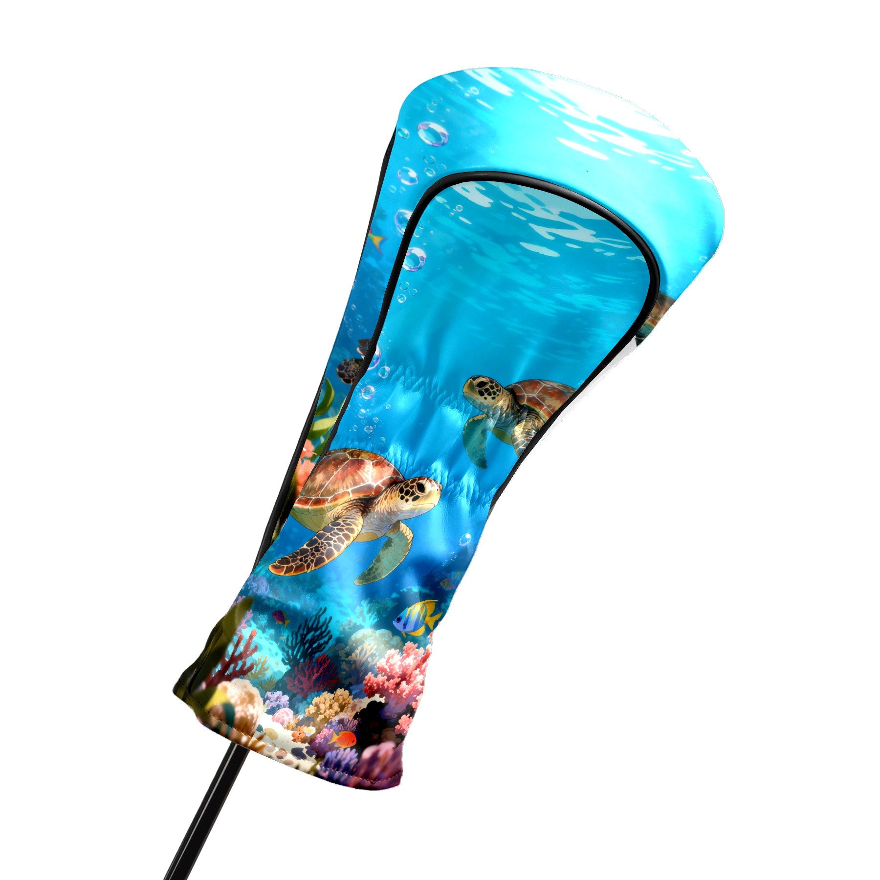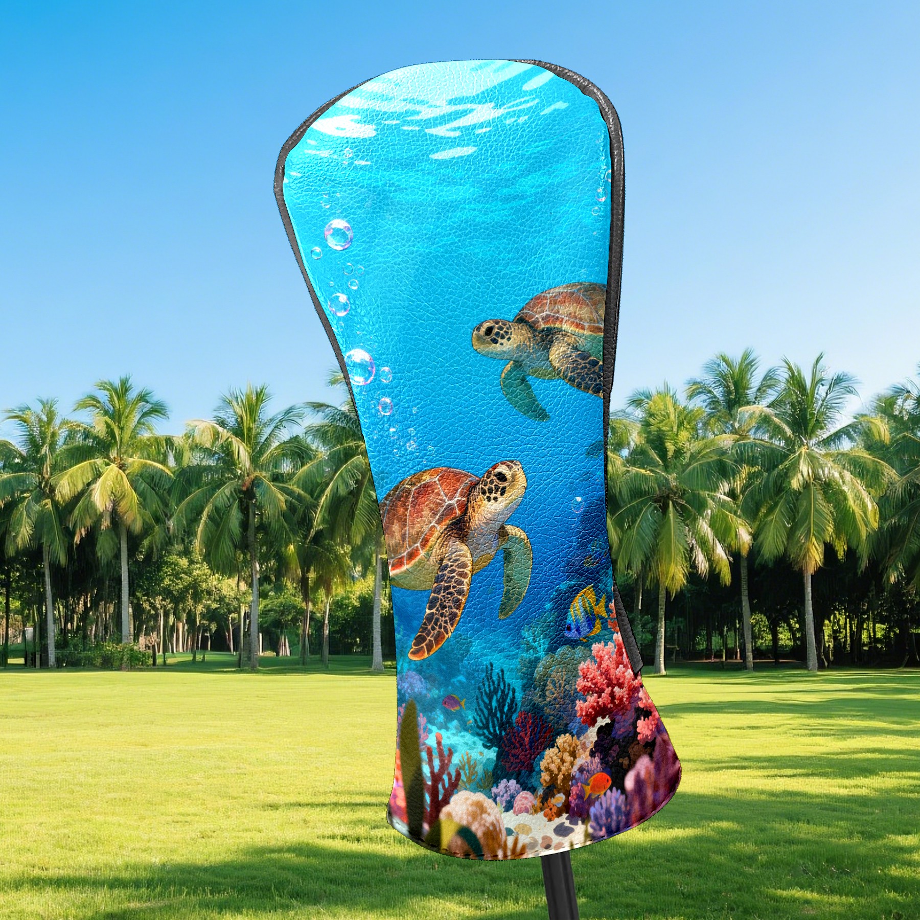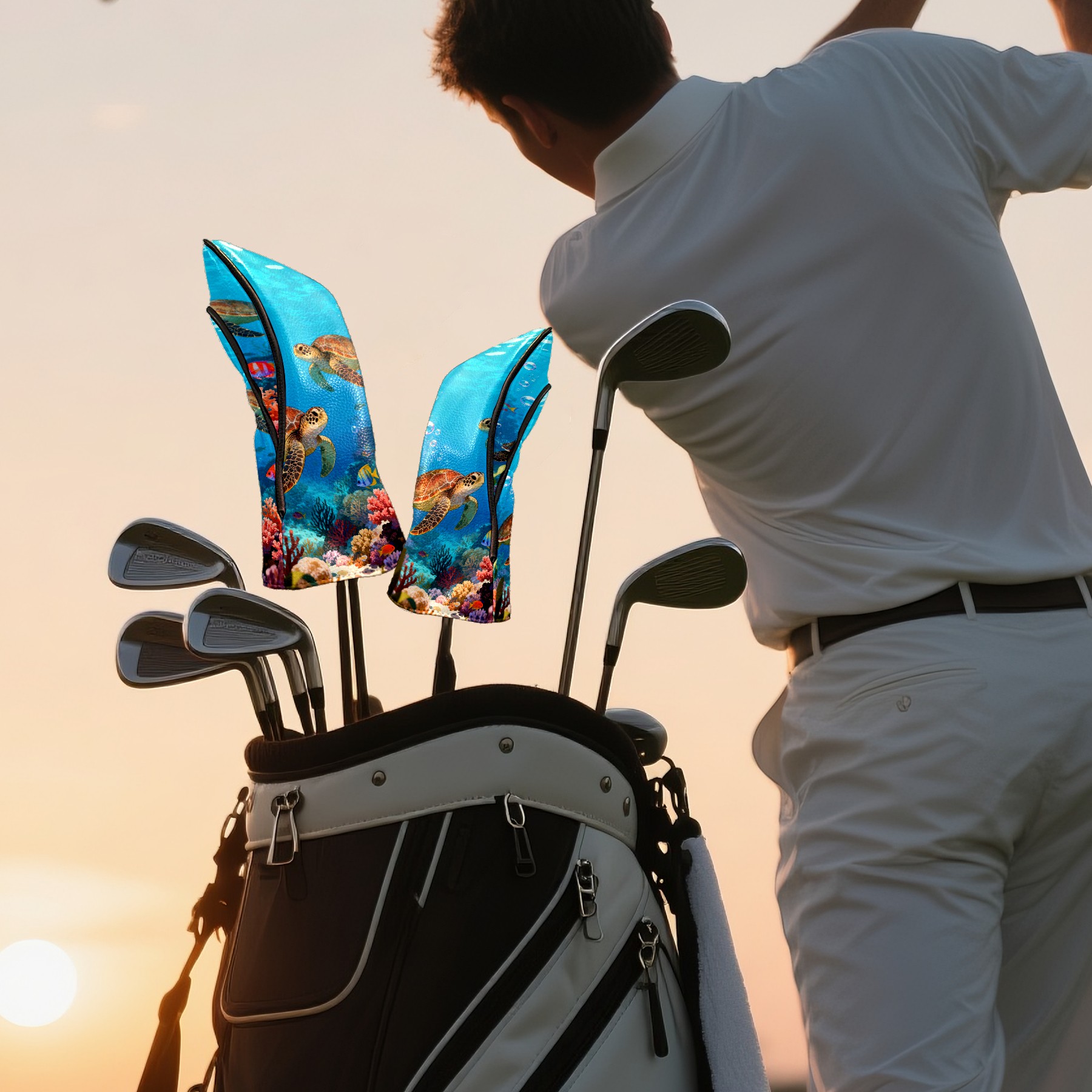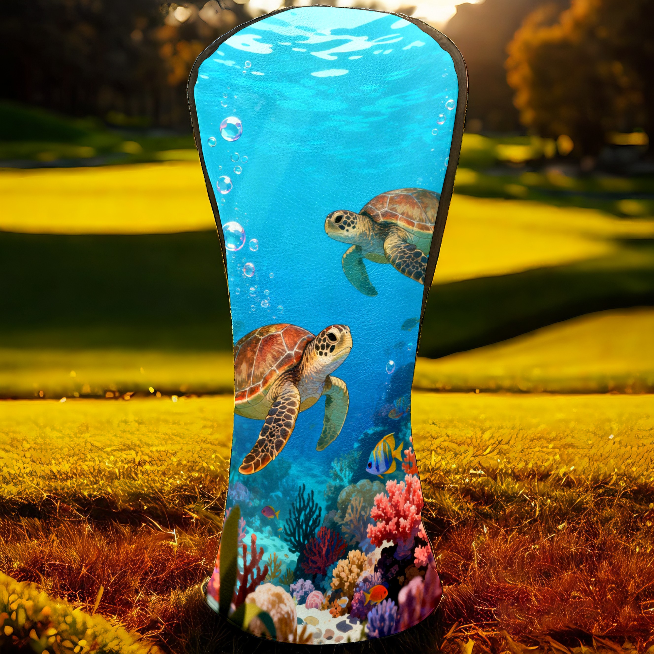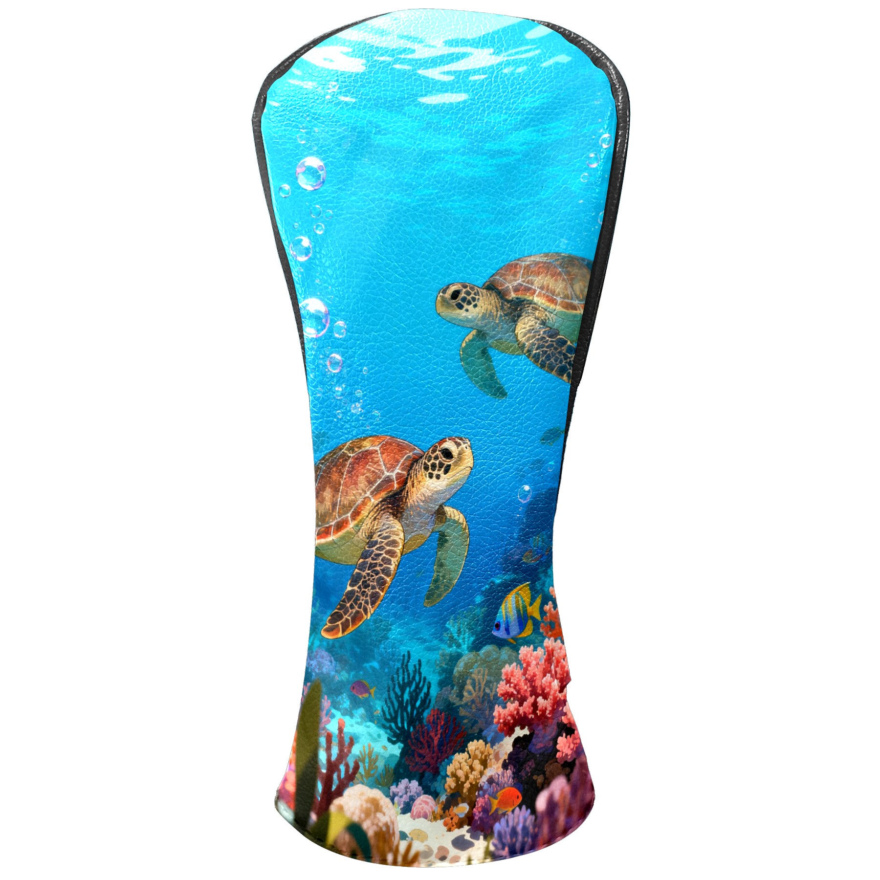 Golf Driver Head Covers Fairway Wood Headcovers, Premium Leather Golf Club Covers with Anti-Scratch Lining 1/3/5 Wood Cover for golf clubs for Women Men (Underwater Sea Turtles)