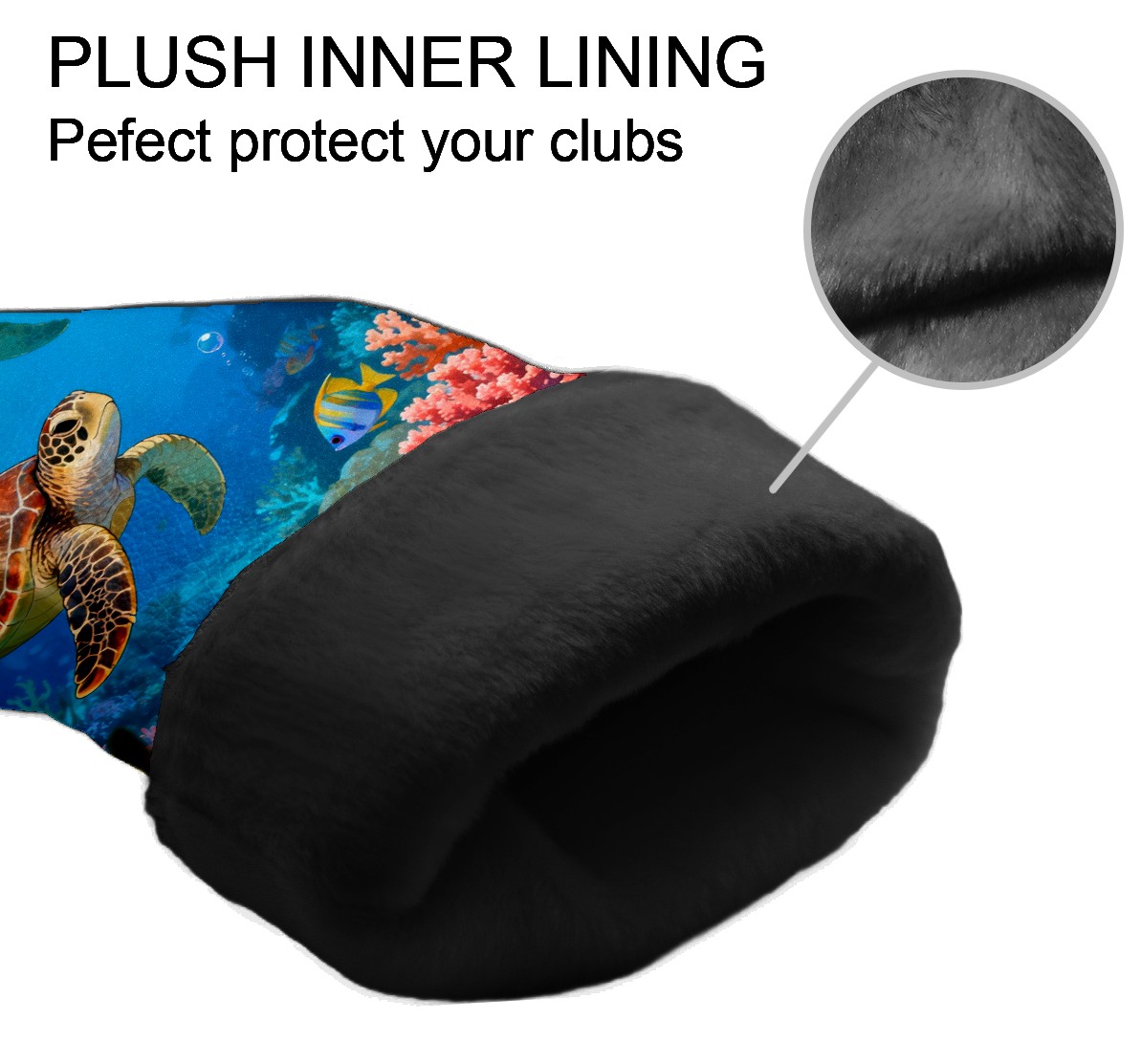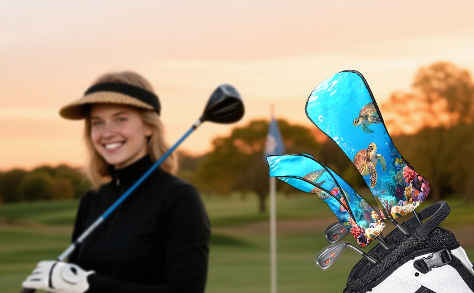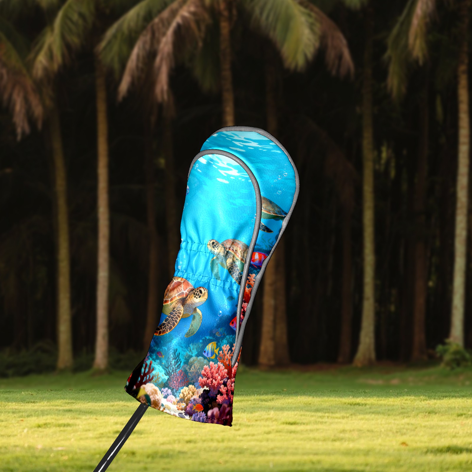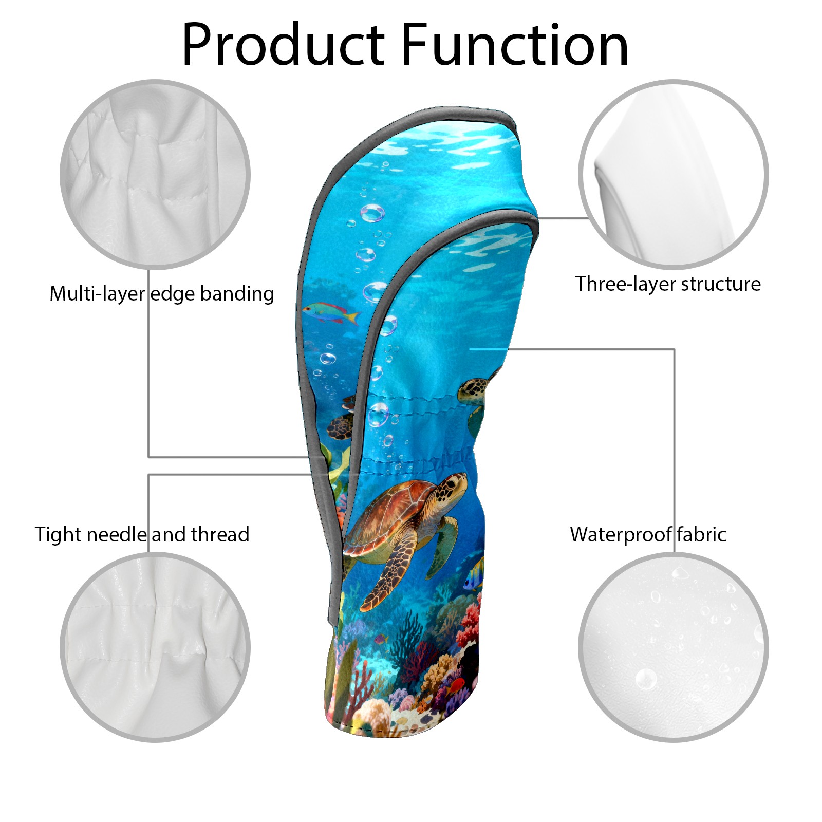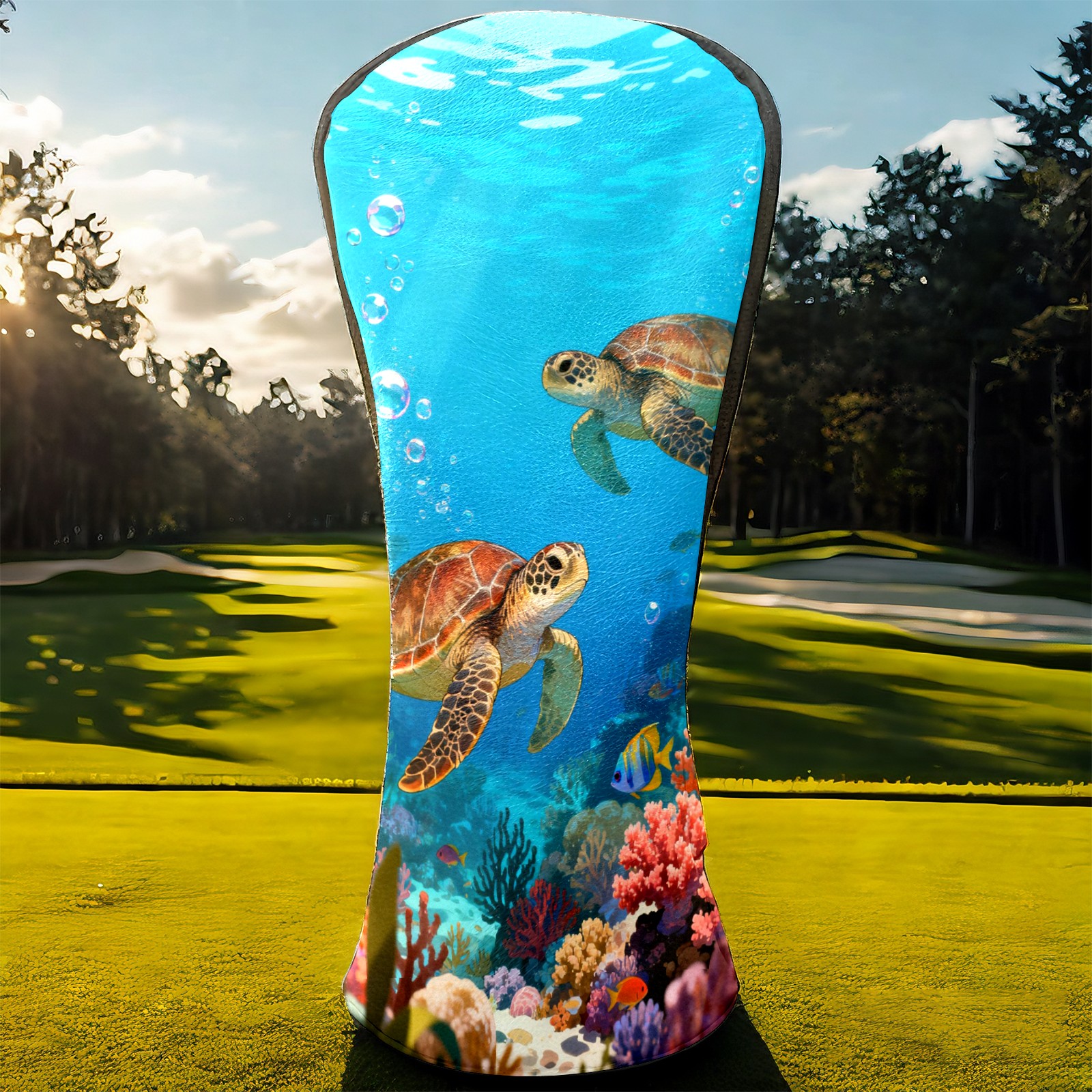 Golf Driver Head Covers Fairway Wood Headcovers, Premium Leather Golf Club Covers with Anti-Scratch Lining 1/3/5 Wood Cover for golf clubs for Women Men (Underwater Sea Turtles)