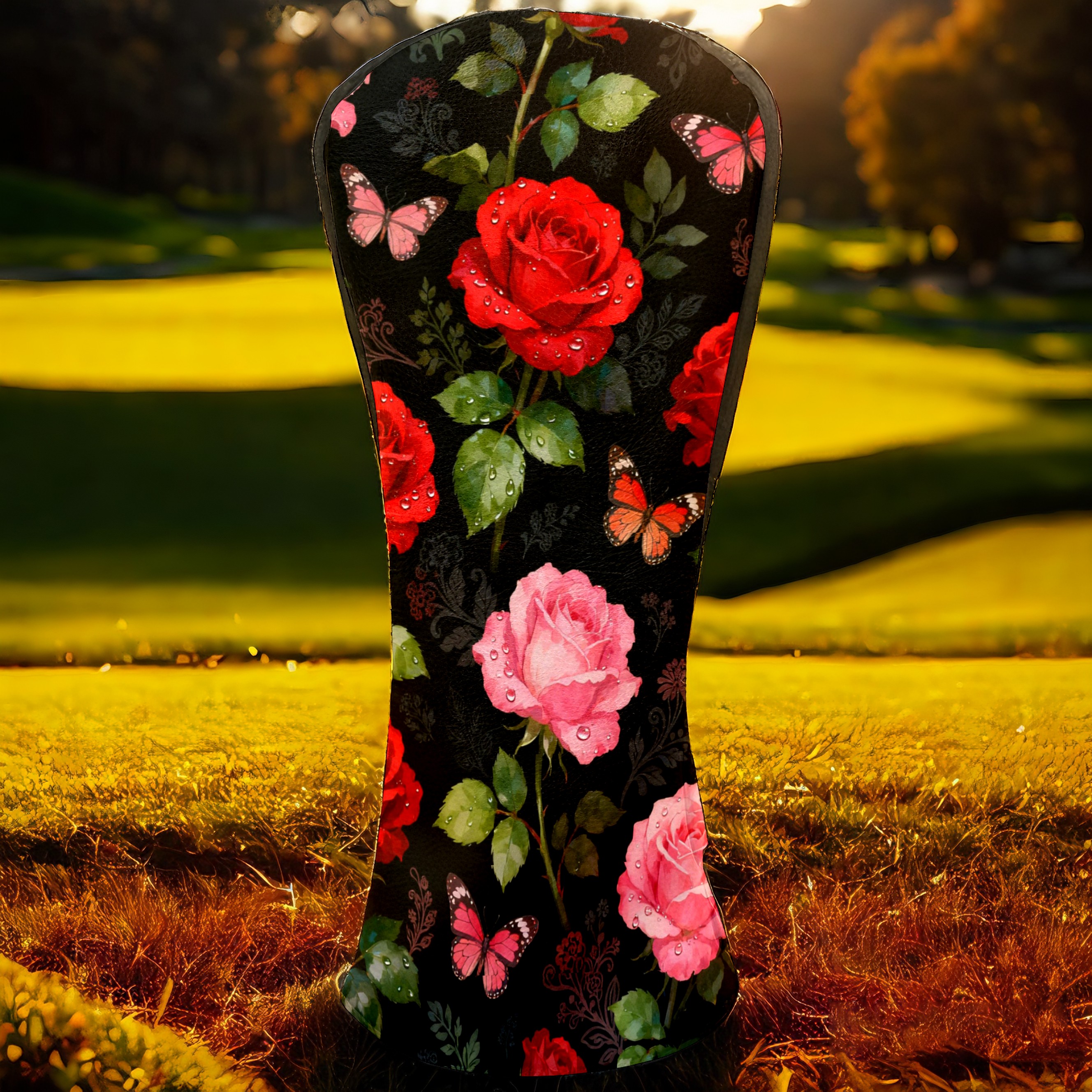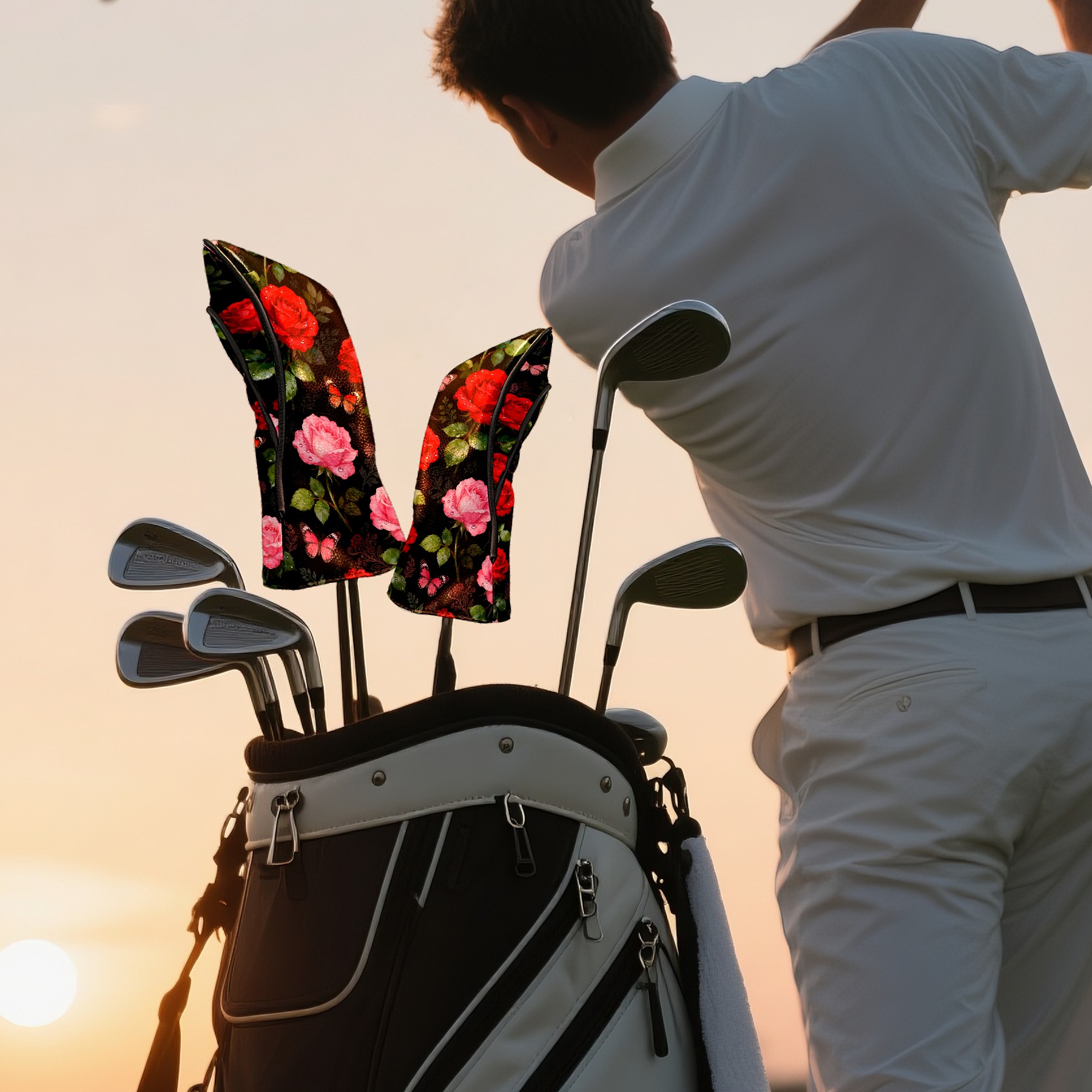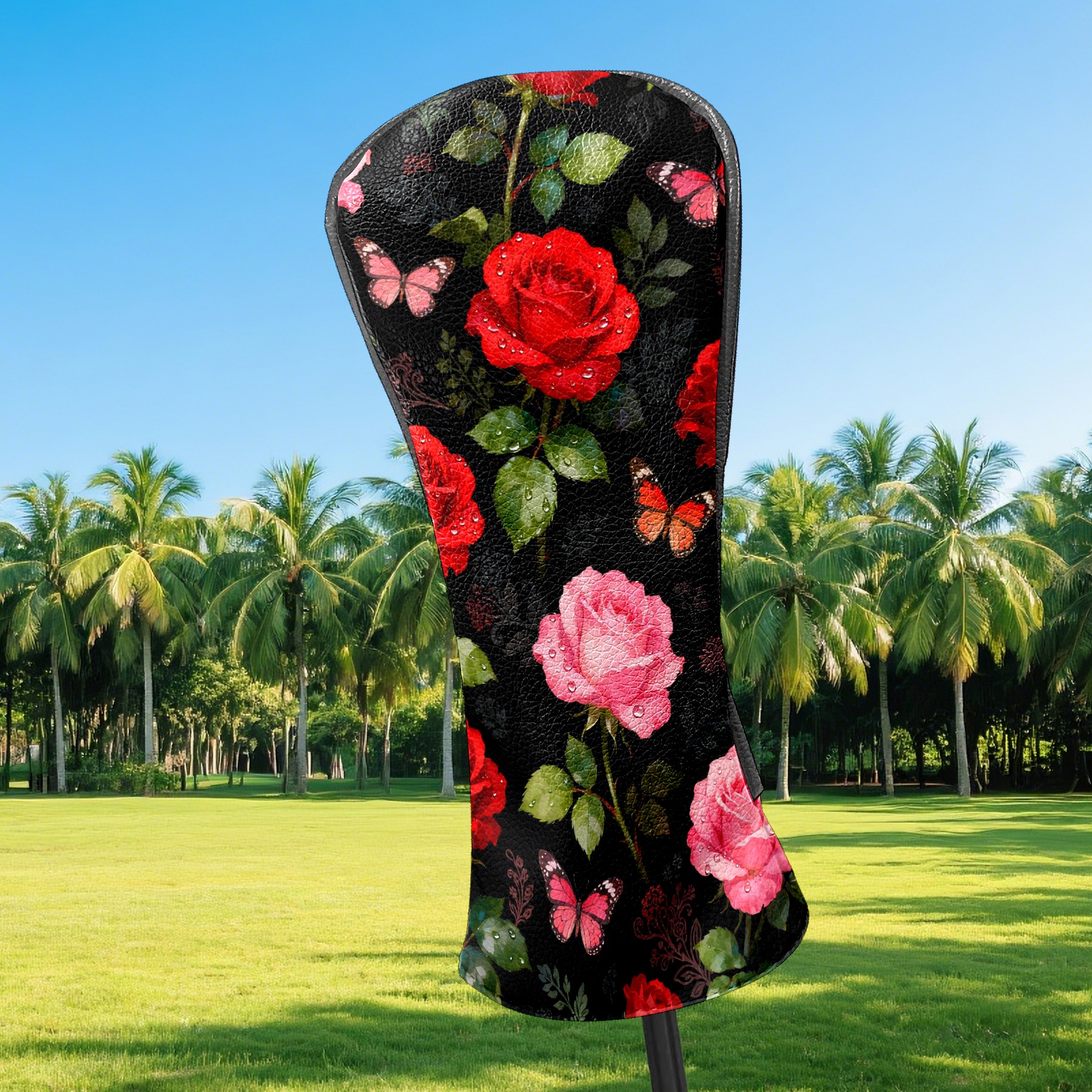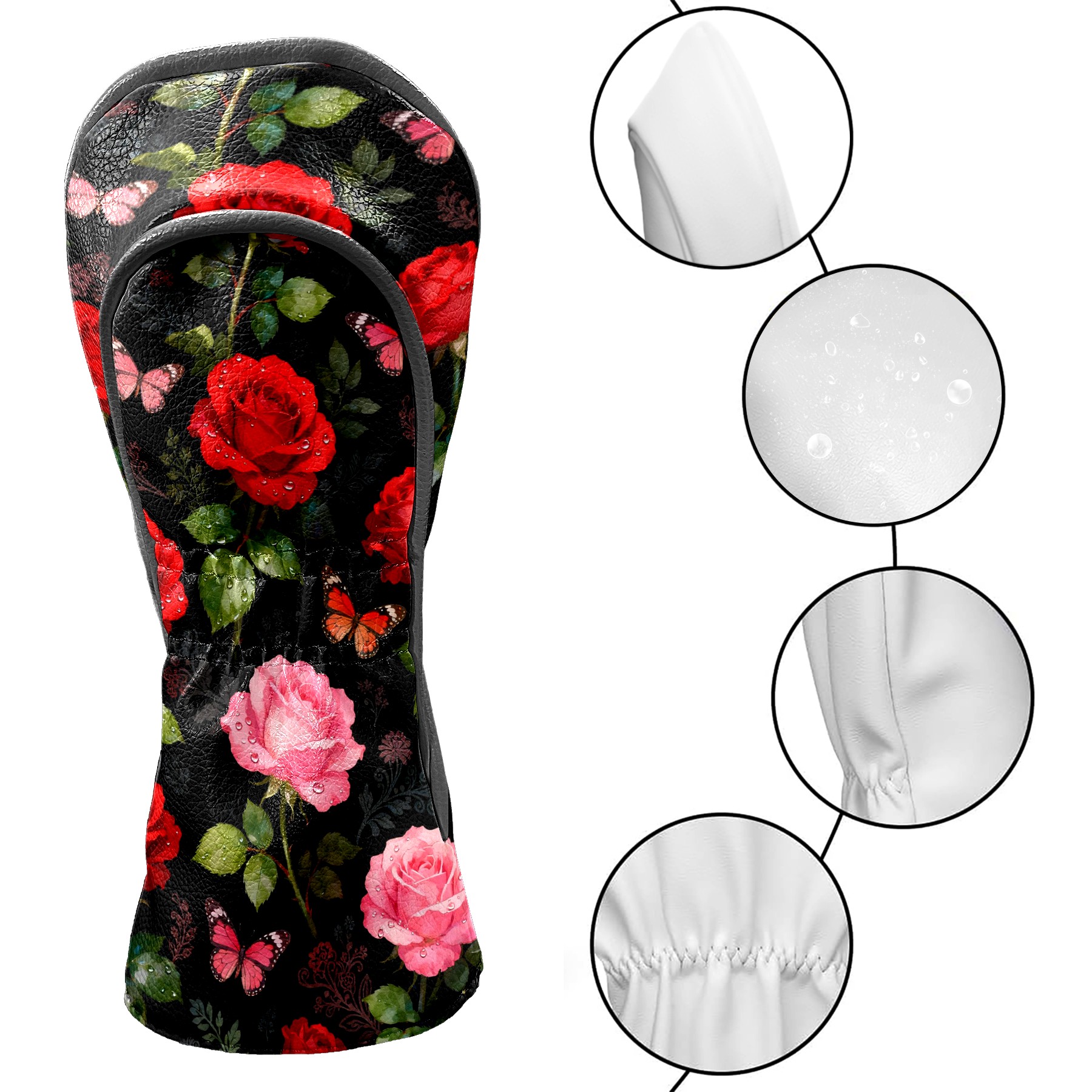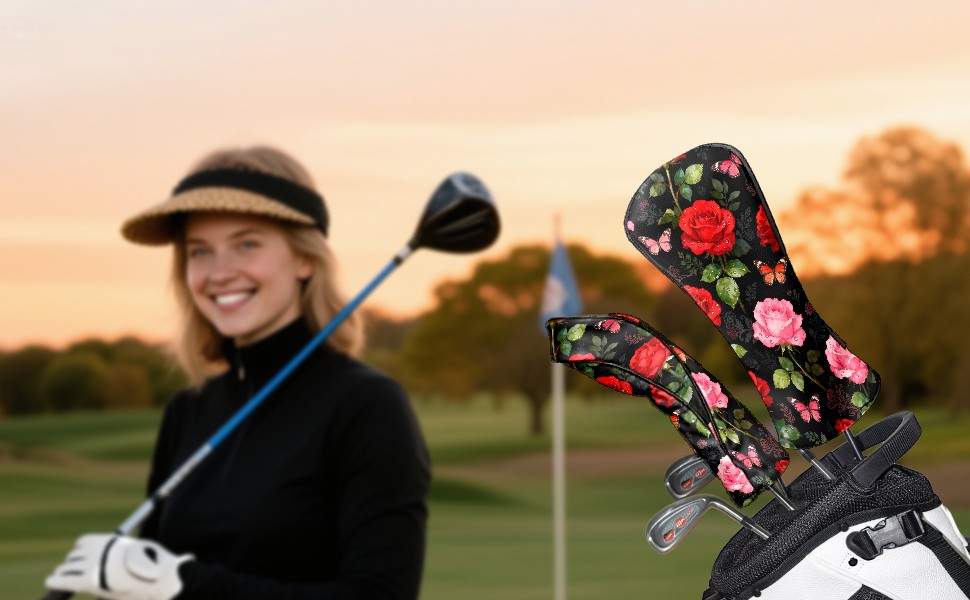 Golf Driver Head Covers Fairway Wood Headcovers, Premium Leather Golf Club Covers with Anti-Scratch Lining 1/3/5 Wood Cover for golf clubs for Women Men (Red Pink Roses)