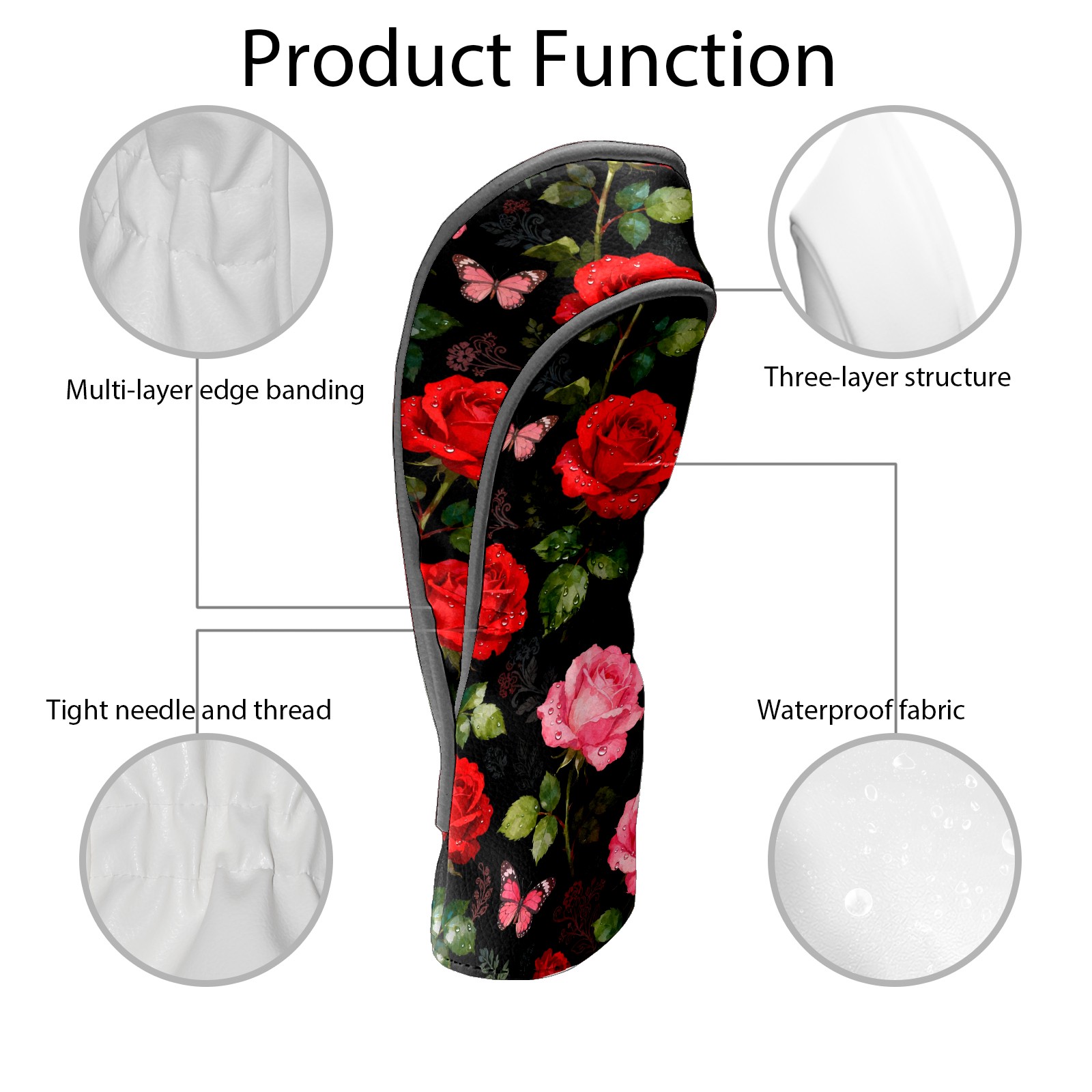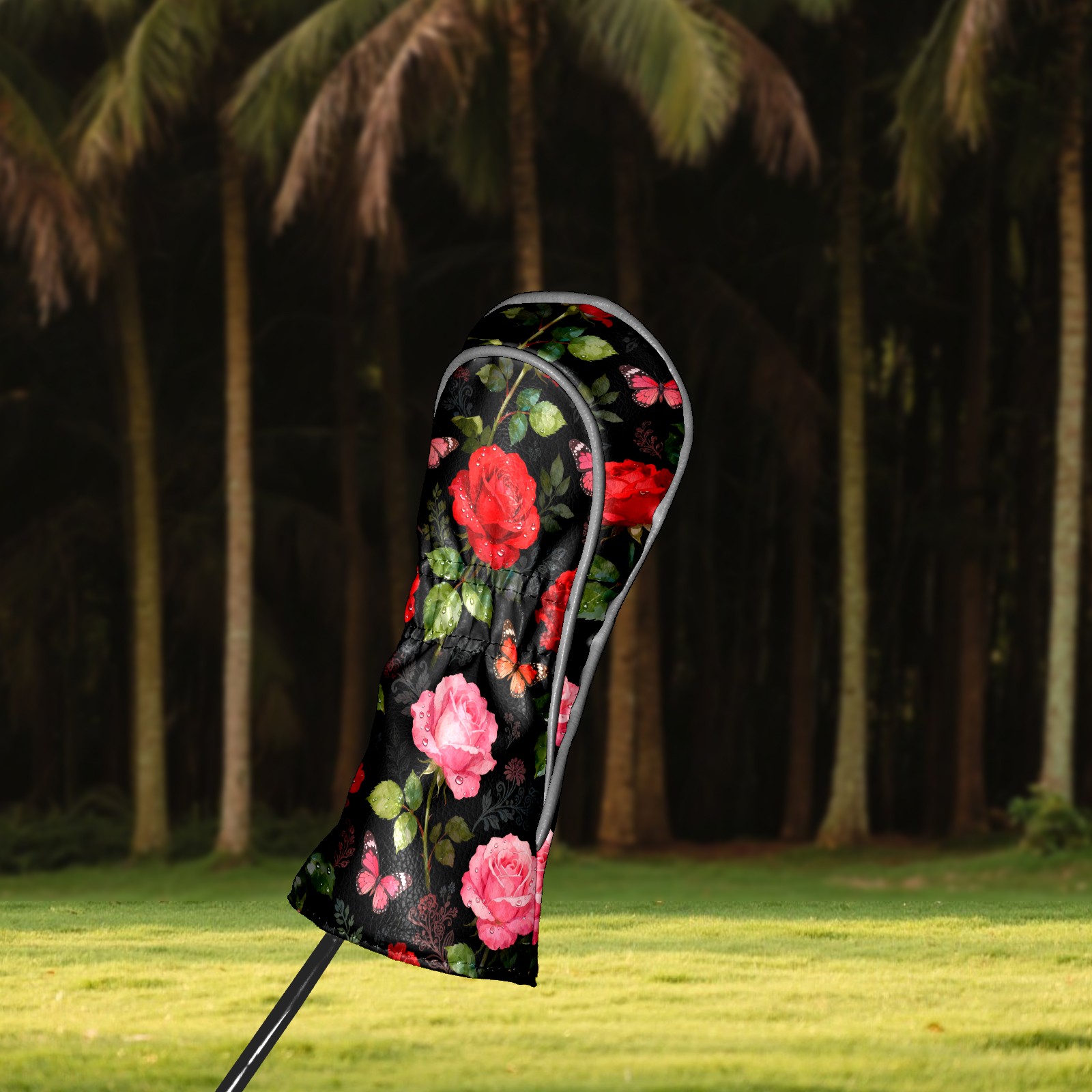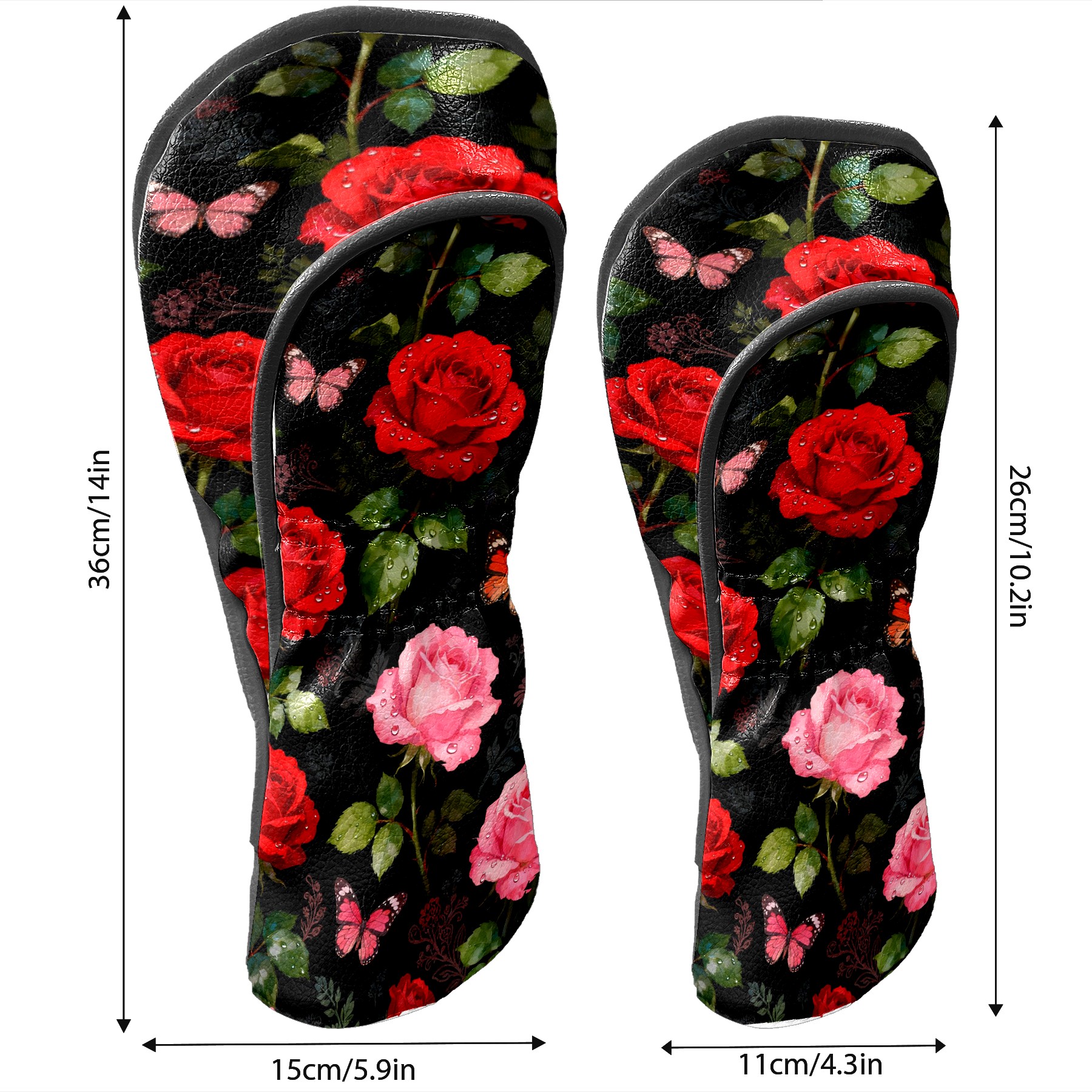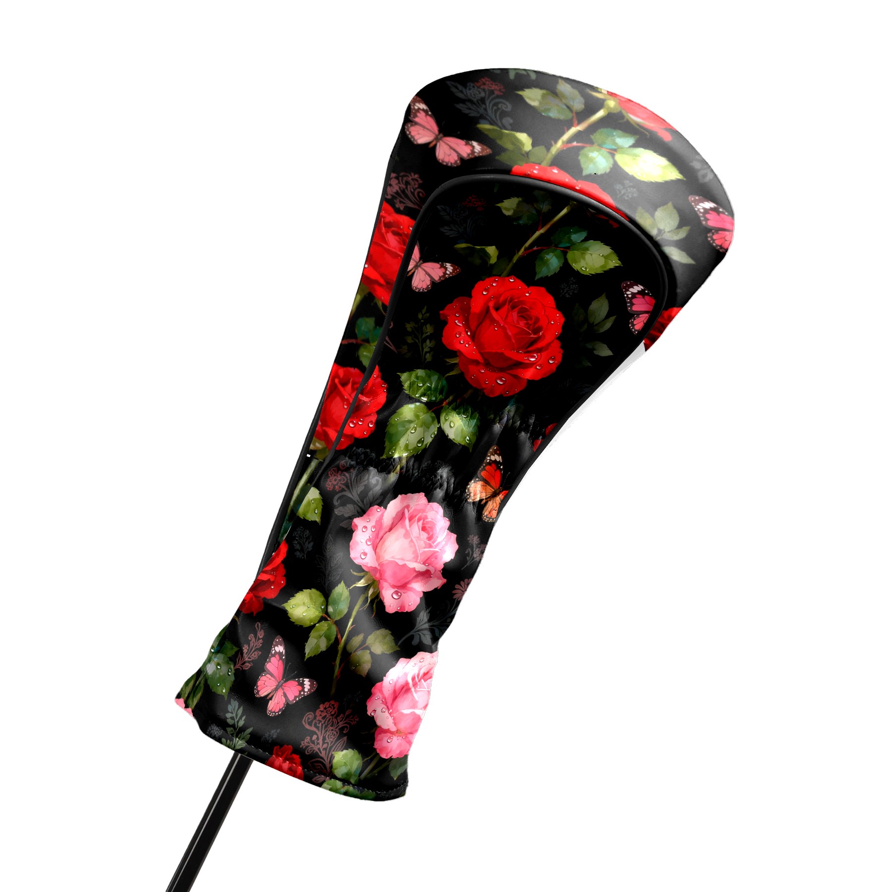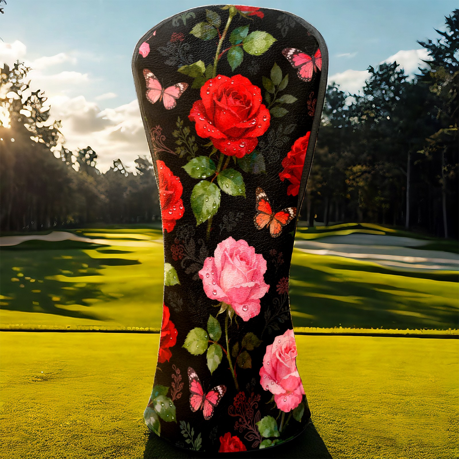 Golf Driver Head Covers Fairway Wood Headcovers, Premium Leather Golf Club Covers with Anti-Scratch Lining 1/3/5 Wood Cover for golf clubs for Women Men (Red Pink Roses)