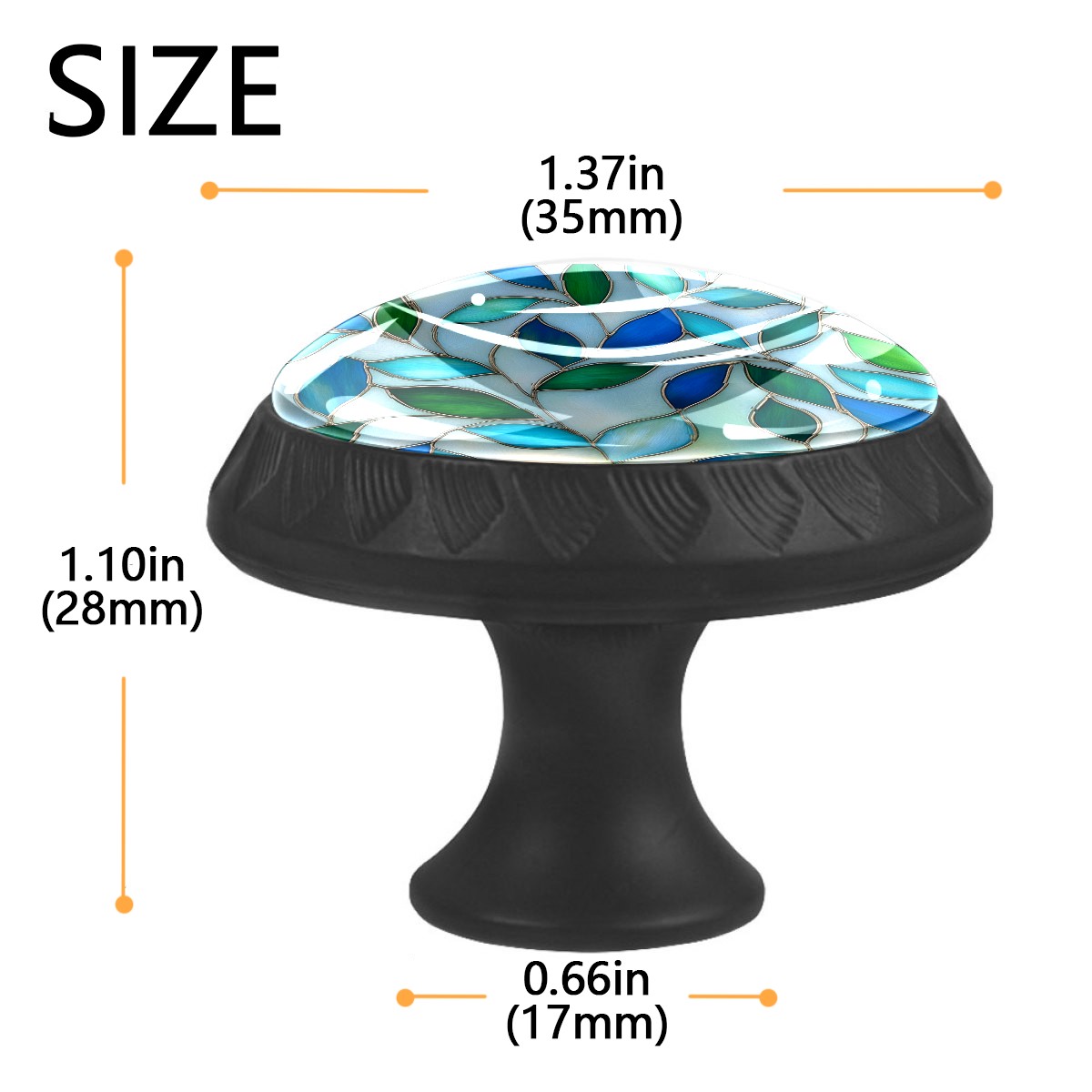 • <p>Decorative Drawer Knobs Pulls Cabinet&nbsp;Handles</p> <p>Package Contents:</p> <p>4 x Cabinet&nbsp; Handles</p> <p>4 x 1.1’’ &nbsp; M ounting Screws &nbsp;</p> <p>4 x 1.37’’ &nbsp;Matching Screws </p> <p>Material:</p> <p>Crafted with a crystal glass surface, combined with ABS plastic and quality materials for durability and aesthetics.</p> <p>Size:</p> <p>Each knob measures 1.37 inches in width by 1.10 inches in height, fitting most standard drawers and cabinet doors.</p> <p>Screw Lengths:</p> <p>Available in two lengths: 1.1 inches and 1.37 inches, to accommodate various board thicknesses.</p> <p>Easy to Install:</p> <p>Each drawer knob comes with a fitting screw, making installation easy without the need for additional accessories.</p> <p>Wide Application:</p> <p>These drawer pulls are versatile for use in various home settings, including cabinets, dressers, drawers, wardrobes, nightstands, closets, bookshelves, kitchens, bathrooms, bedrooms, living rooms, and more,&nbsp; adding consistency and sophistication to your home decor.</p>