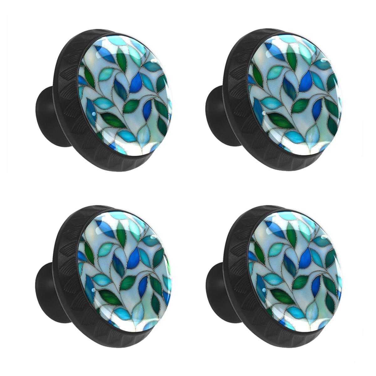 4 Pack Cabinet Knobs Leaf Teal Blue Drawer Pulls Crystal Glass Round Knobs Handles for Dressers Drawer Bathroom Kitchen Cupboards Wardrobes Hardware Furniture Knobs