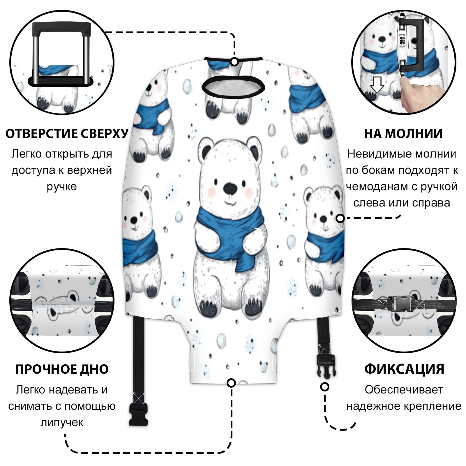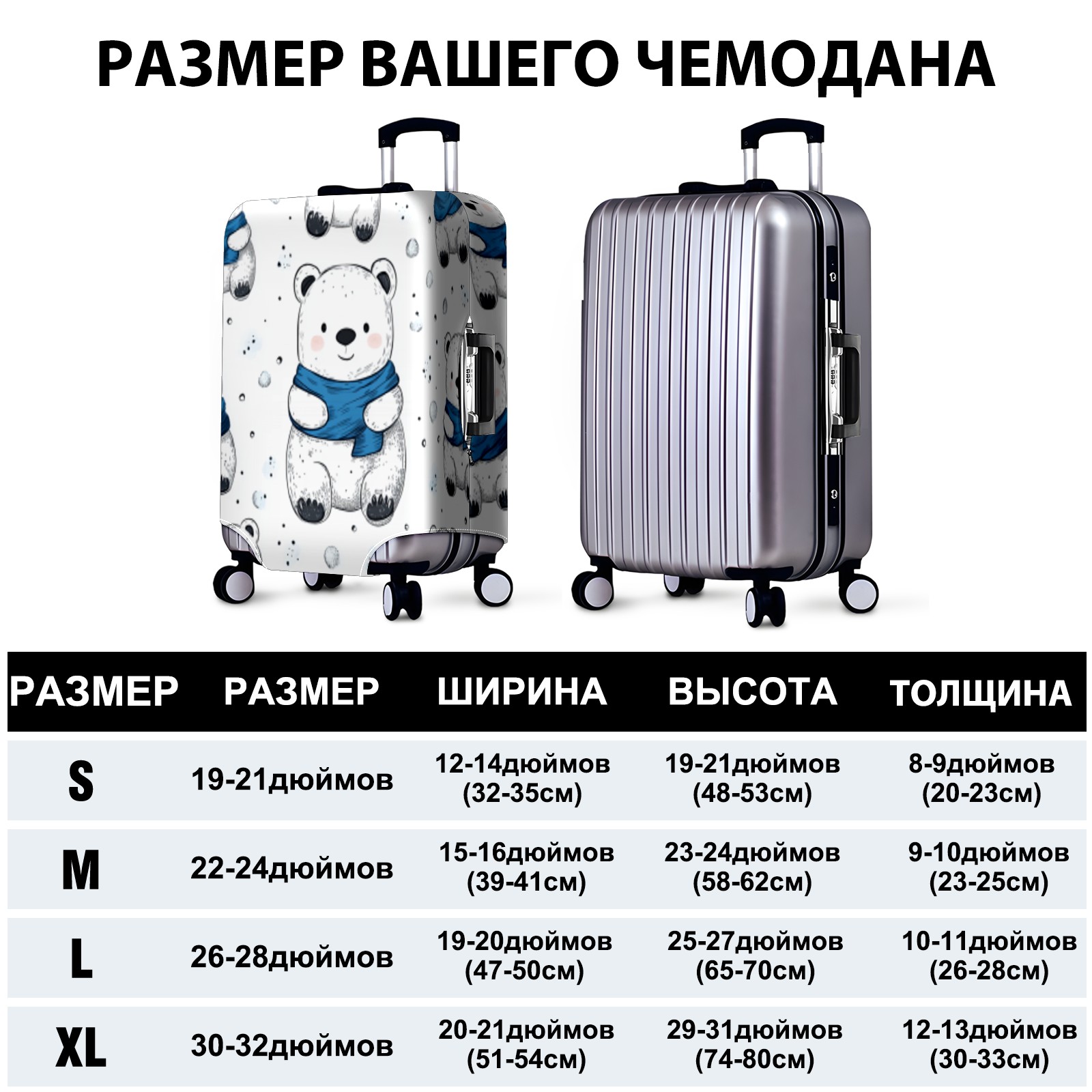 • Чемоданный чехол – незаменимый аксессуар для отдыха и деловых поездок. Плотный чехол специально разработан для защиты вашего чемодана от повреждений во время транспортировки. Изготовлен из высокоплотной, эластичной ткани с отличной растяжимостью, обеспечивает идеальную посадку на большие пластиковые и тканевые чемоданы на колесиках. Этот прочный и яркий аксессуар предохраняет от царапин, грязи и внешних воздействий. Он надежно защищает чемодан от повреждений и истирания в поездках. Чехол выпускается в 4 размерах: S, M, L и XL, вы можете выбрать подходящий вариант для любого типа чемодана, что гарантирует идеальную посадку и надежную защиту. По обеим сторонам чехла расположены симметричные скрытые молнии. В верхней части имеется удобное отверстие для телескопической ручки, поэтому вы можете пользоваться ручкой без снятия чехла. В нижней части чехол закрепляется на липучку и фиксирующие застёжки, обеспечивая надёжную фиксацию и подходя для чемоданов с ручками с любой стороны. Этот чехол подходит для мужских, женских и детских чемоданов на колесиках, обеспечивая полноценную защиту и спокойствие в поездках. Красивый защитный чехол для чемодана не только практичен, но и является стильным аксессуаром. Он придаёт вашему чемодану индивидуальность, делает его более привлекательным и запоминающимся. Вы можете выбрать чехол по своему стилю и вкусу, а оригинальные принты позволят легко найти свой чемодан на ленте аэропорта. Мы предлагаем чехлы разных размеров (S, M, L, XL) и множества расцветок – у нас точно найдётся подходящий вариант для вас.