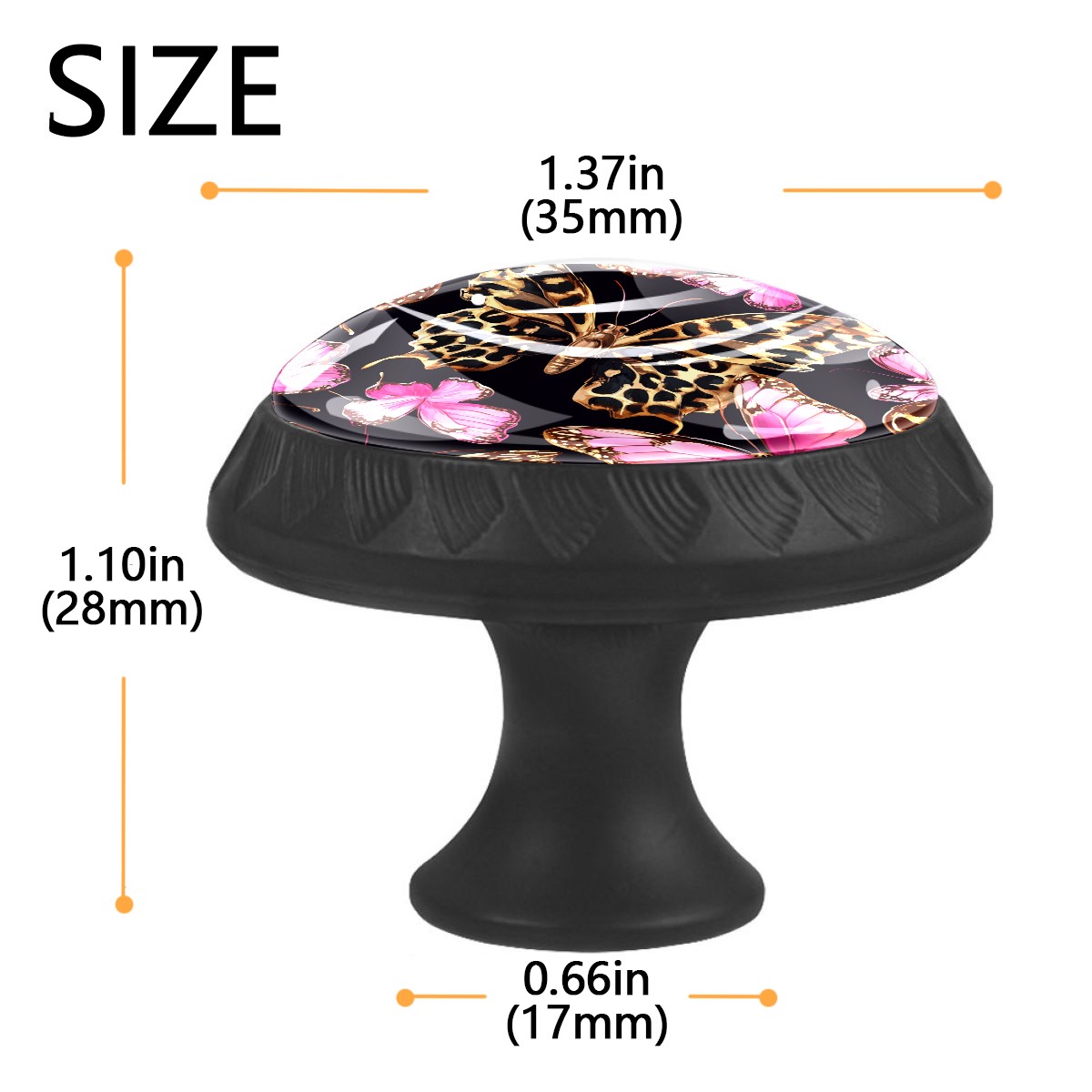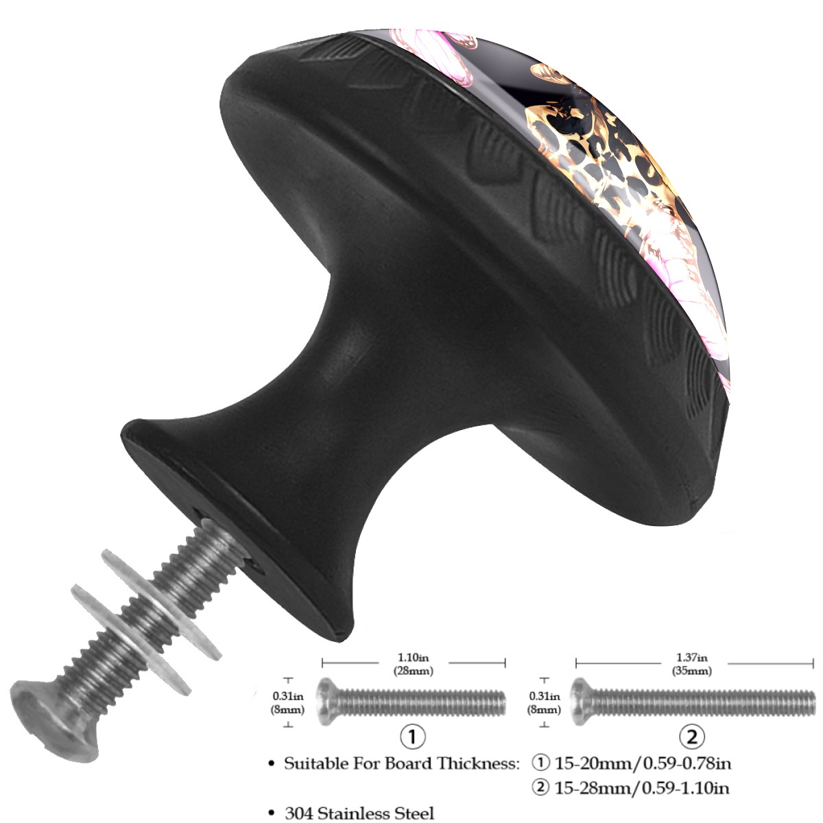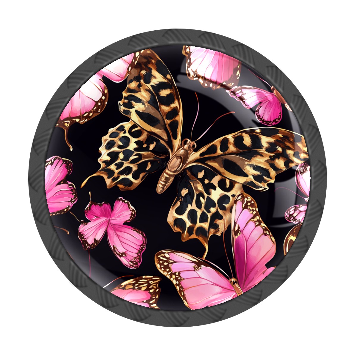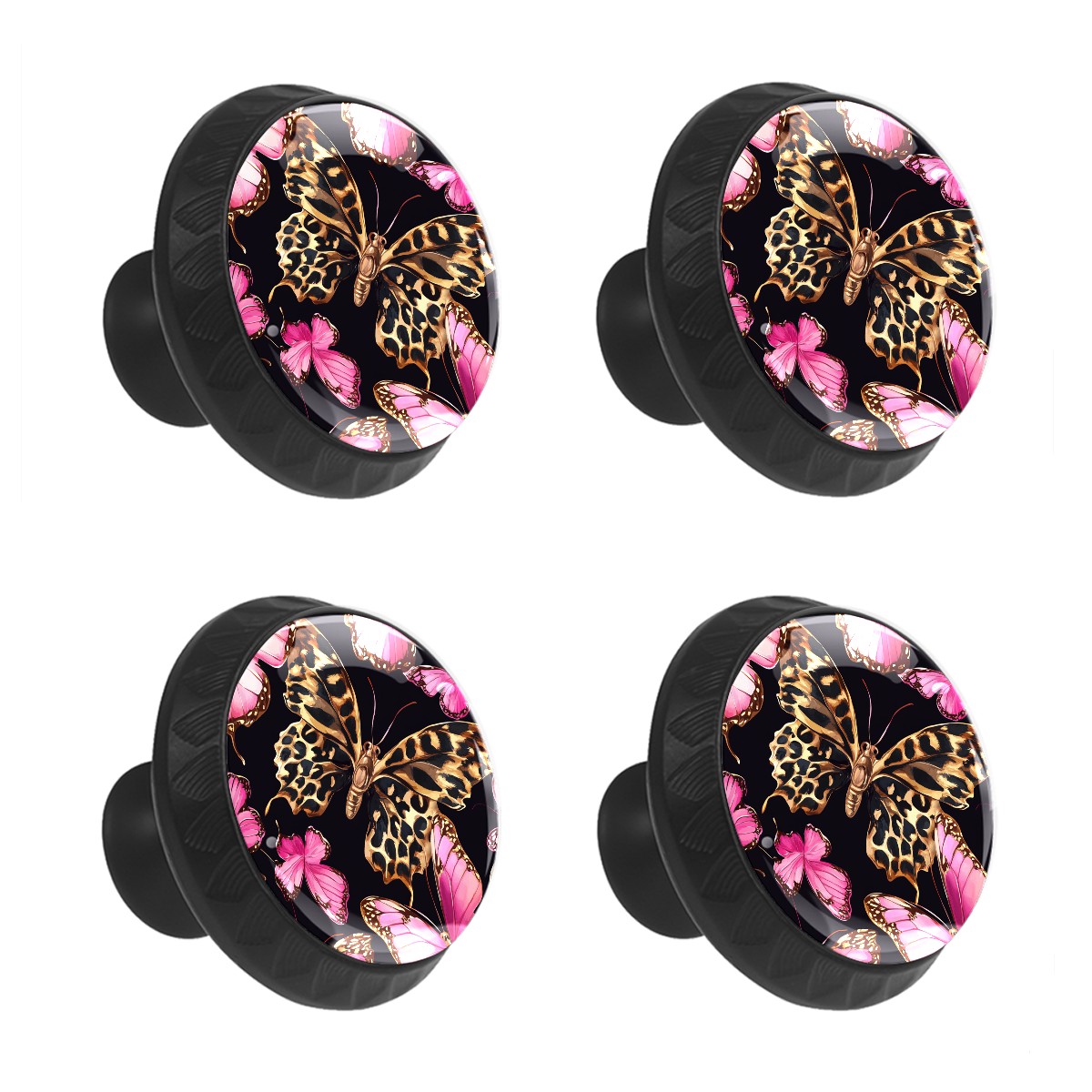 4 Pack Cabinet Knobs Leopard Pink Butterfly Drawer Pulls Crystal Glass Round Knobs Handles for Dressers Drawer Bathroom Kitchen Cupboards Wardrobes Hardware Furniture Knobs