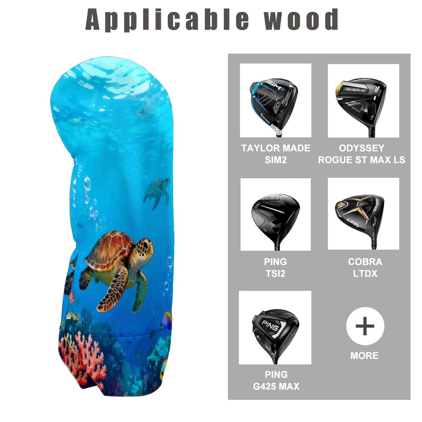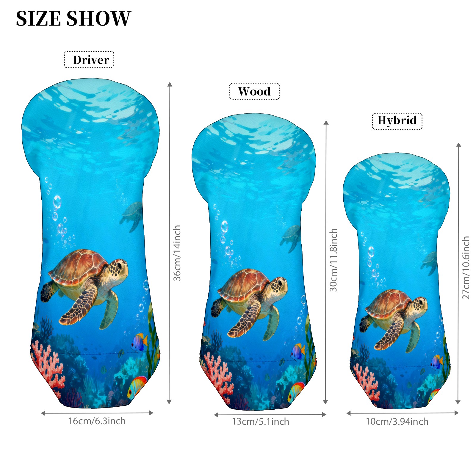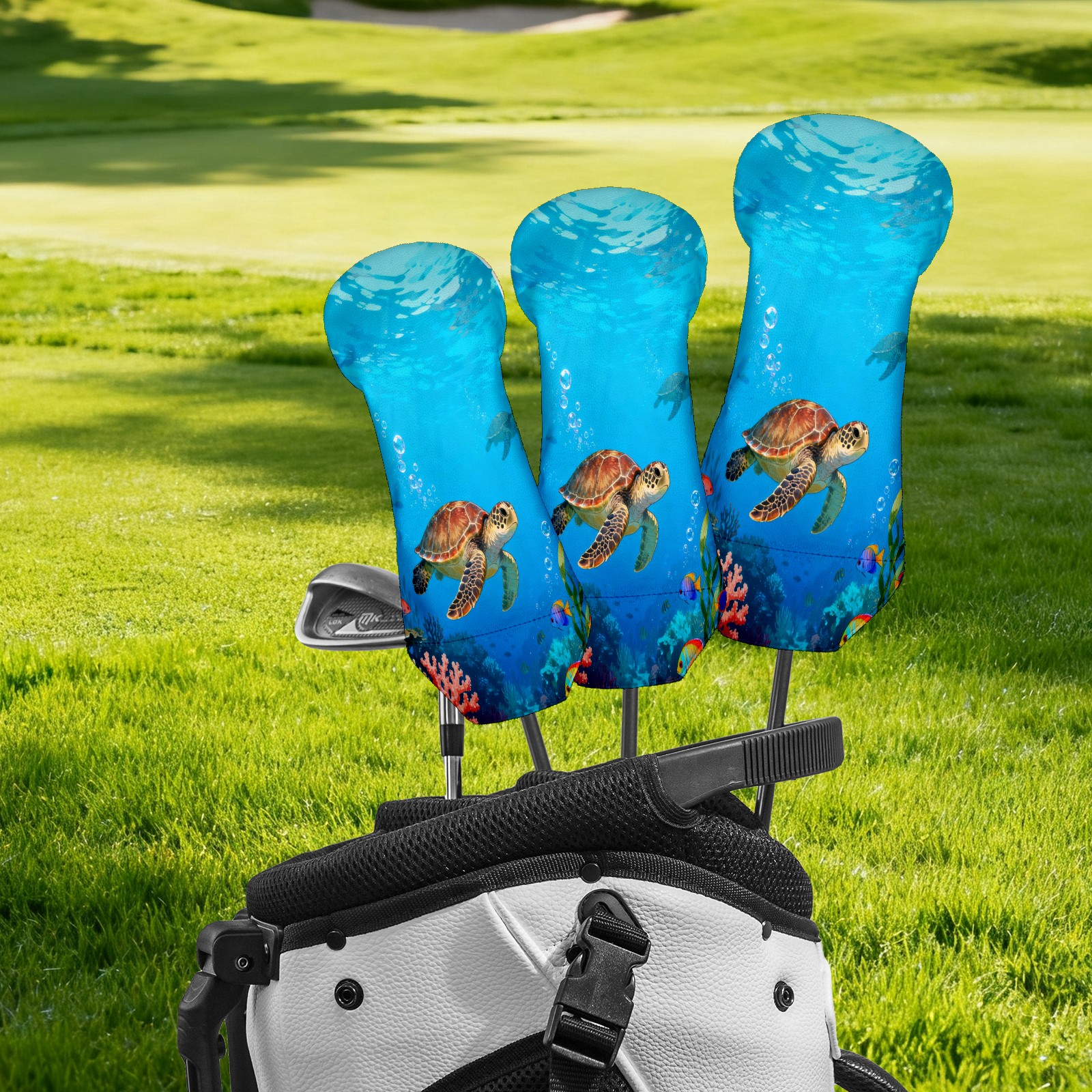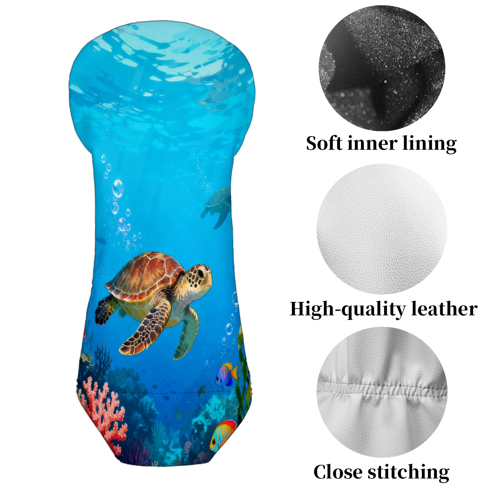 Golf Headcover Underwater Sea Turtle Driver Cover Premium Leather Golf Club Head Cover for Woods and Driver, Club Covers Protection for Women Men