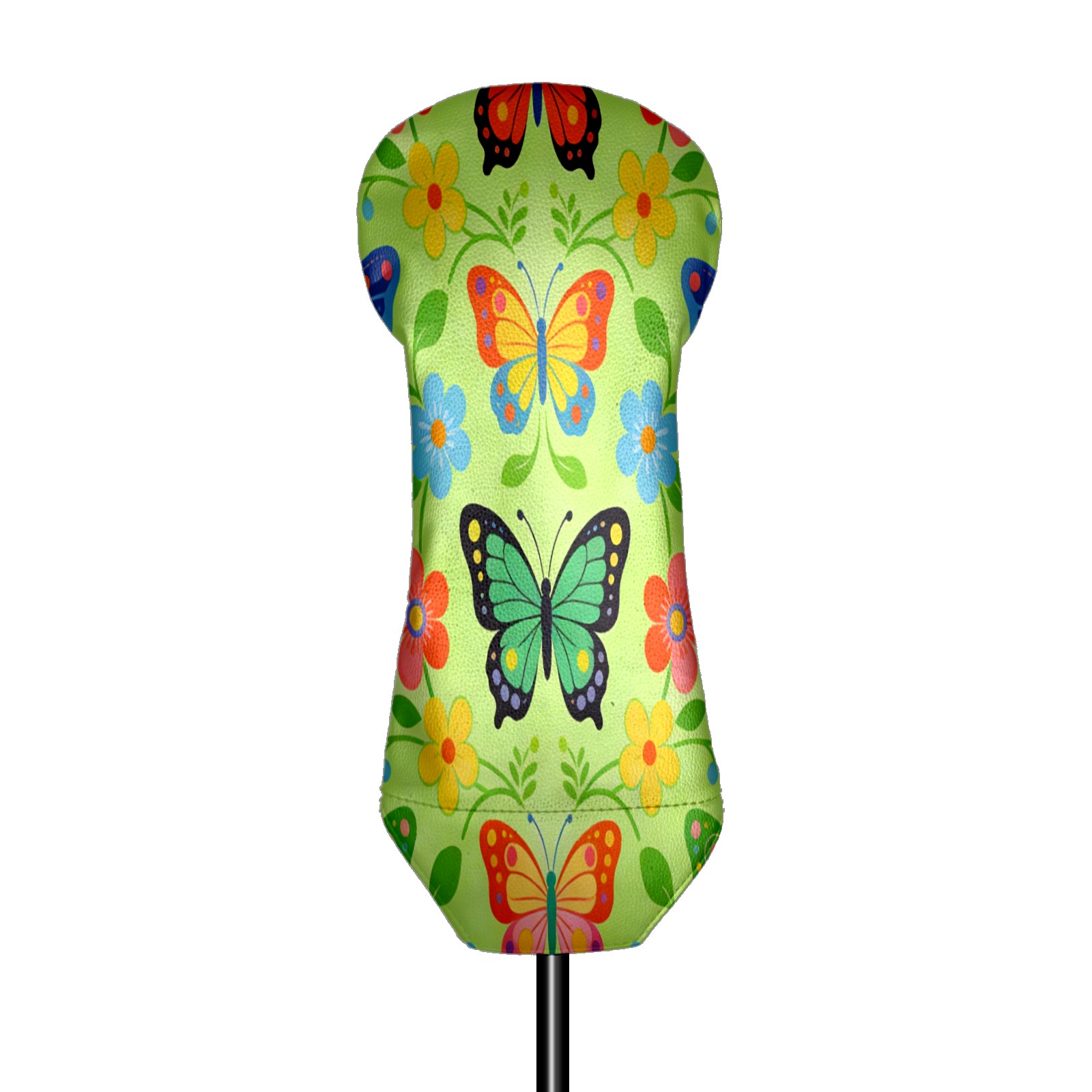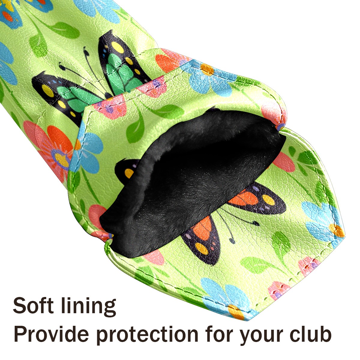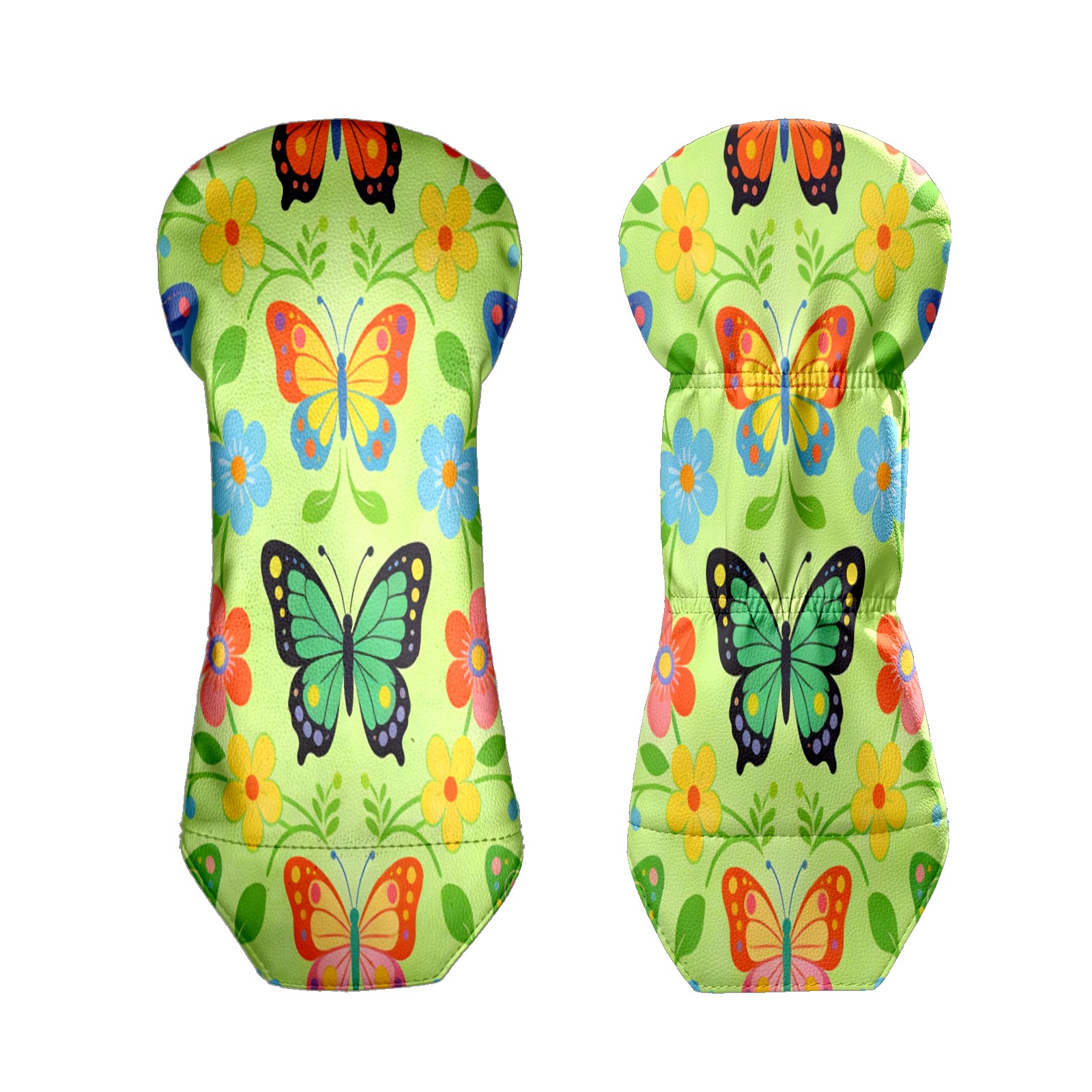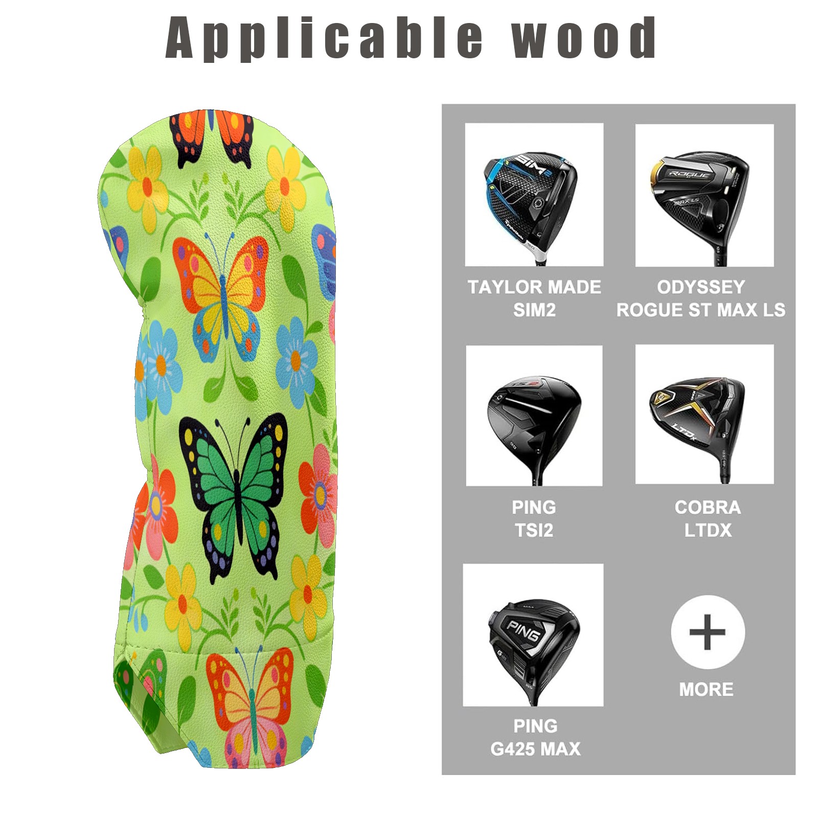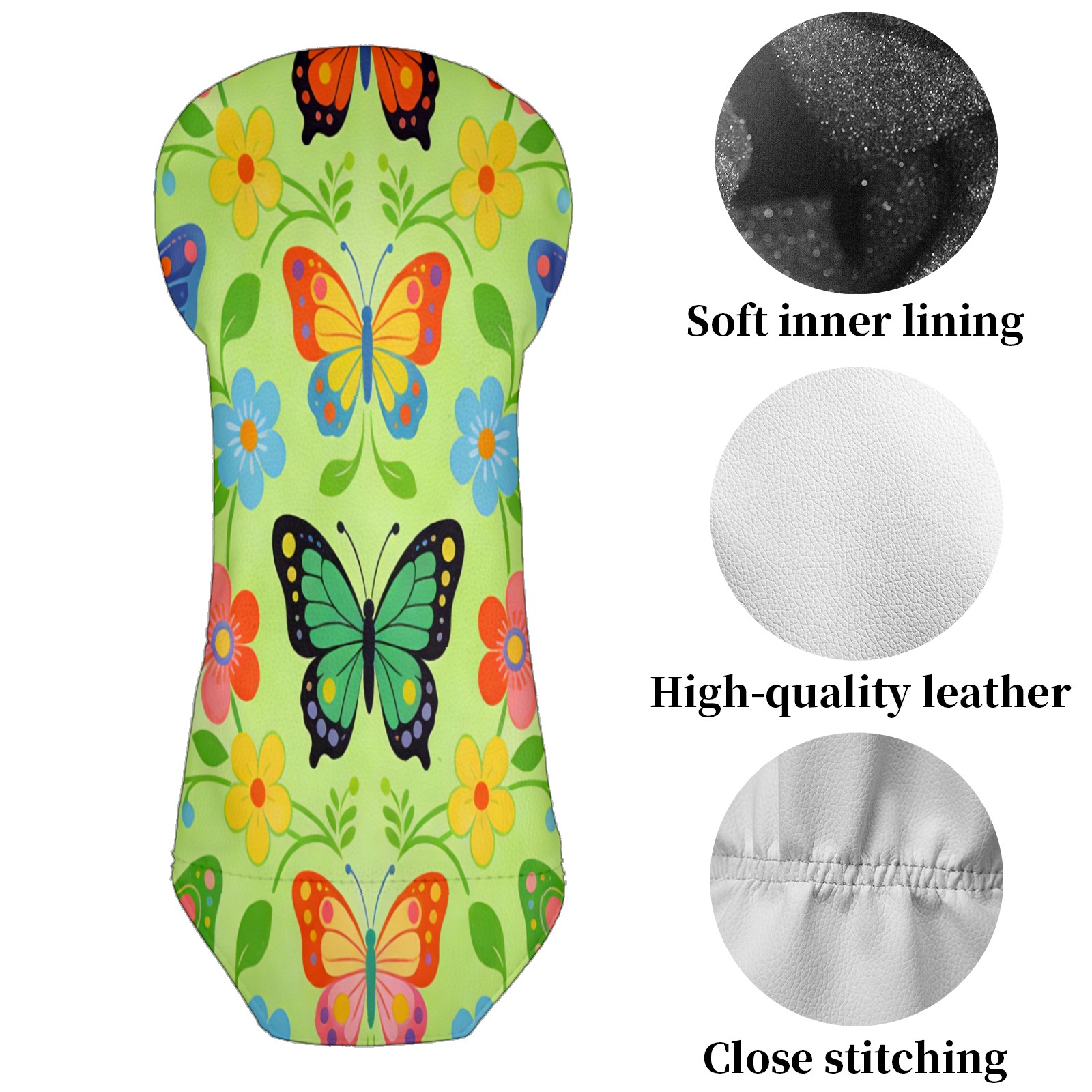 Golf Headcover Floral Butterfly Green Driver Cover Premium Leather Golf Club Head Cover for Woods and Driver, Club Covers Protection for Women Men