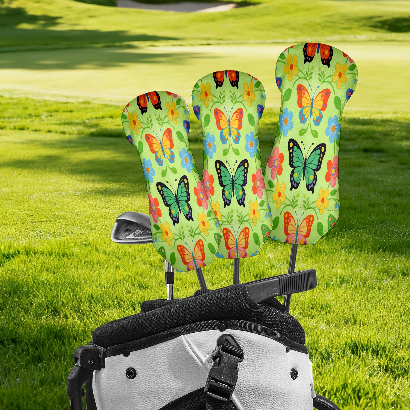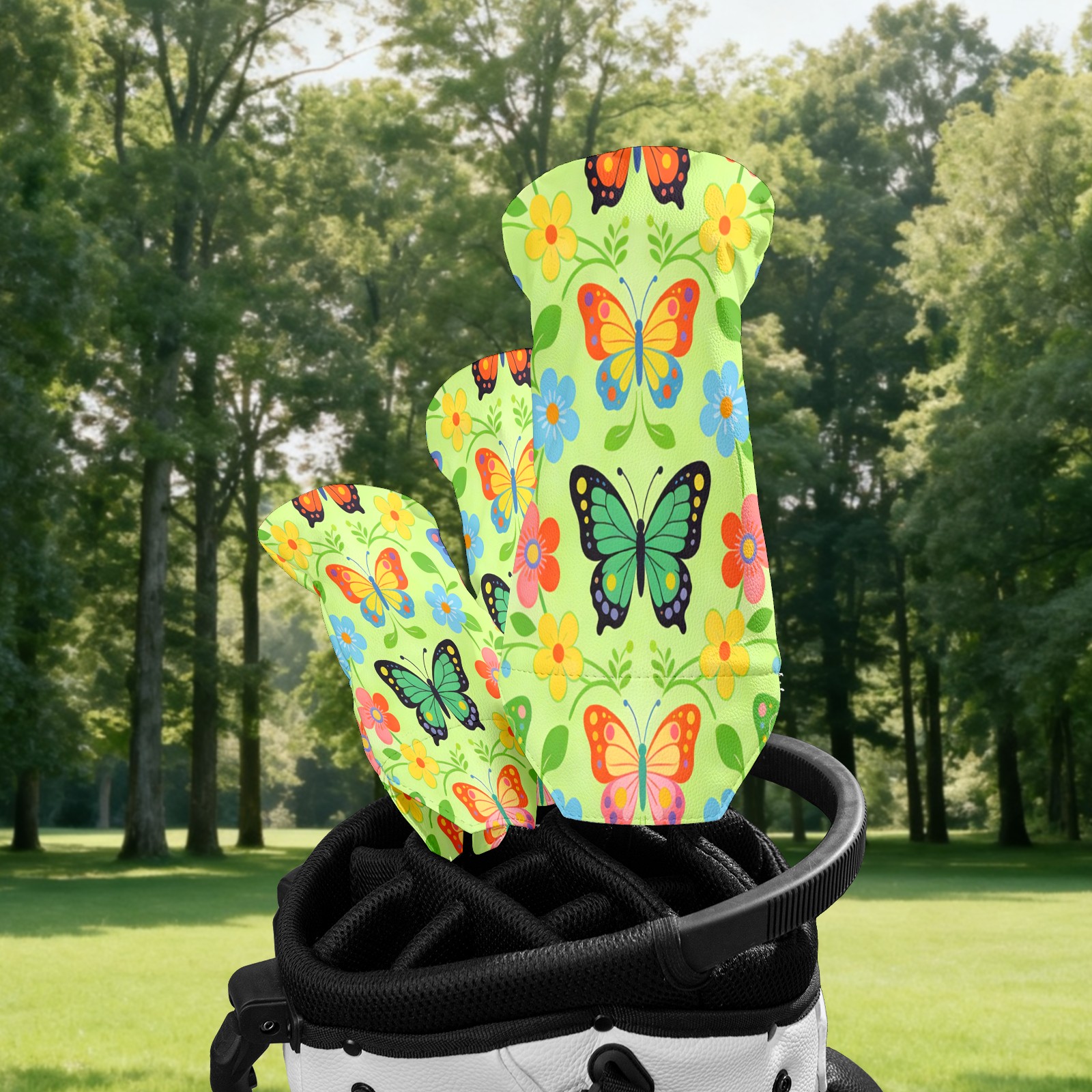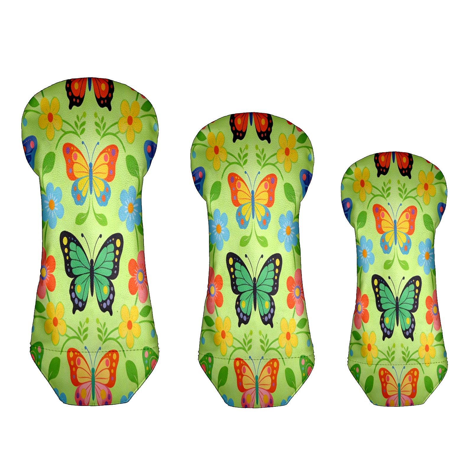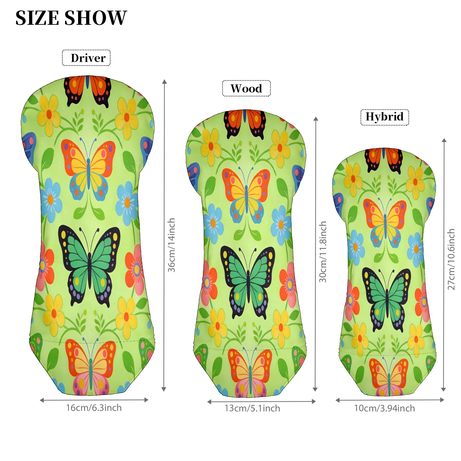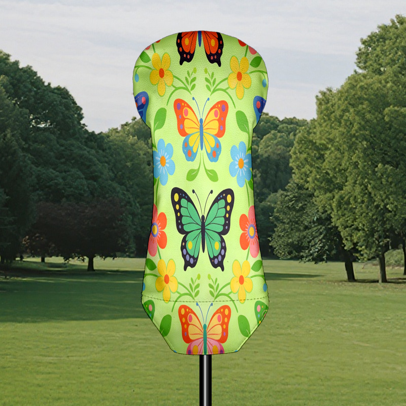 Golf Headcover Floral Butterfly Green Driver Cover Premium Leather Golf Club Head Cover for Woods and Driver, Club Covers Protection for Women Men