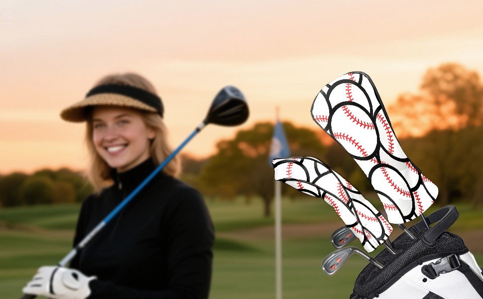 Golf Head Covers Leather Driver Headcovers, Premium Golf Club Covers with Anti-Scratch Lining 1/3/5 Wood Cover for golf clubs for Women Men (Baseball)
