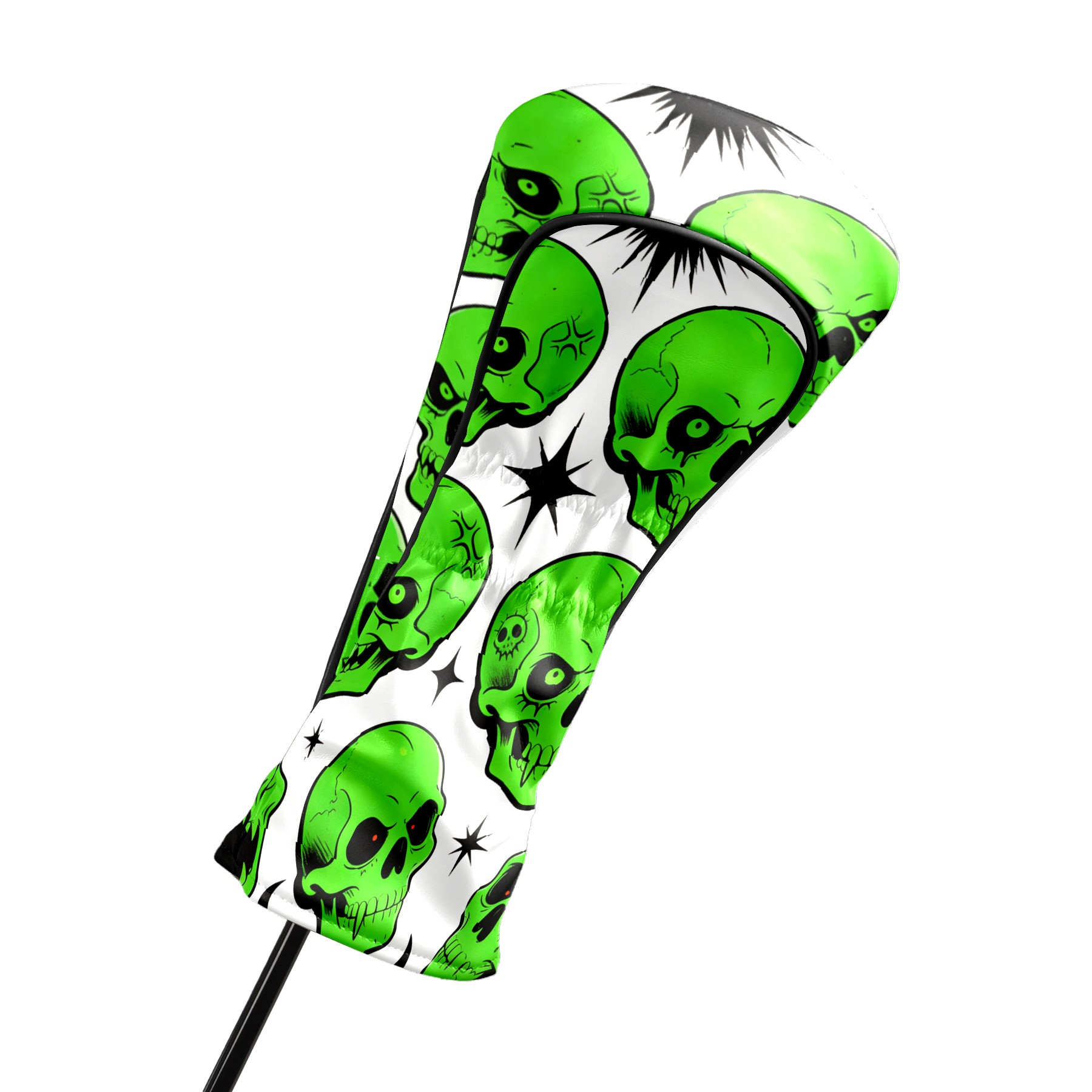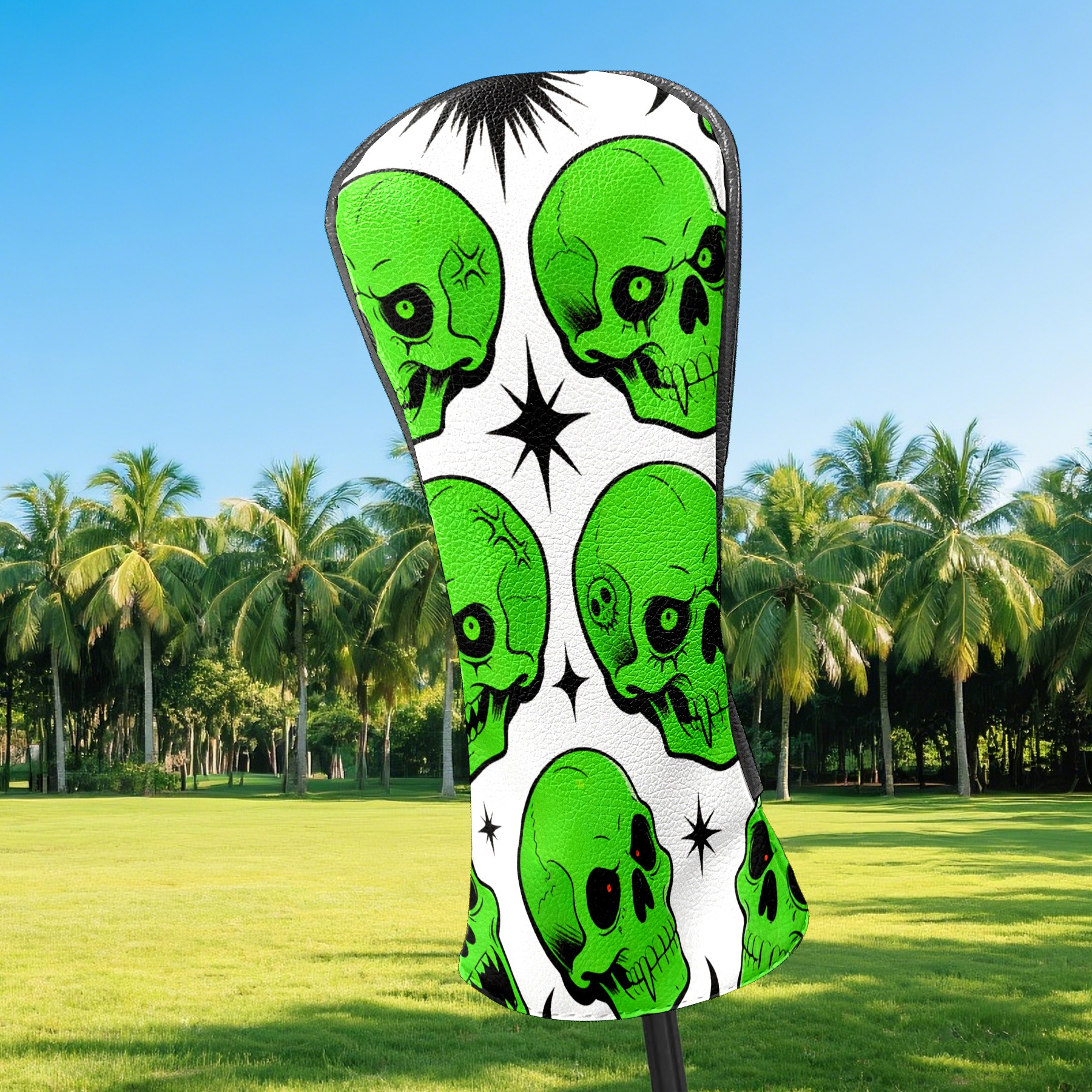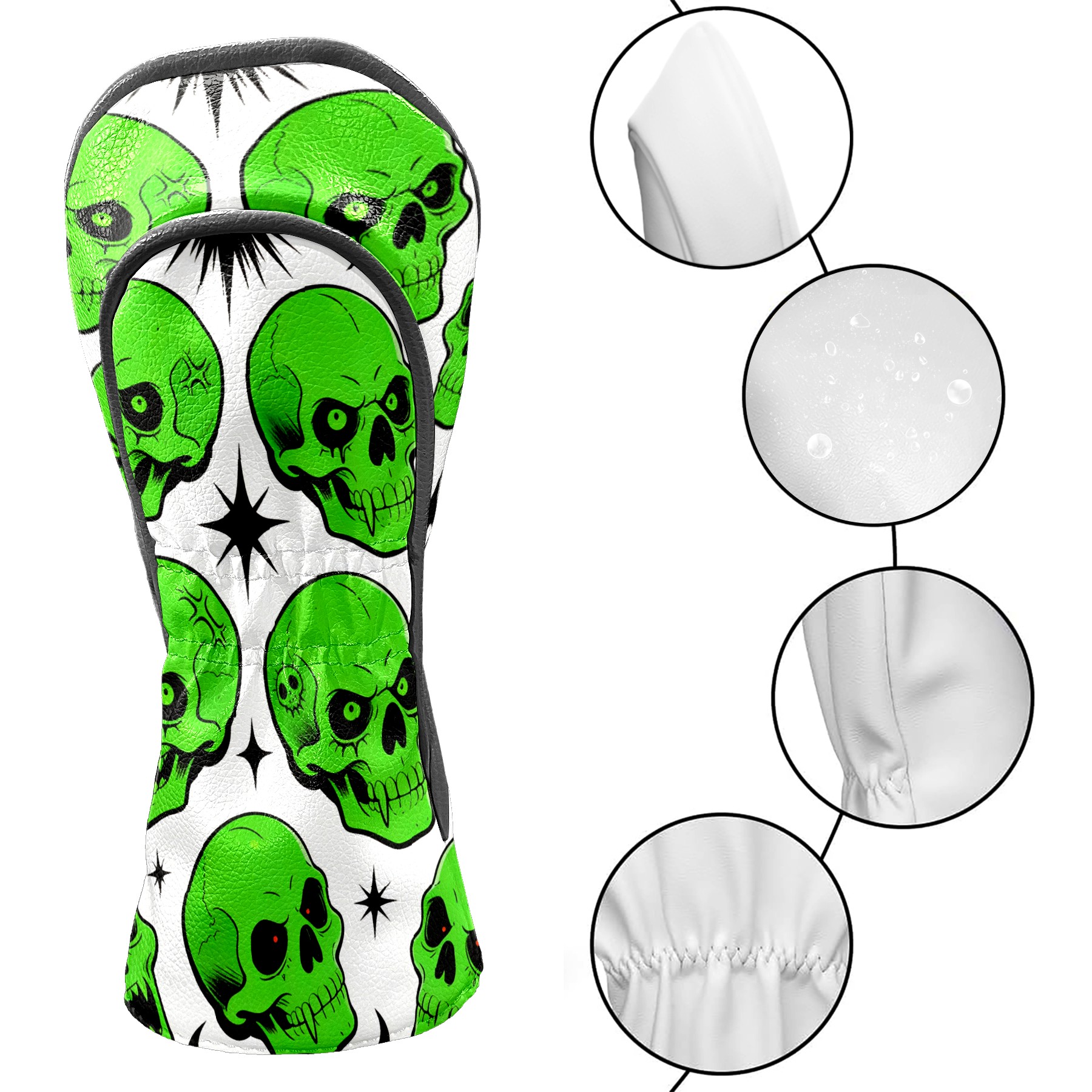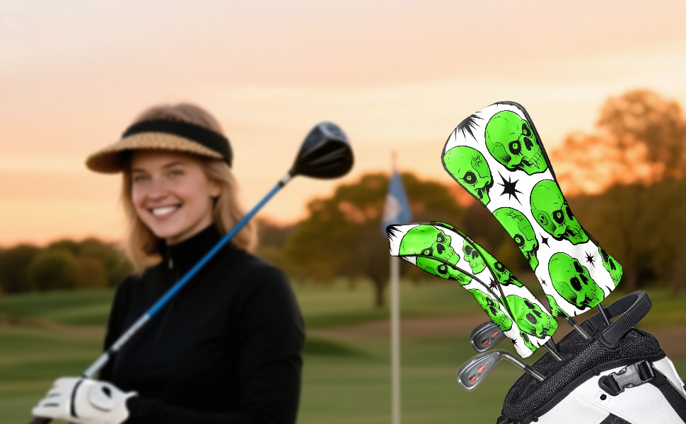 Golf Club Covers Premium Leather Driver Headcover, Golf Head Covers for Woods and Driver Waterproof Golf Headcovers with Anti-Scratch Lining for Women Men (Green Skulls)