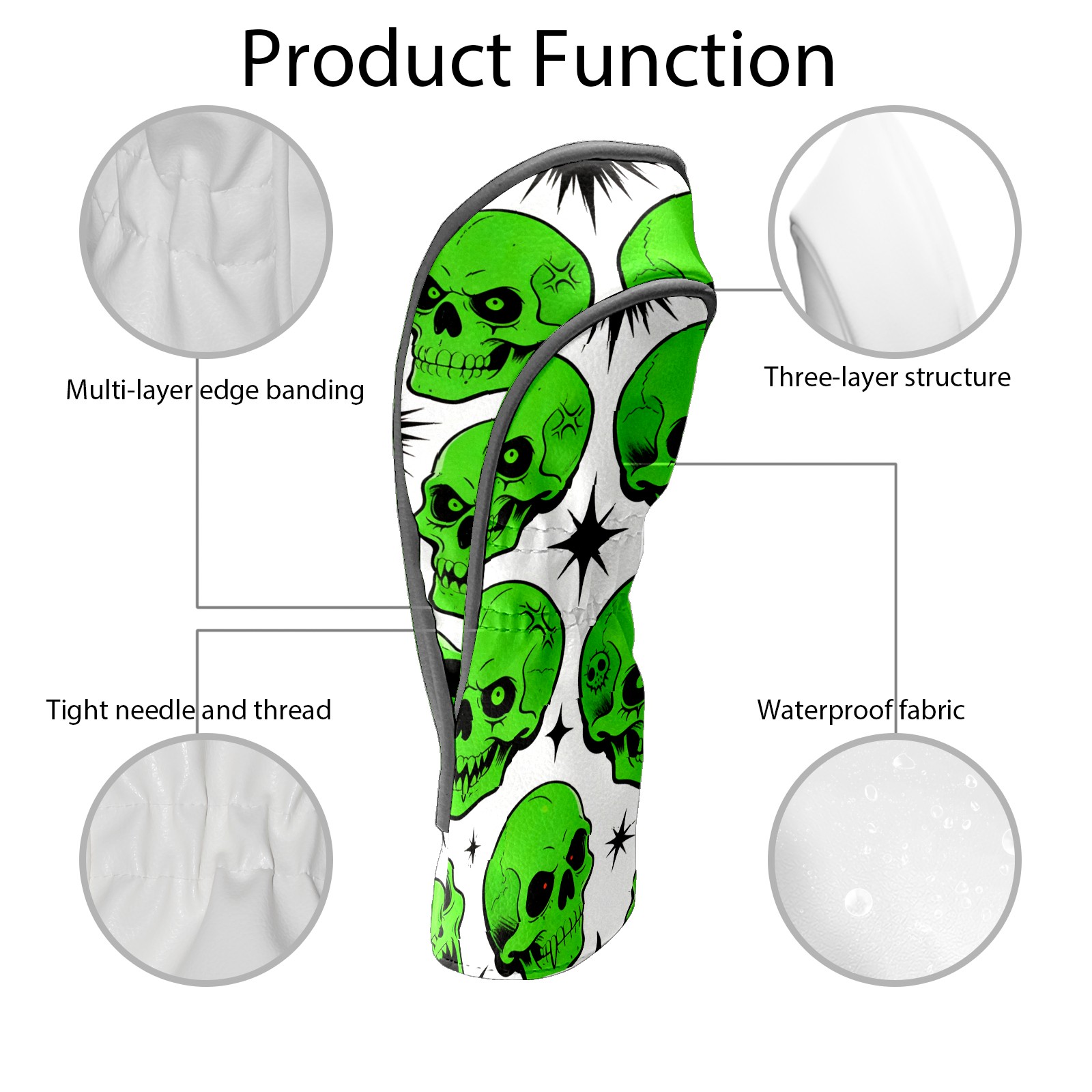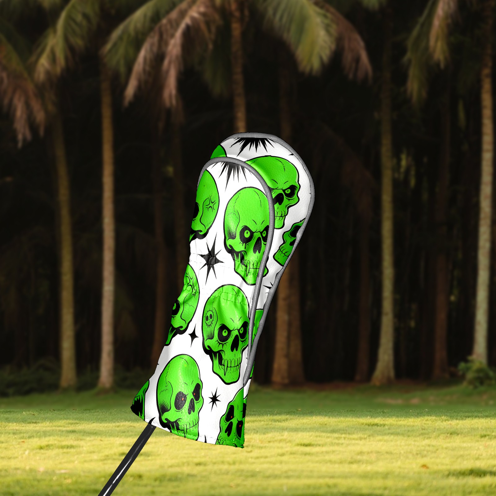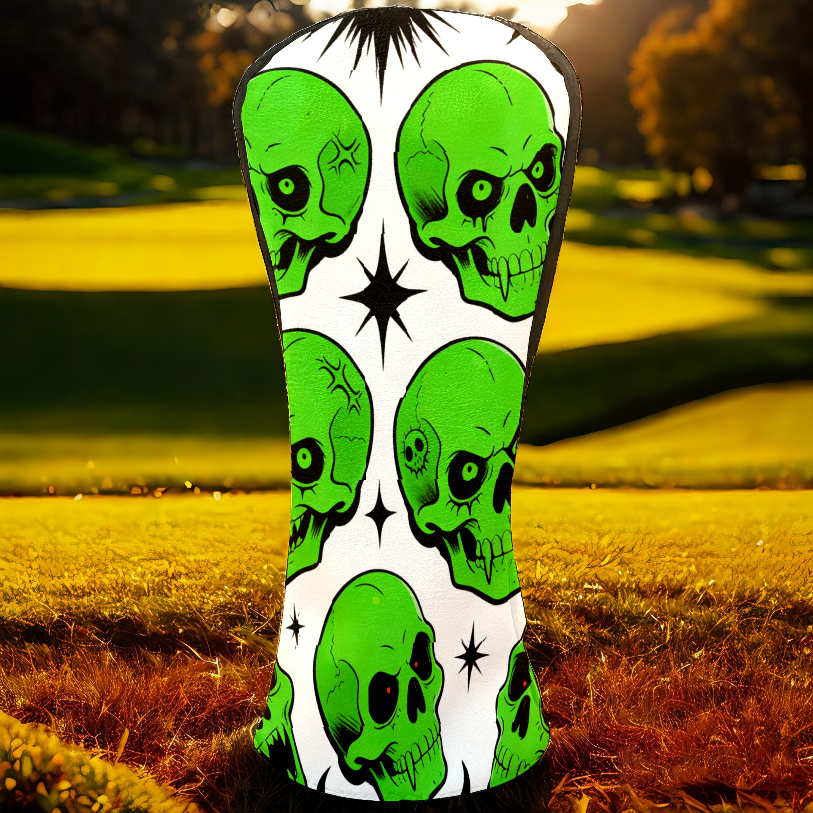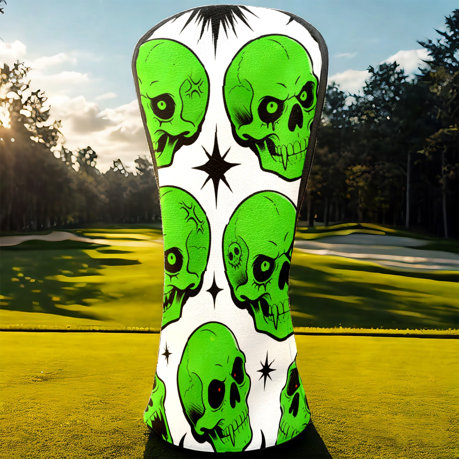 Golf Club Covers Premium Leather Driver Headcover, Golf Head Covers for Woods and Driver Waterproof Golf Headcovers with Anti-Scratch Lining for Women Men (Green Skulls)