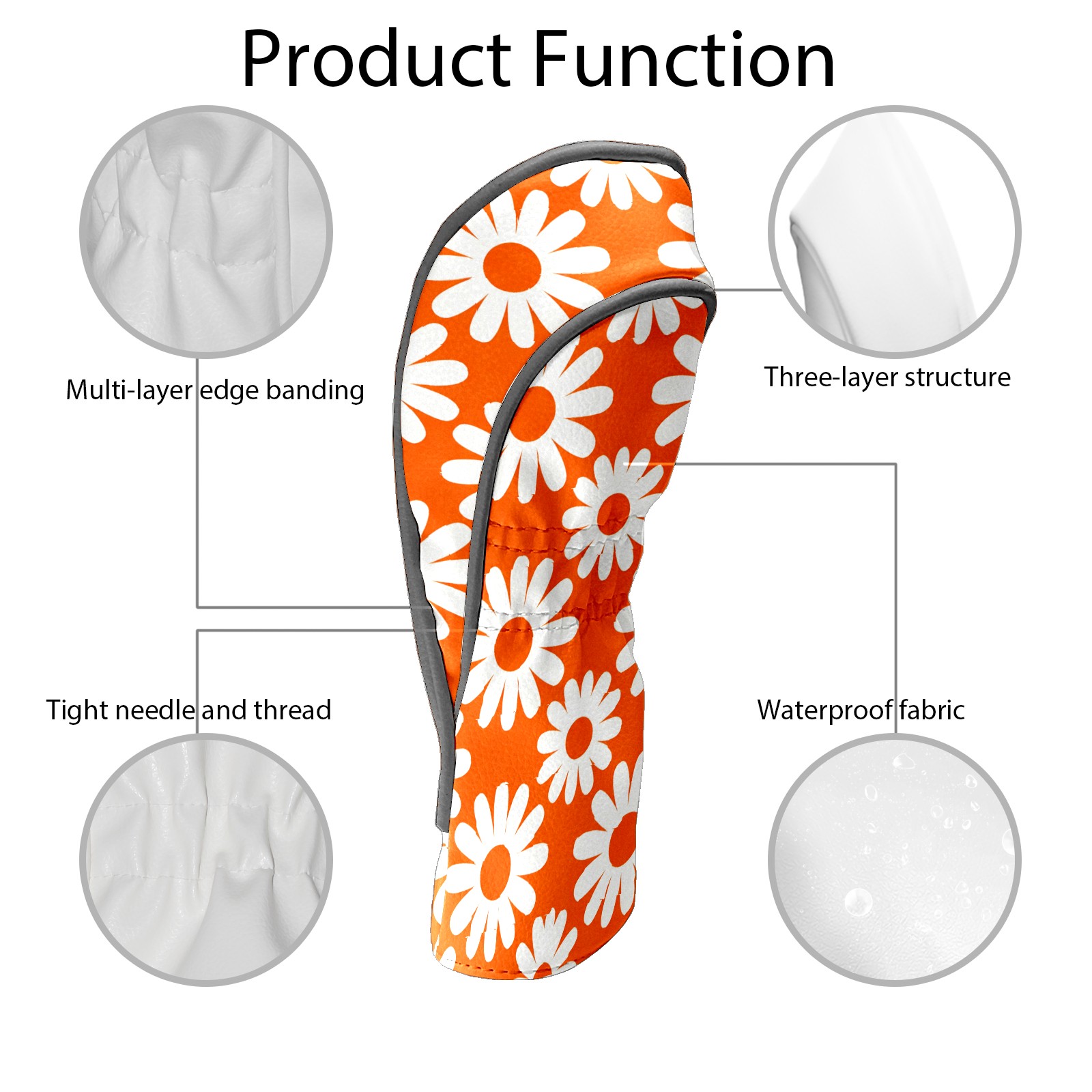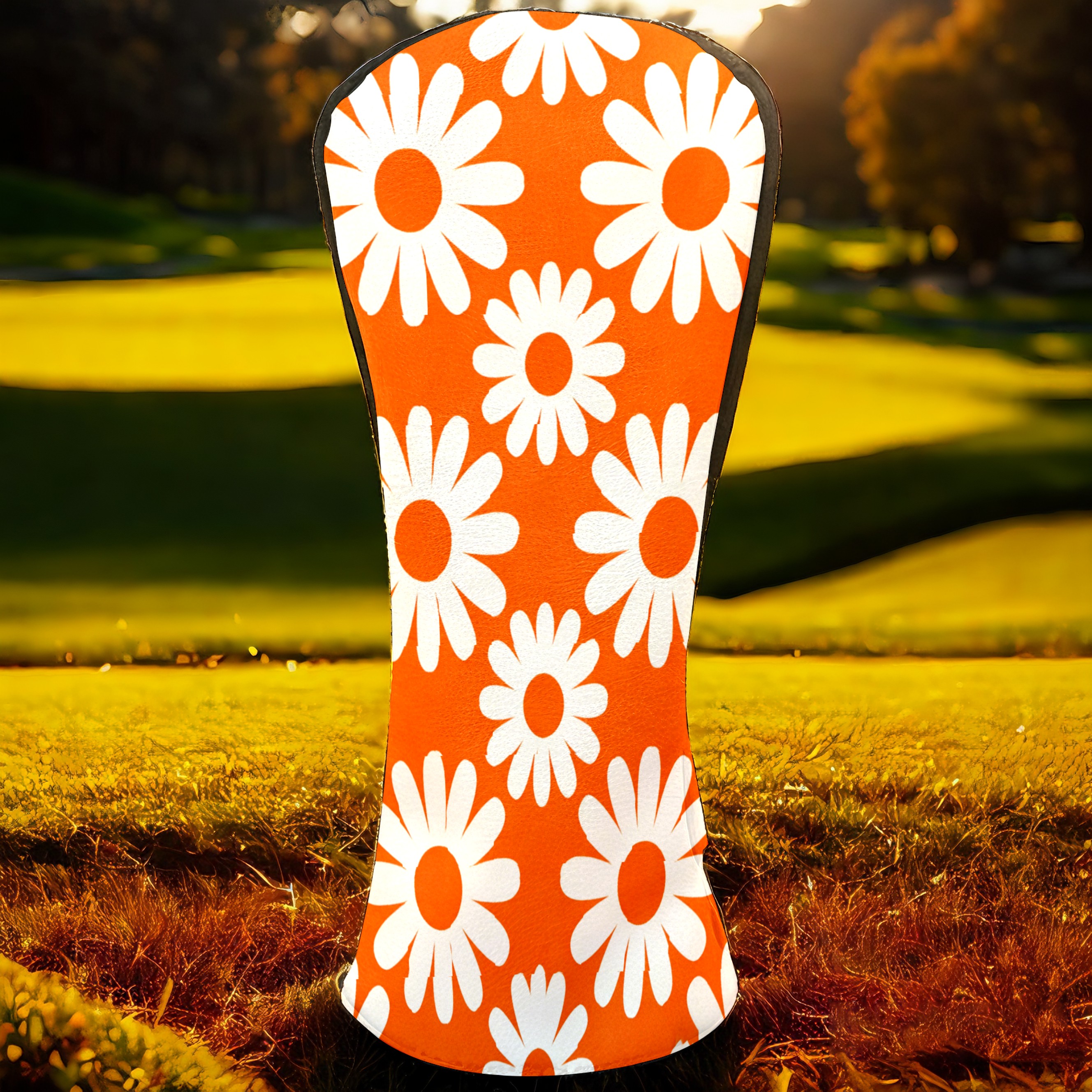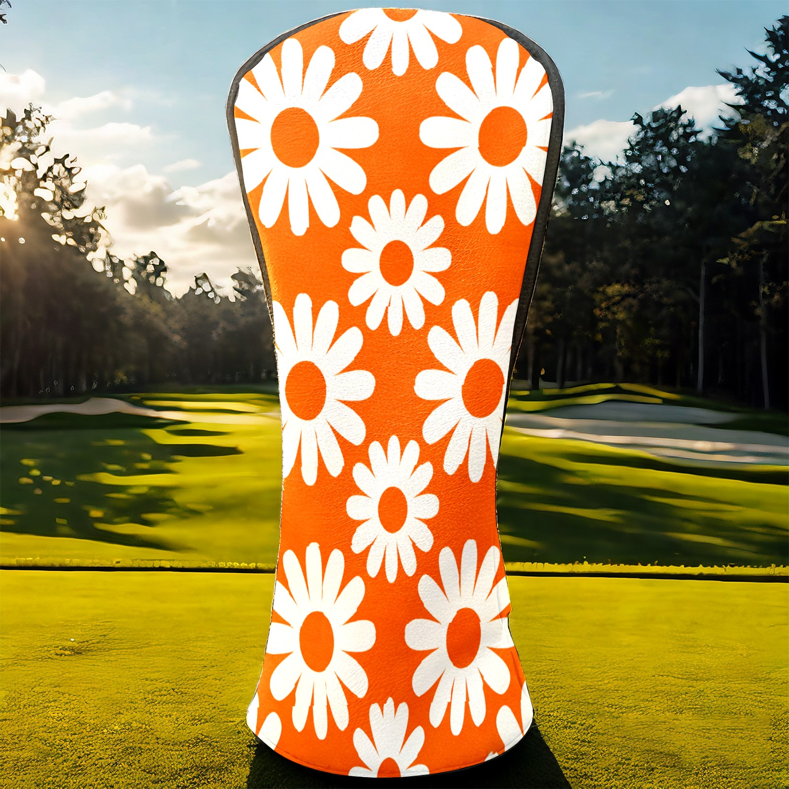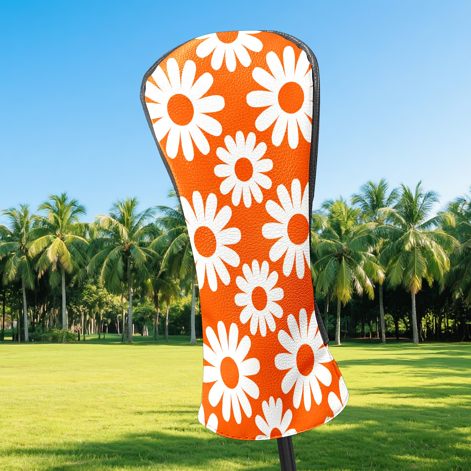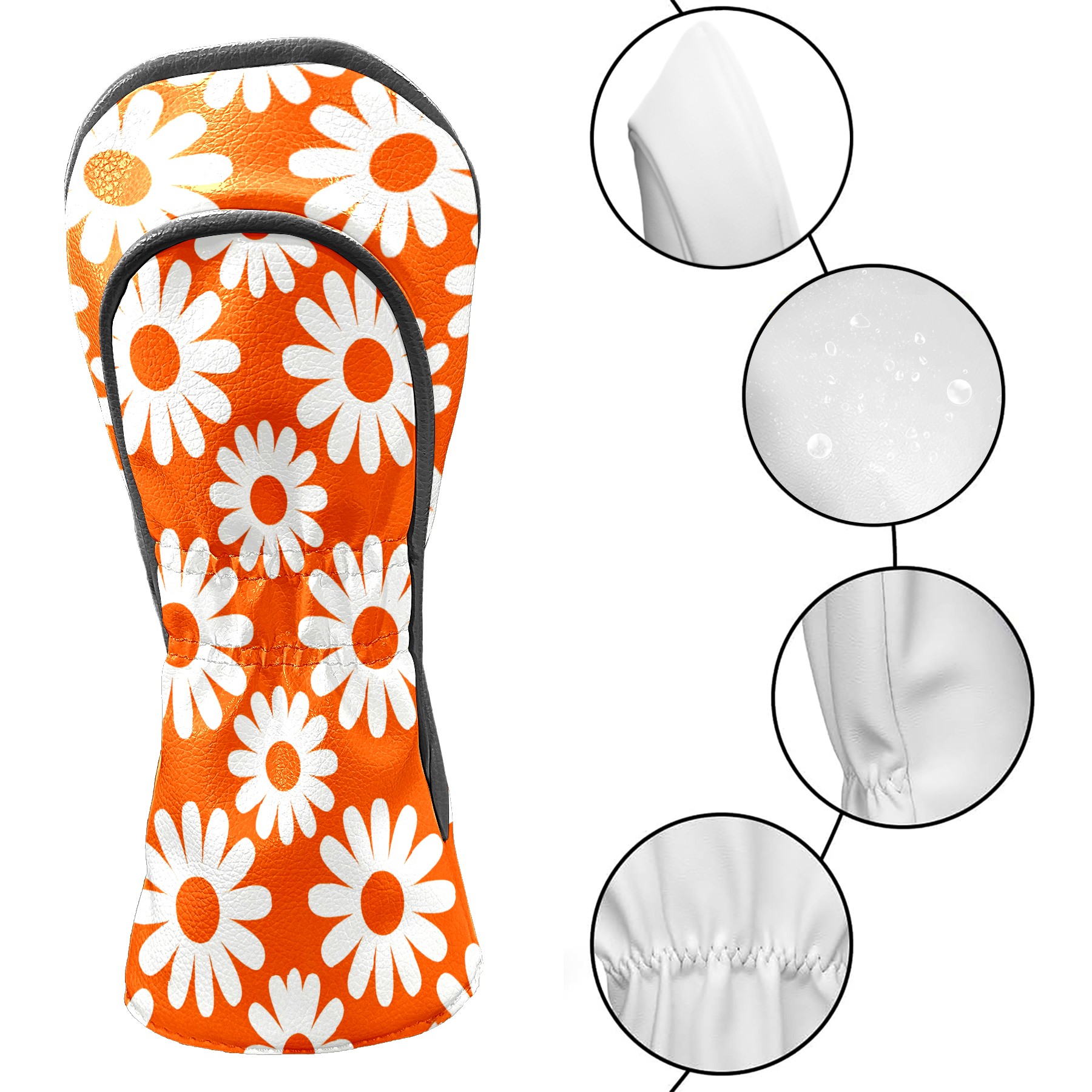 Golf Club Covers Premium Leather Driver Headcover, Golf Head Covers for Woods and Driver Waterproof Golf Headcovers with Anti-Scratch Lining for Women Men (Daisy Orange)