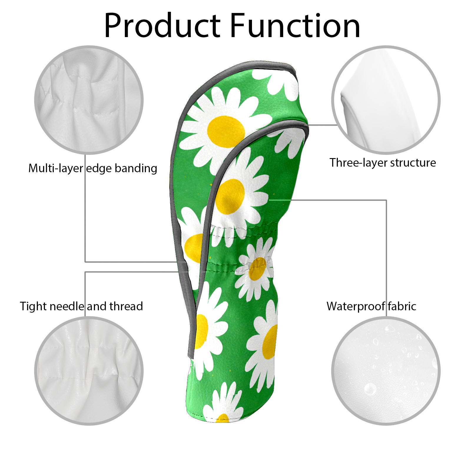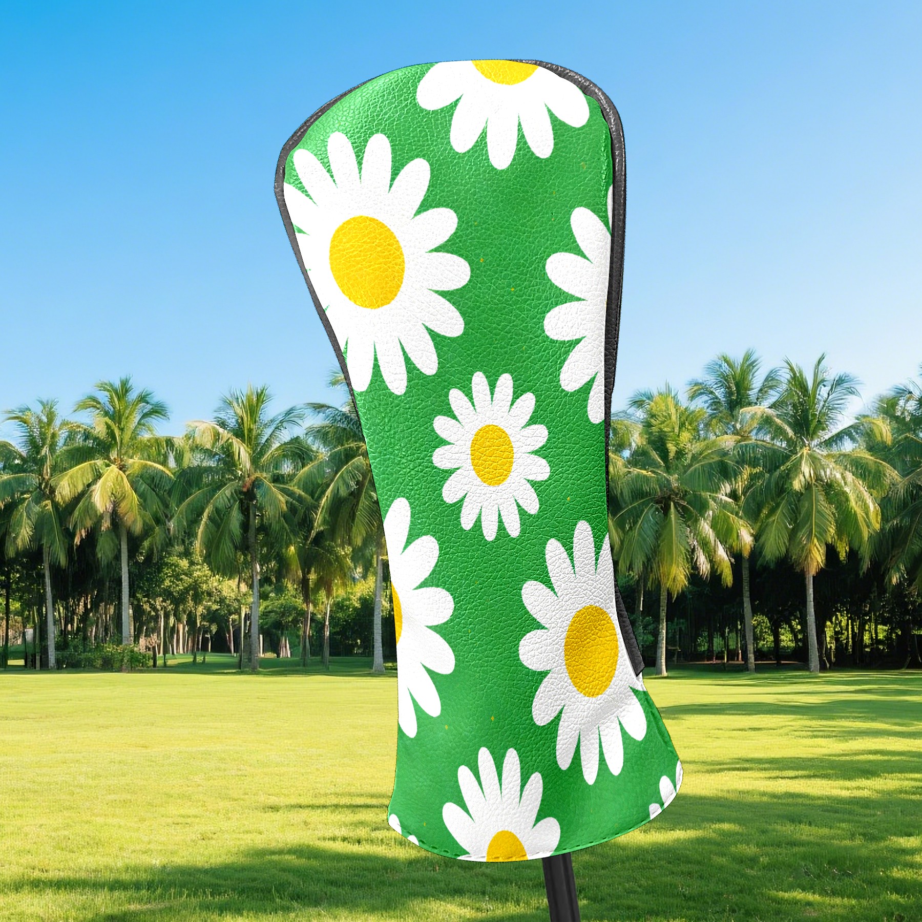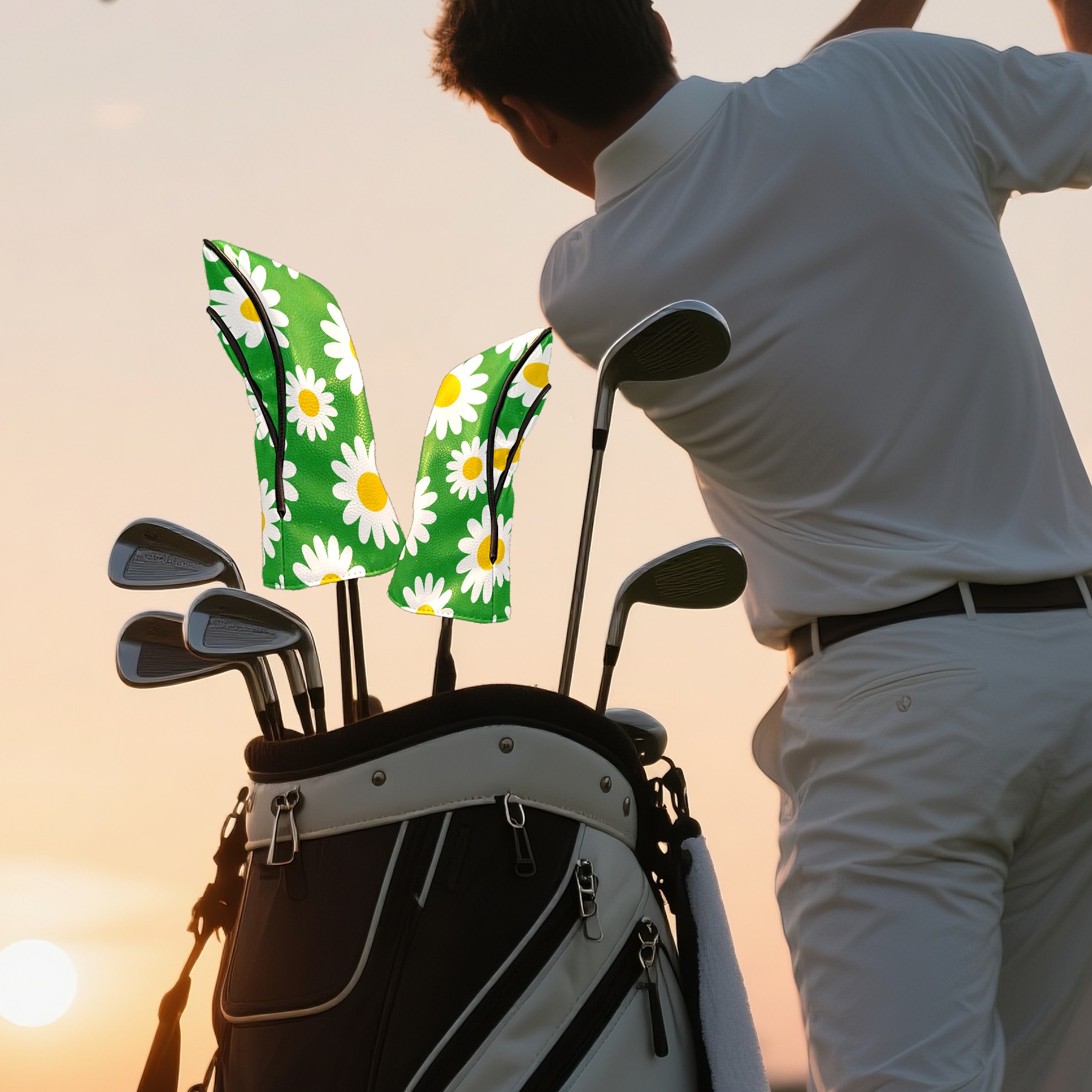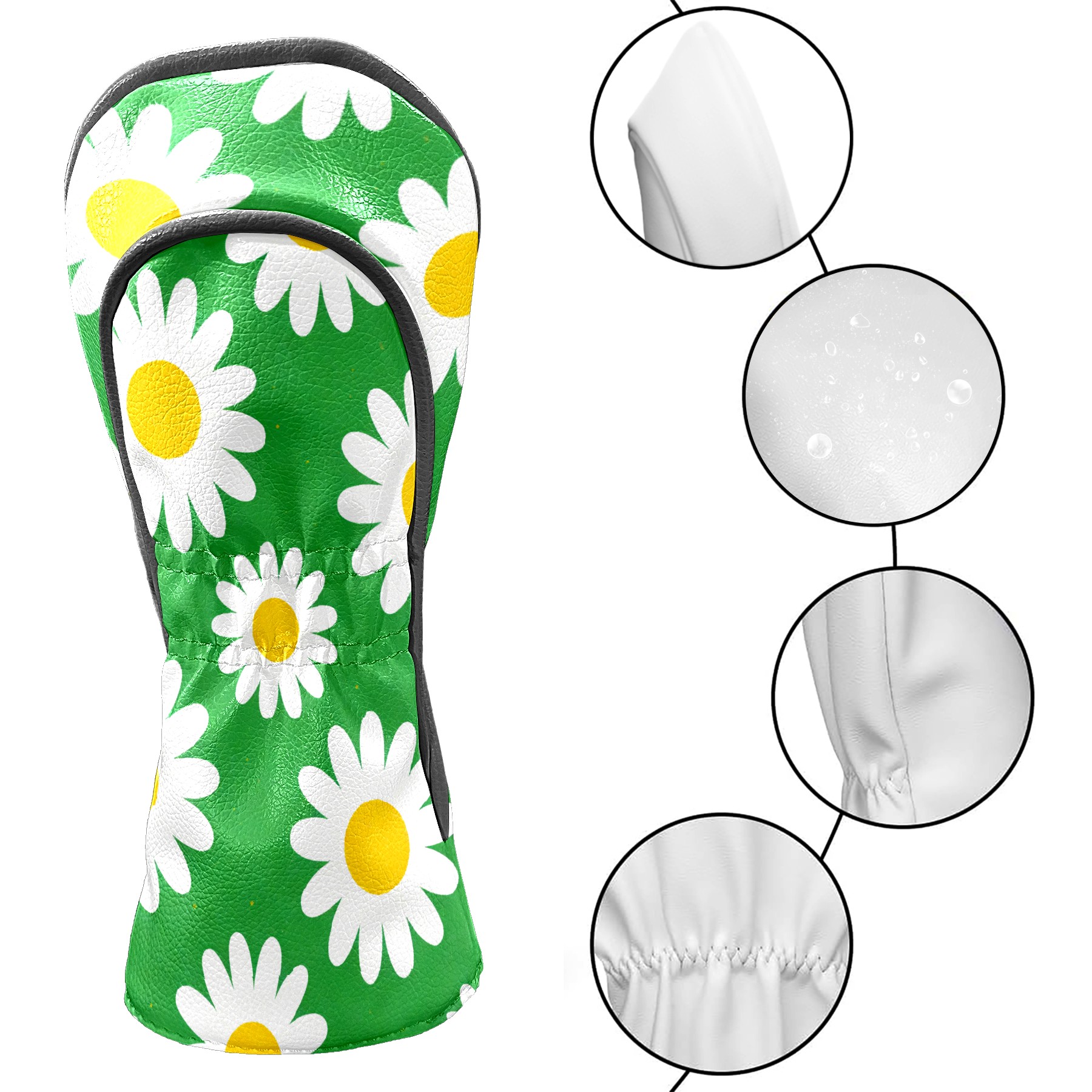 Golf Club Covers Premium Leather Driver Headcover, Golf Head Covers for Woods and Driver Waterproof Golf Headcovers with Anti-Scratch Lining for Women Men (Daisy Green)