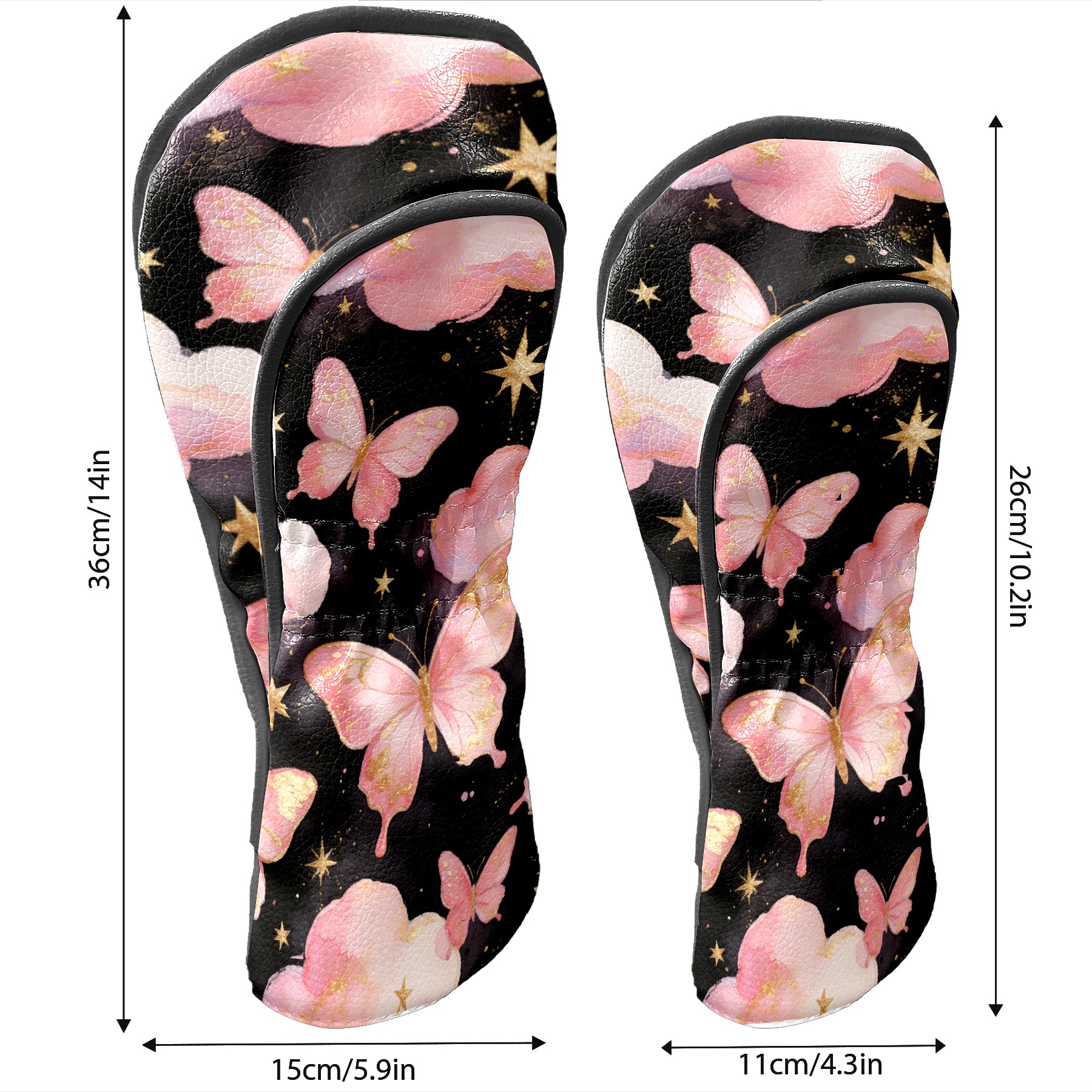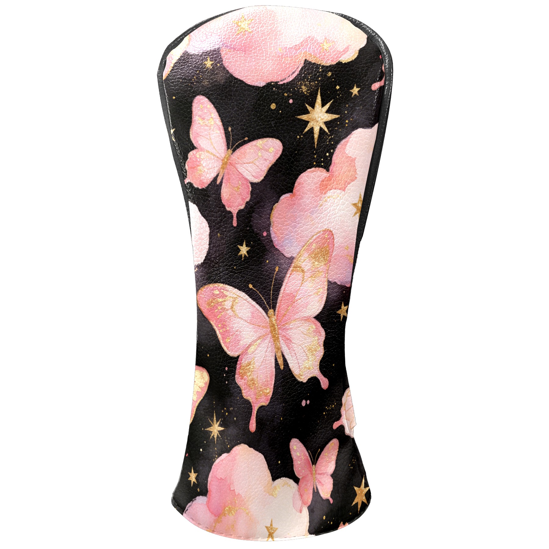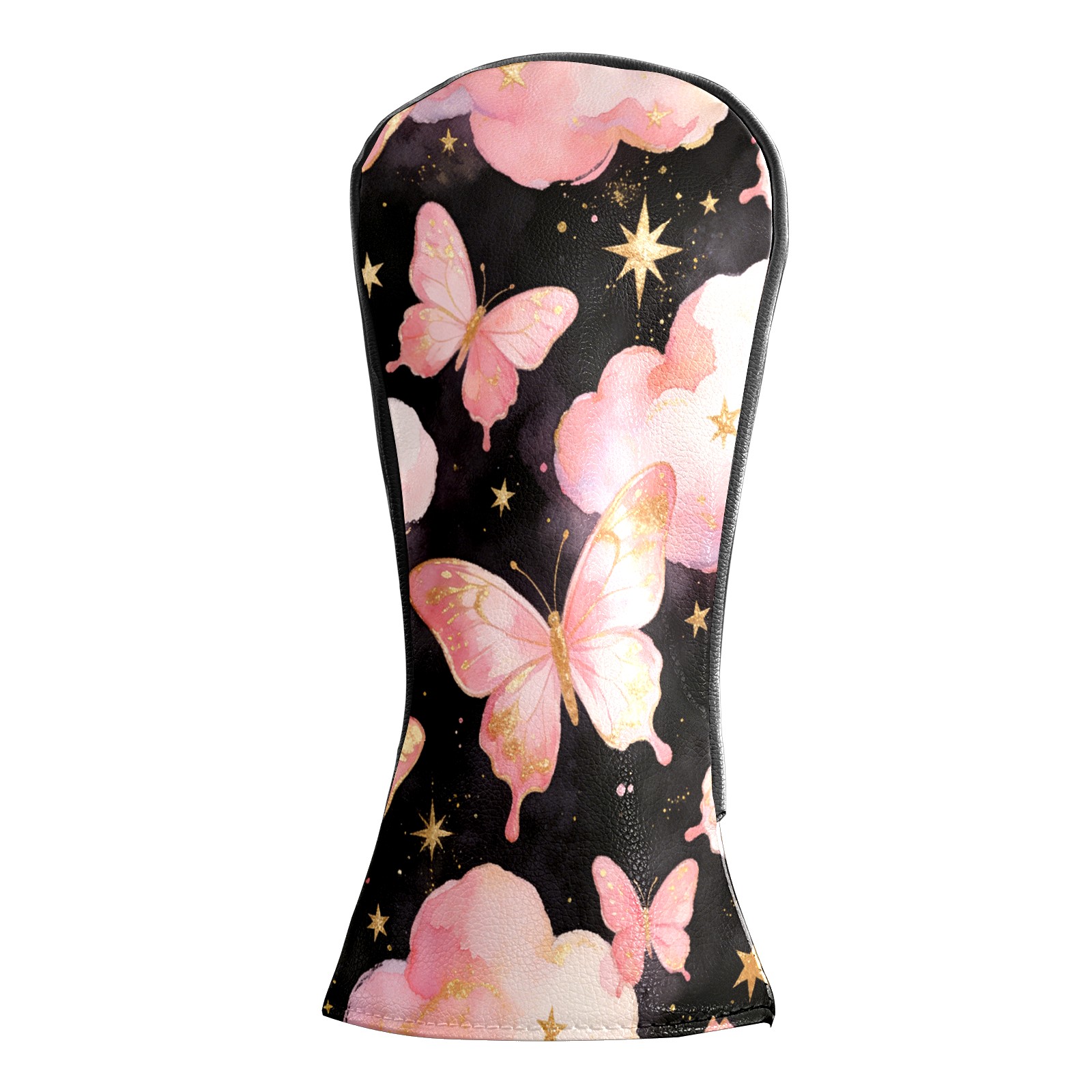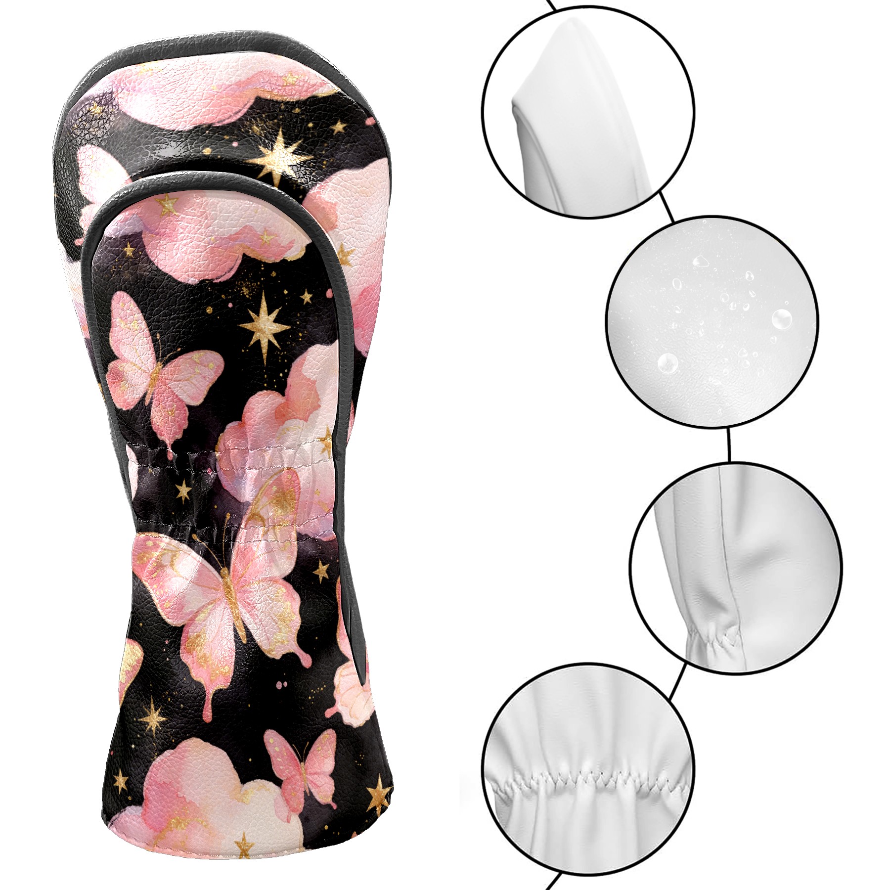 Golf Club Covers Premium Leather Driver Headcover, Golf Head Covers for Woods and Driver Waterproof Golf Headcovers with Anti-Scratch Lining for Women Men (Butterfly Clouds Pink)