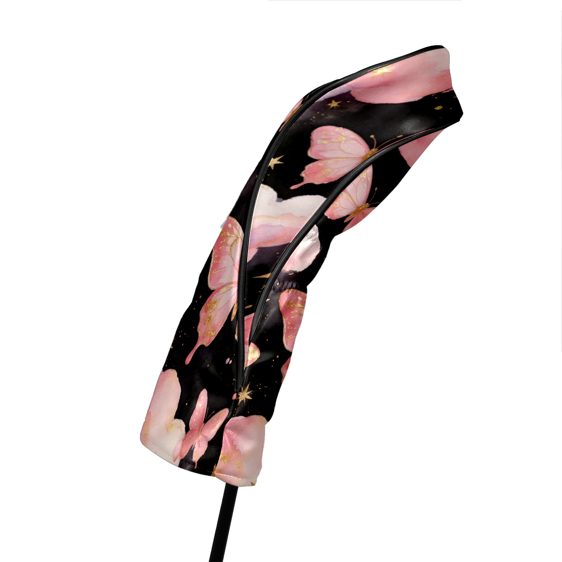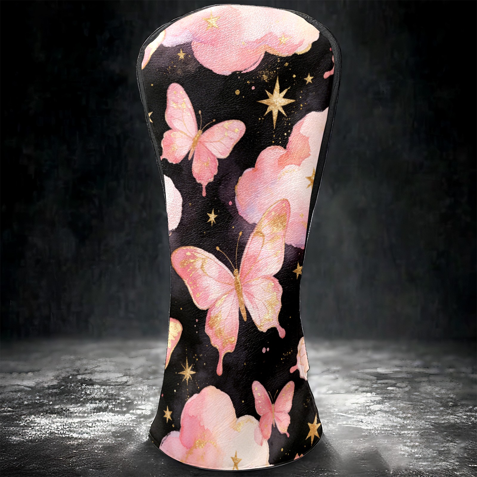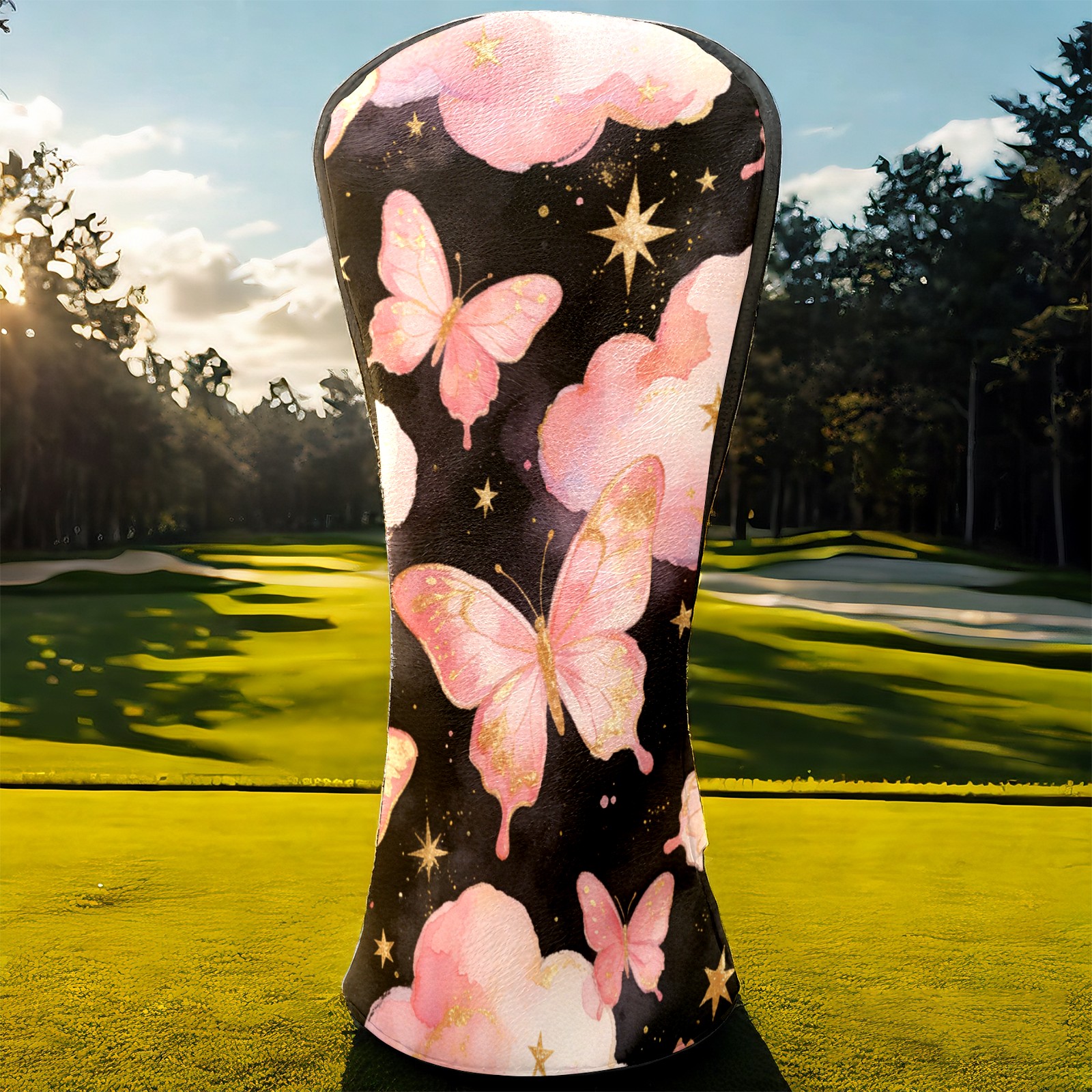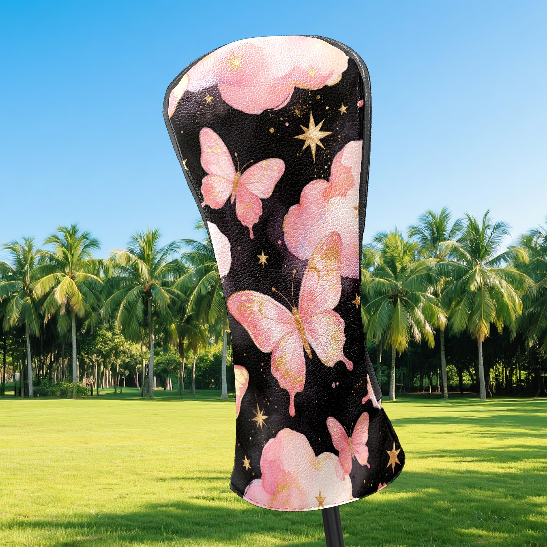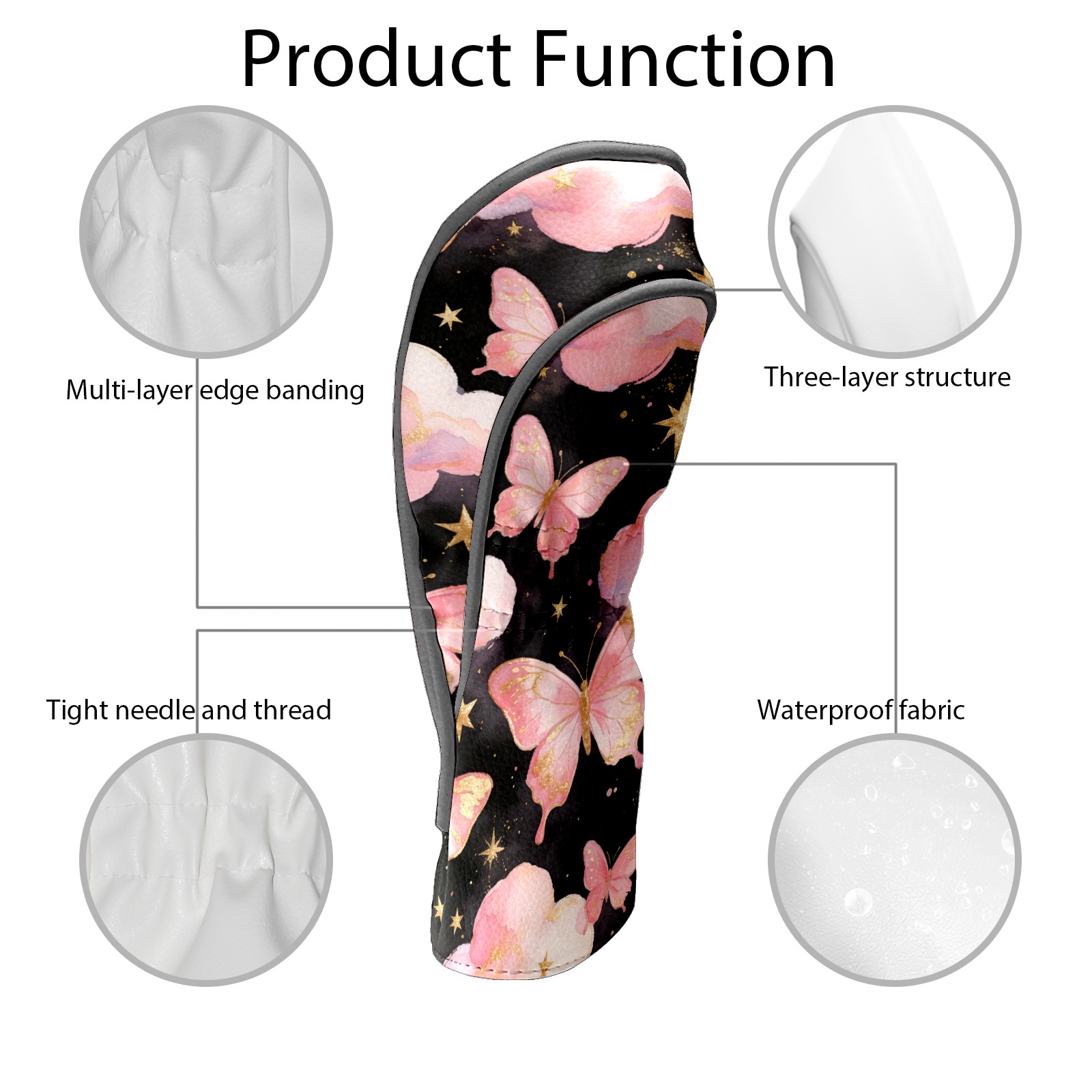 Golf Club Covers Premium Leather Driver Headcover, Golf Head Covers for Woods and Driver Waterproof Golf Headcovers with Anti-Scratch Lining for Women Men (Butterfly Clouds Pink)