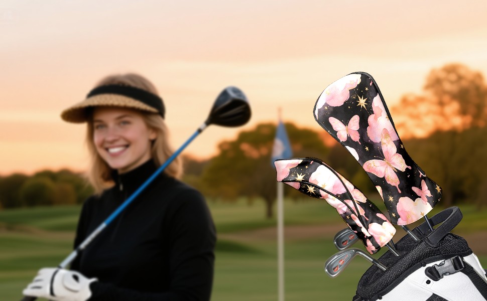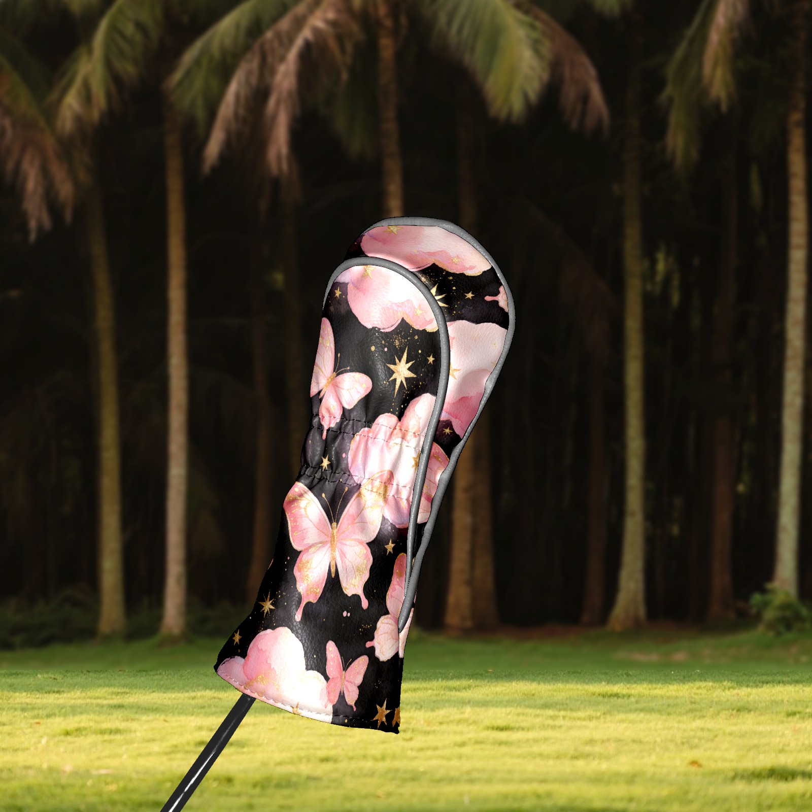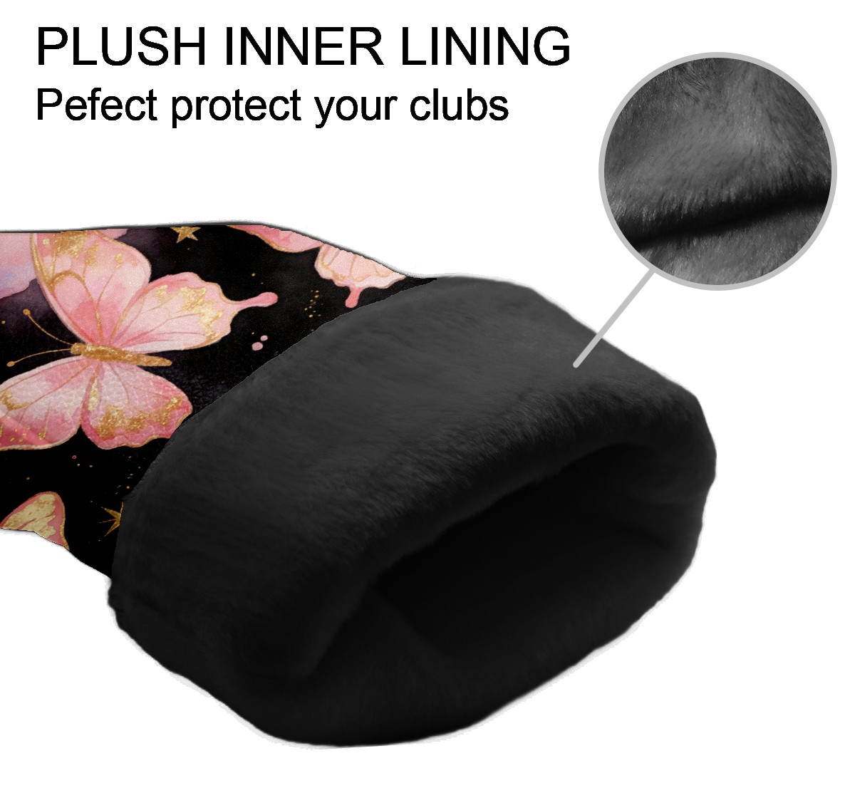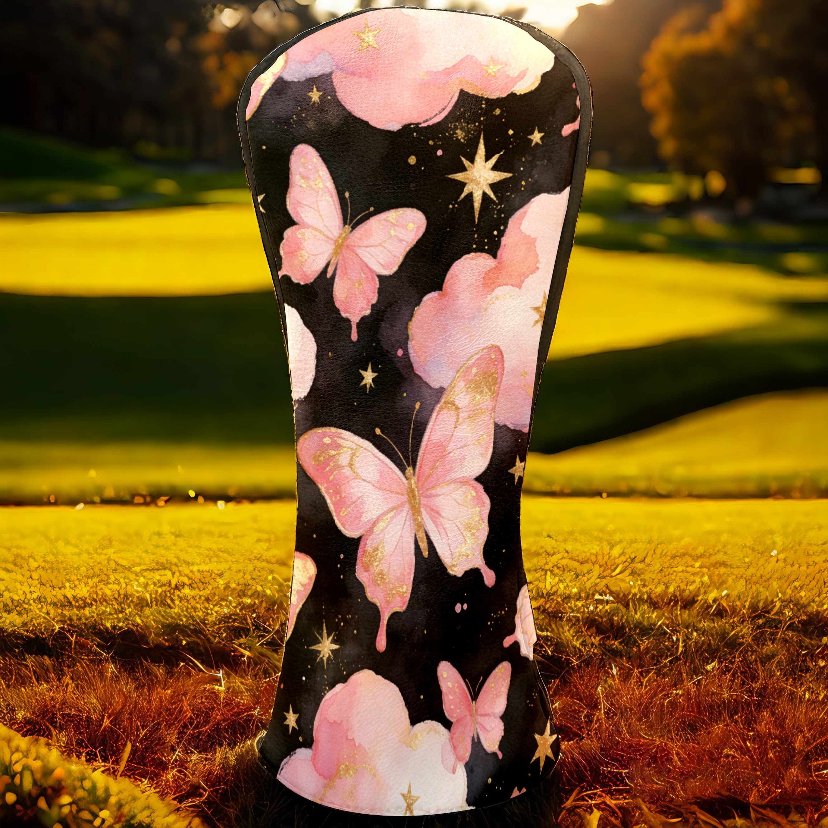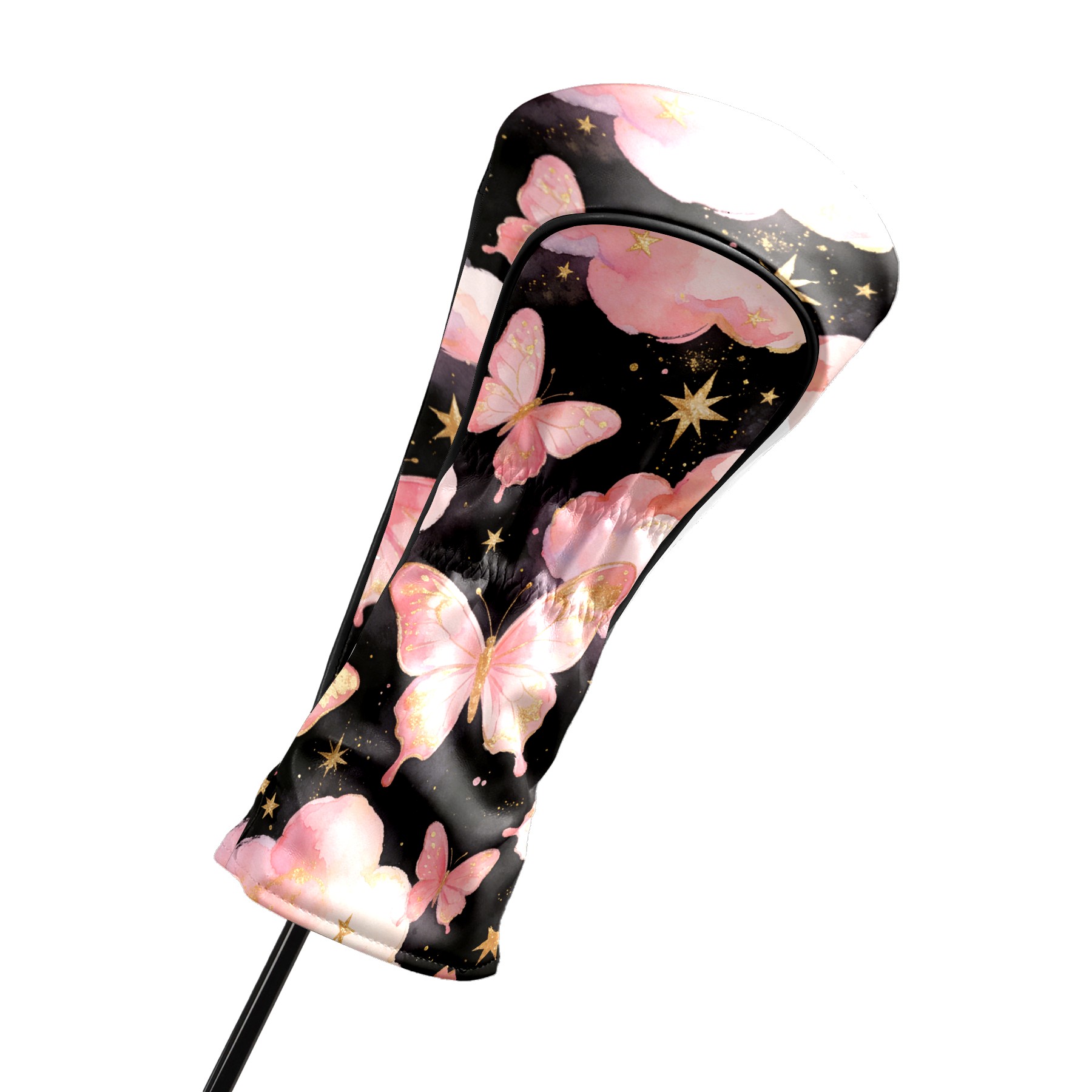 Golf Club Covers Premium Leather Driver Headcover, Golf Head Covers for Woods and Driver Waterproof Golf Headcovers with Anti-Scratch Lining for Women Men (Butterfly Clouds Pink)