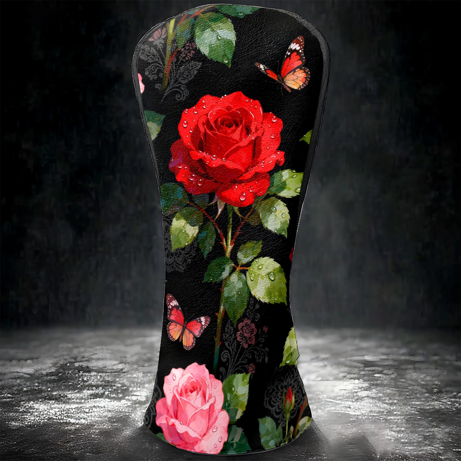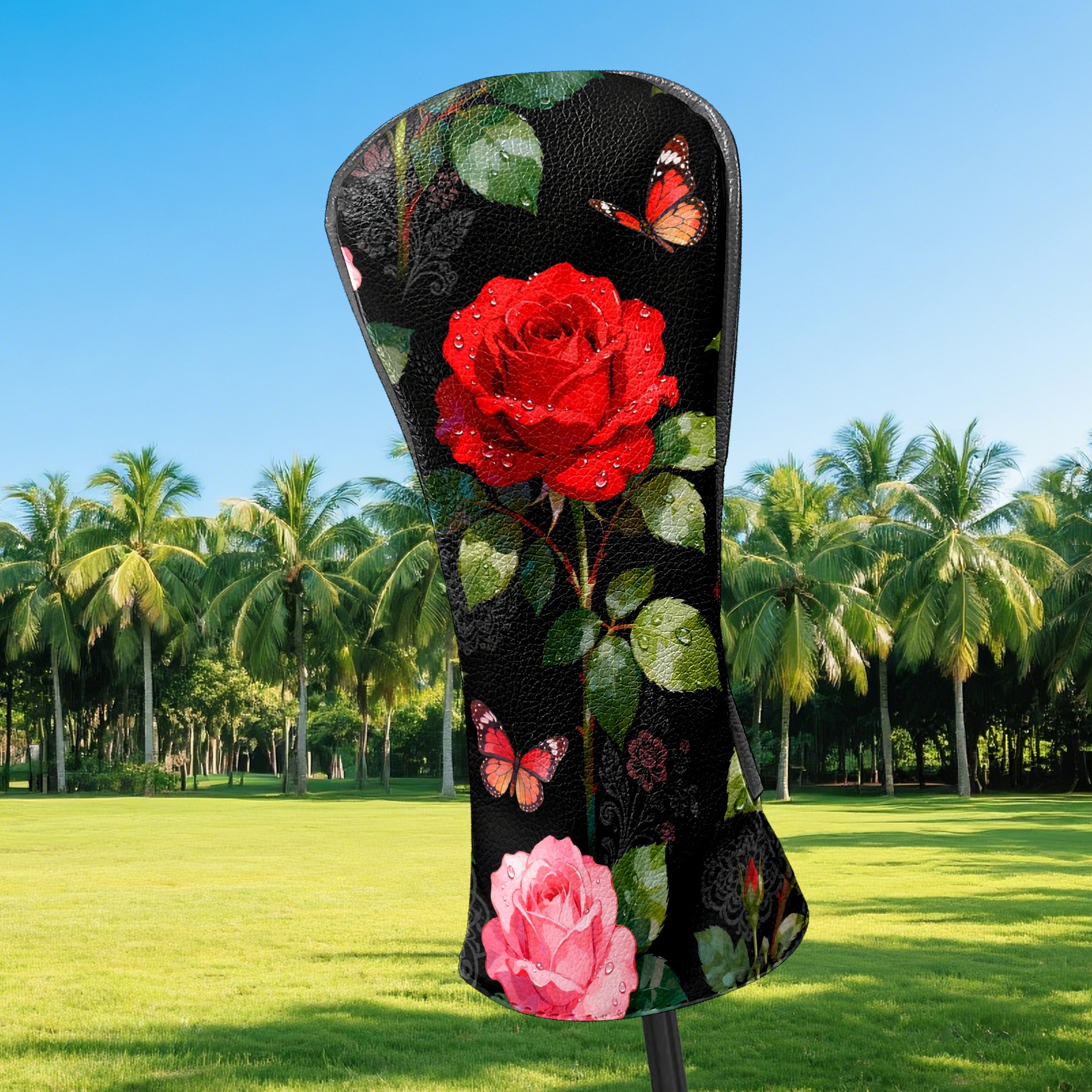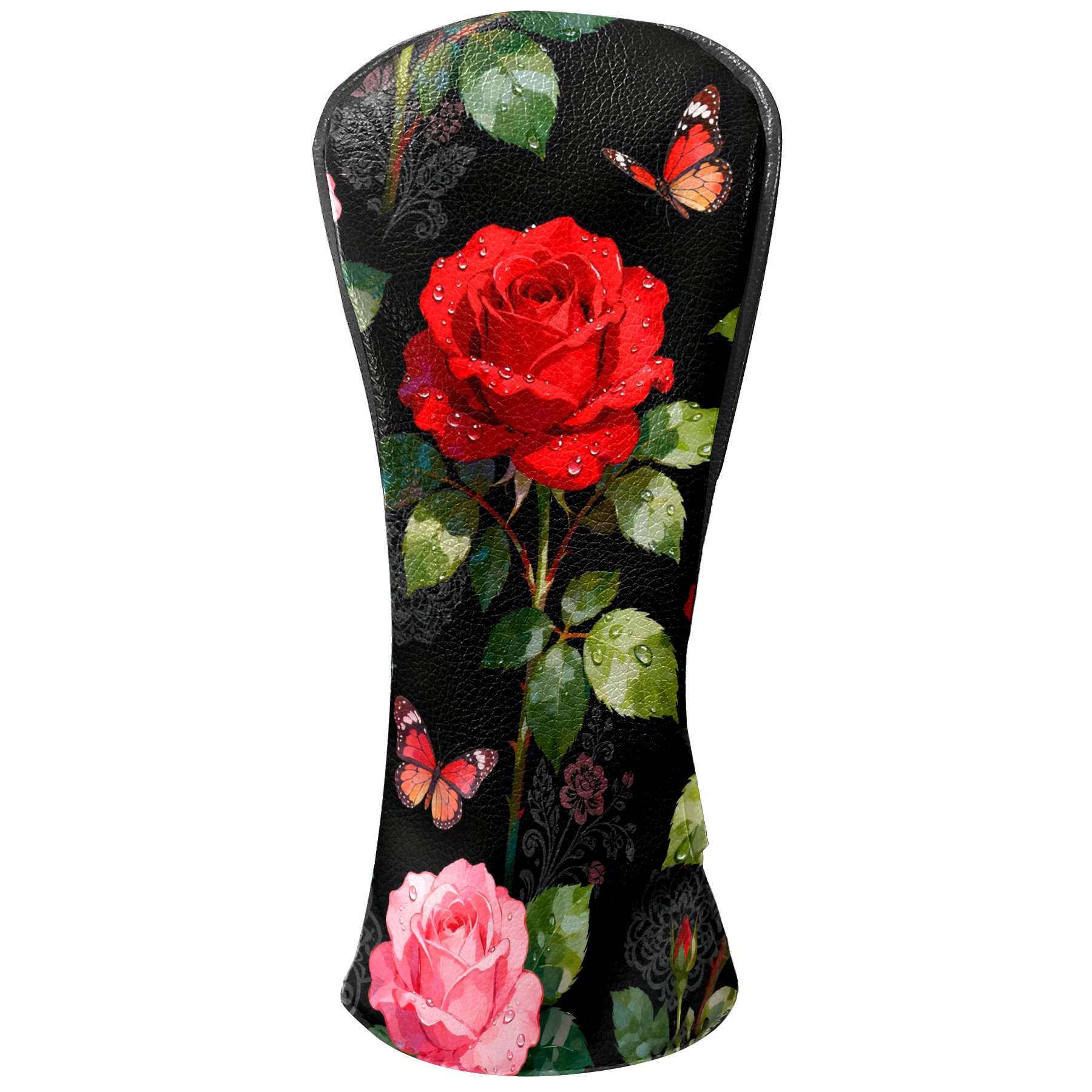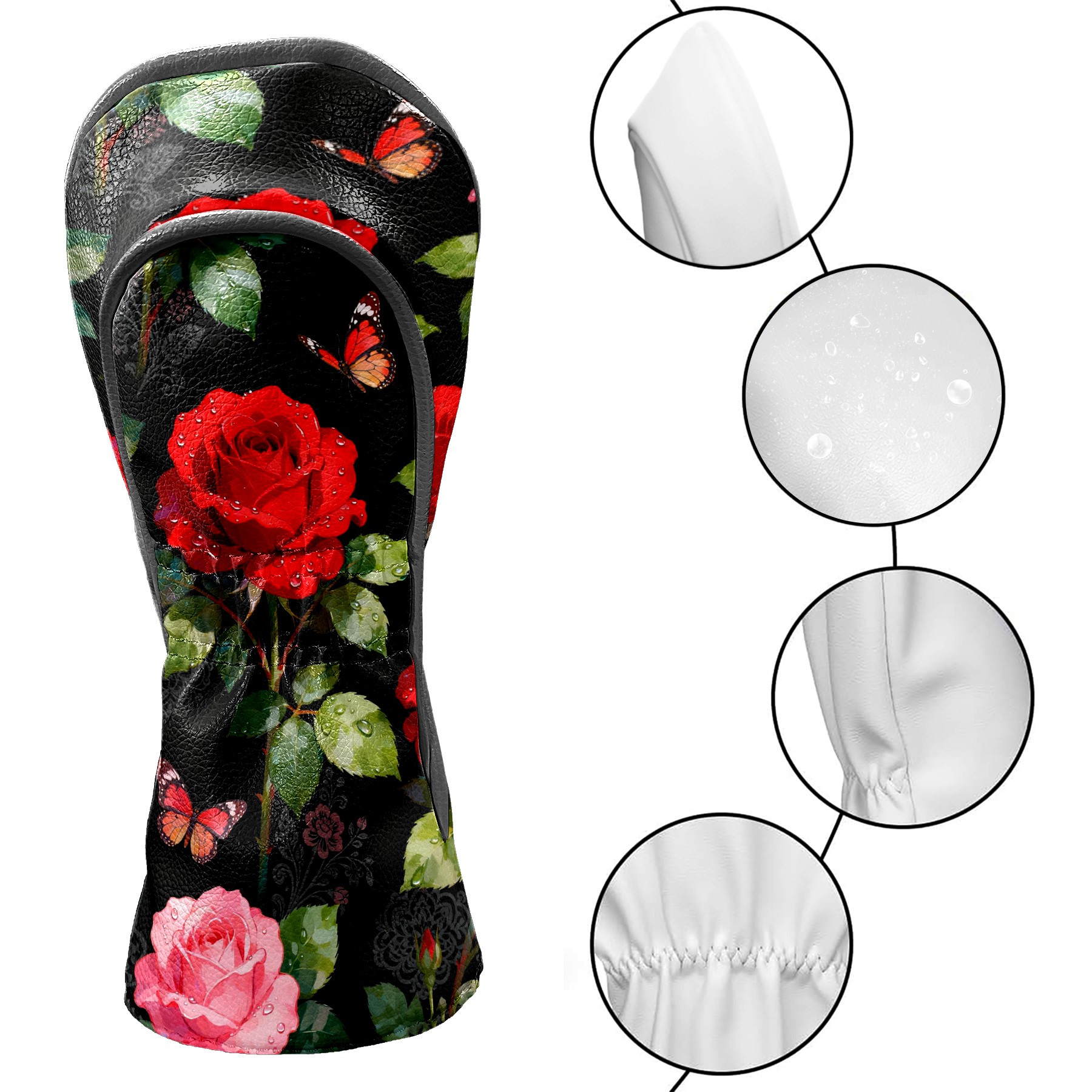 Golf Club Covers Premium Leather Driver Headcover, Golf Head Covers for Woods and Driver Waterproof Golf Headcovers with Anti-Scratch Lining for Women Men (Red Pink Roses)